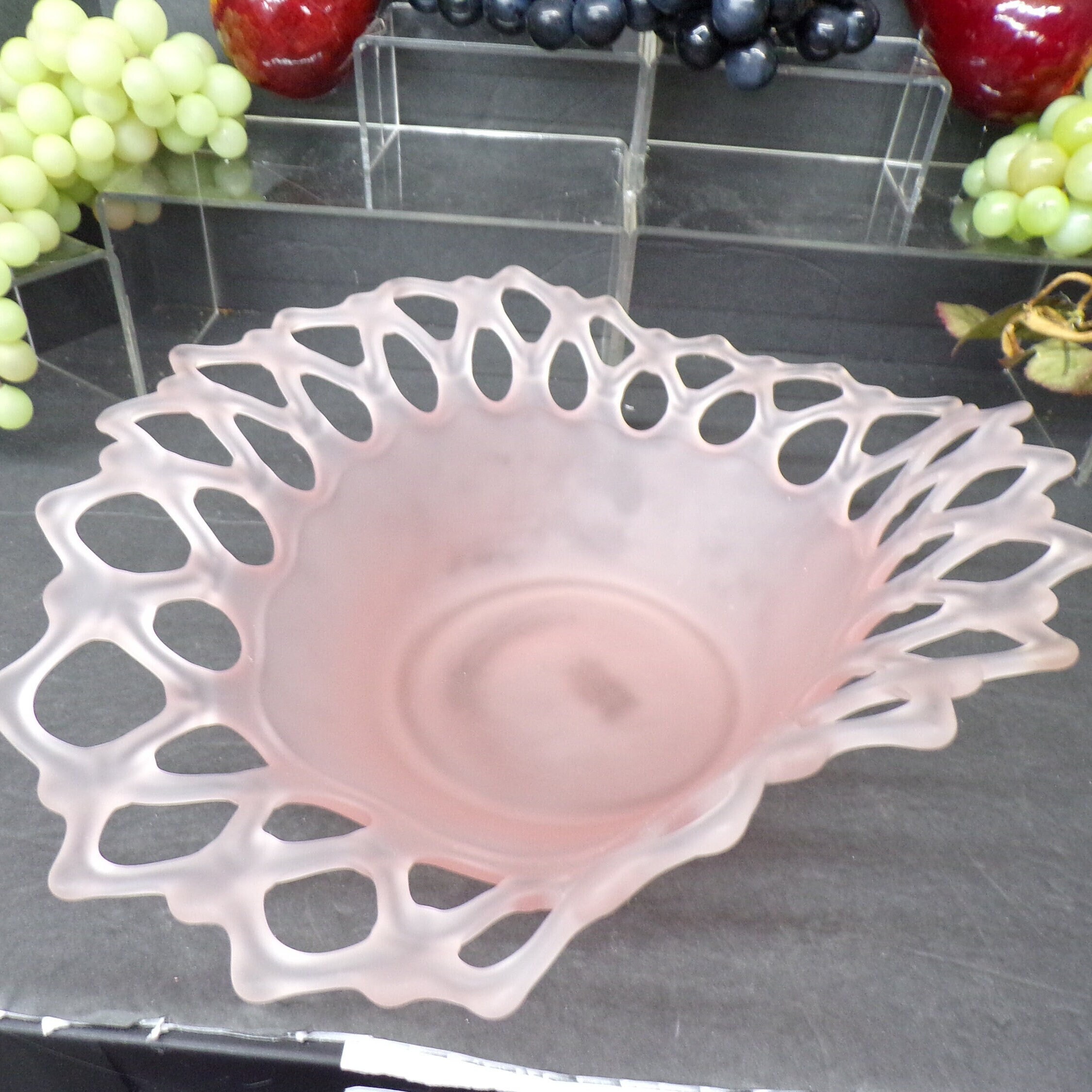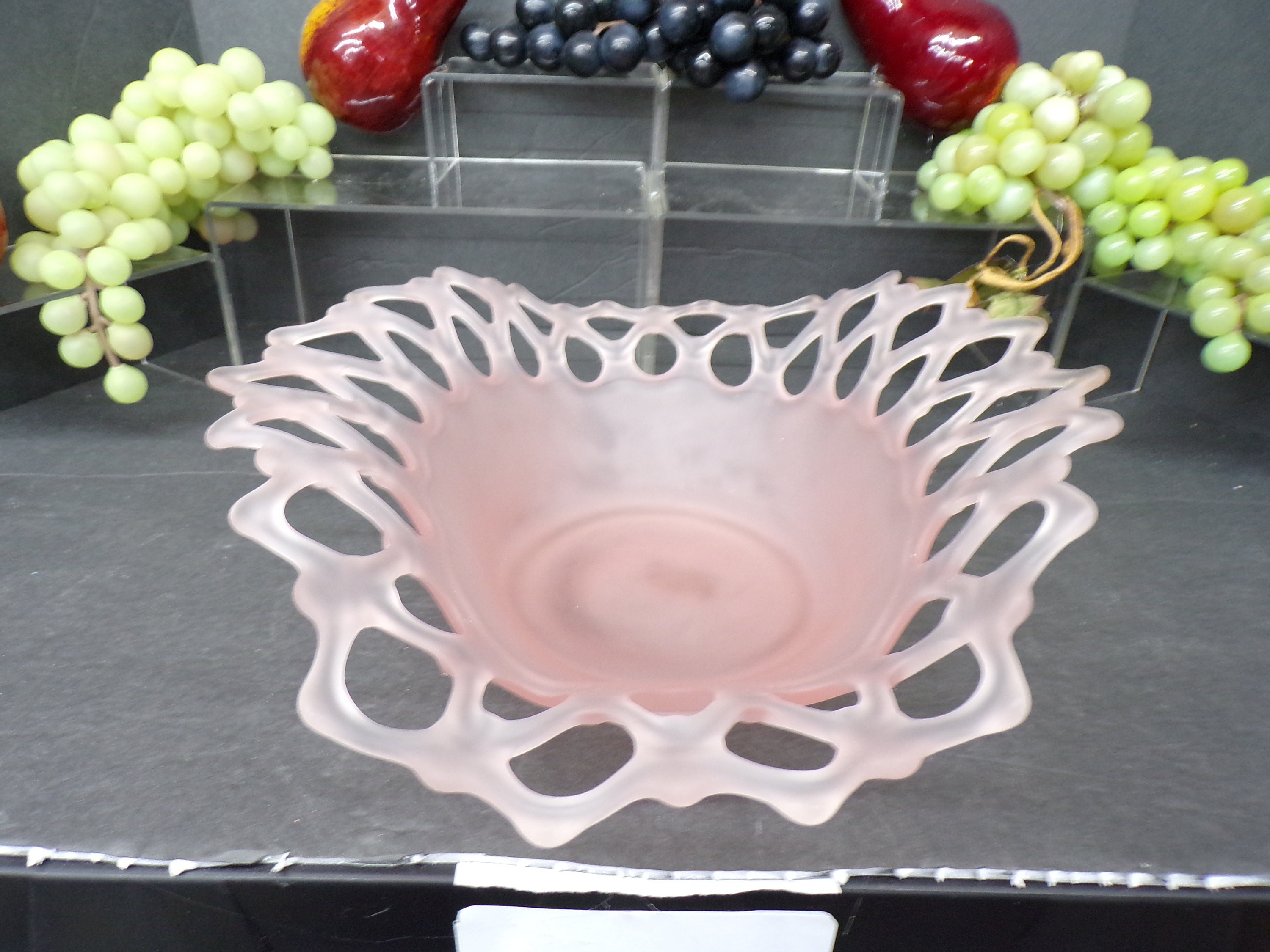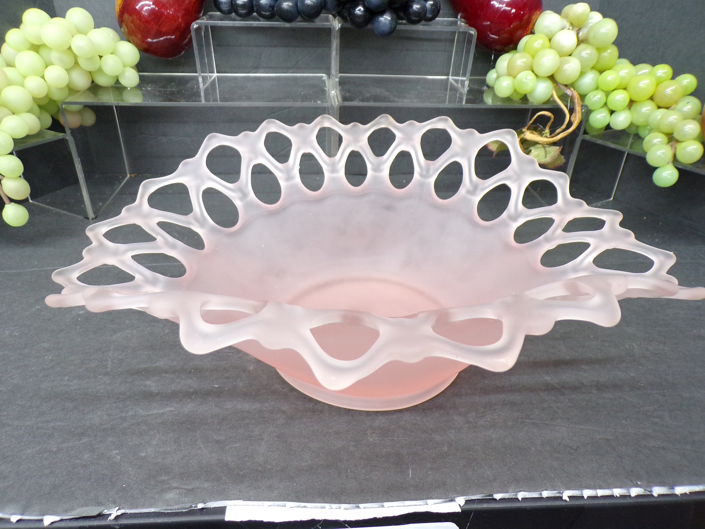 2305115-C3 Vintage Westmoreland 12" x 10" Satin Piink Lattice Doric Centerpiece Bowl- Good Condition No Chips or Cracks
