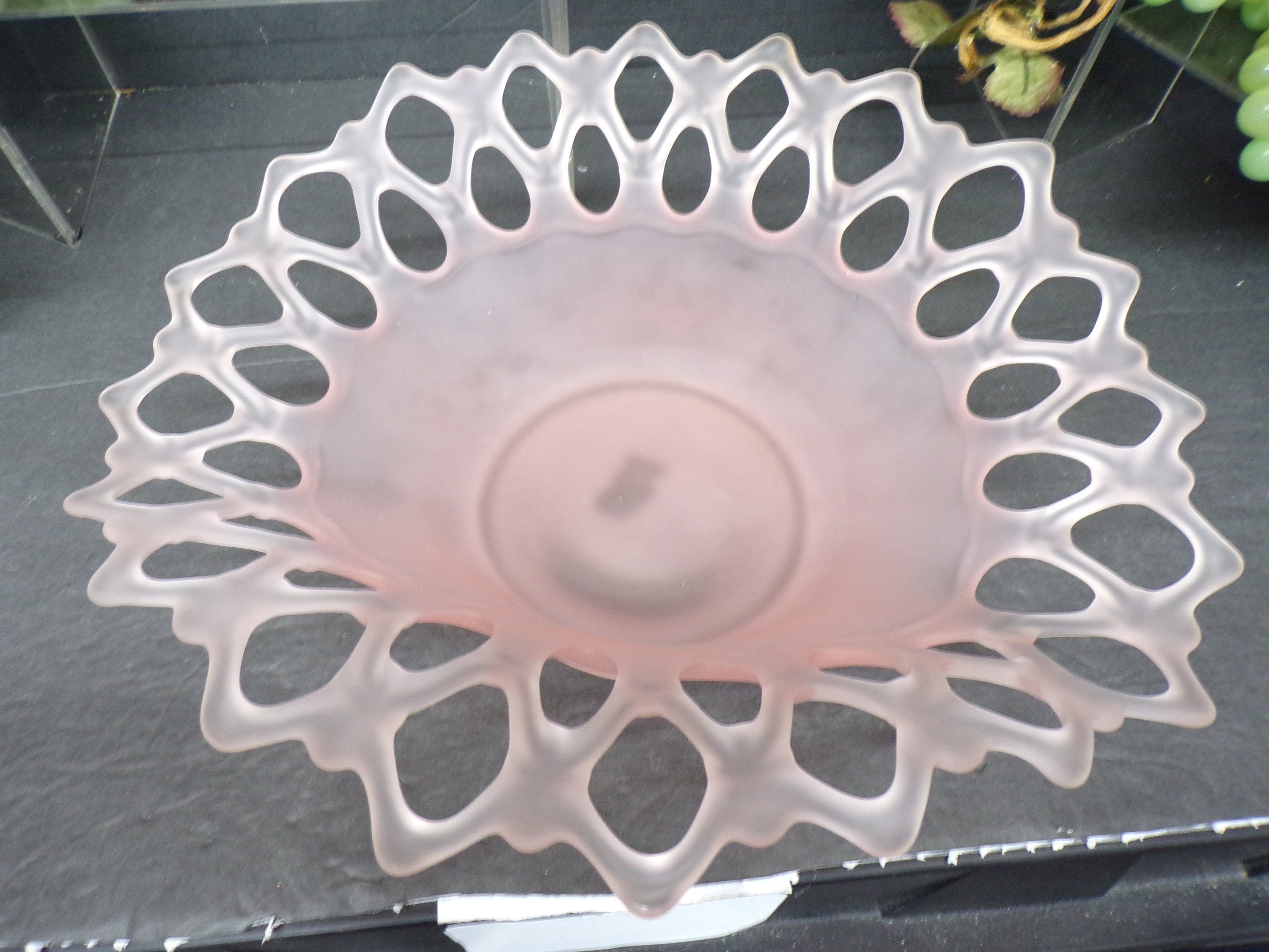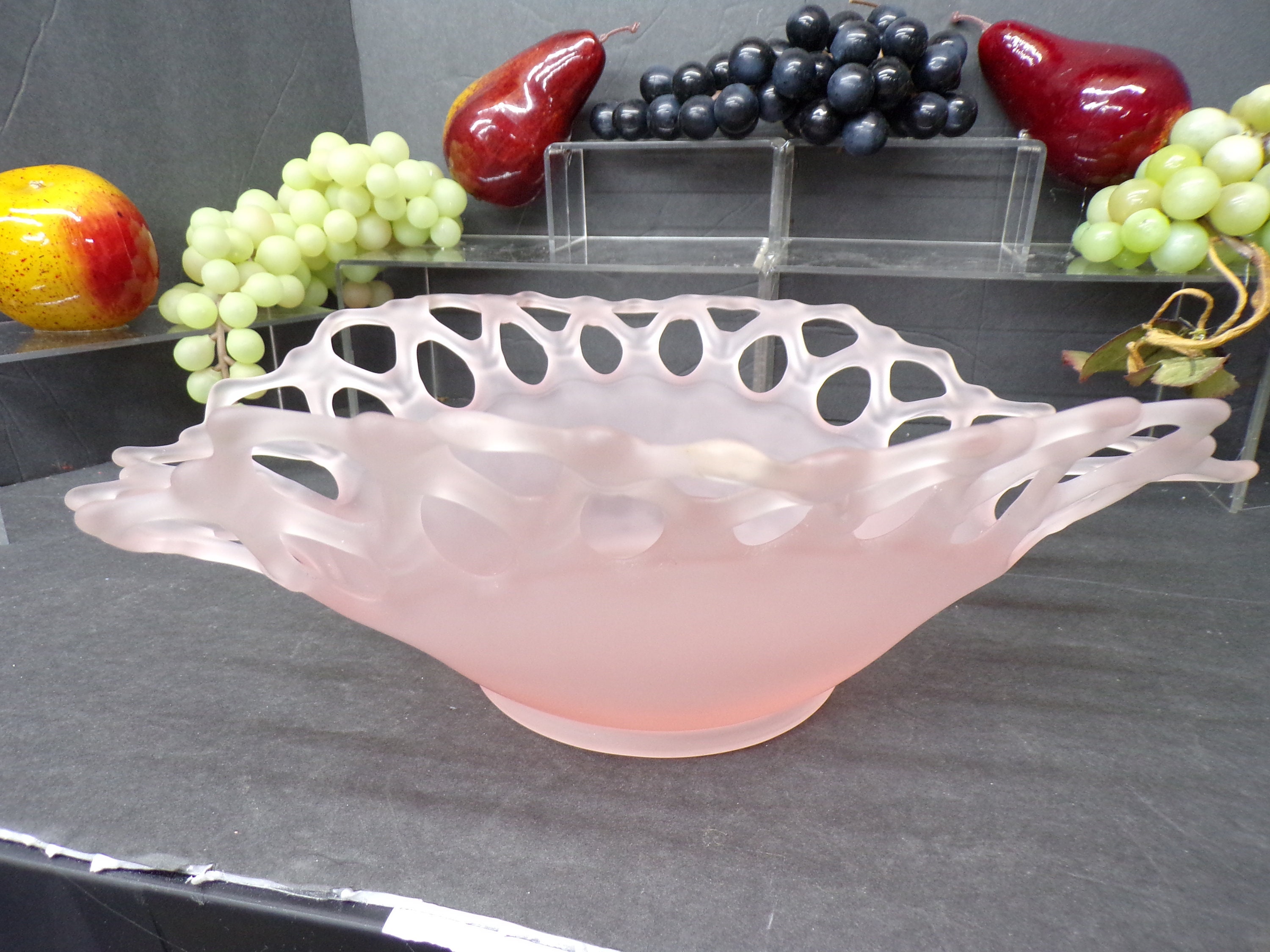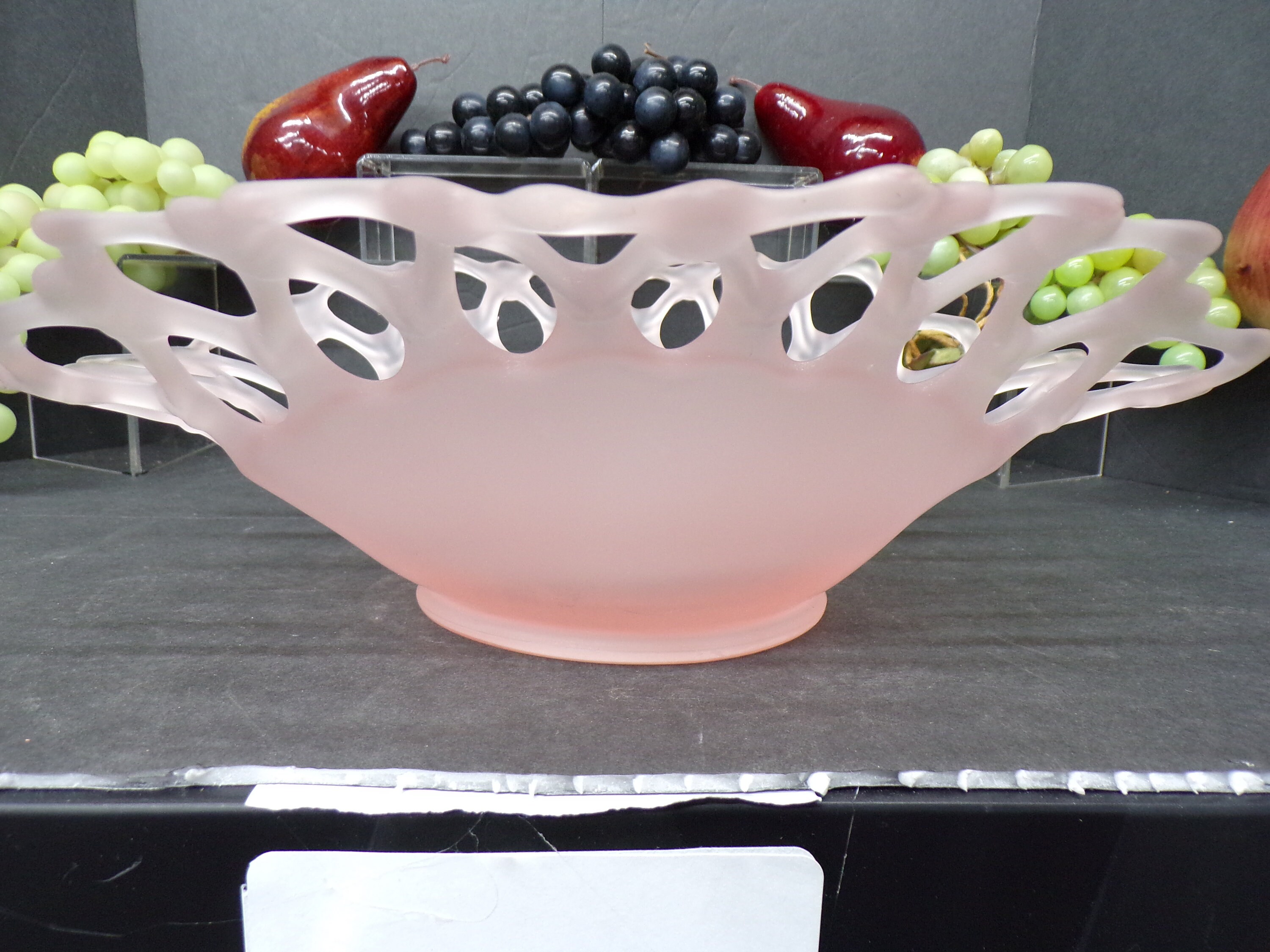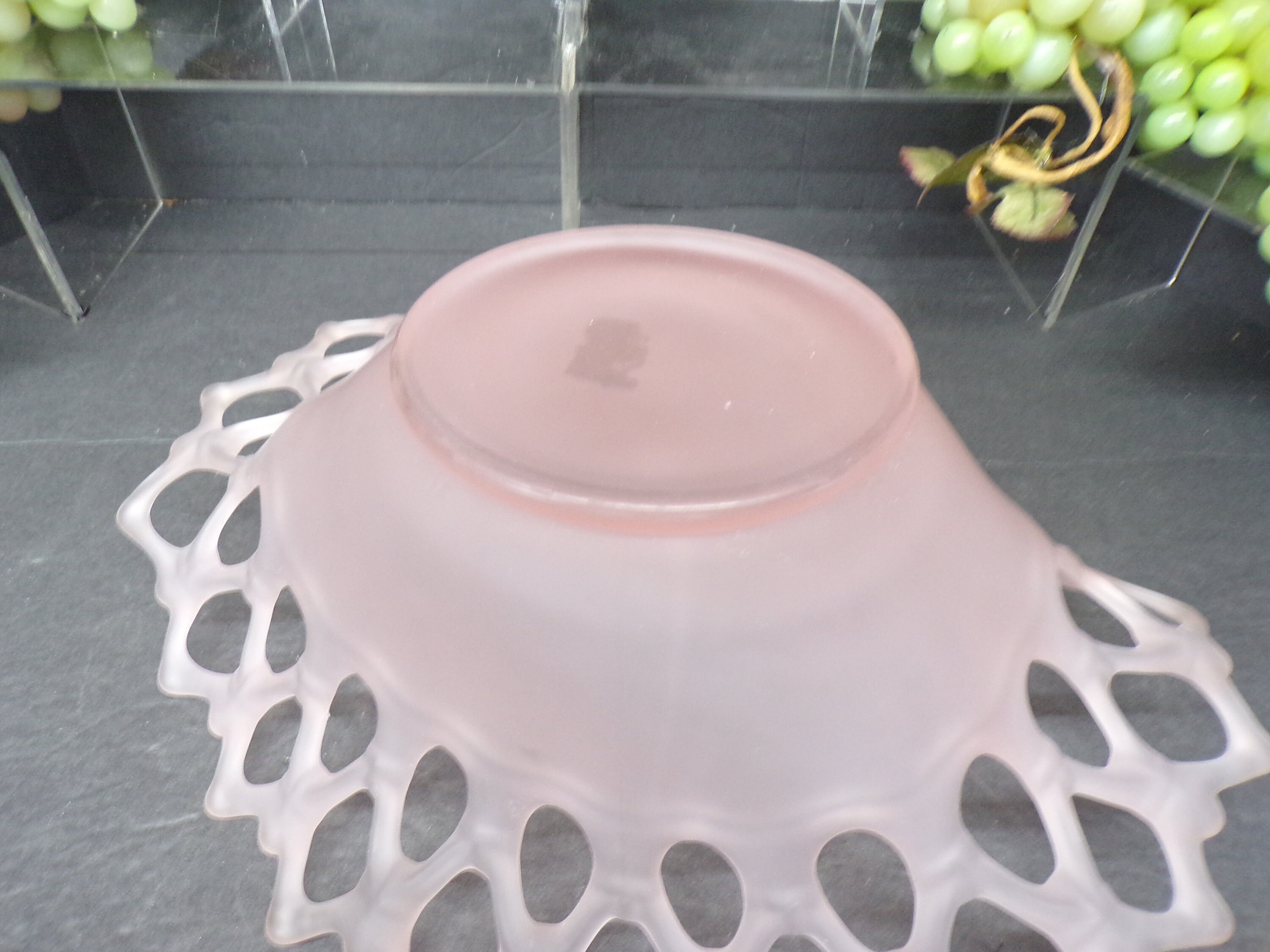 2305115-C3 Vintage Westmoreland 12" x 10" Satin Piink Lattice Doric Centerpiece Bowl- Good Condition No Chips or Cracks