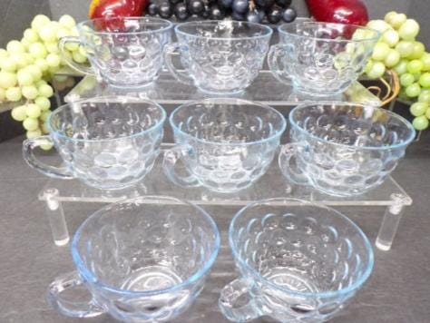 2309 Anchor Hocking Blue Tint Vintage Bubble Glass 8 oz Coffee / Tea Cups Set of 8 - Good Condition