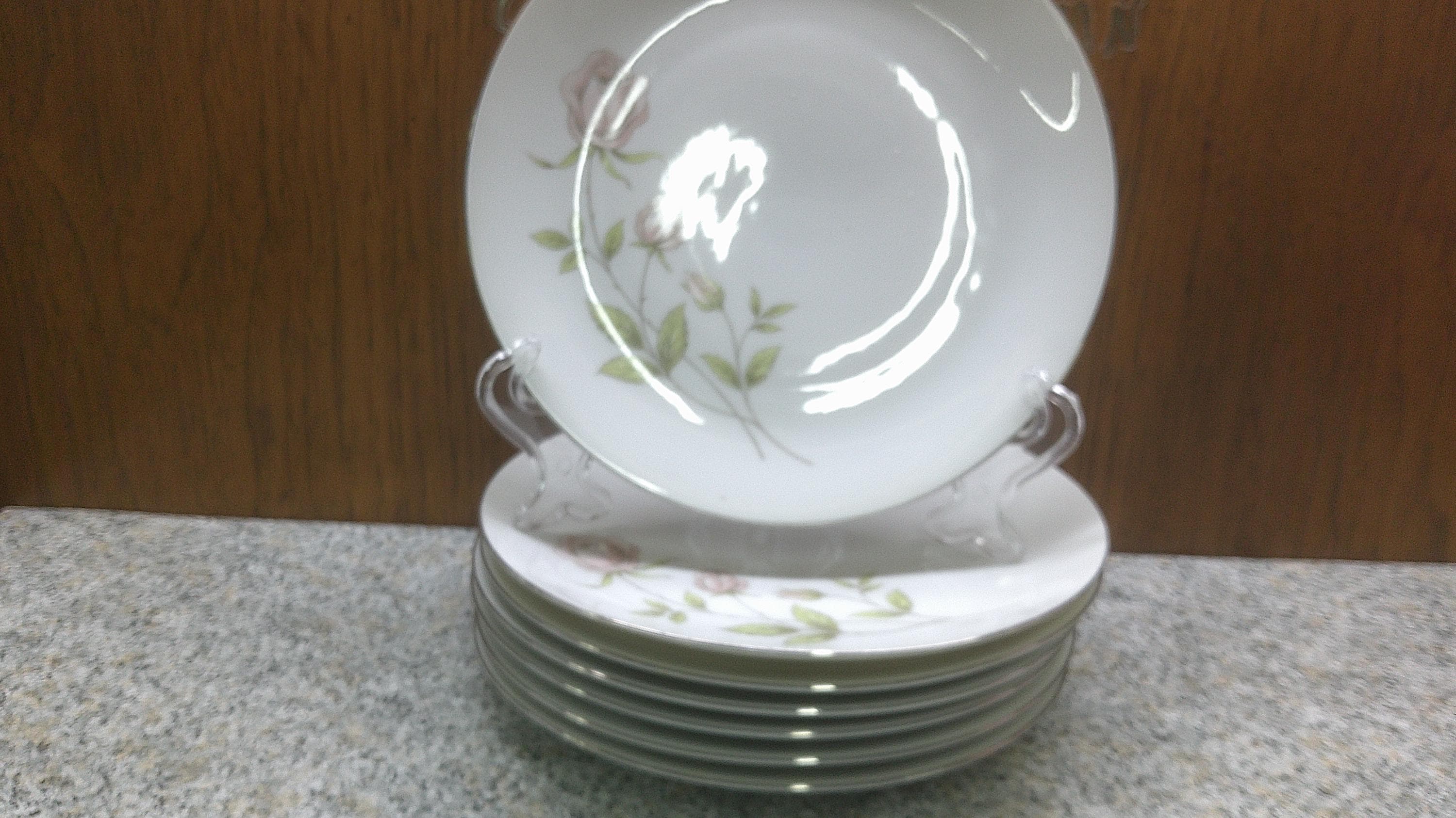 Beautiful Pink Roses on 7.5" Snack / Dessert Plates Set of 7 Made in Bavaria Germany for Prudential - Good Condition No Chips or Cracks