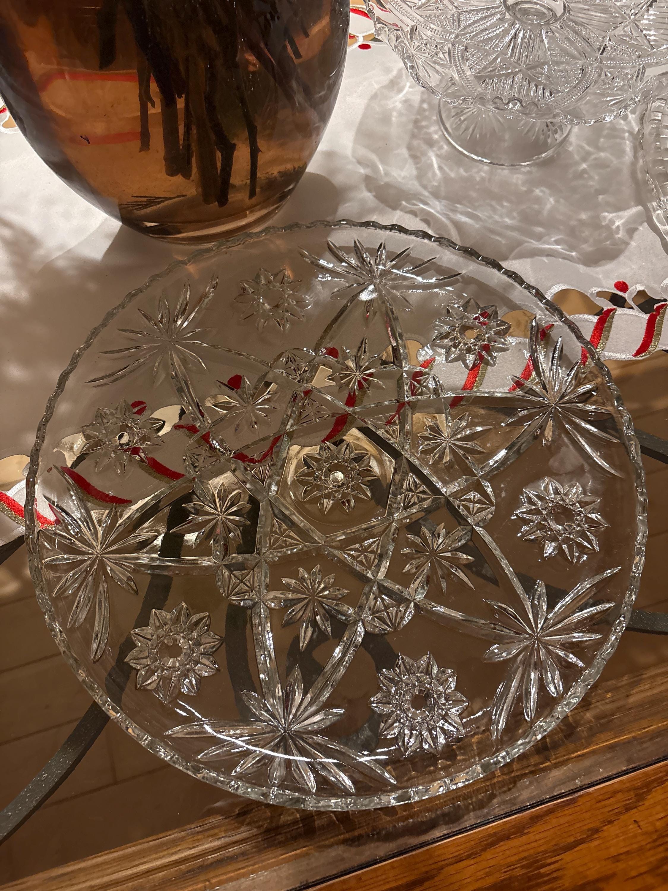 Anchor Hocking Early American Prescut Star of David 13.5" Platter w/ Raised Sawtooth Rim - Great Condition