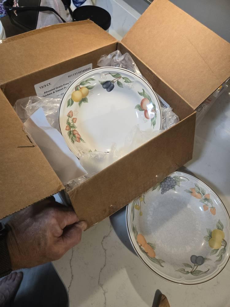 2501 Gibson Designs Festival Fruit Pattern Stoneware Brown Rim - Great Condition Light Scratches Choose from List: