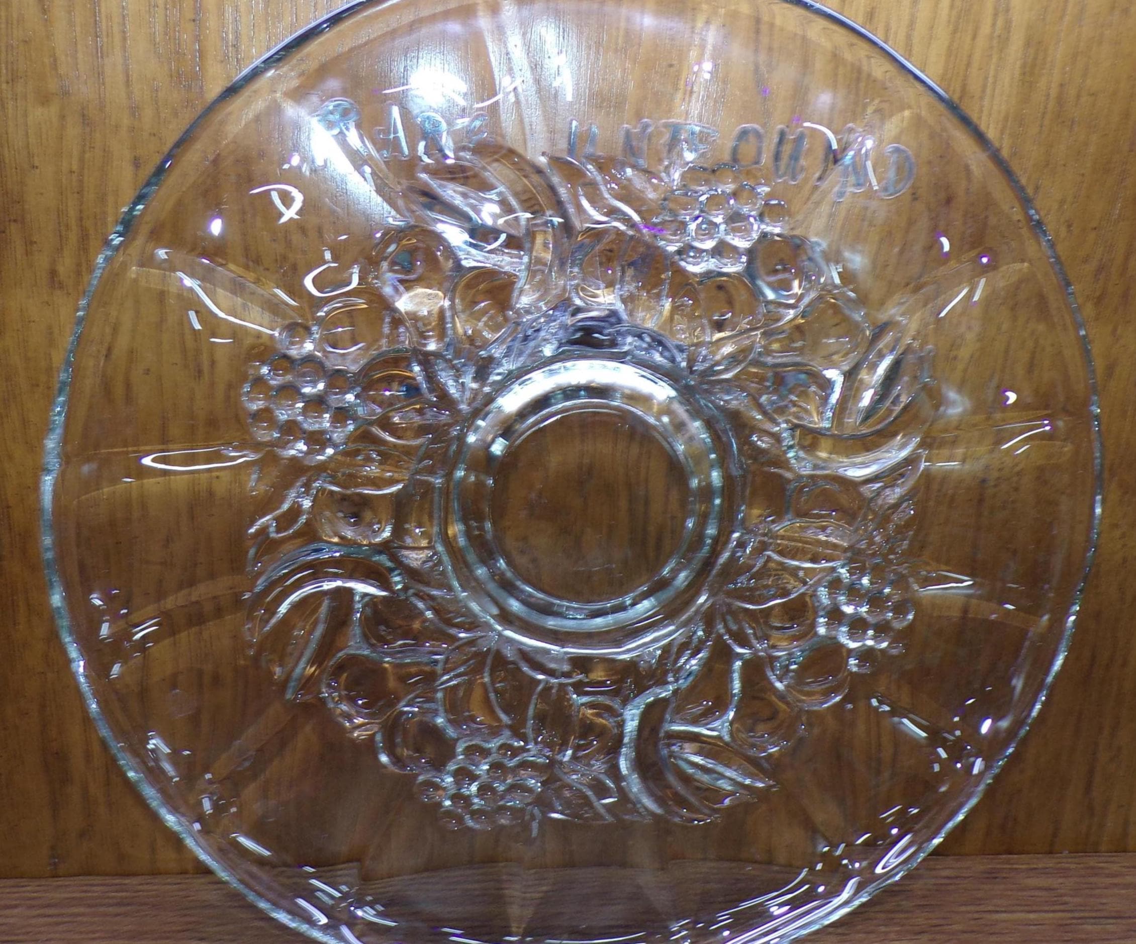 2503 Indiana Glass Vintage Footed 13.5" Clear Paneled Glass Platter Embossed Fruit Garland - Great Condition
