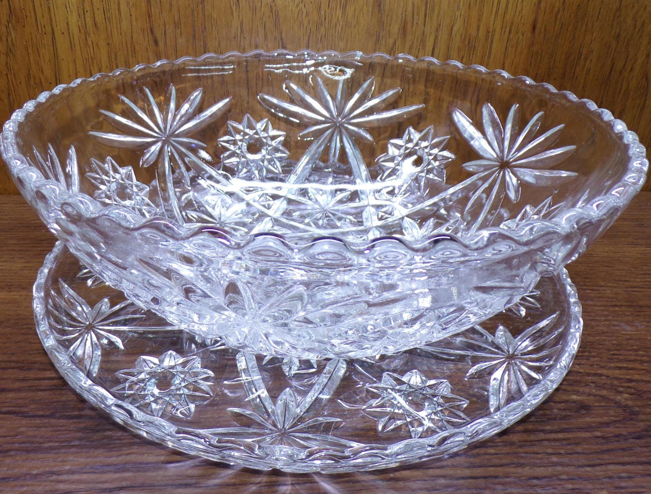 2504 Anchor Hocking Early American Prescut Star of David Serving Pair - 11" Platter & 10.75" Bowl - Great Condition