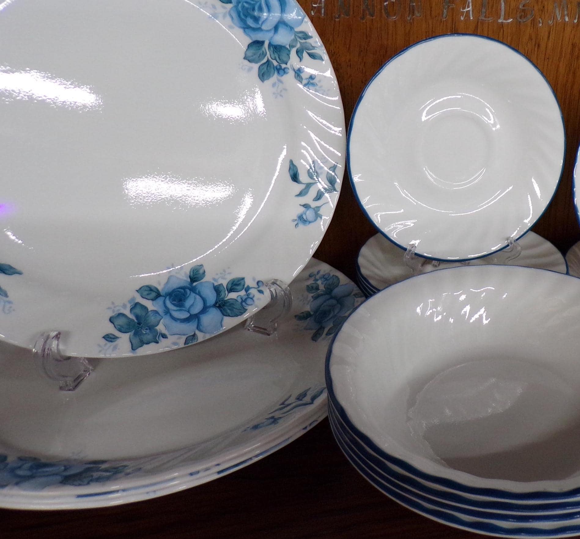 2504 Corelle Blue Velvet Swirl Dinnerware - Blue Roses - Great Condition Choose From List: