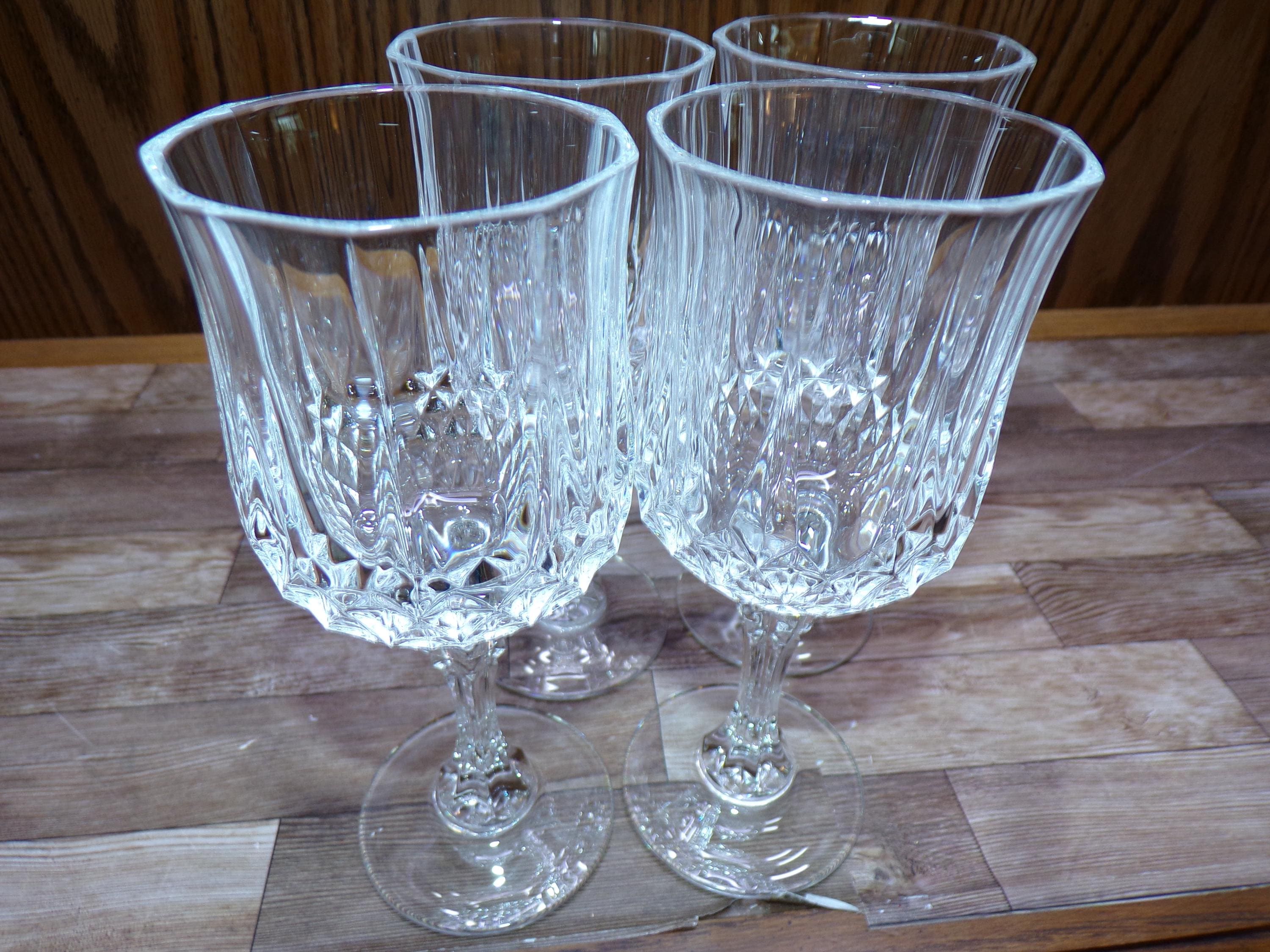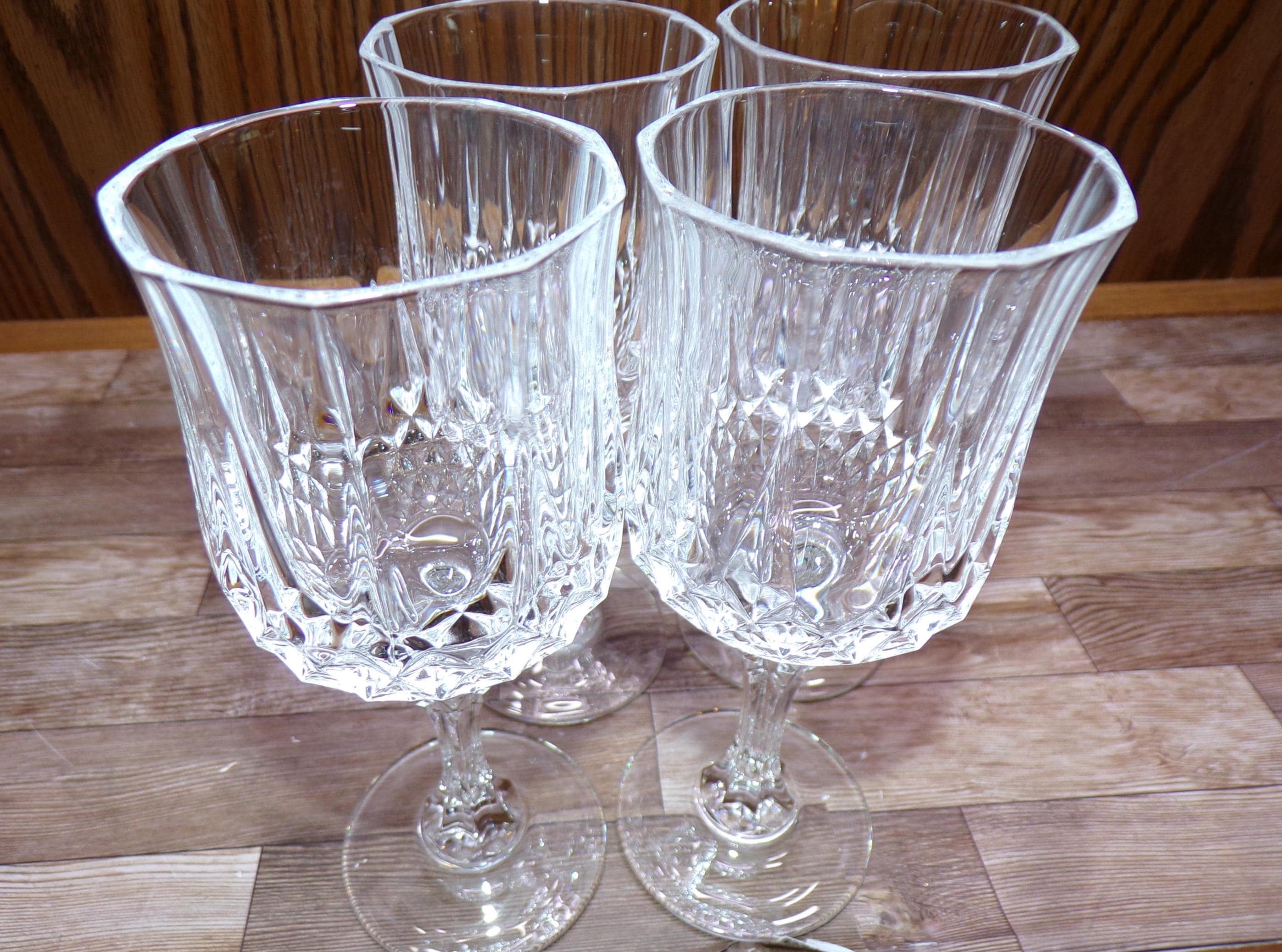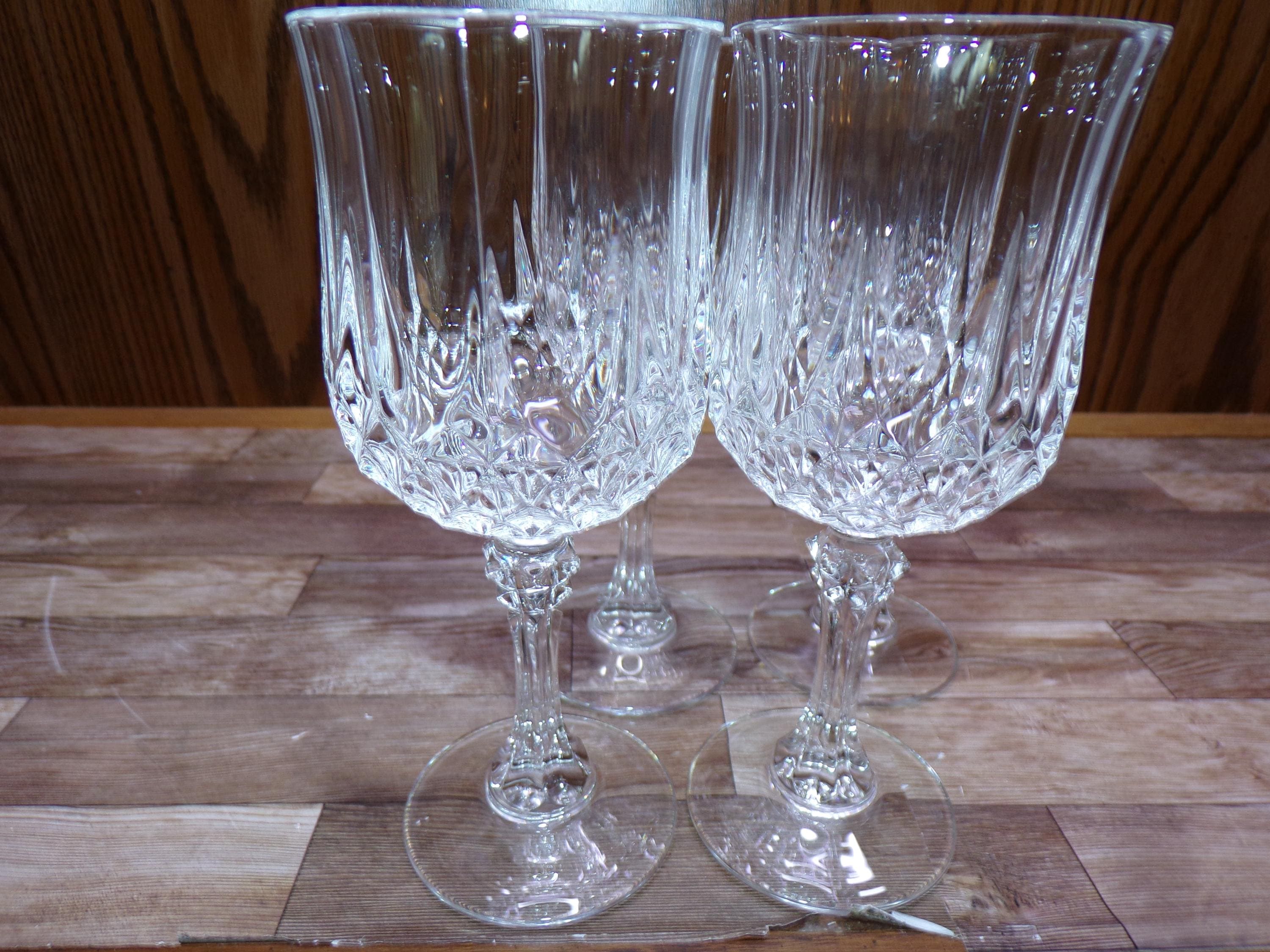 2508 Cristal D'Arques Paris 24% Lead Crystal LongChamp Clear 6.5" 5.75 oz Stemmed Vintage Wine / Water Glass Set of 4 - Good Condition