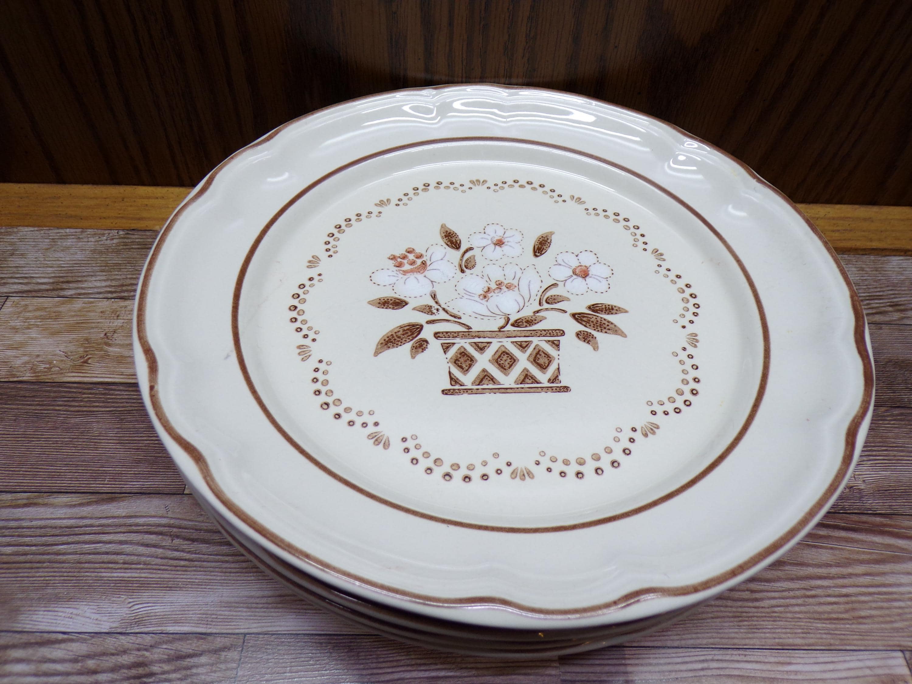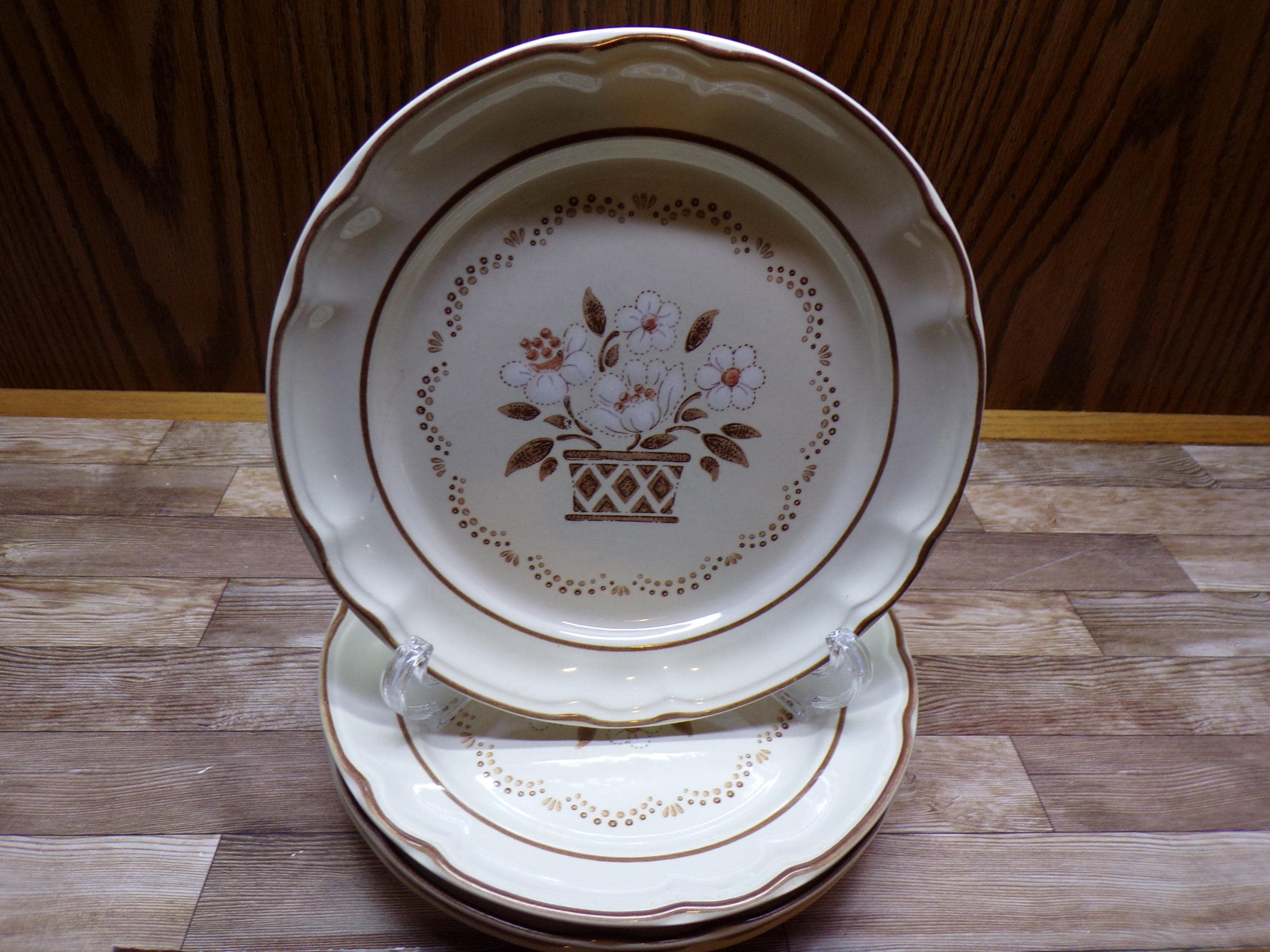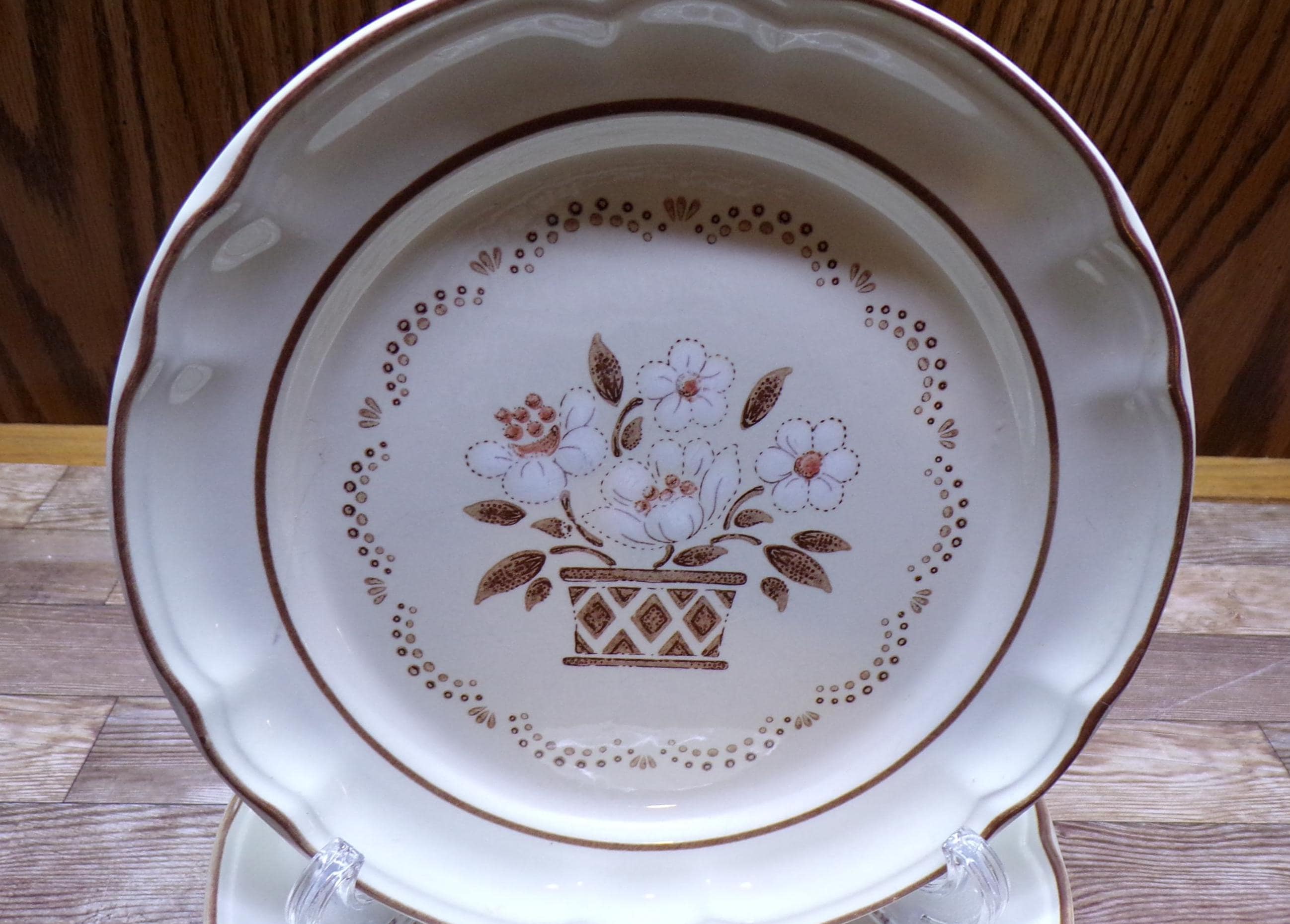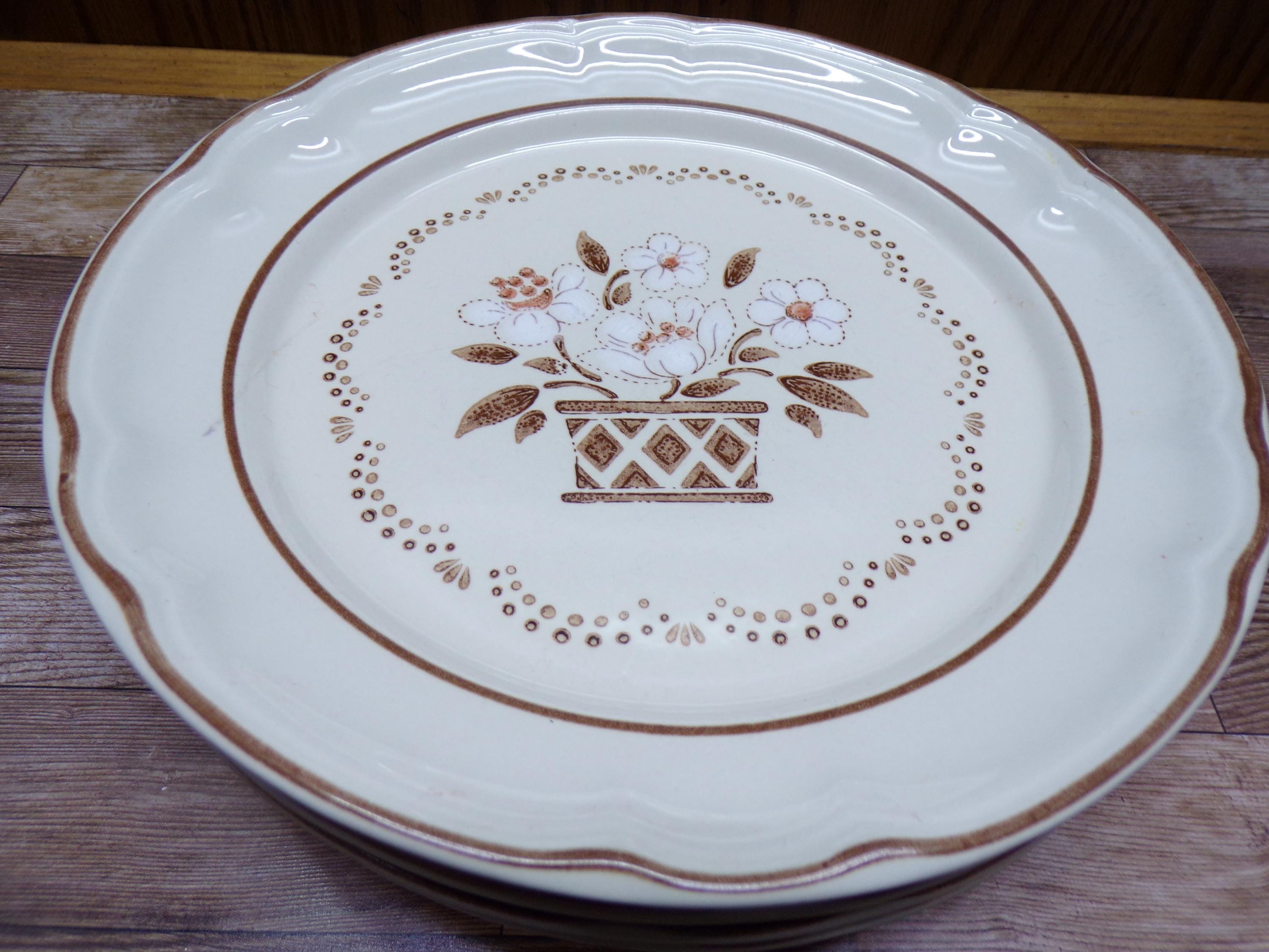 2509 Vintage Cumberland Stoneware By Hearthside Mayblossom Brown 7.75" Salad / Snack Plates Set of 4 - Good Condition