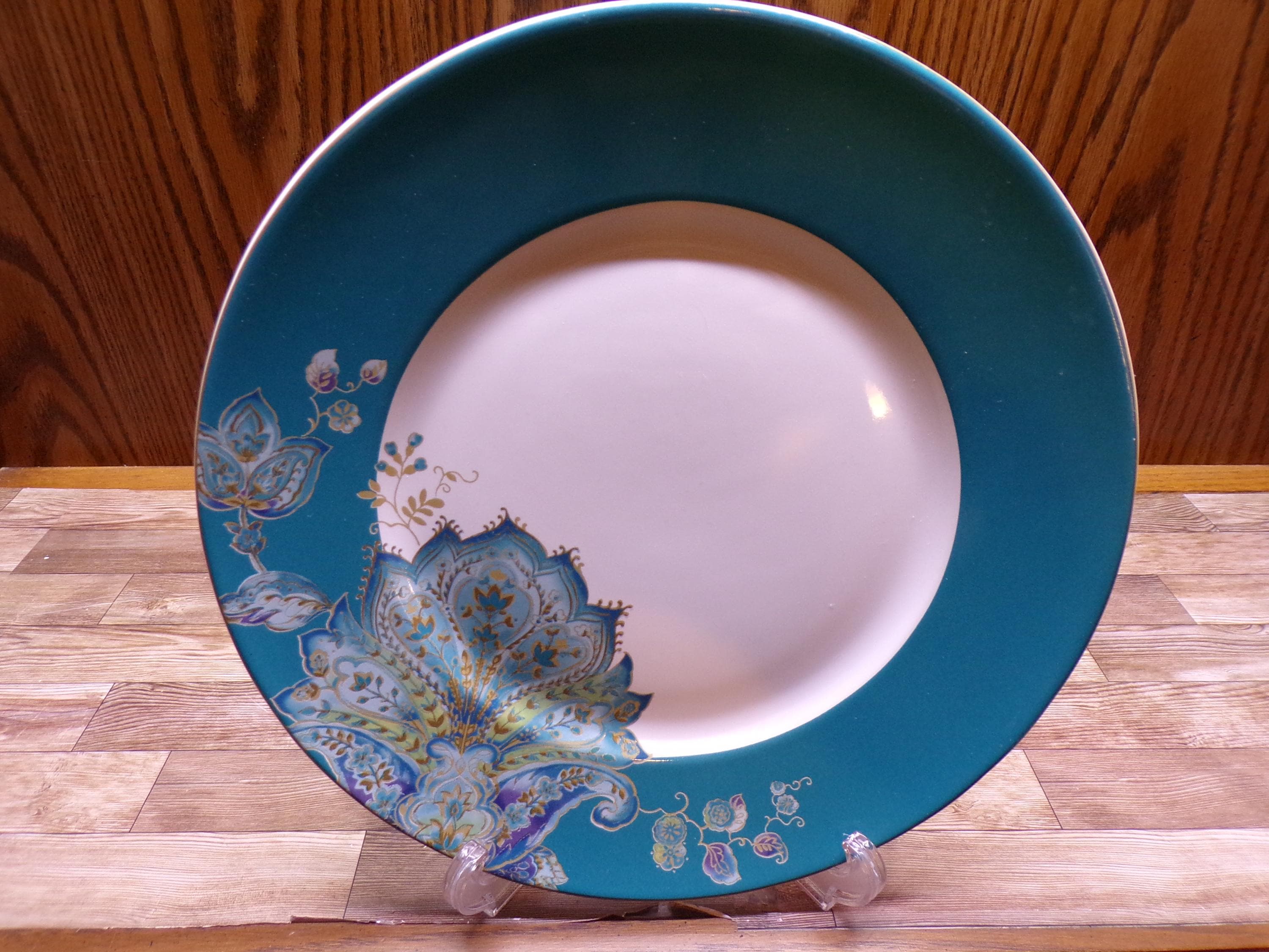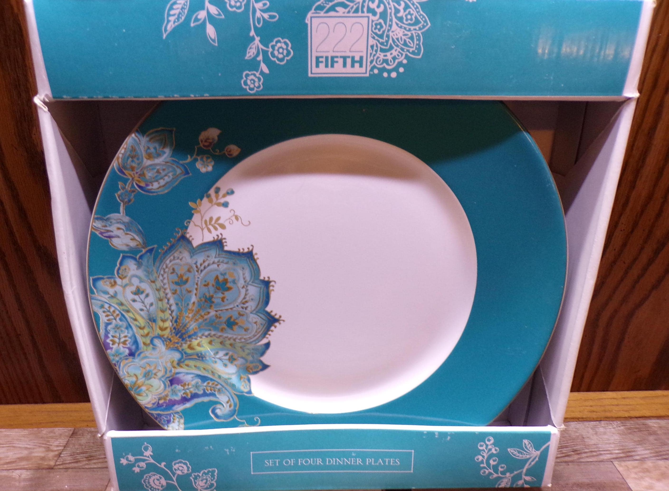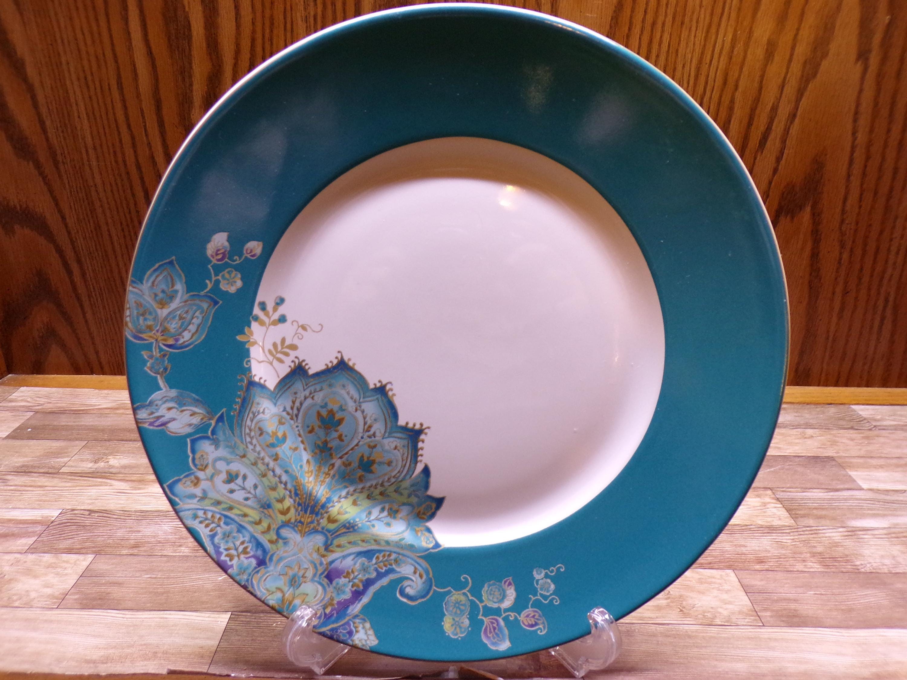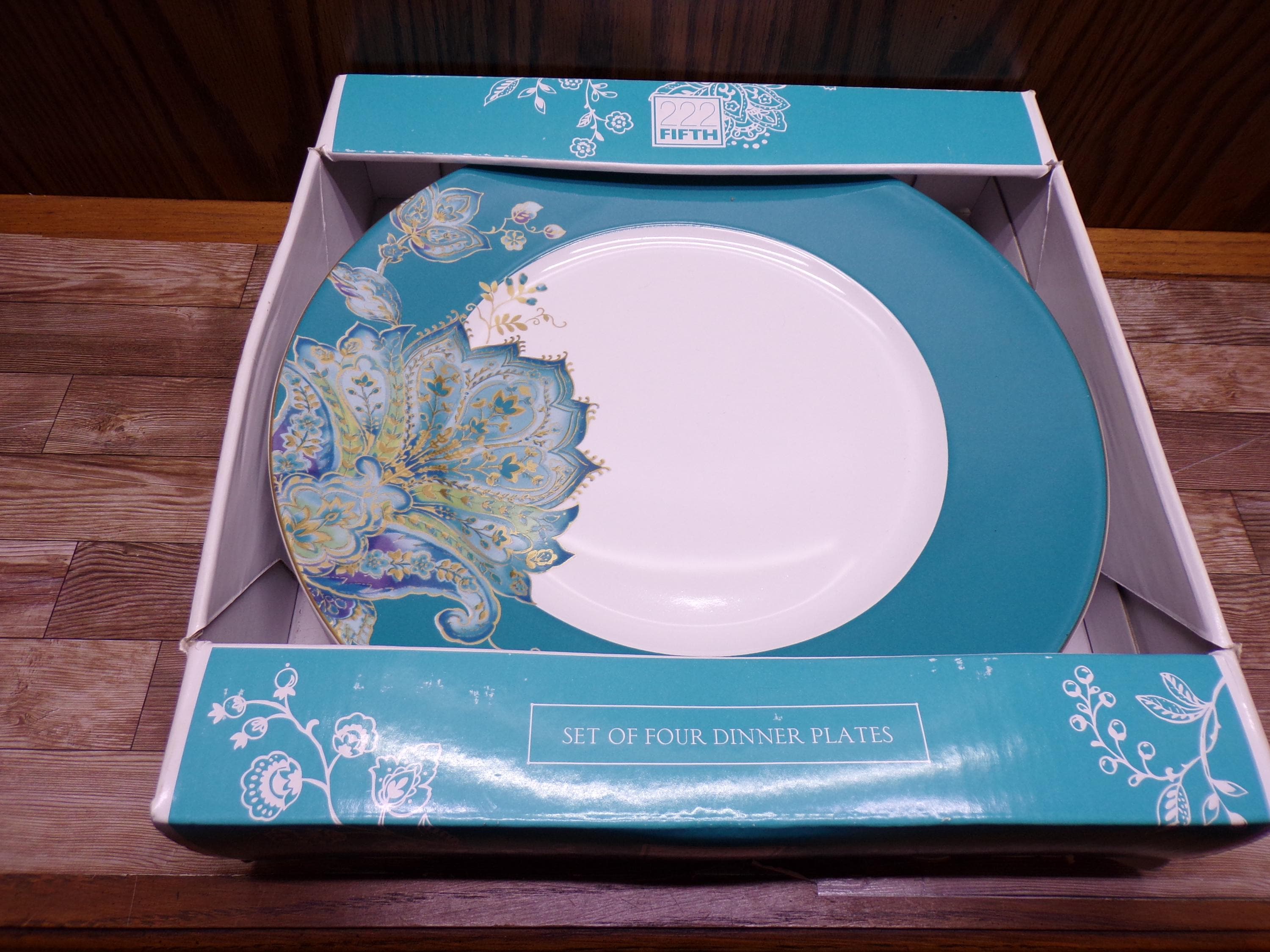 2509 222 Fifth Norah Teal 10.75" Dinner Plates Set of 4 Beautiful - Excellent Condition in Original Box