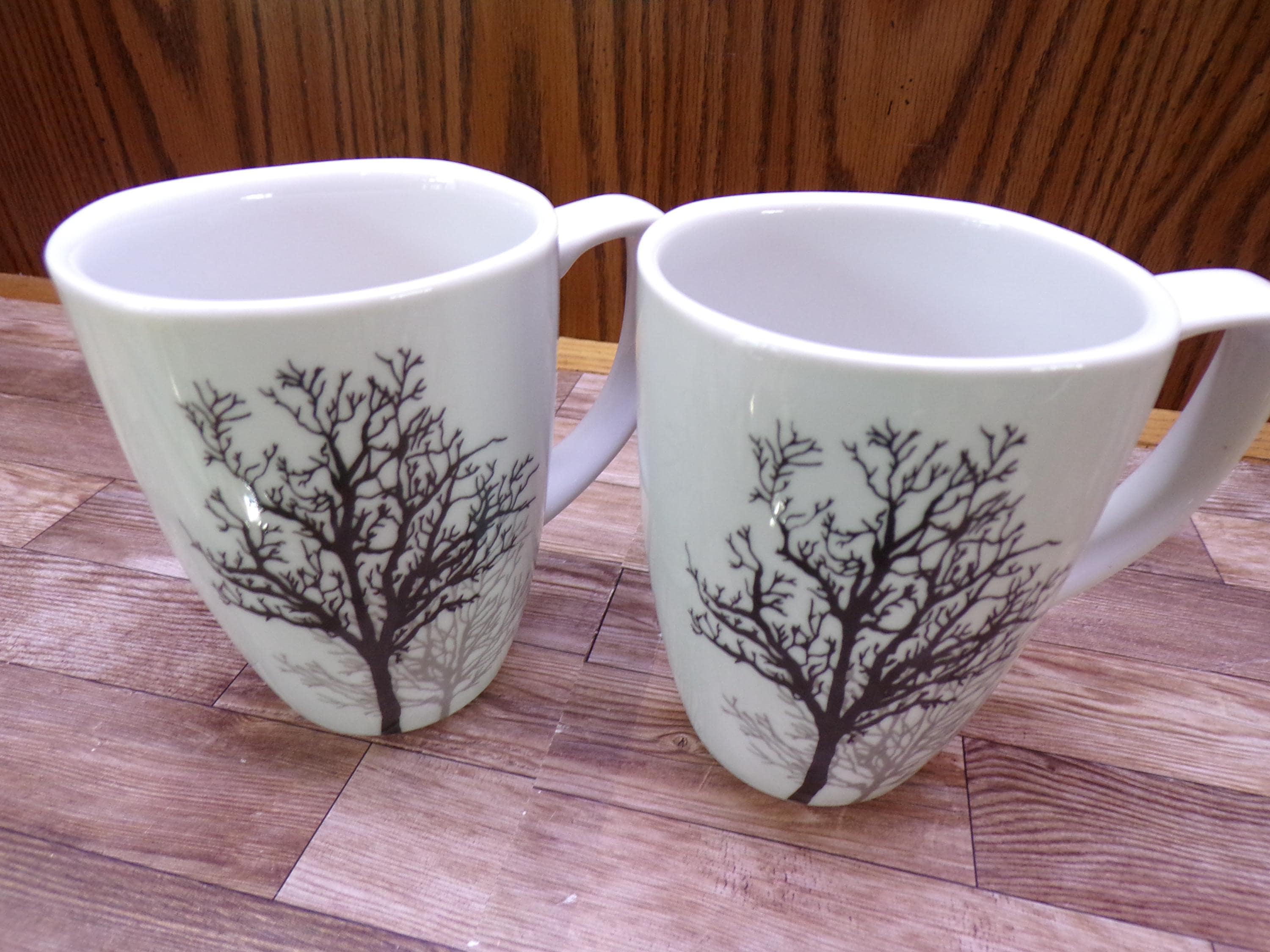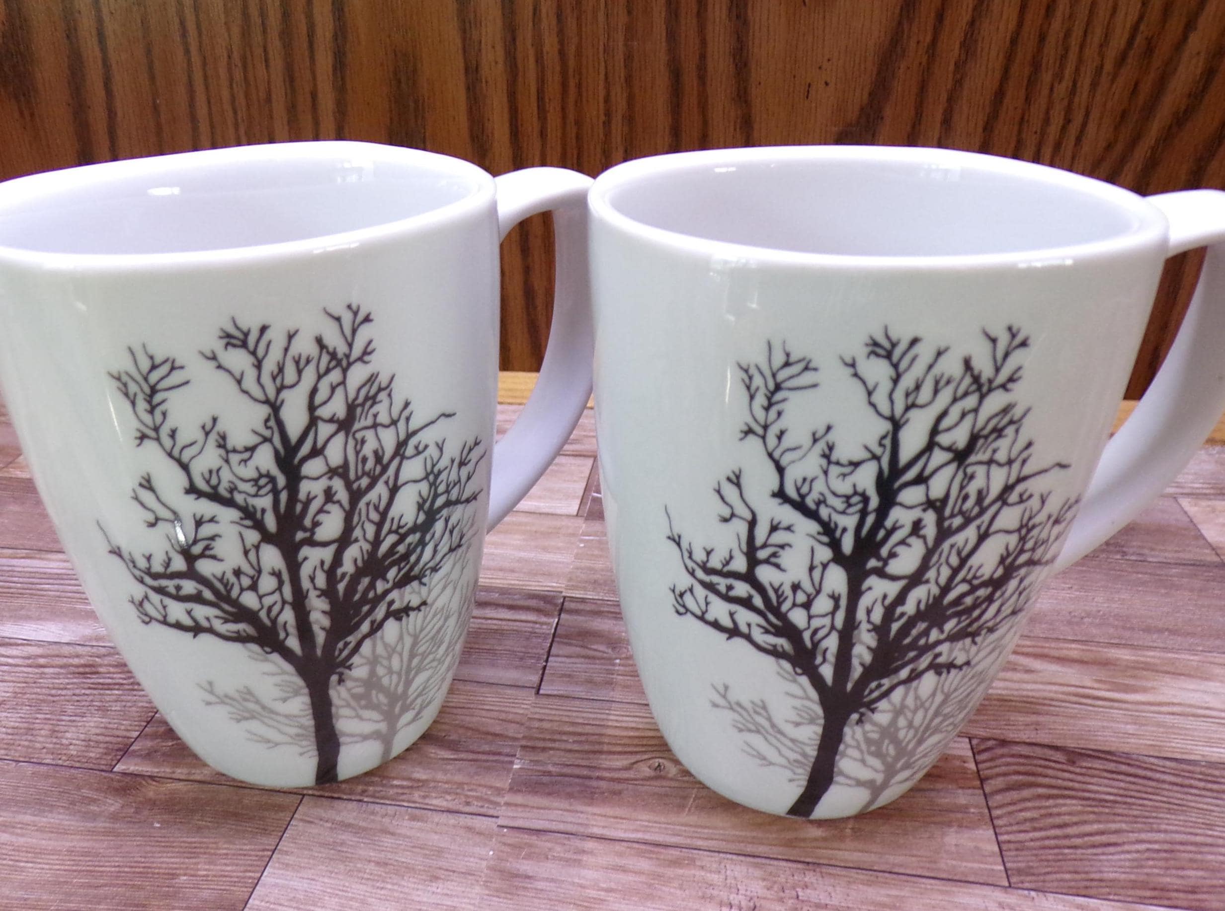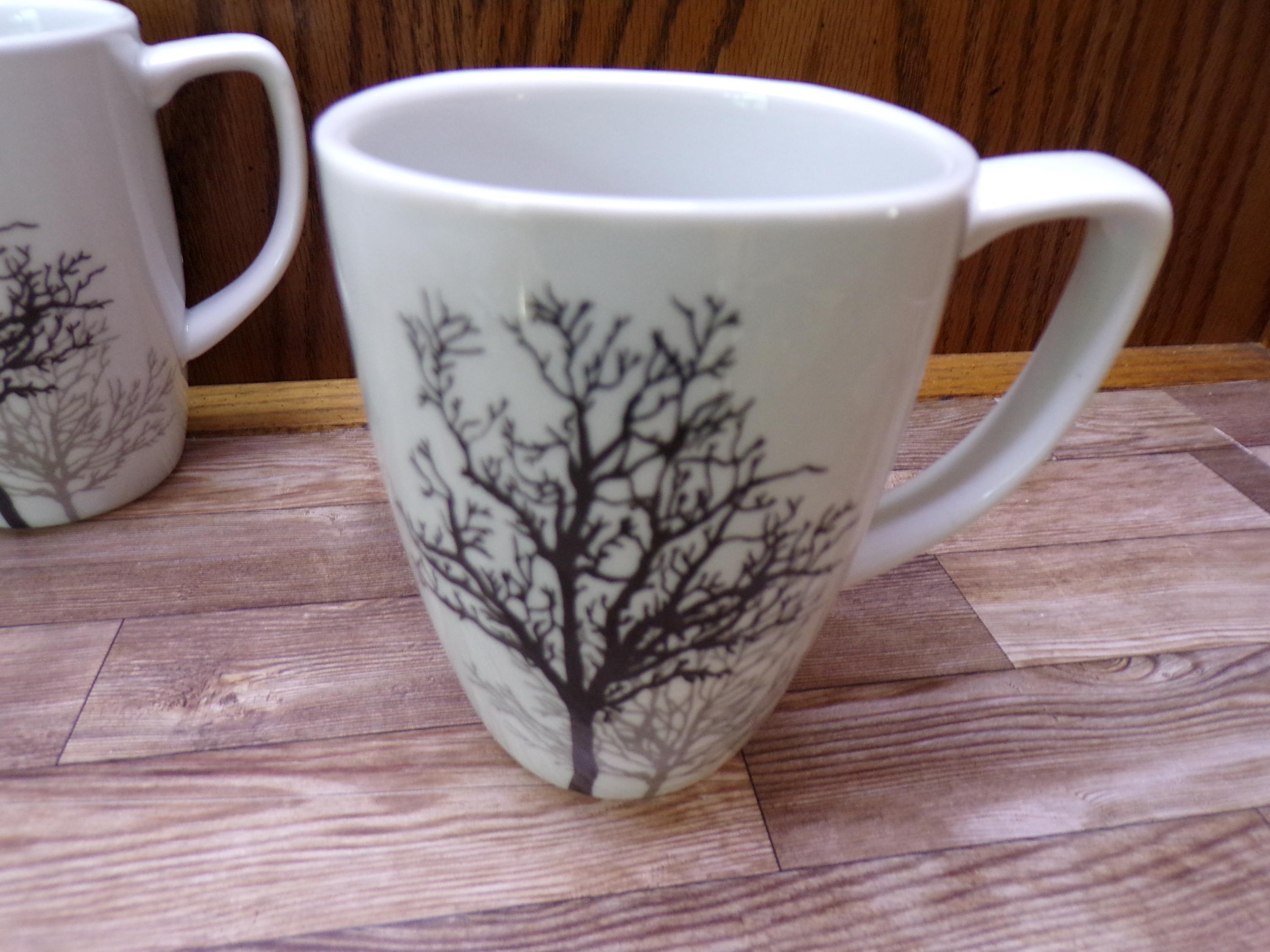 2510 Corelle Coordinates Timber Shadows 4.25" 12 oz Porcelain Mugs Set of 2 - Great Condition
