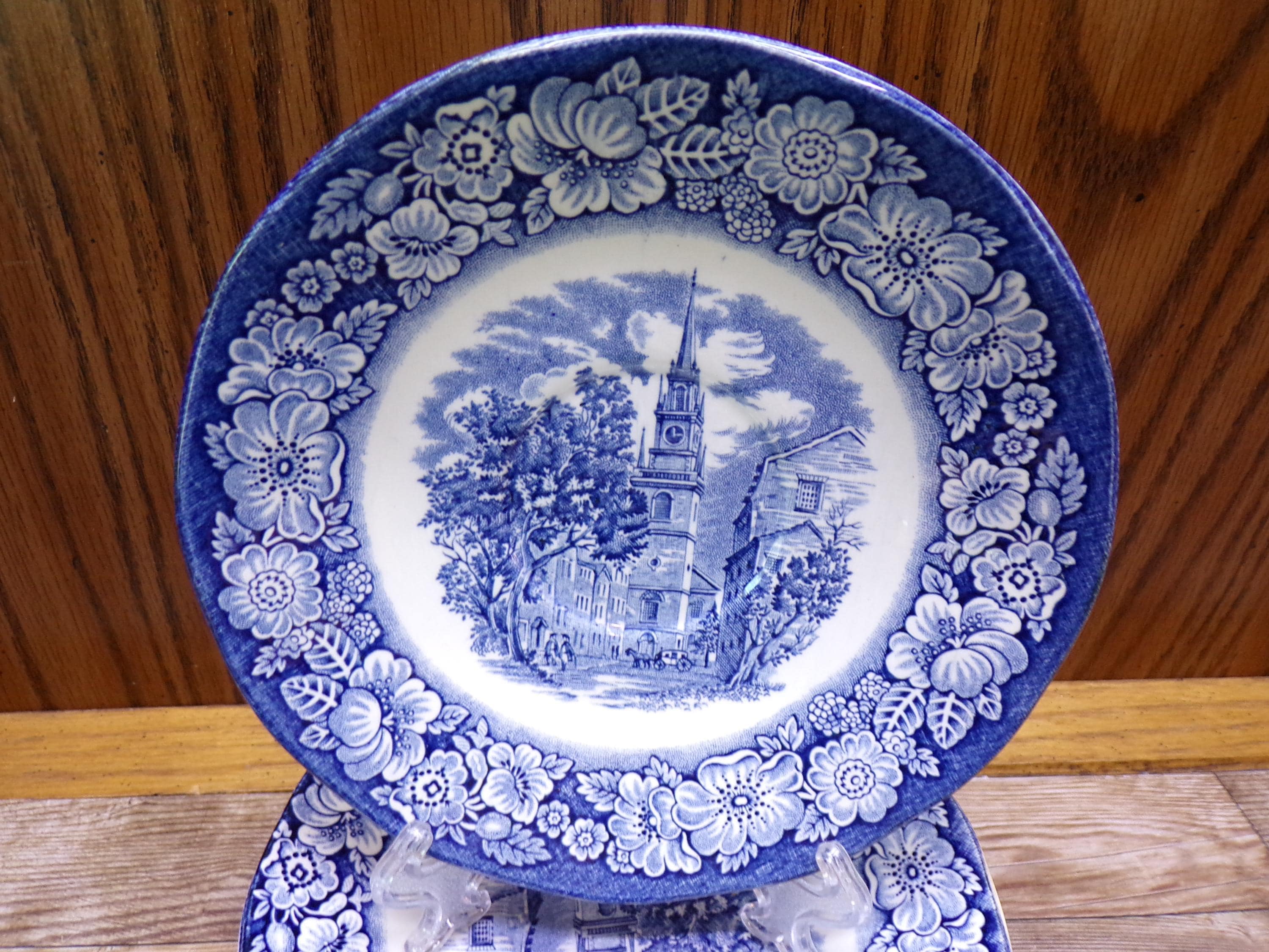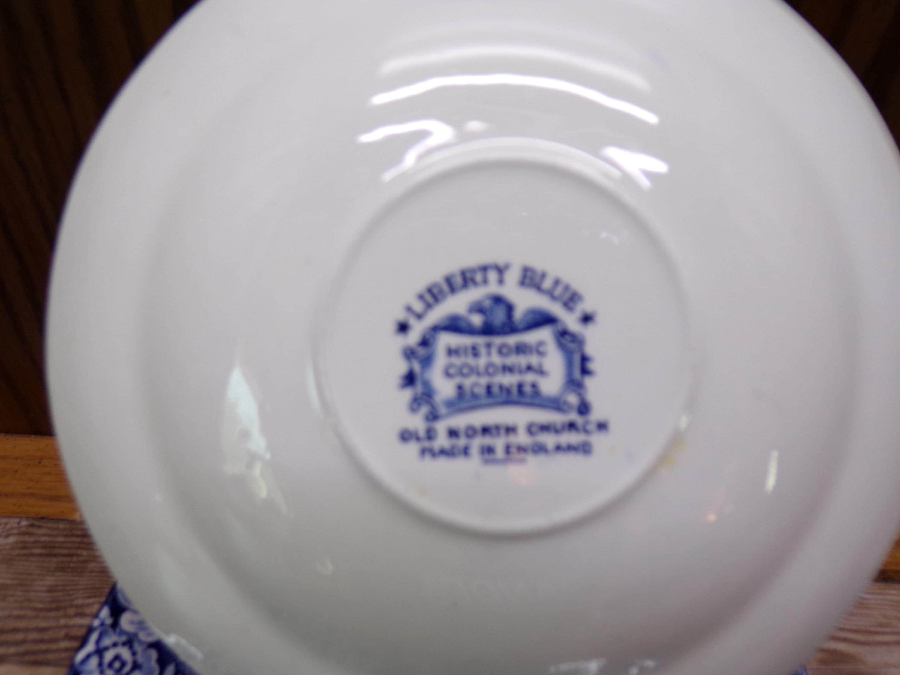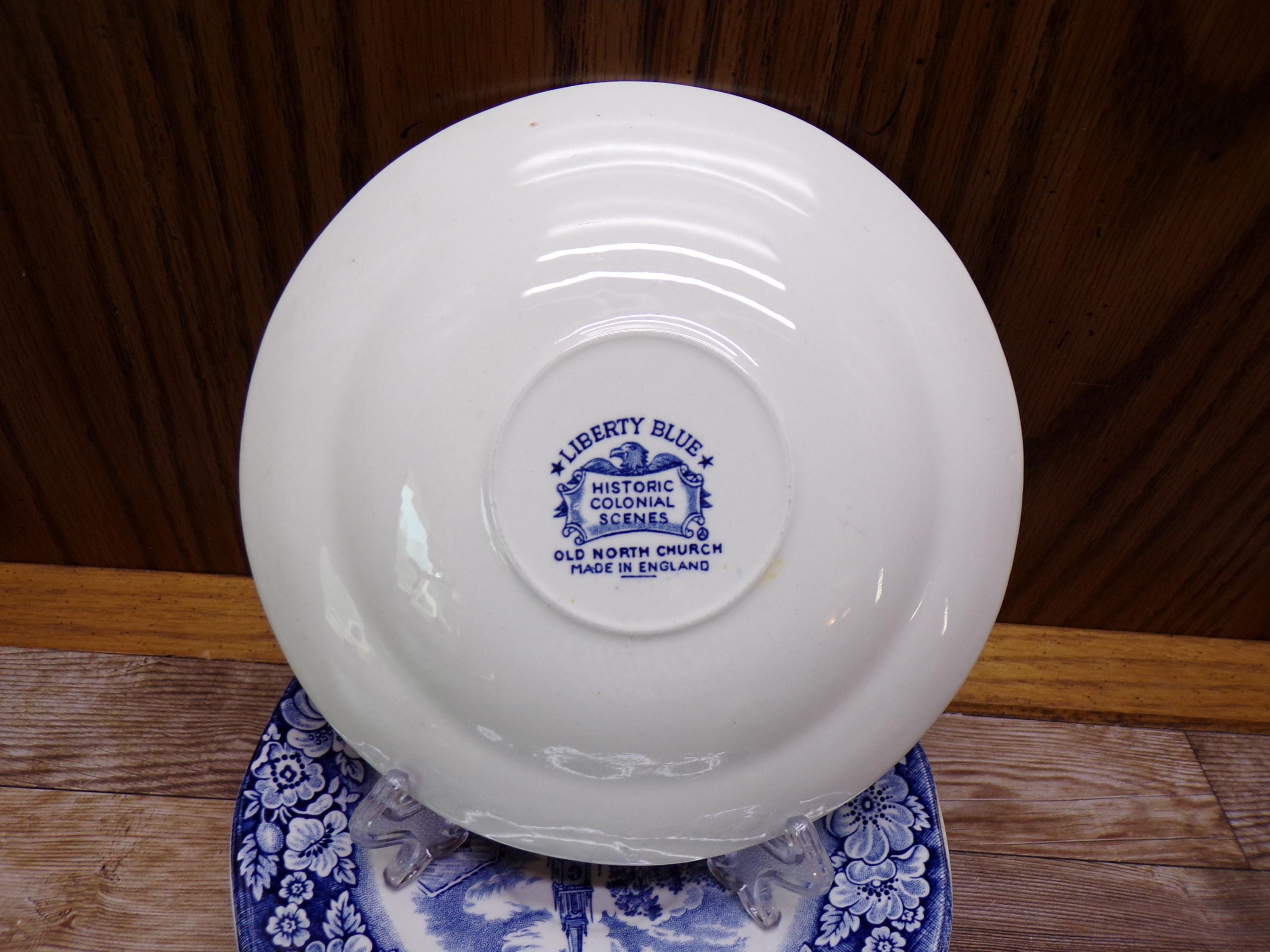 2506 Staffordshire Ironstone Liberty Blue Historic Colonial Scenes Old North Church 5.5" Saucer Bowls Set of 5 Made in England - Great Condition
