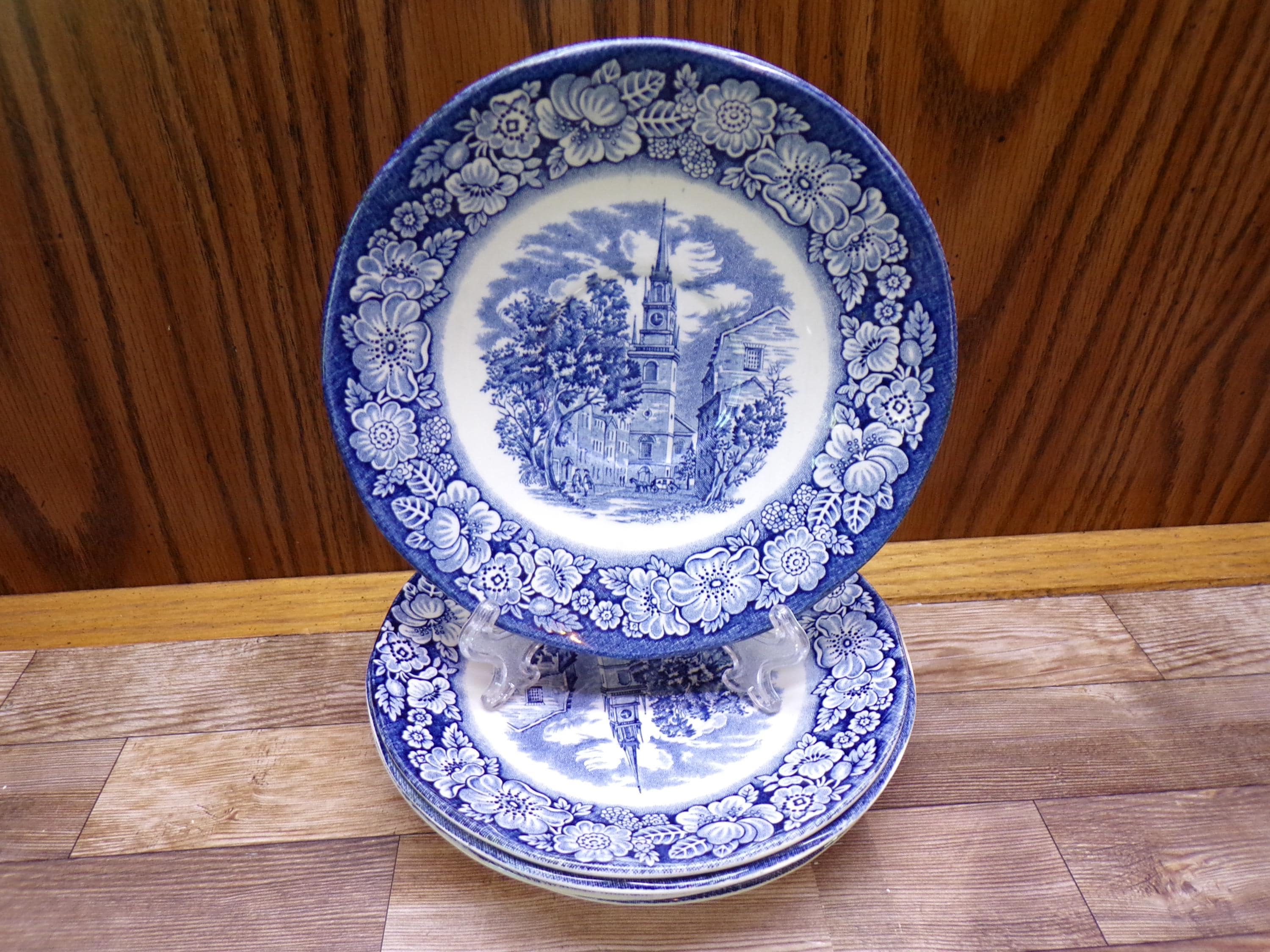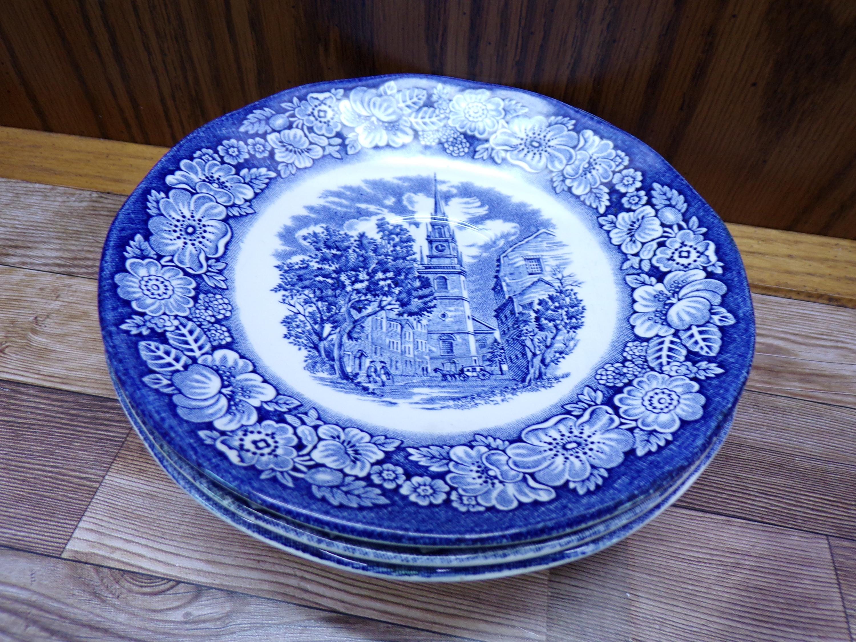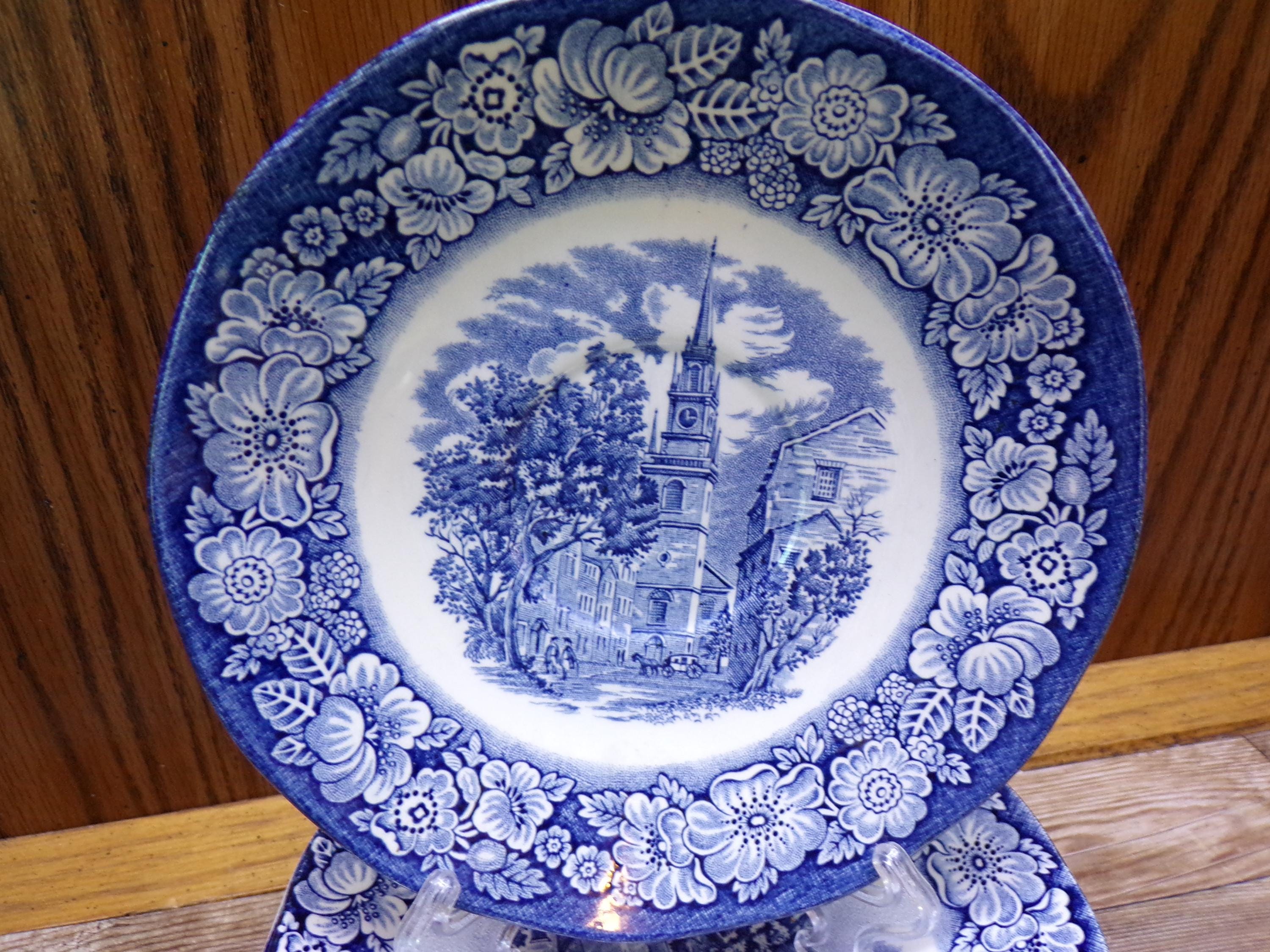 2506 Staffordshire Ironstone Liberty Blue Historic Colonial Scenes Old North Church 5.5" Saucer Bowls Set of 5 Made in England - Great Condition