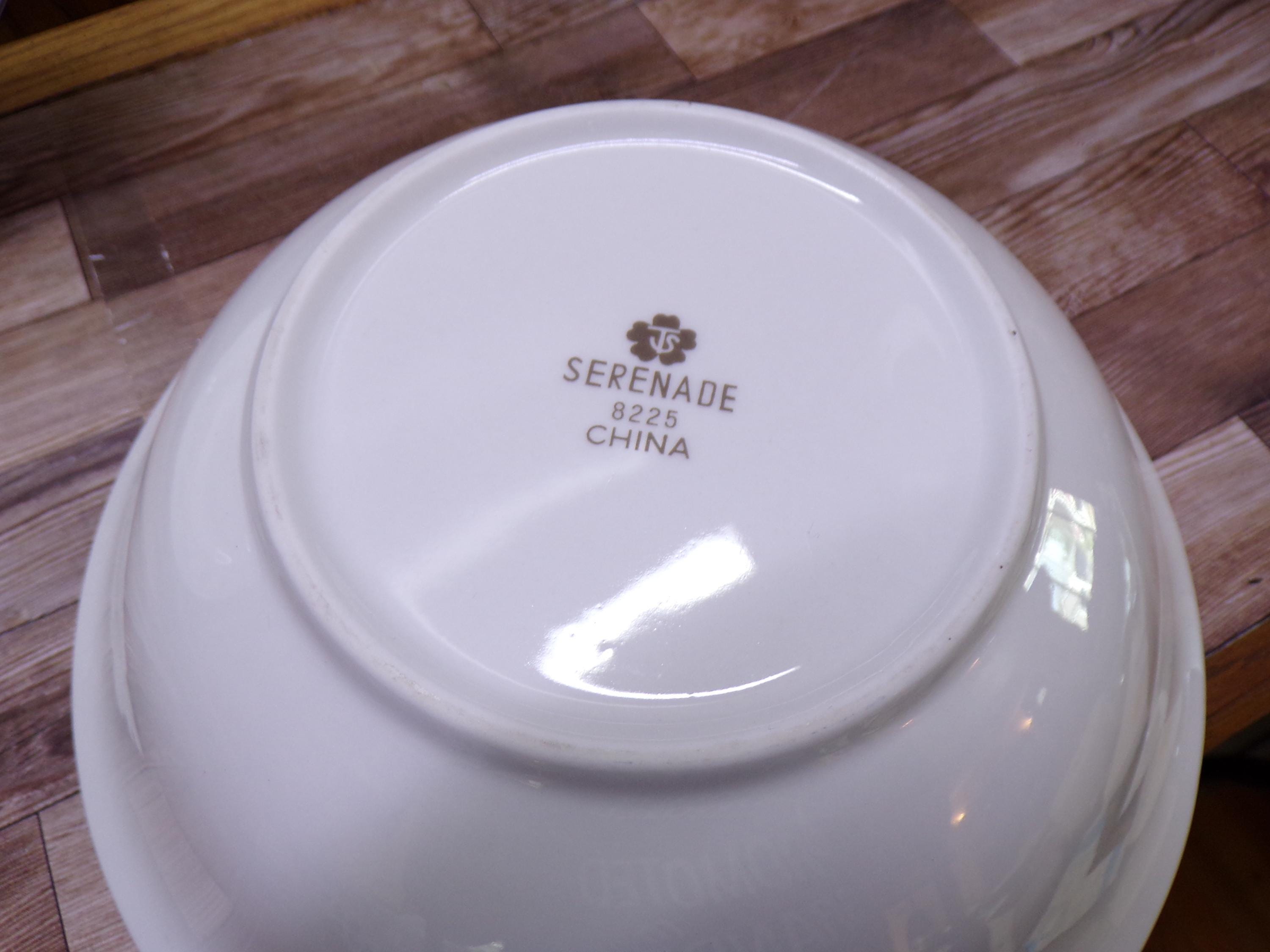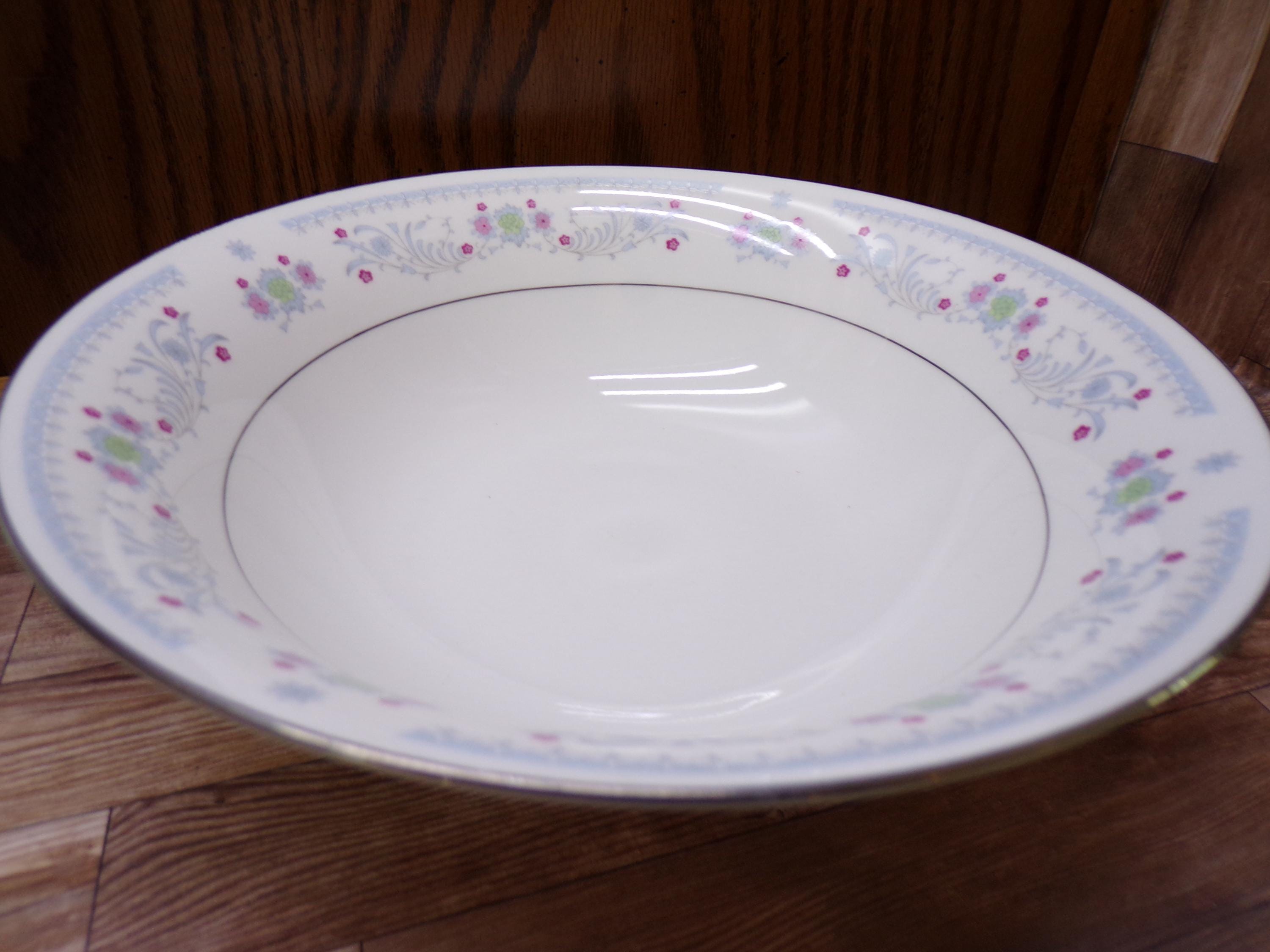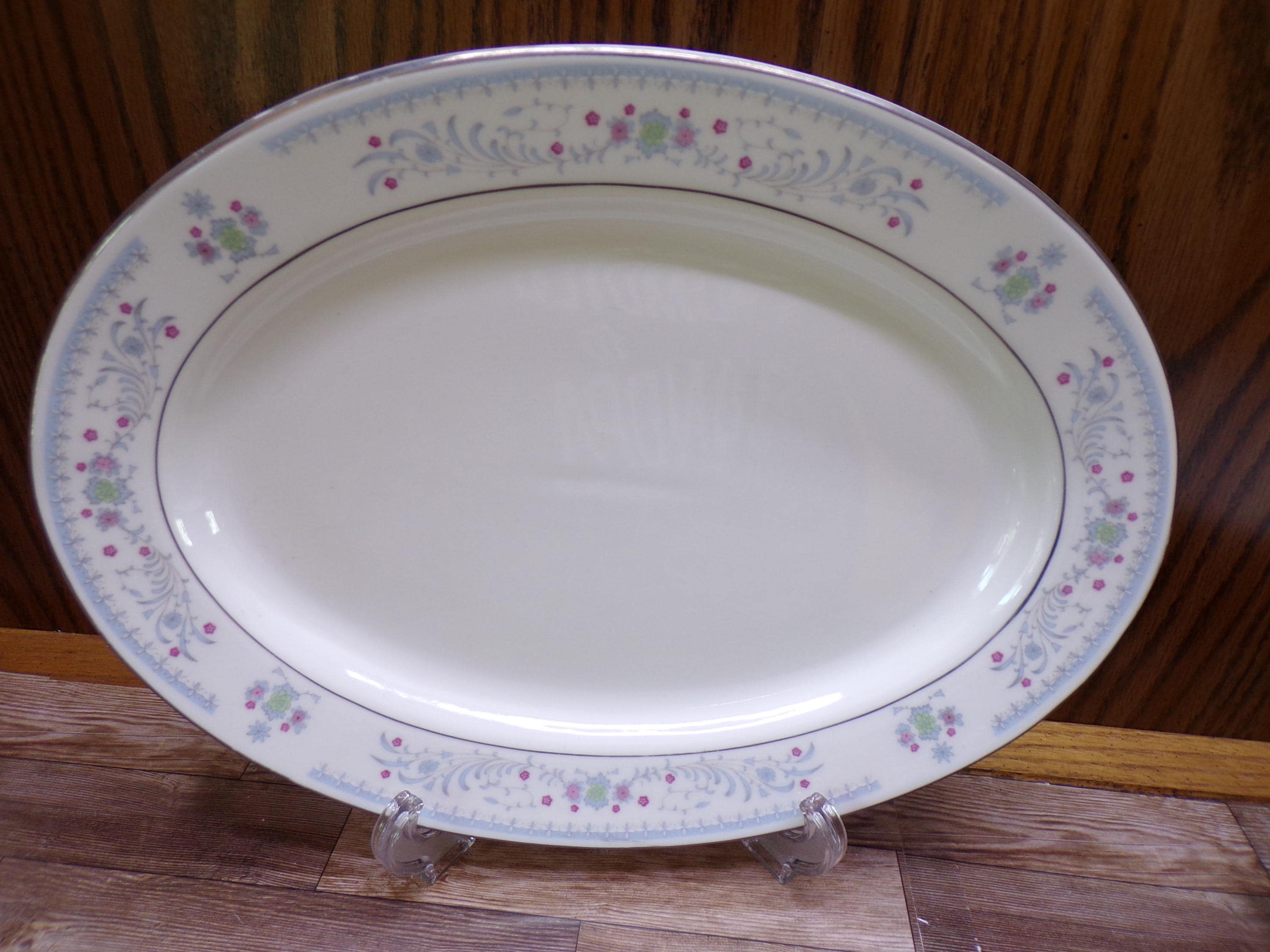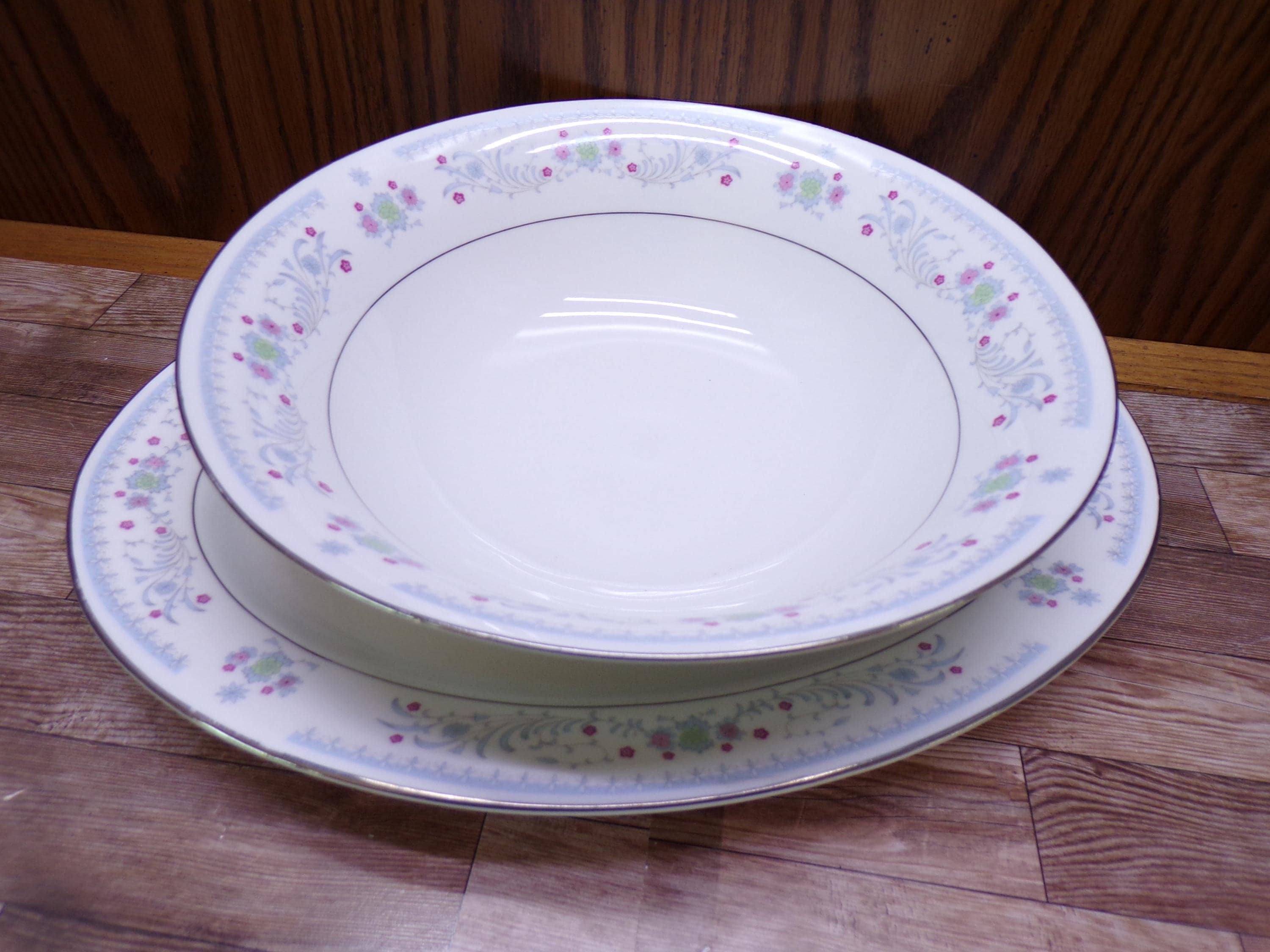 2510 Sango Serenade #8225 Fine China Platinum Rim Floral Pattern 12" x 9" Oval Platter & 9" Round Bowl - Great Condition