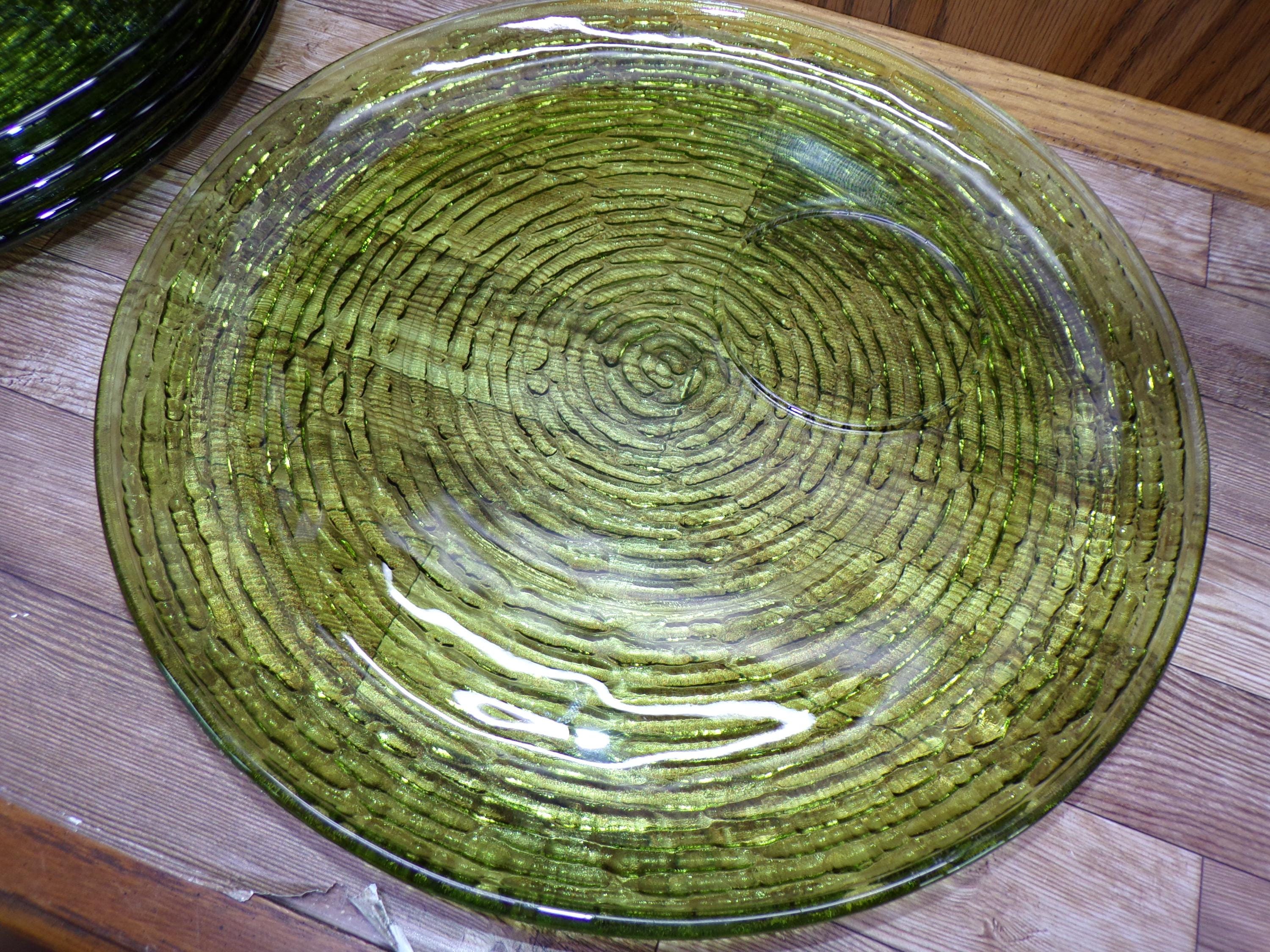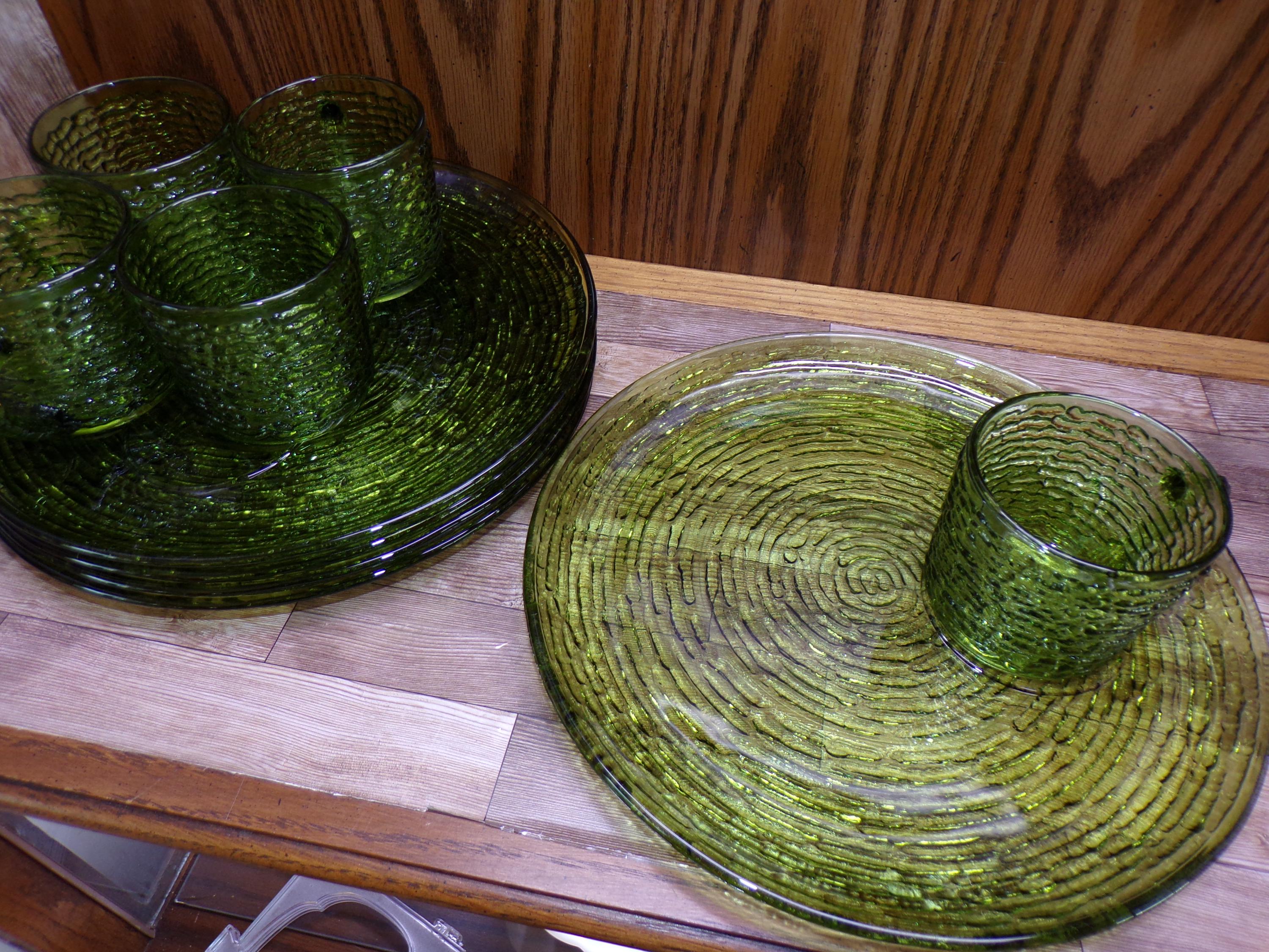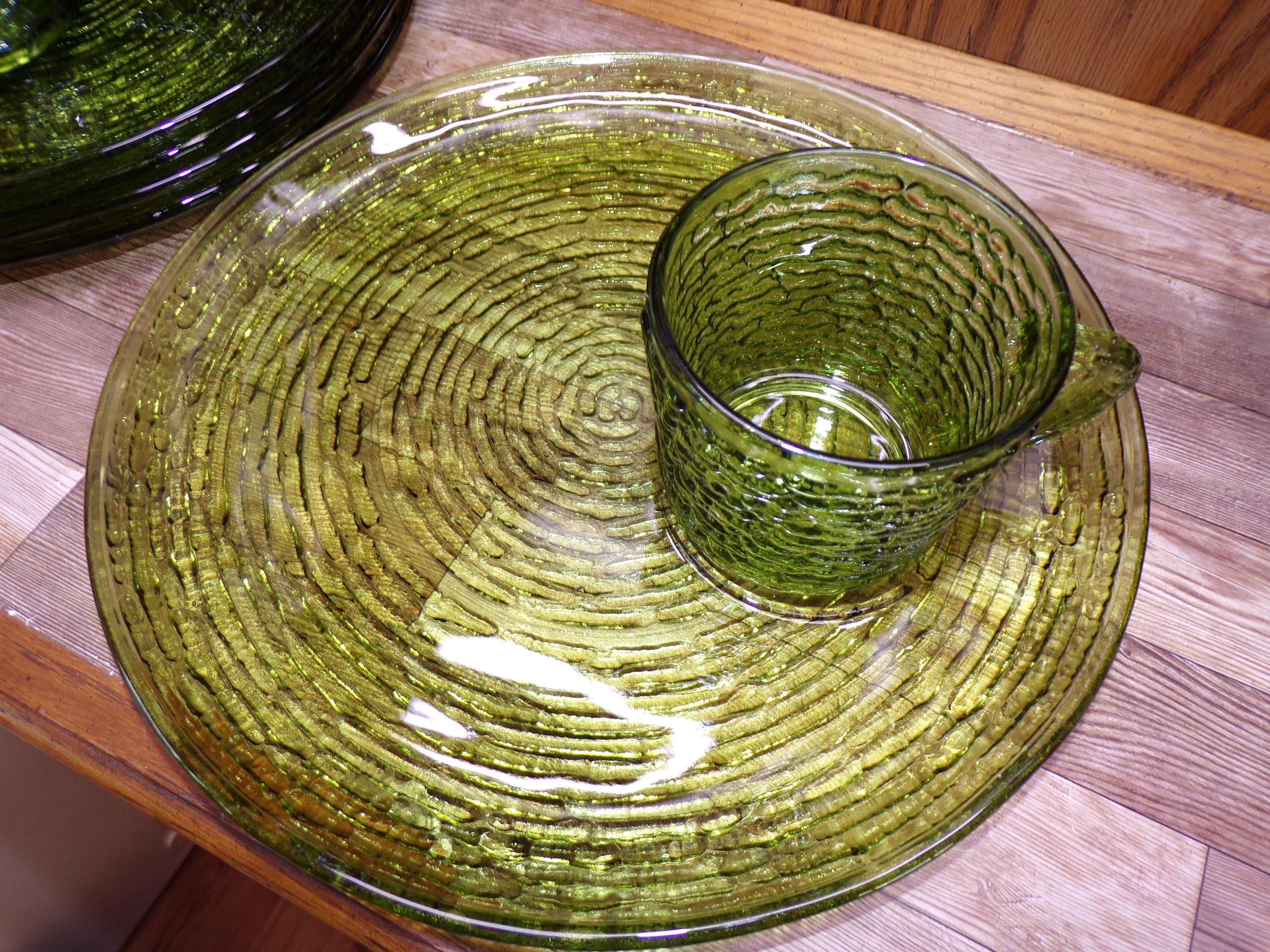 2510 Anchor Hocking Vintage 1960's Avocado Green Soreno 8 pc Snack Set (4) 10" Plates & (4) Matching Cups - Great Condition