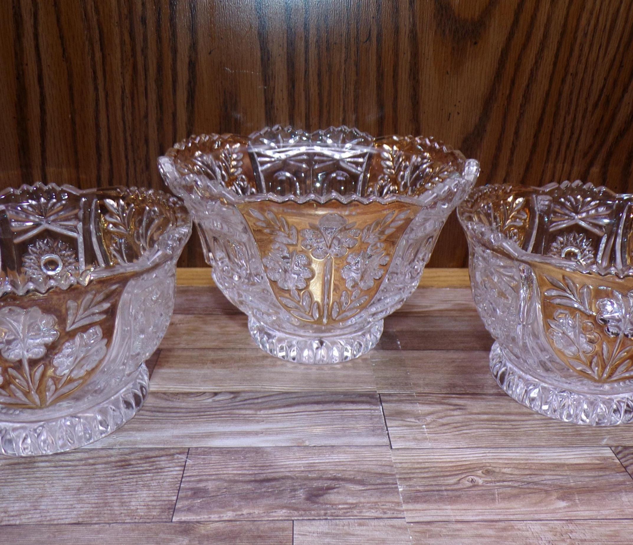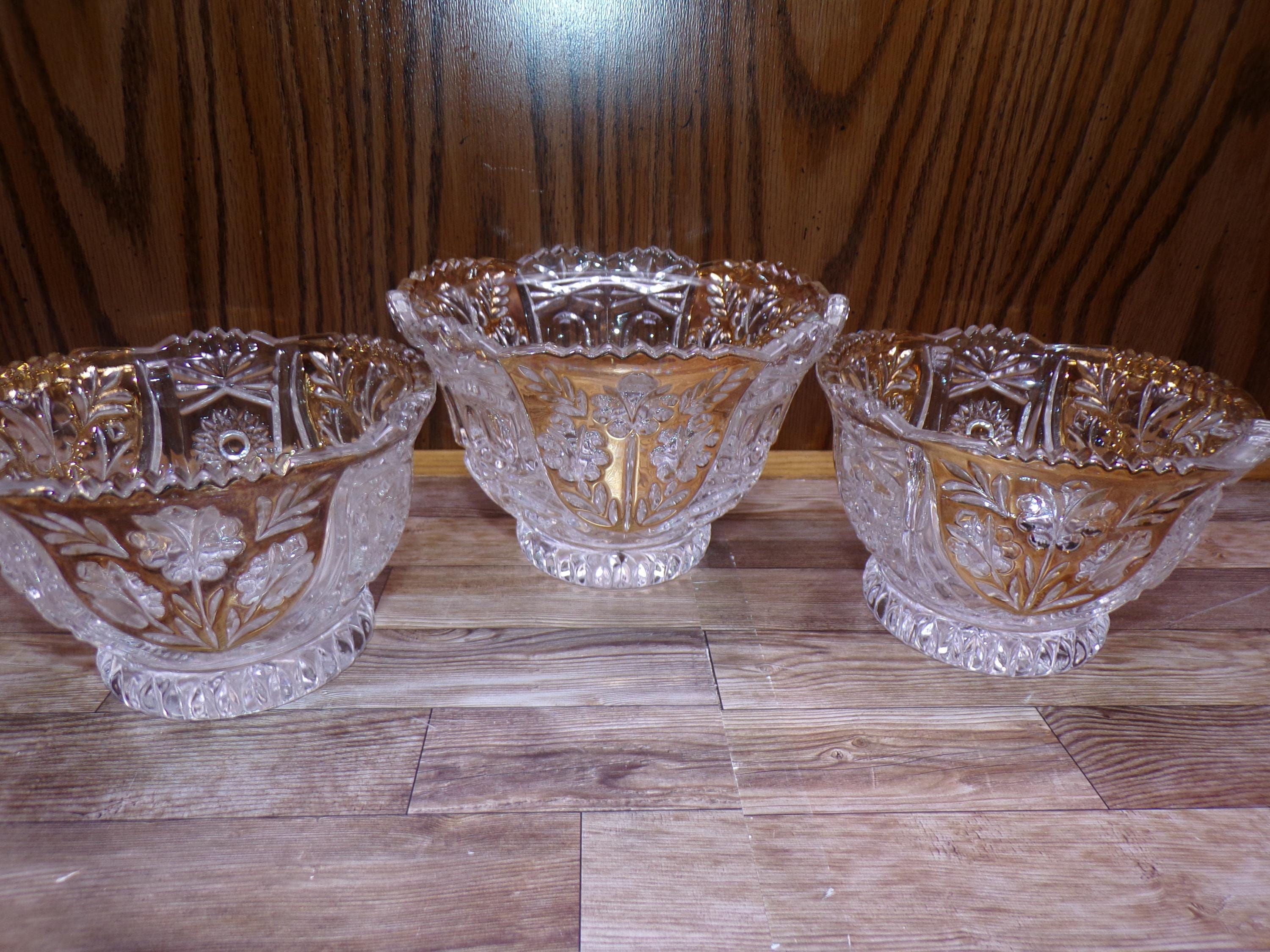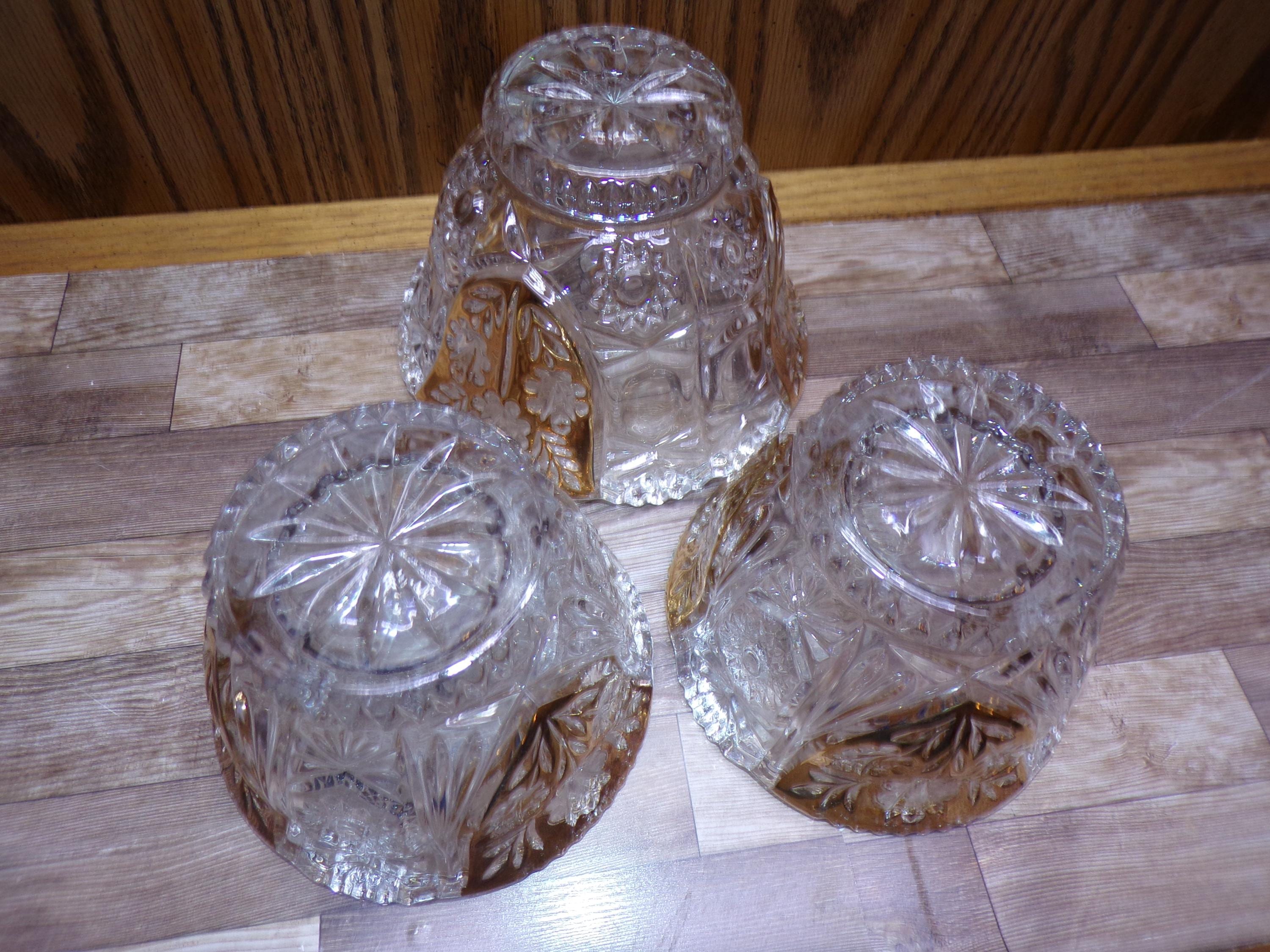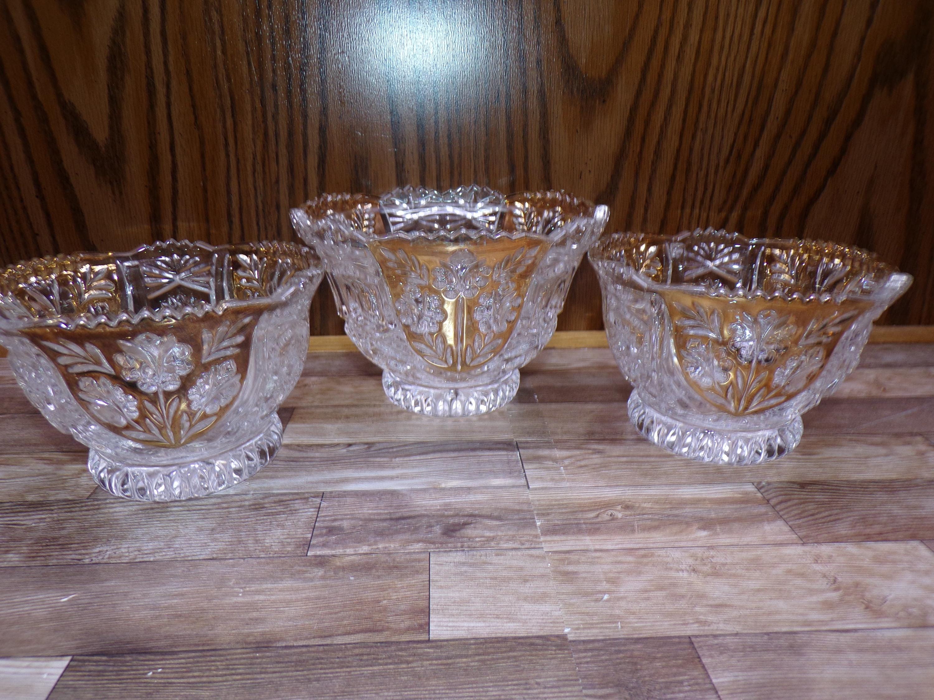 2510 Anna Hutte Bleikristall 24% Lead Crystal Set of 3 Vintage Footed Bowls (1) 6" & (2) 5" Clear with Gold Accents - Great Condition