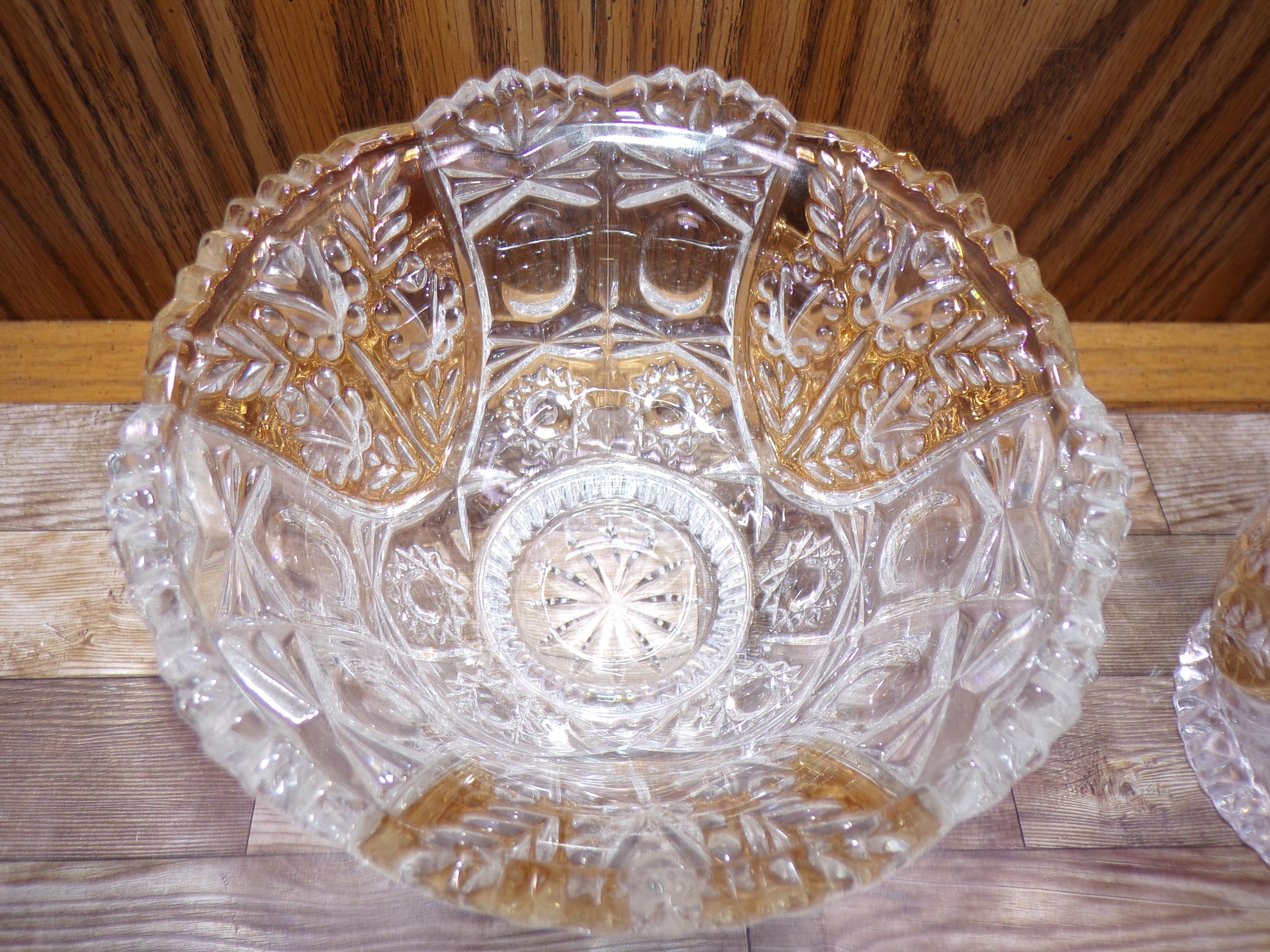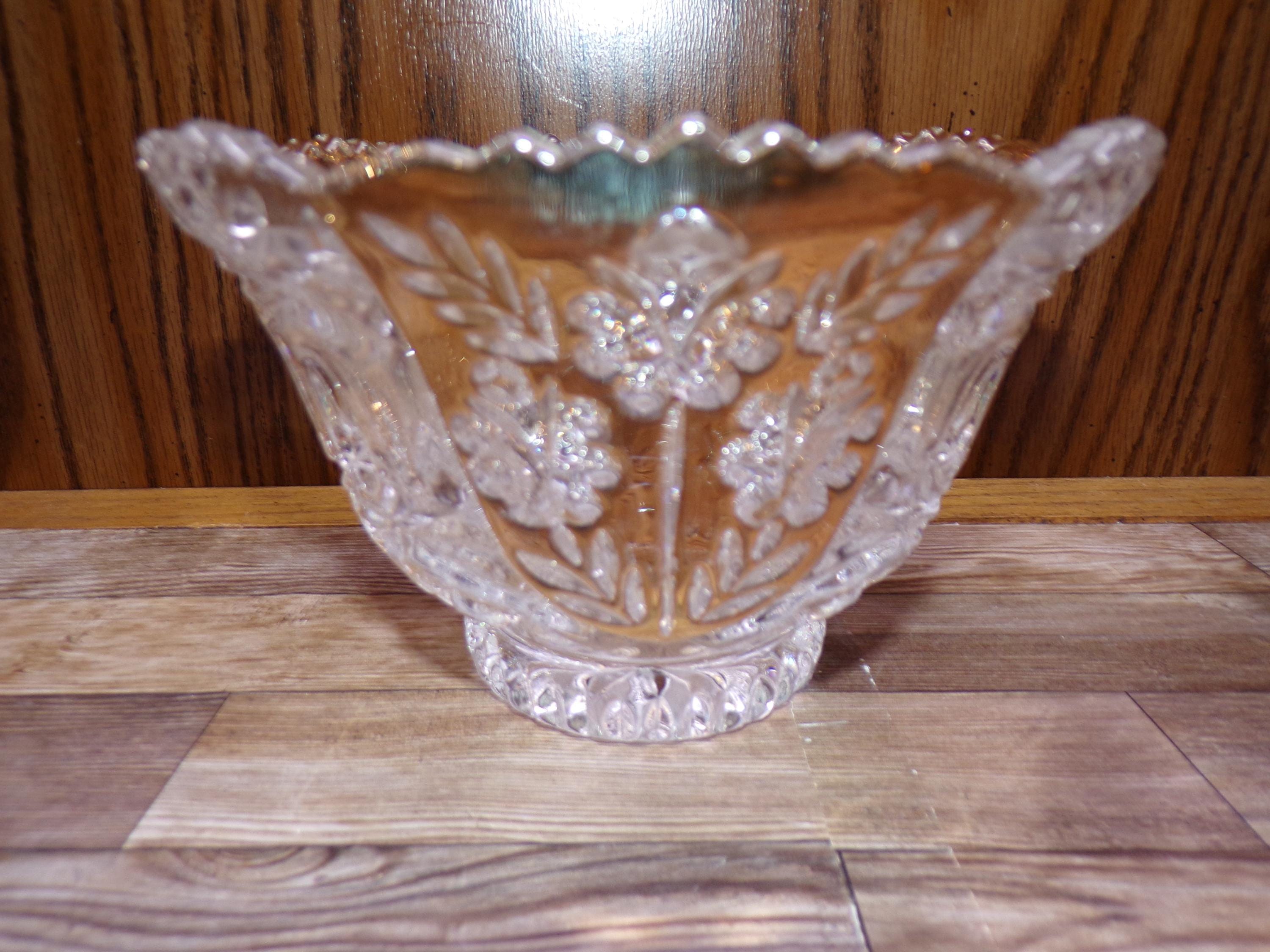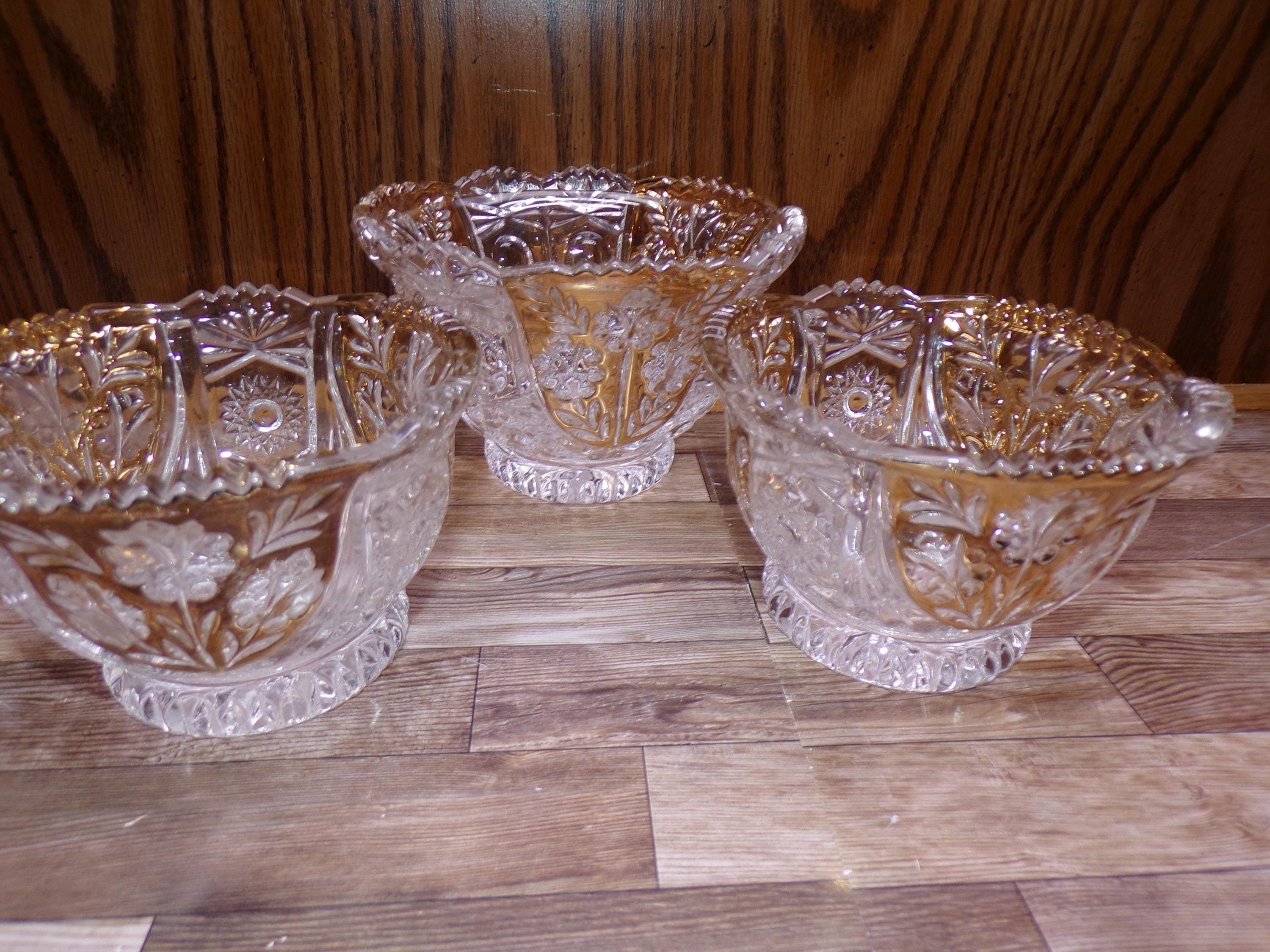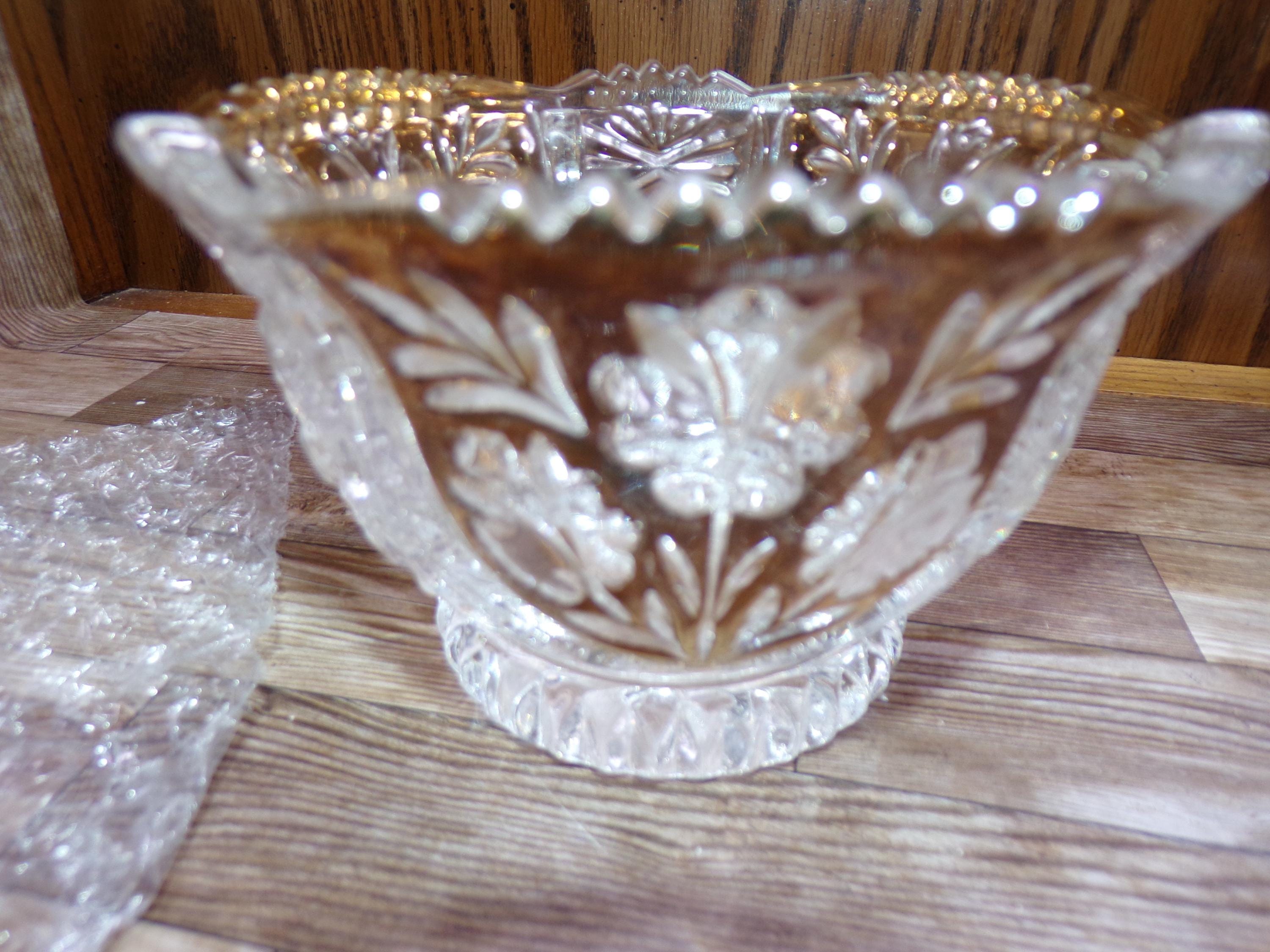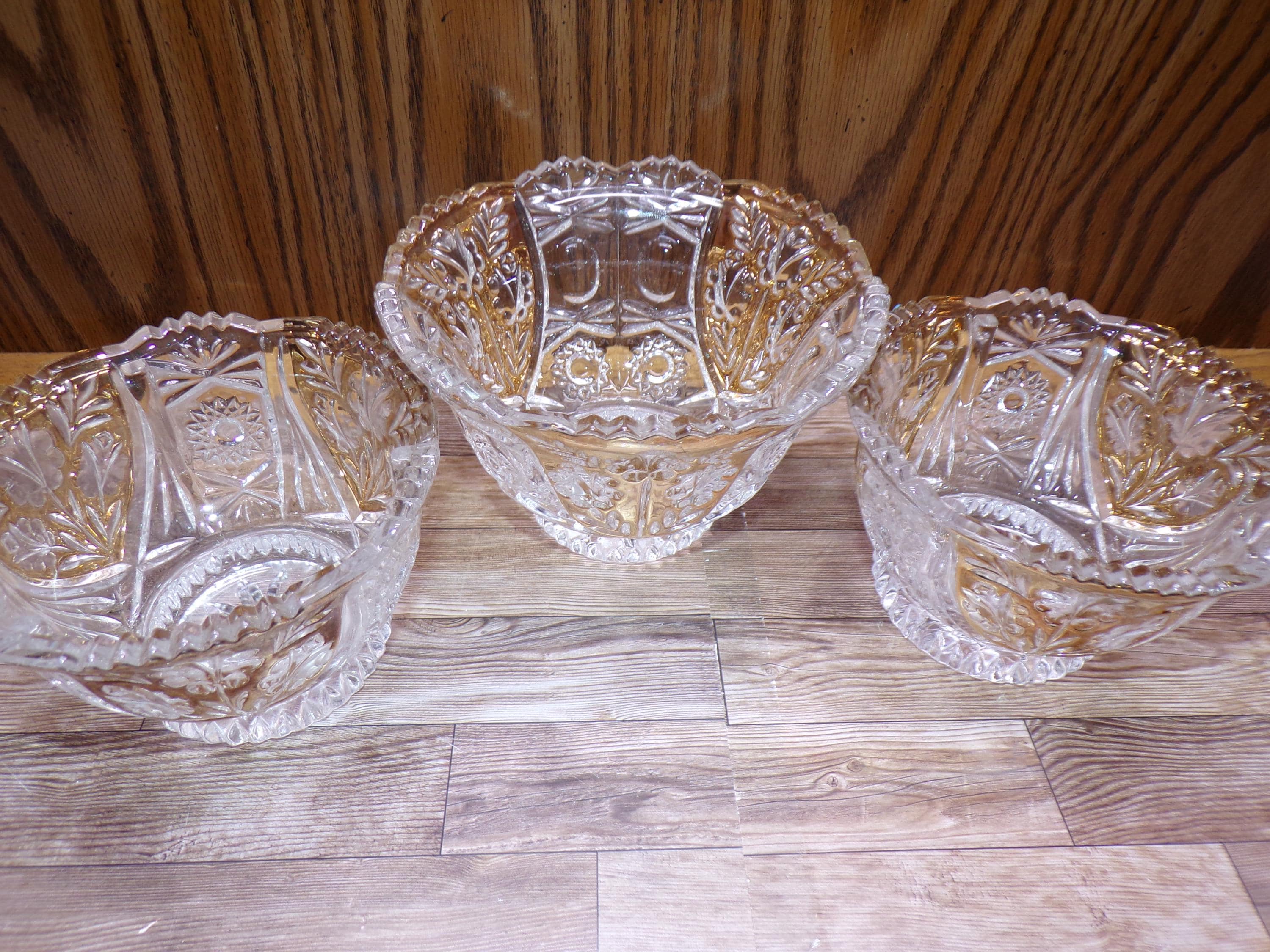 2510 Anna Hutte Bleikristall 24% Lead Crystal Set of 3 Vintage Footed Bowls (1) 6" & (2) 5" Clear with Gold Accents - Great Condition