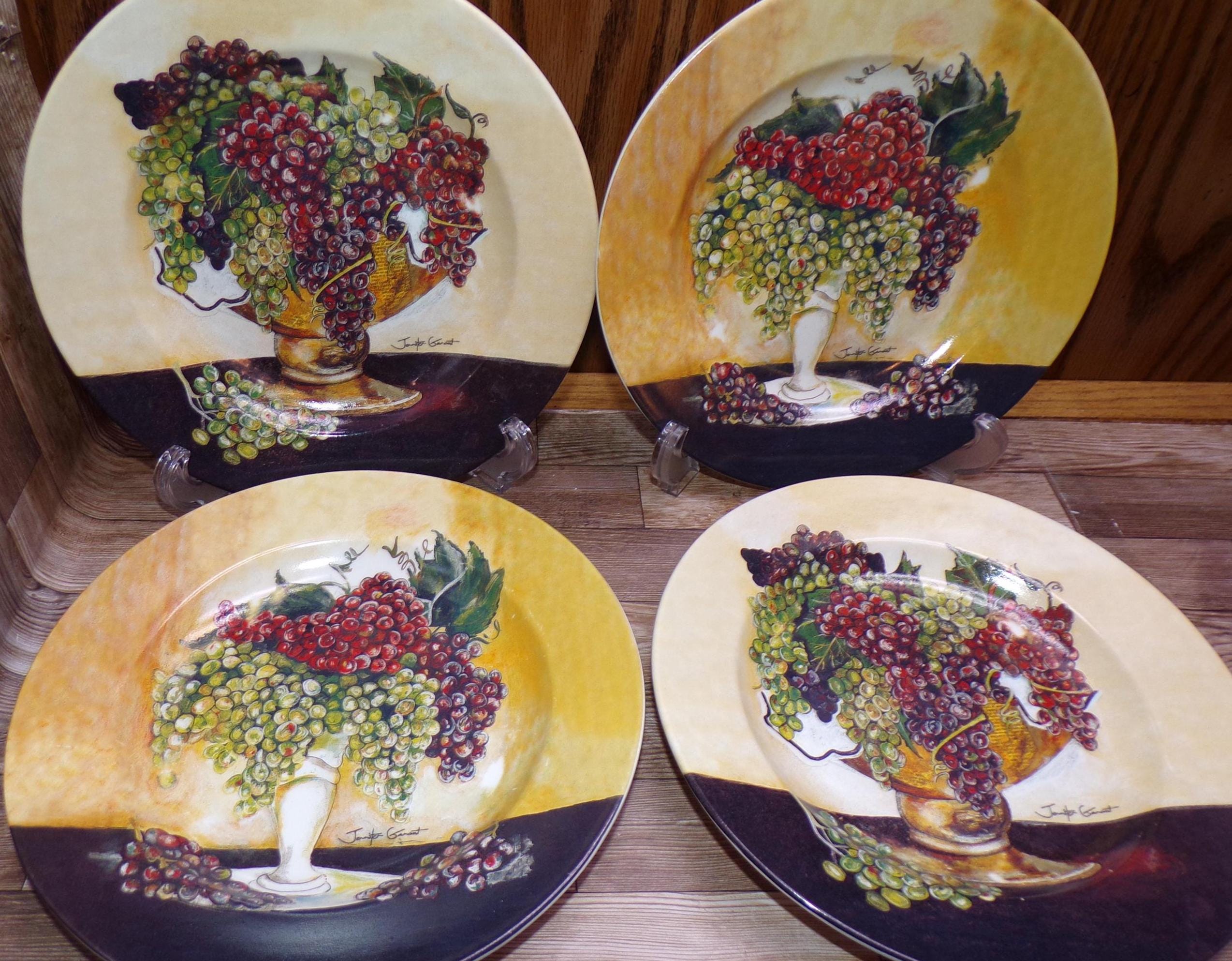 2501 Cypress Home The Grapes of Wine 8" Snack / Lunch Plates Set of 4 - Great Condition