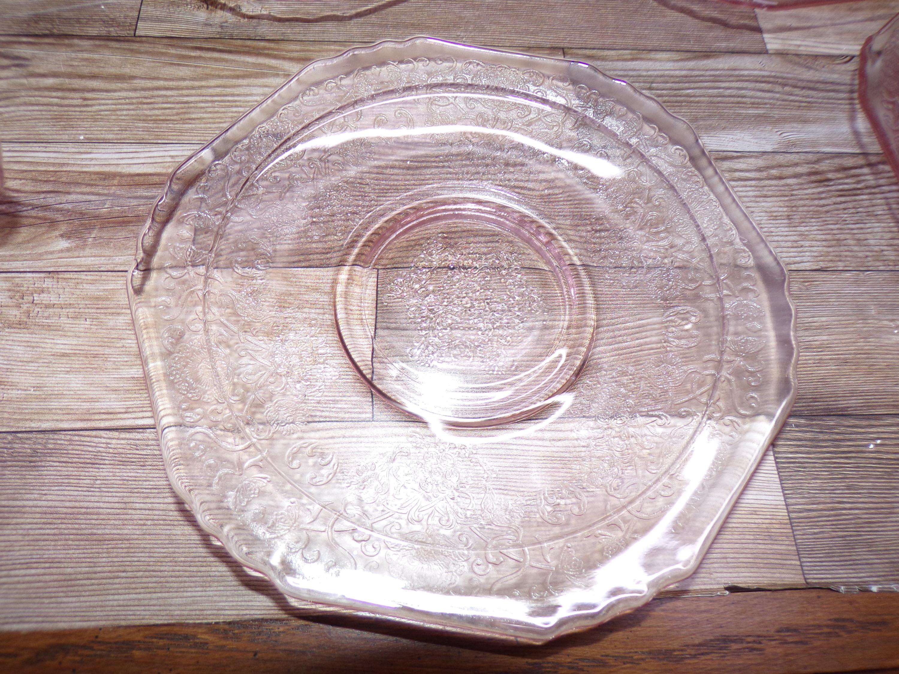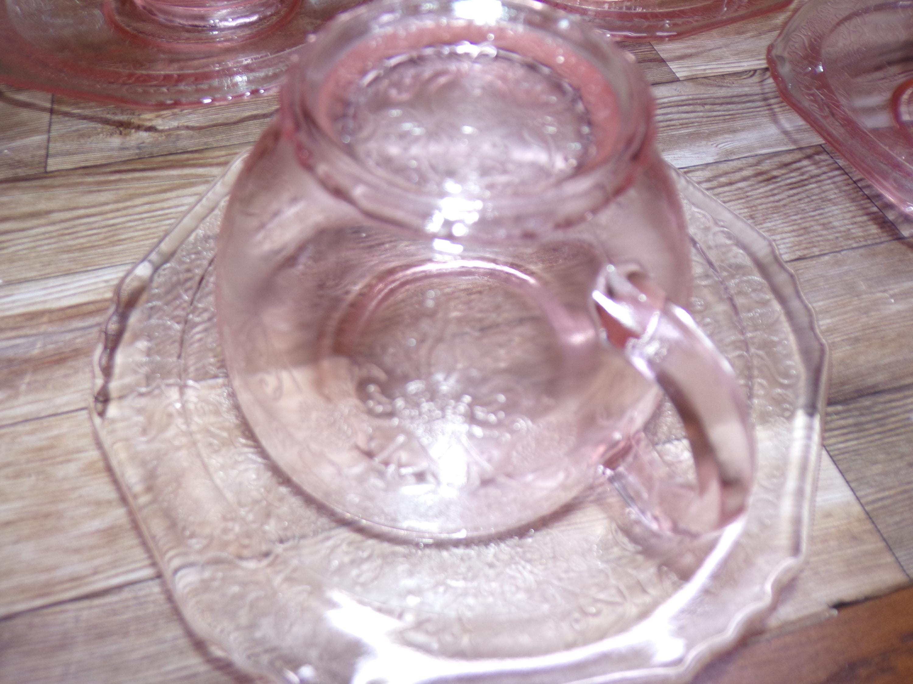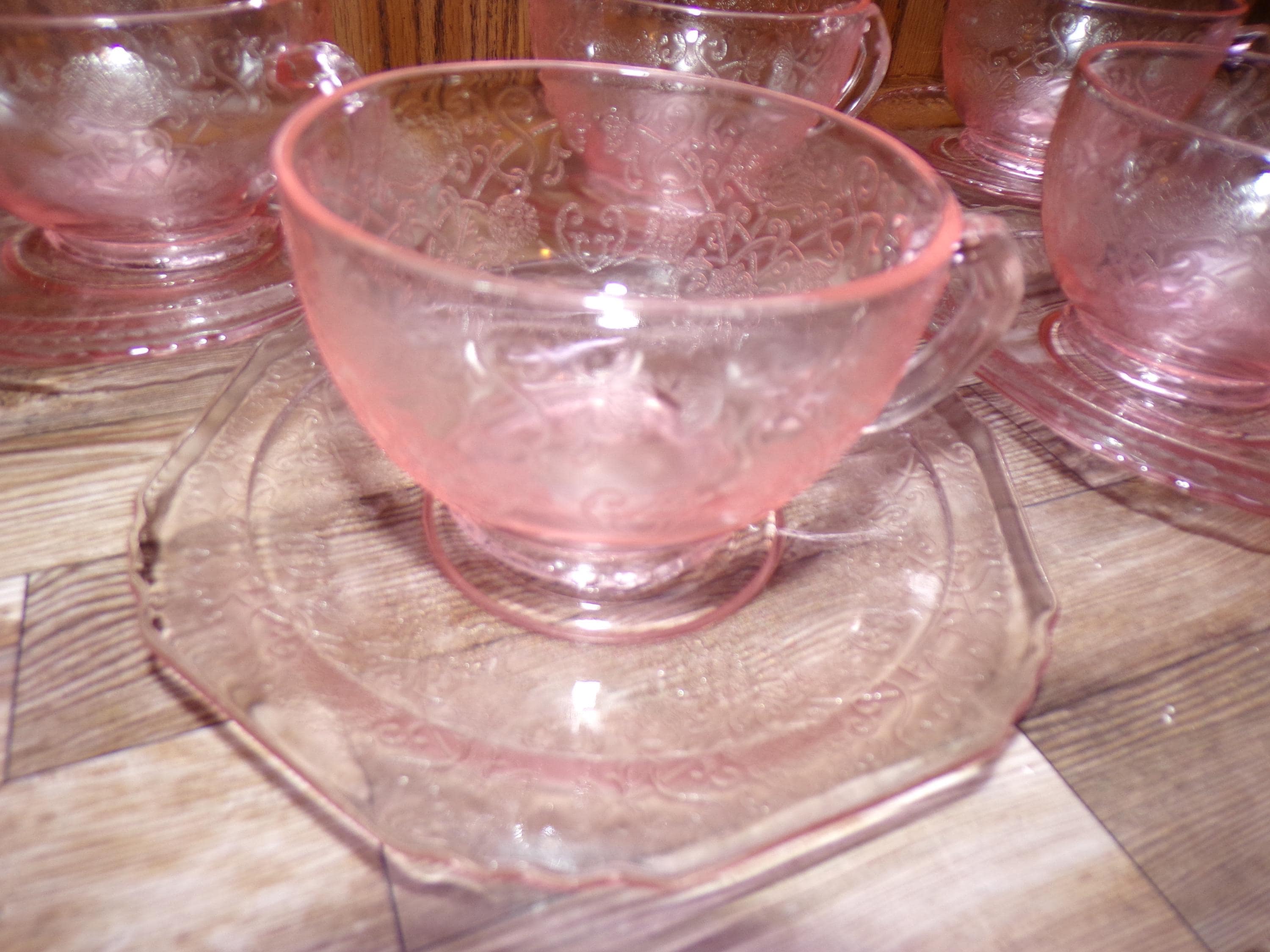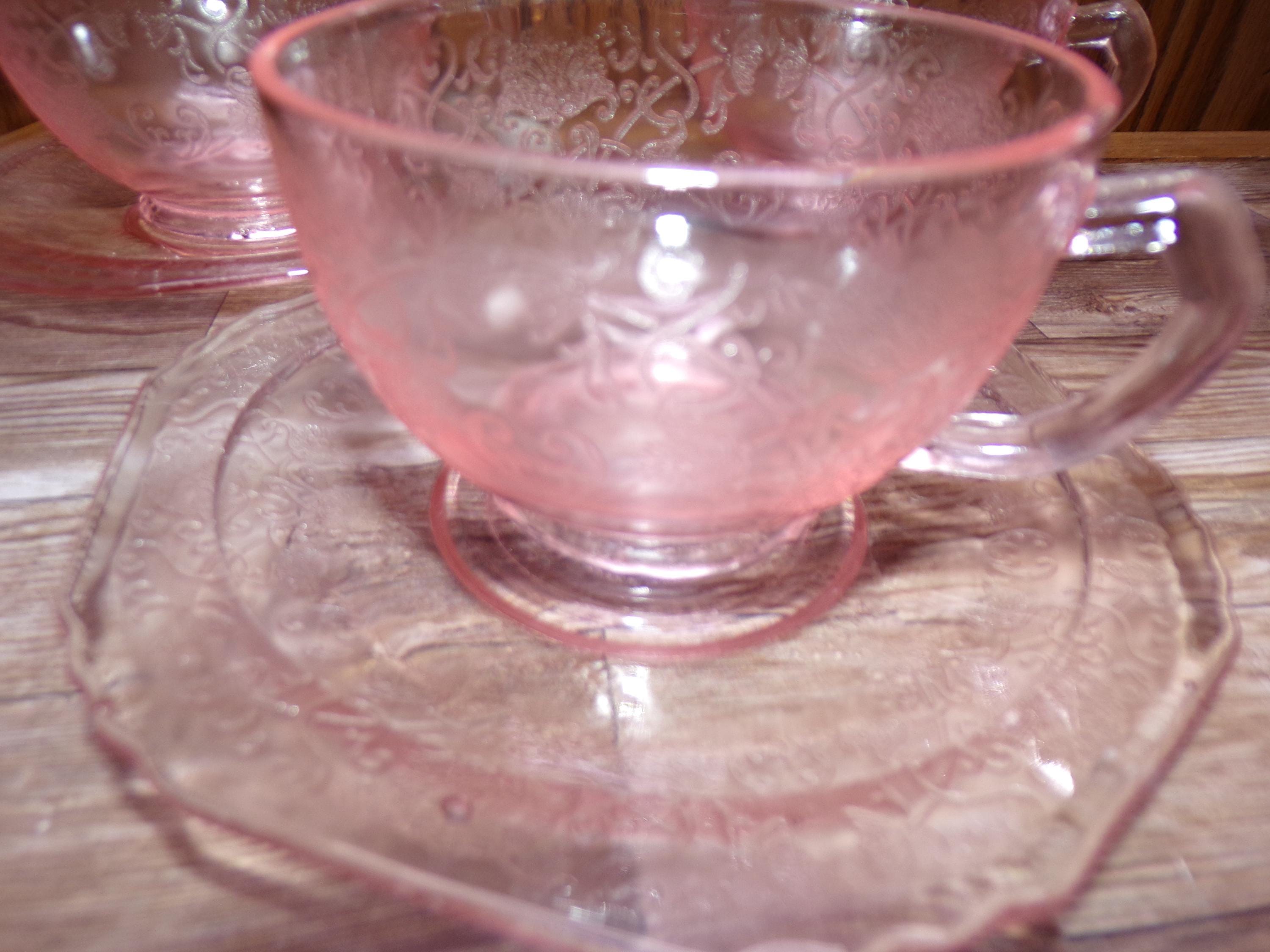 2510 Vintage Pink Glass Floral 10 pc Set 5 Cups & 5 Saucers - Great Condition