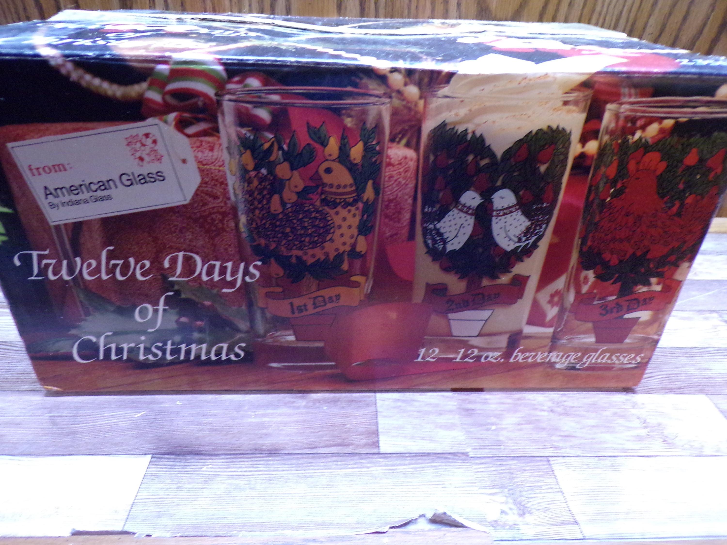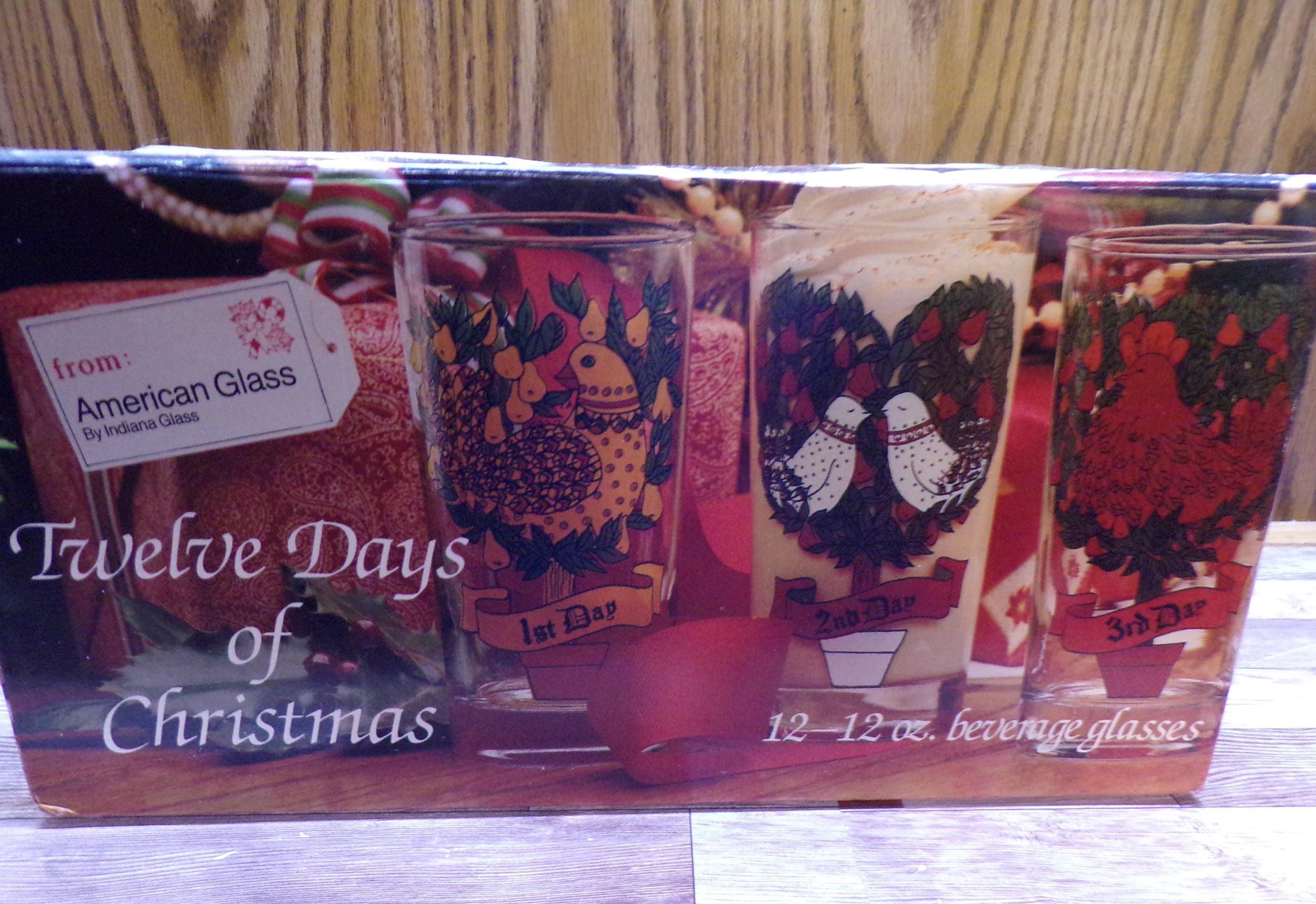 2510 Indiana Glass 12 Days of Christmas 6" 12 oz Tumbler Full Set of 12 - Excellent Condition in Original Box