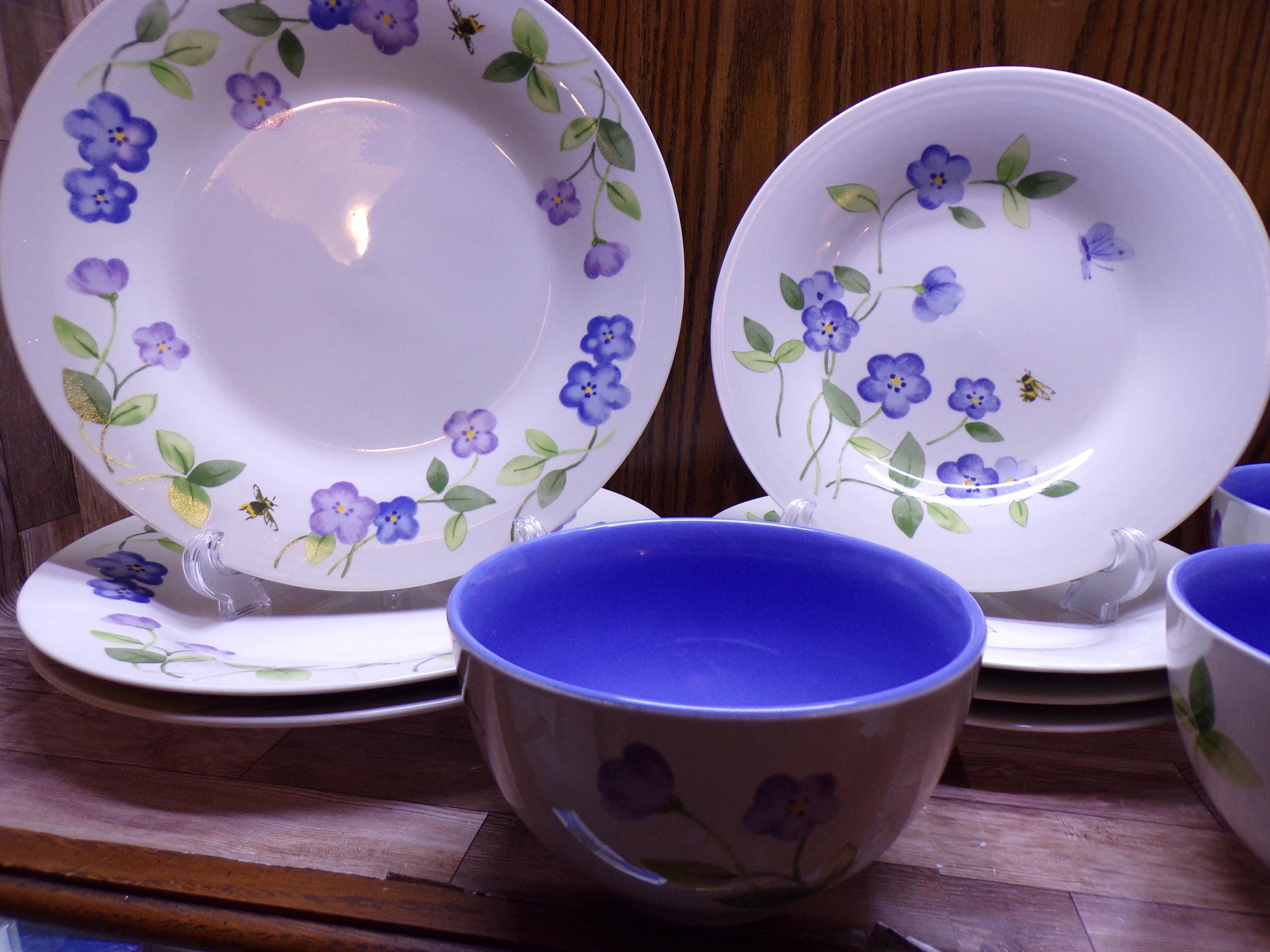 2510 Pfaltzgraff Perennials Petals Beautiful Purple & Green Floral Stoneware Dinnerware - Great Condition Choose From List: