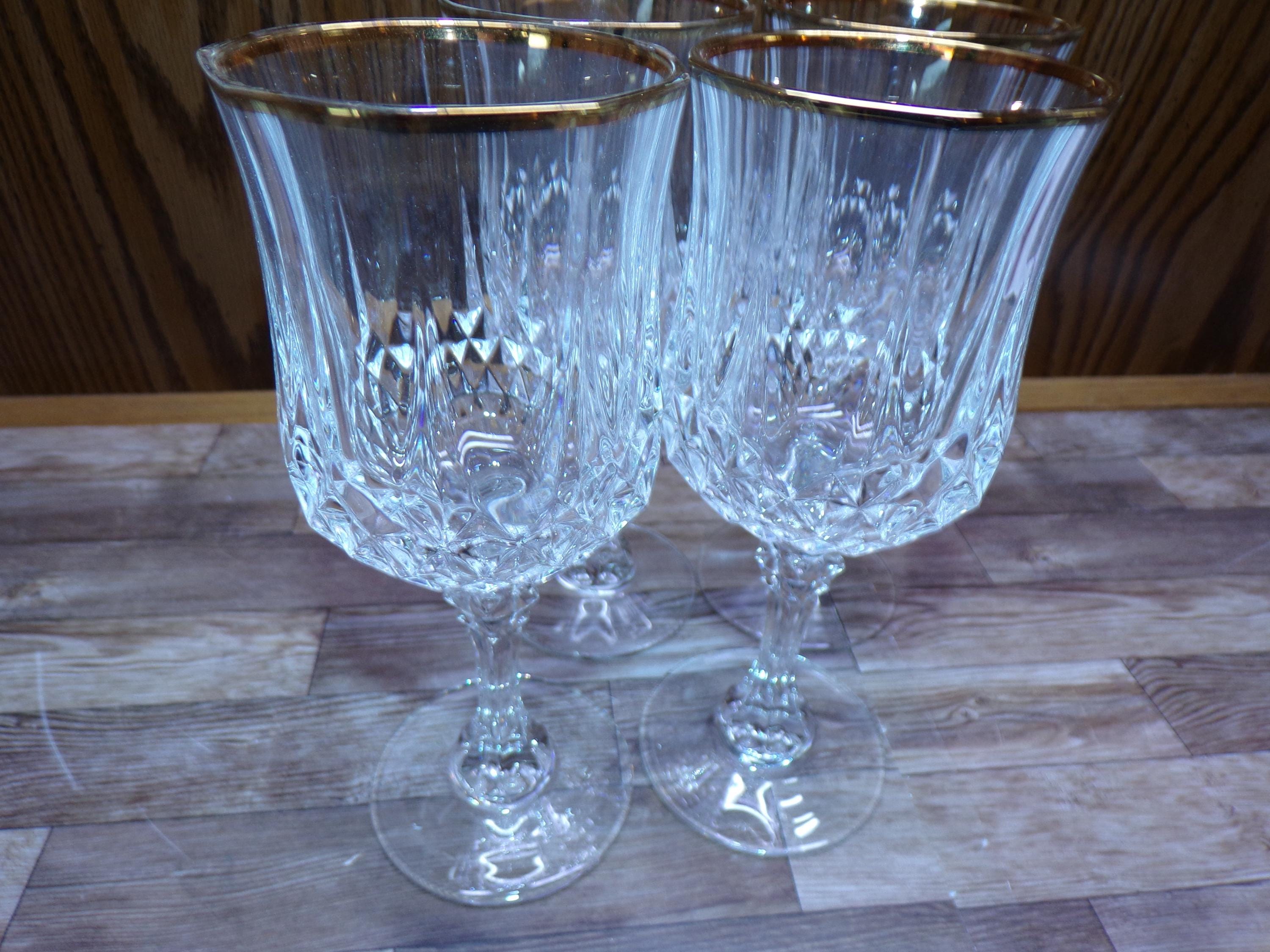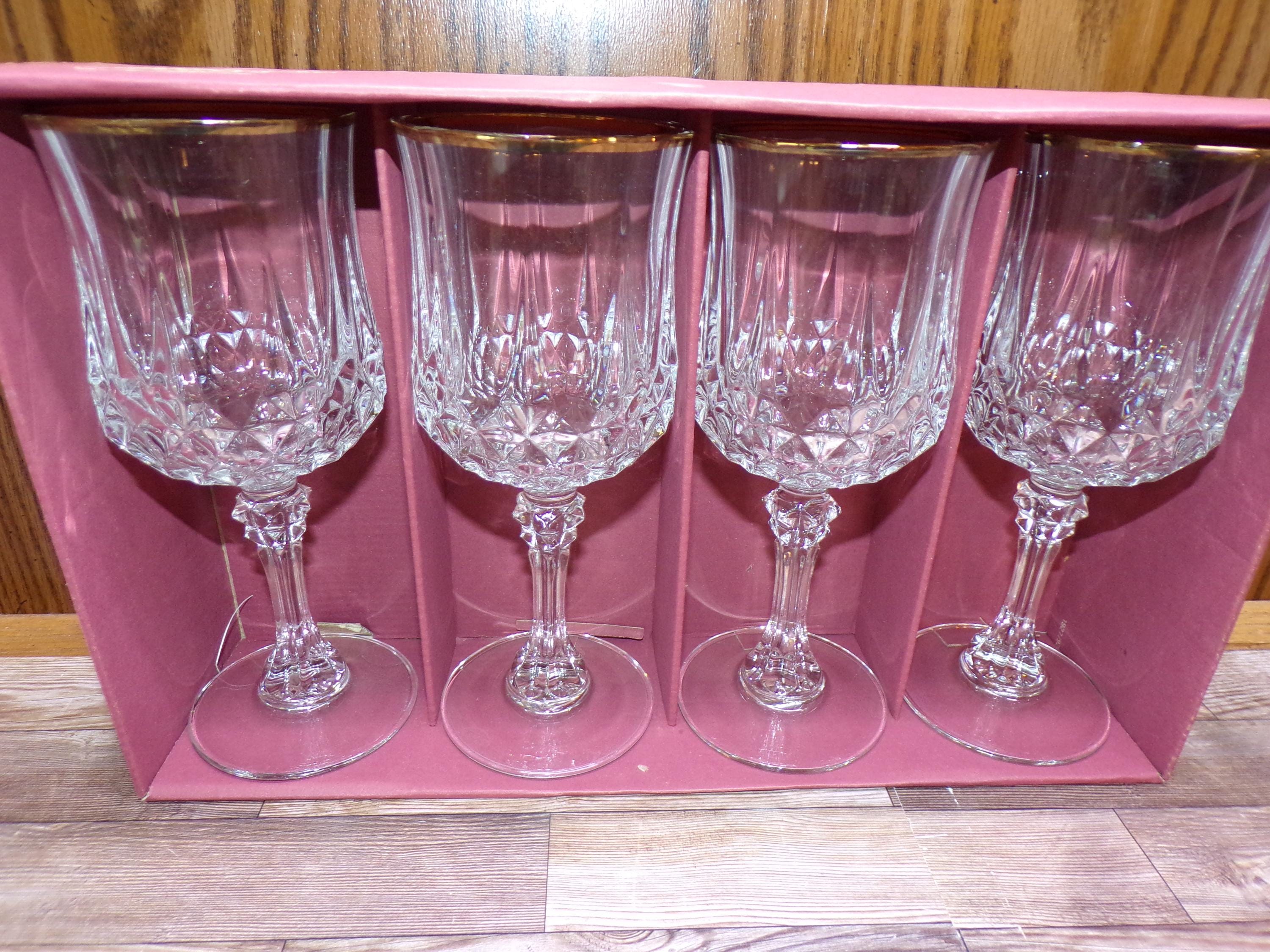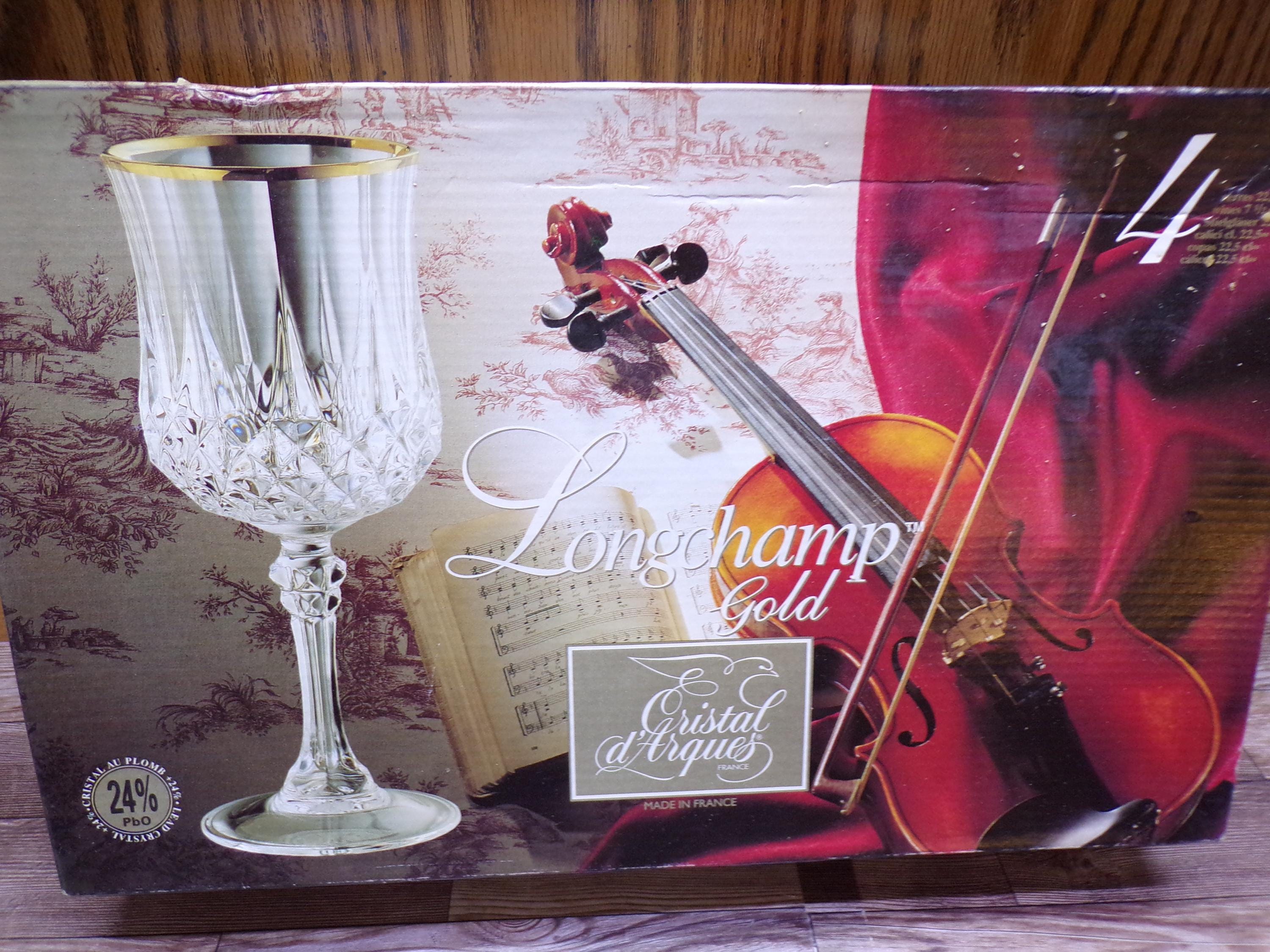 2510 Cristal D'Arques Paris 24% Lead Crystal Long Champ Gold 7" 7.5 oz Stemmed Vintage Wine / Water Glass Set of 4 - Great Condition in Original Box