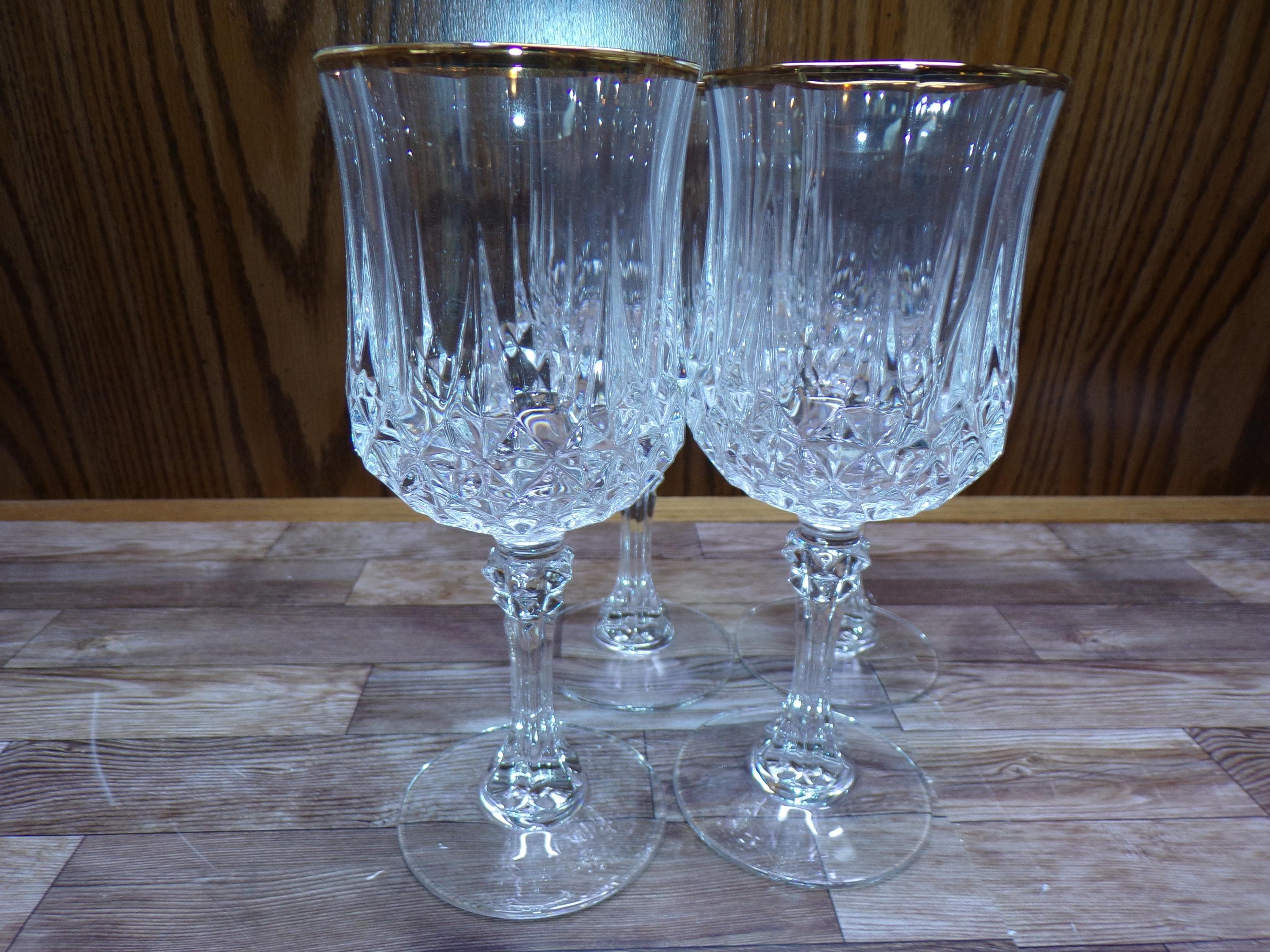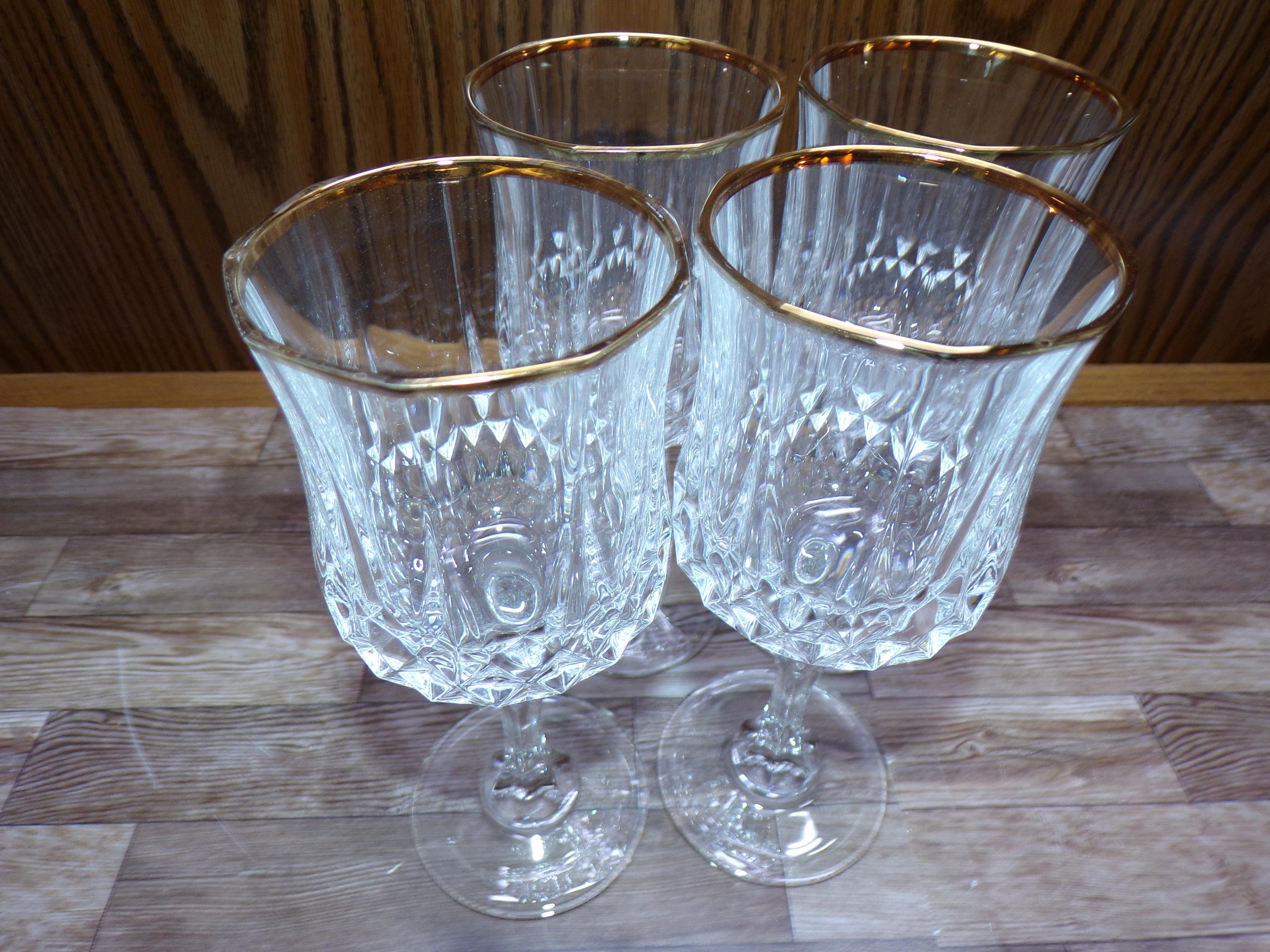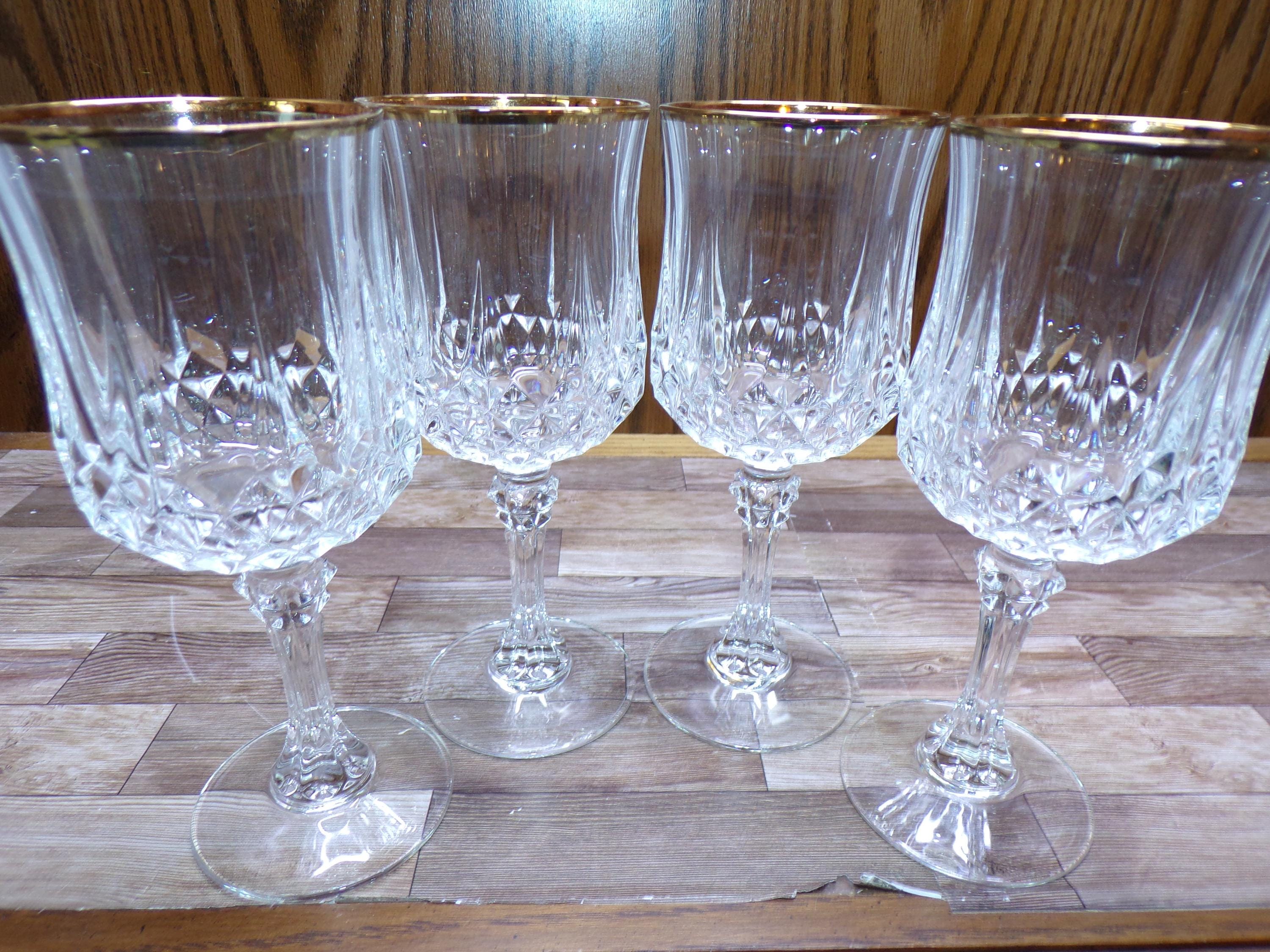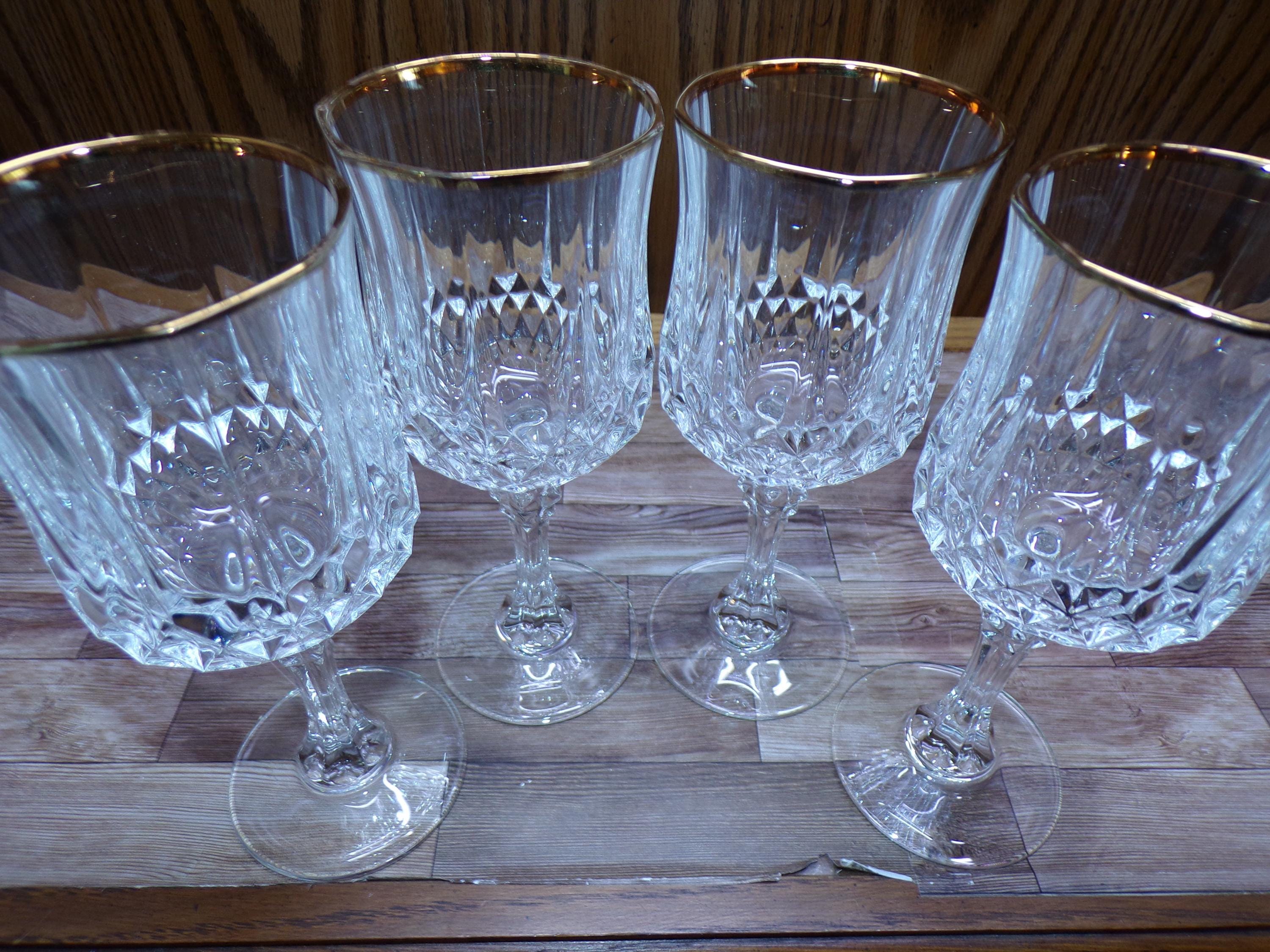2510 Cristal D'Arques Paris 24% Lead Crystal Long Champ Gold 7" 7.5 oz Stemmed Vintage Wine / Water Glass Set of 4 - Great Condition in Original Box
