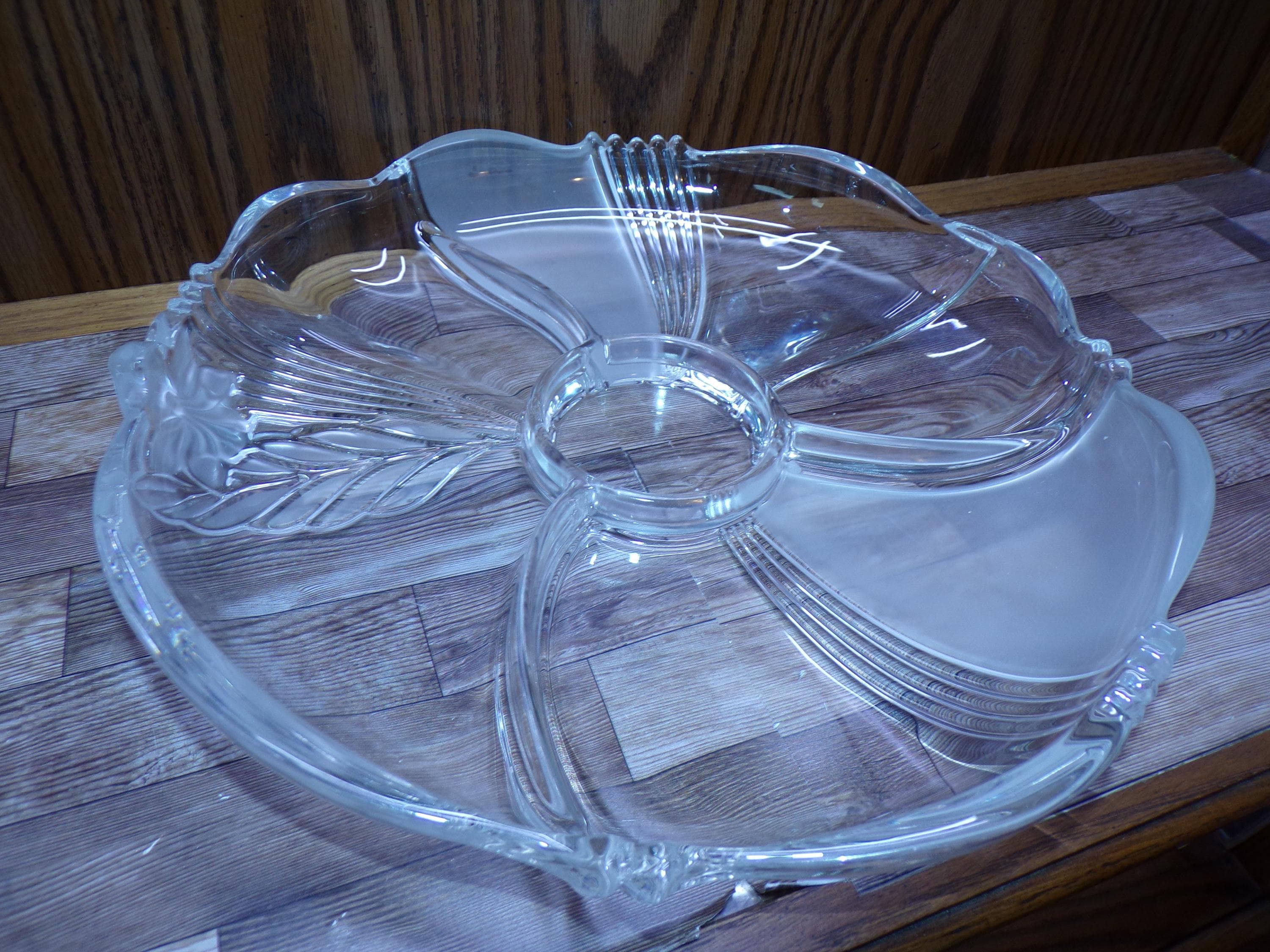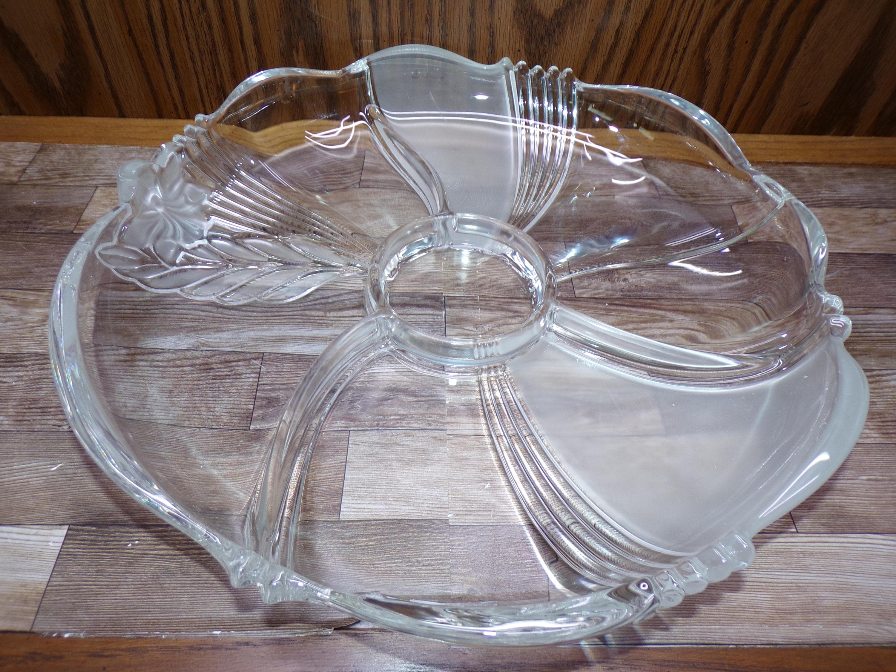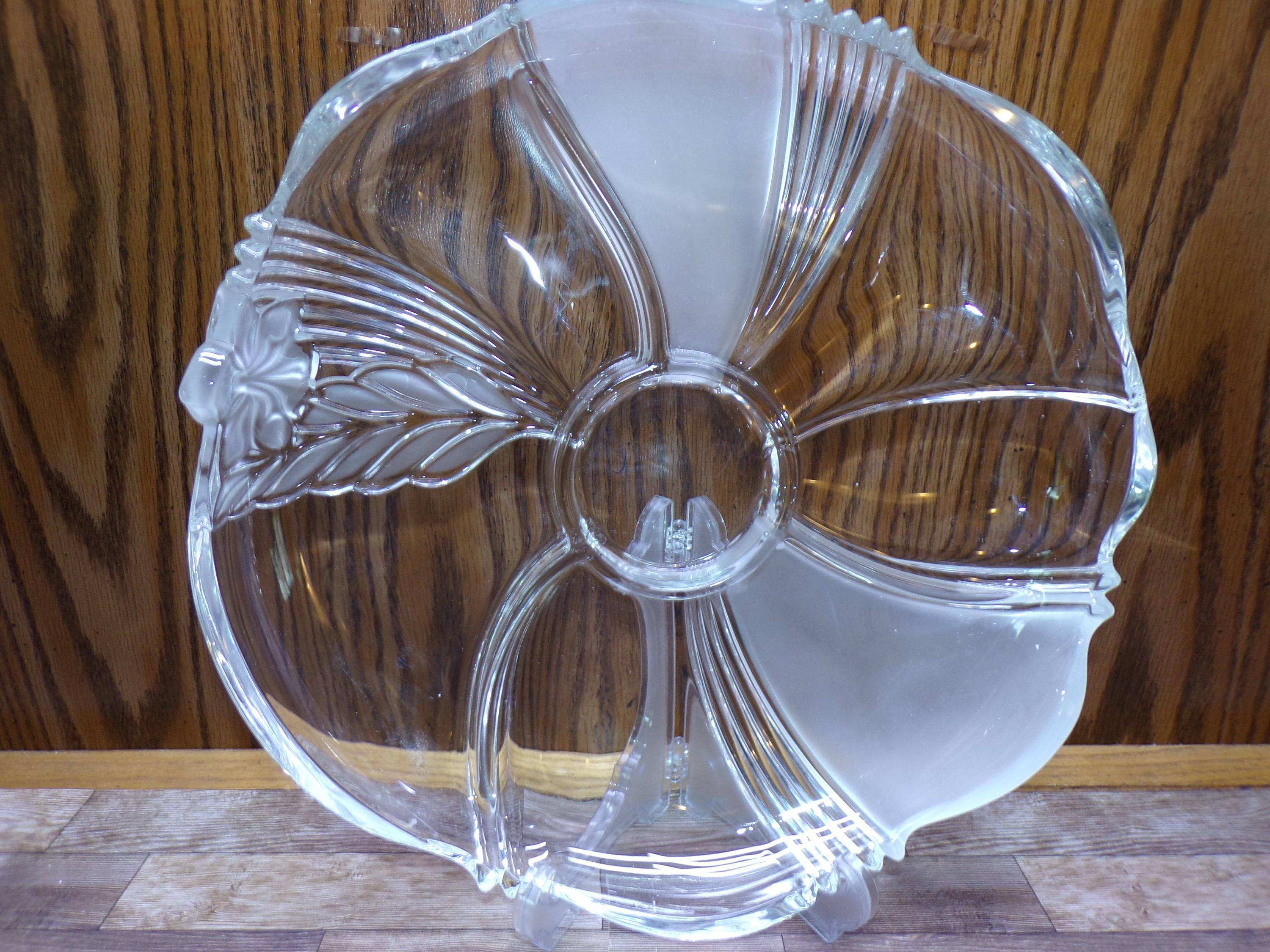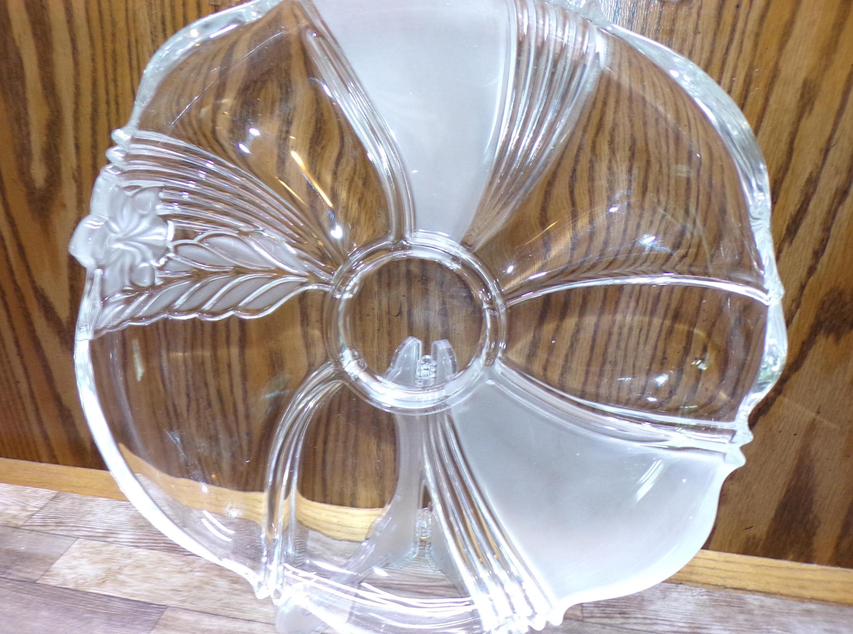 2510 Mikasa 12" Frosted Satin Orchid 4 Section Divided Crystal Platter - Great Condition