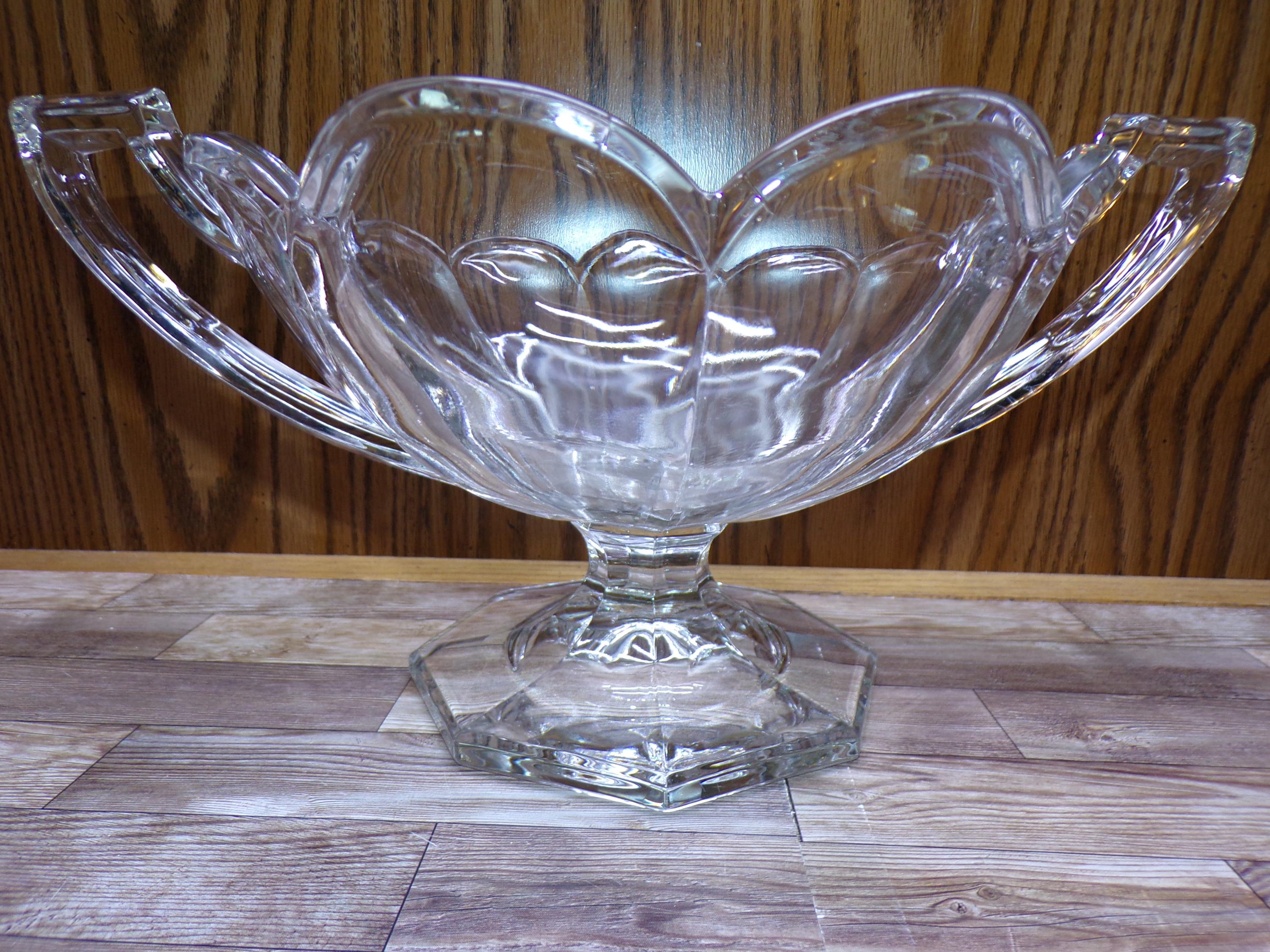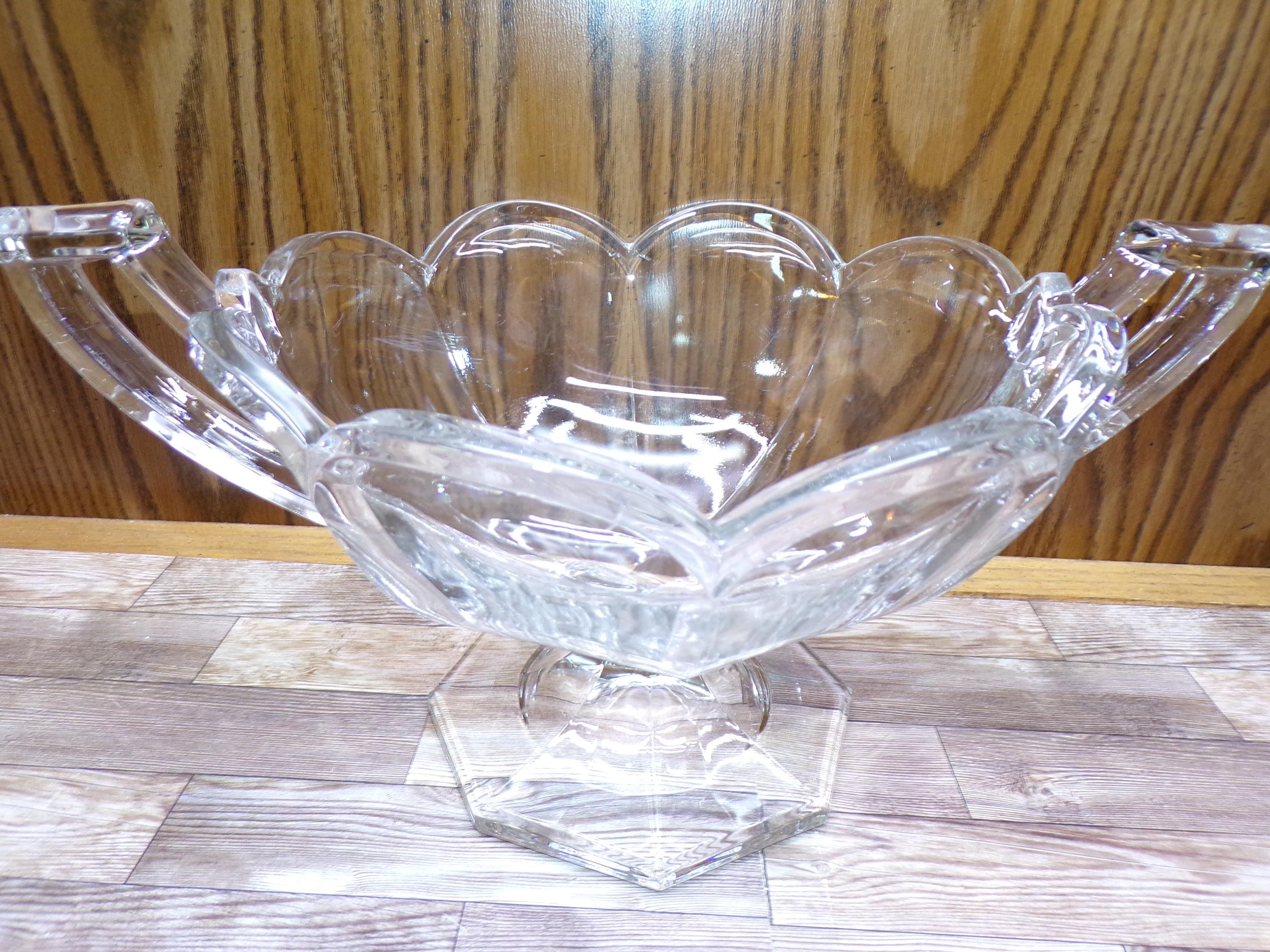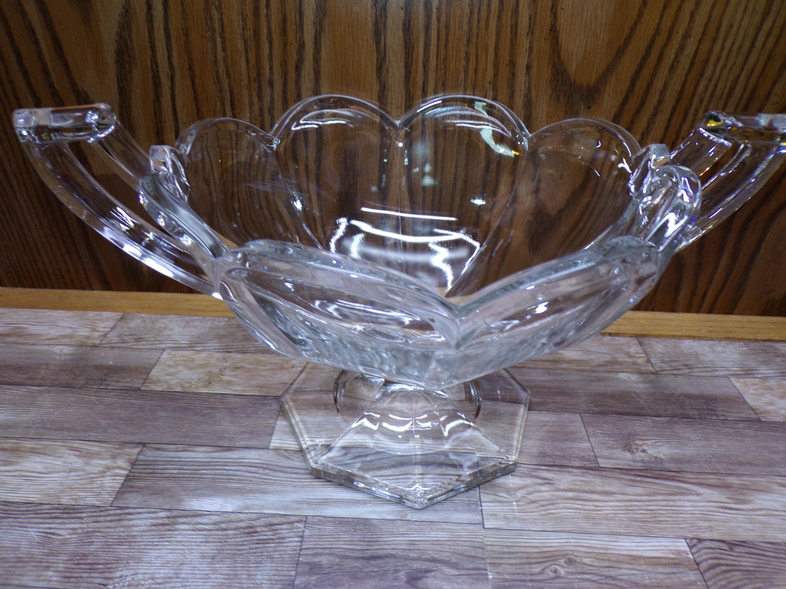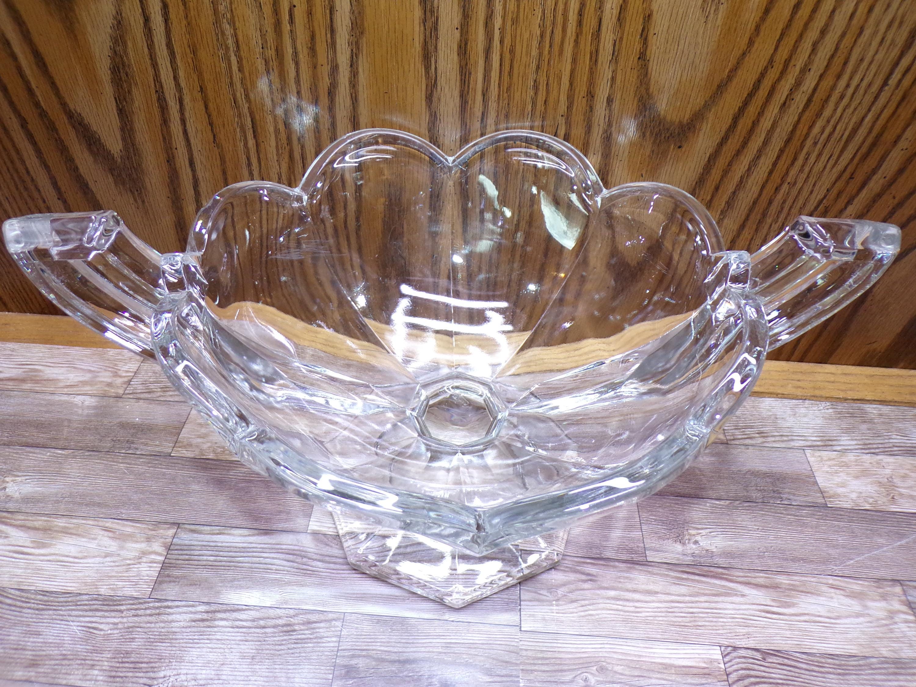 2510 Krystol Chippendale Vintage 12" Double Handle Clear Glass Trophy Bowl - Great Condition 9" x 12" x 6" Tall