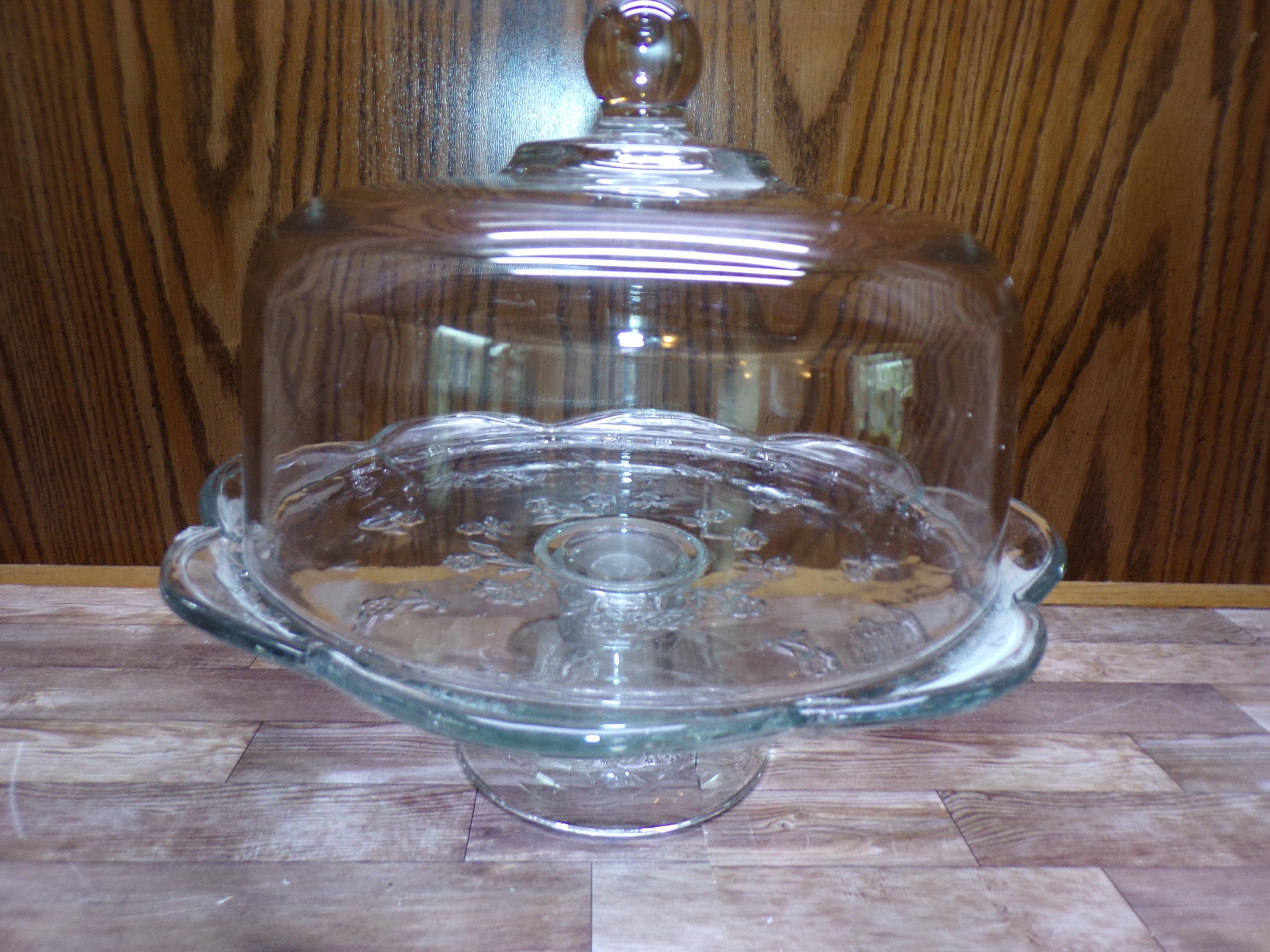 2510 Anchor Hocking Savannah Vintage 12" Footed Cake Tray Platter with 10" Dome Cover - Great Condition