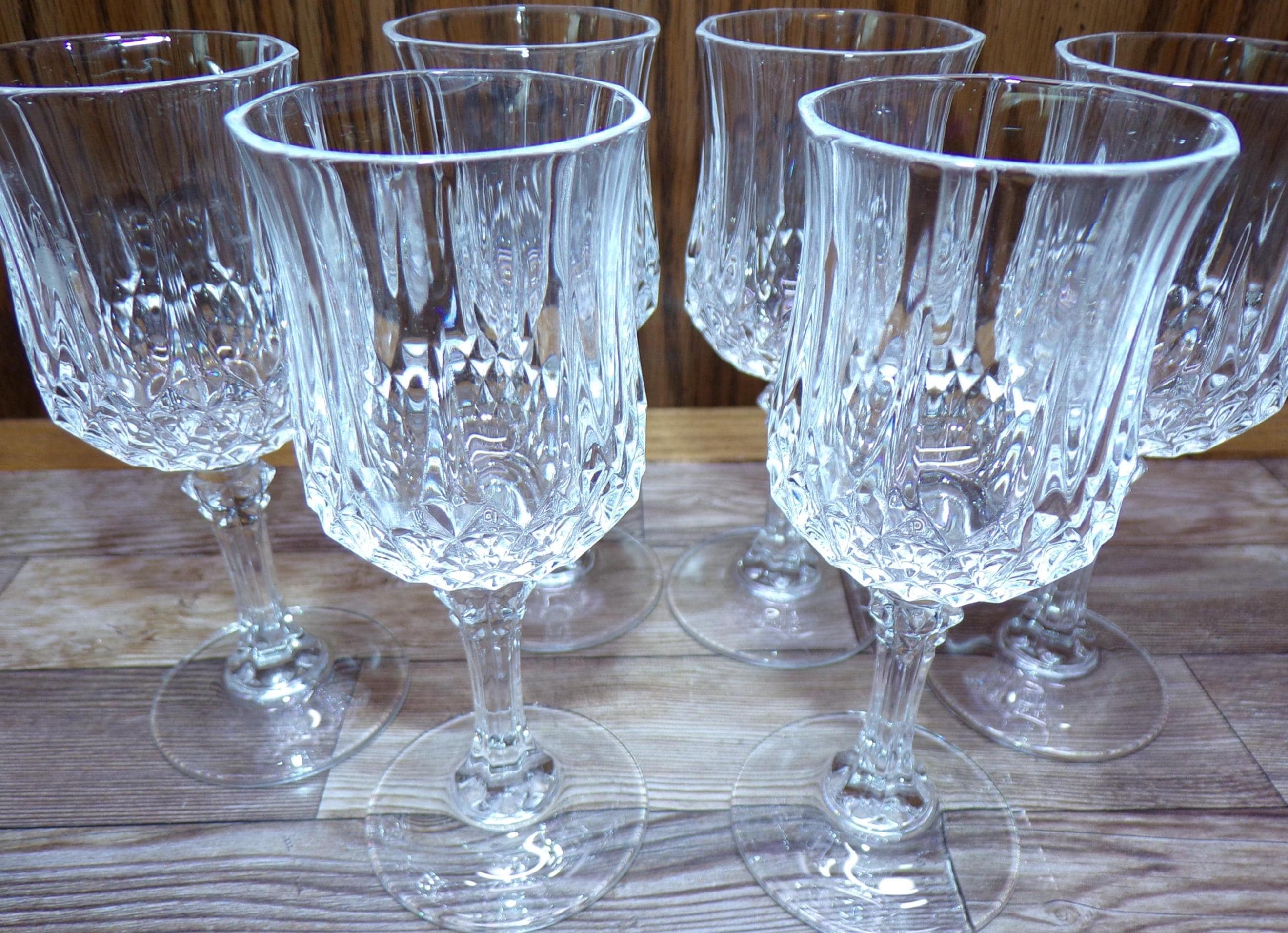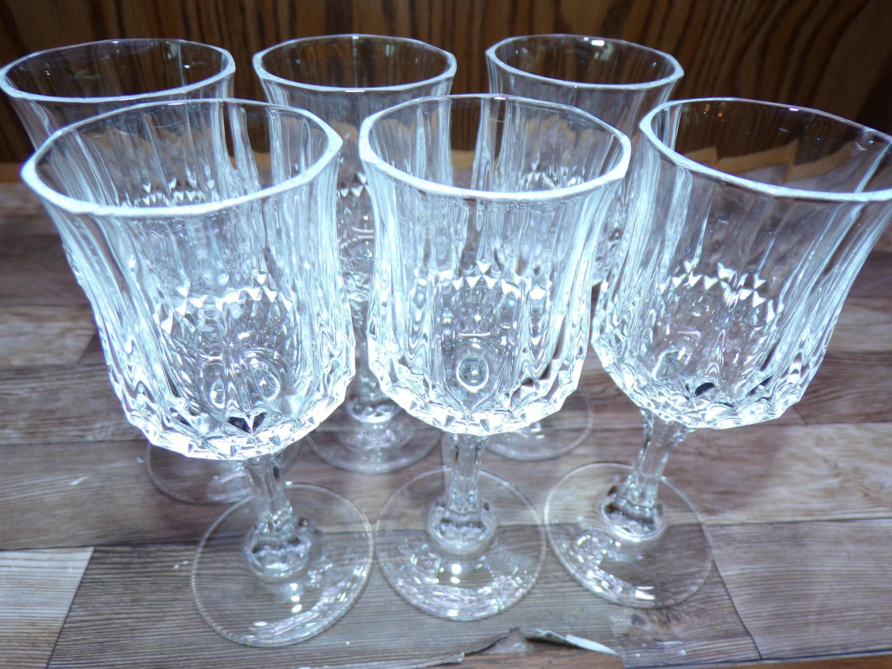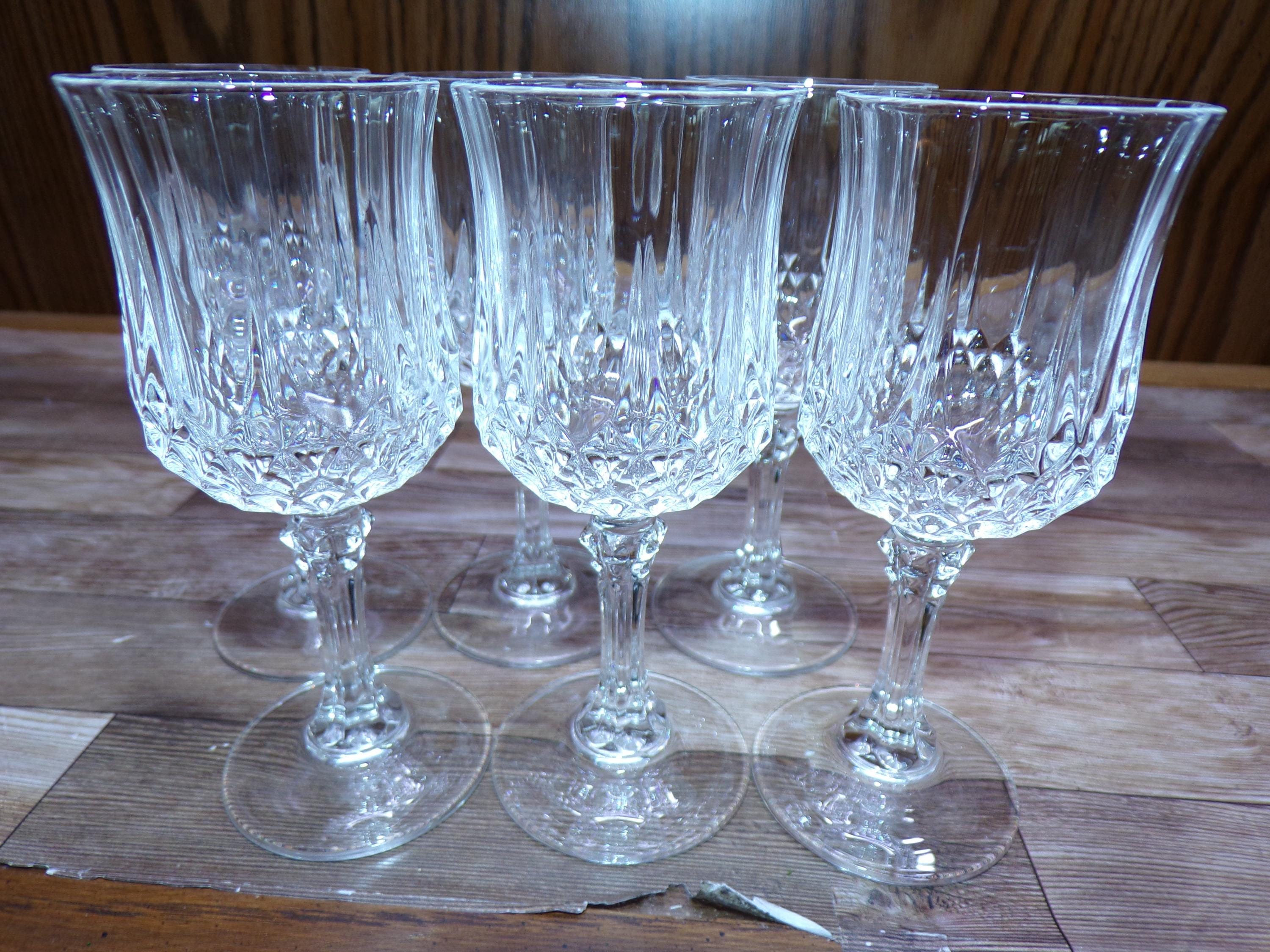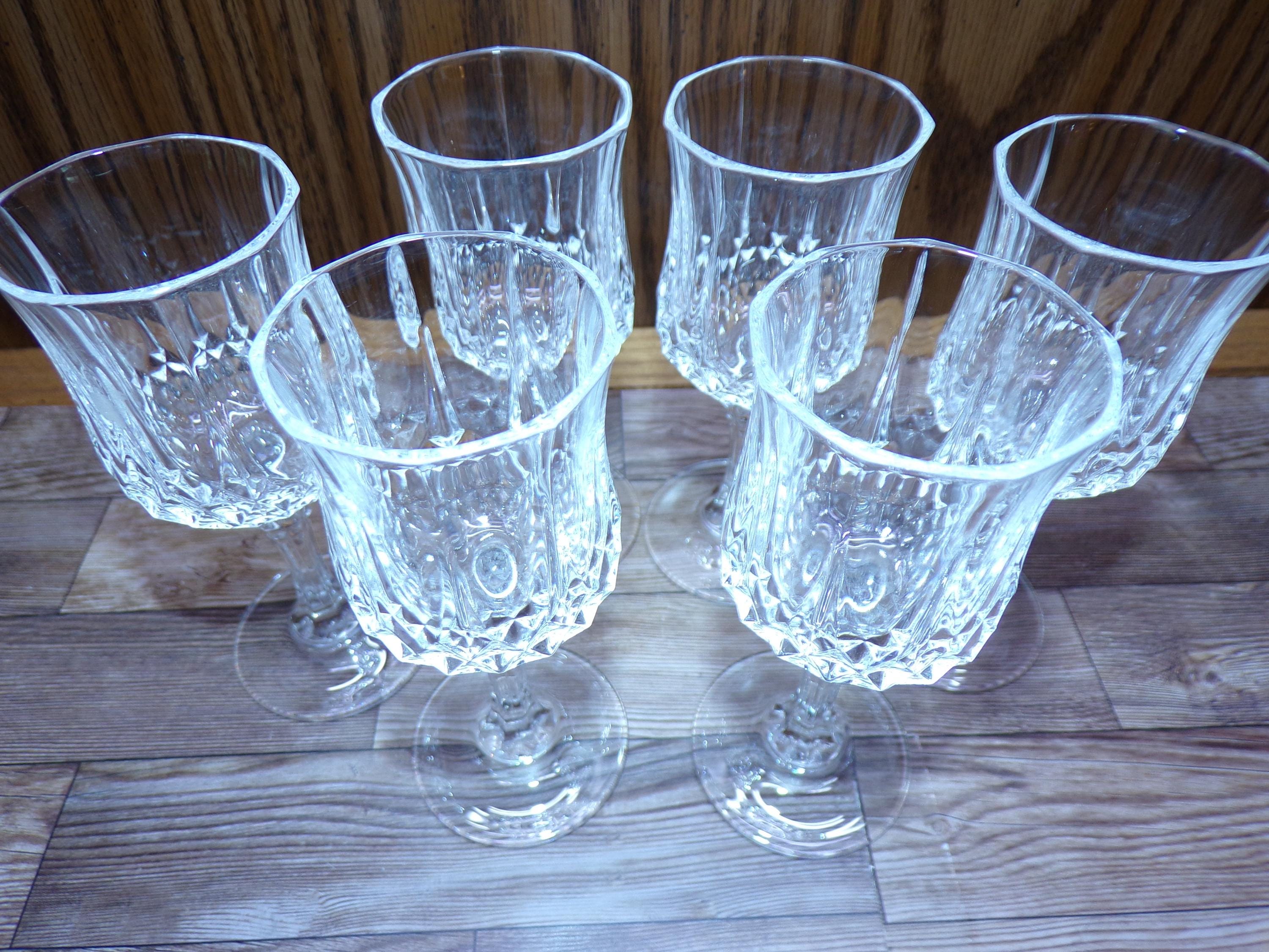2510 Cristal D'Arques Paris Vintage 24% Lead Crystal LongChamp 4.75" Stemmed 1 oz. Wine Goblet Set of 6 Tiny Chip on 1 Rim Others Great Cond