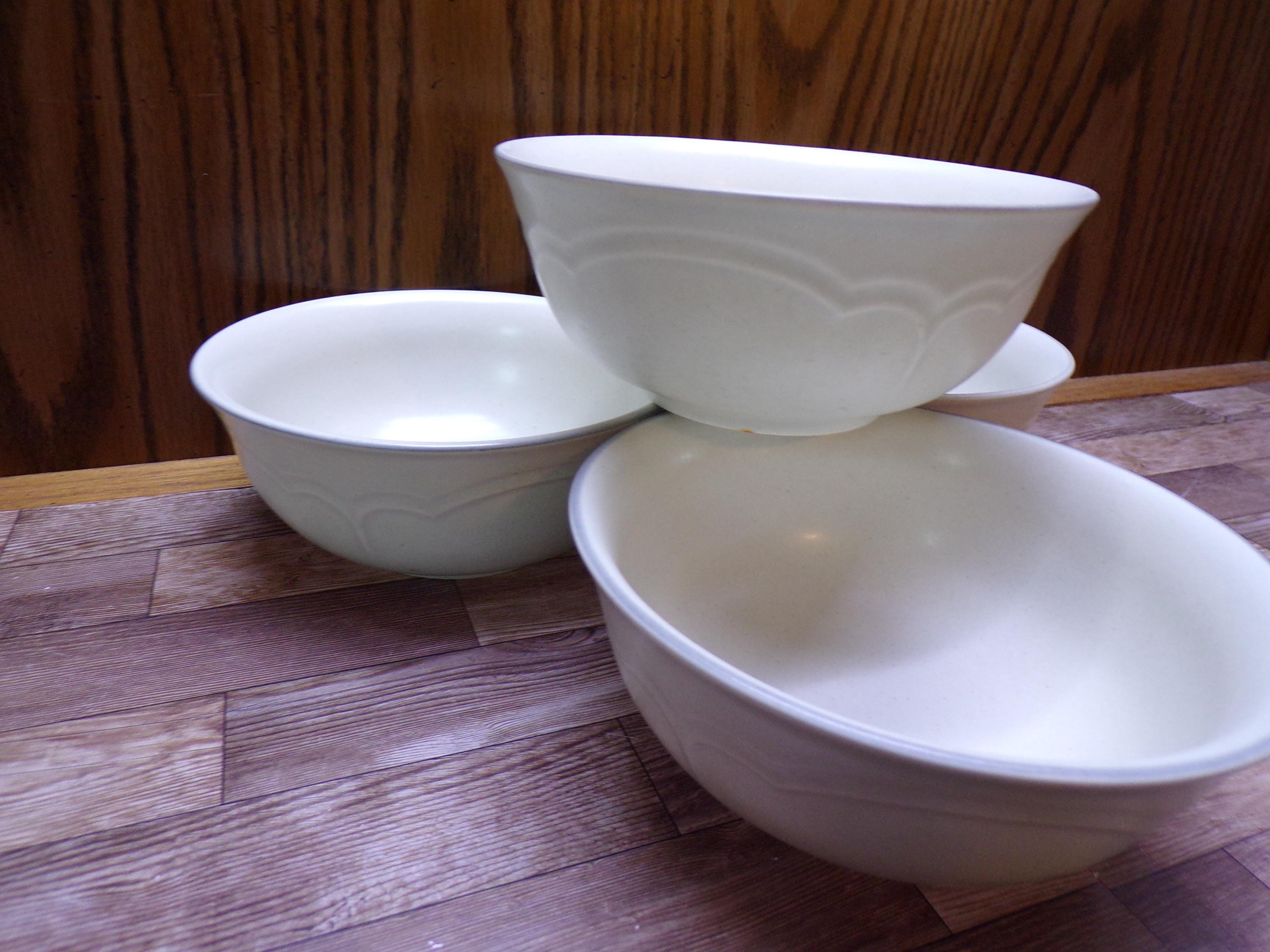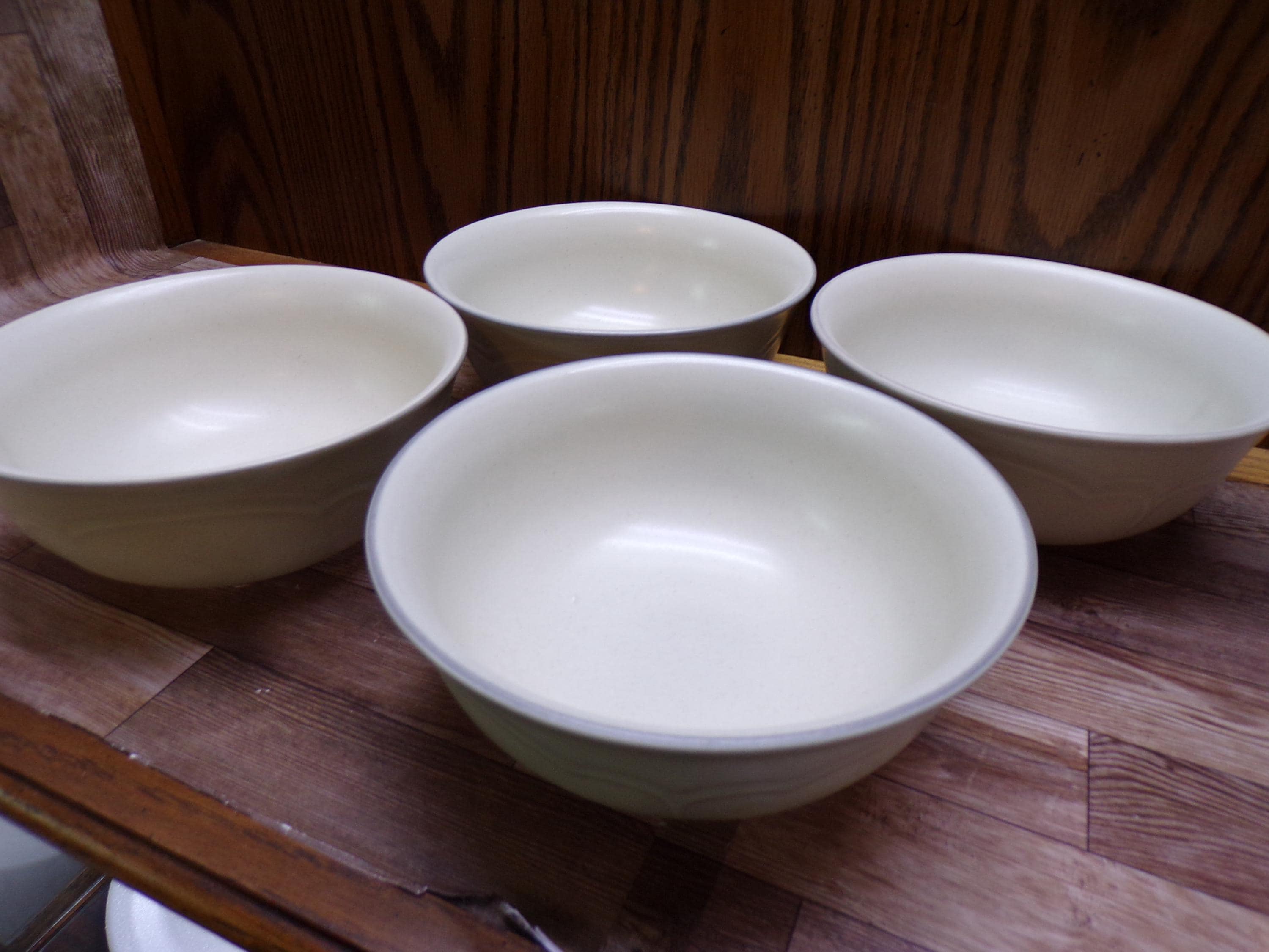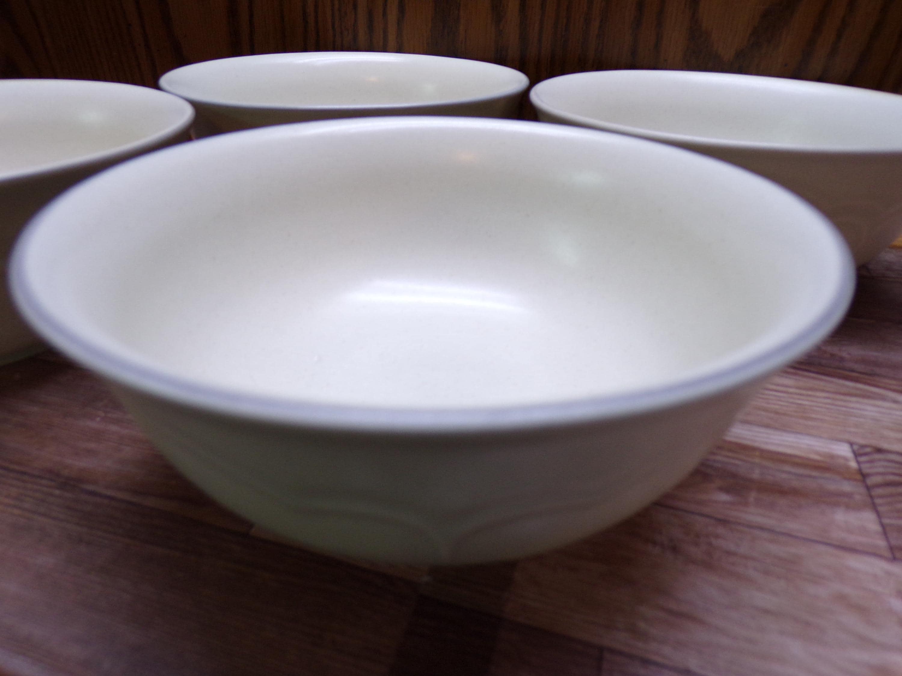 2511 Pfaltzgraff Heirloom Gray & White Floral on Gray Retired Vintage 6" Stoneware Soup Bowl Set of 4 - Great Condition