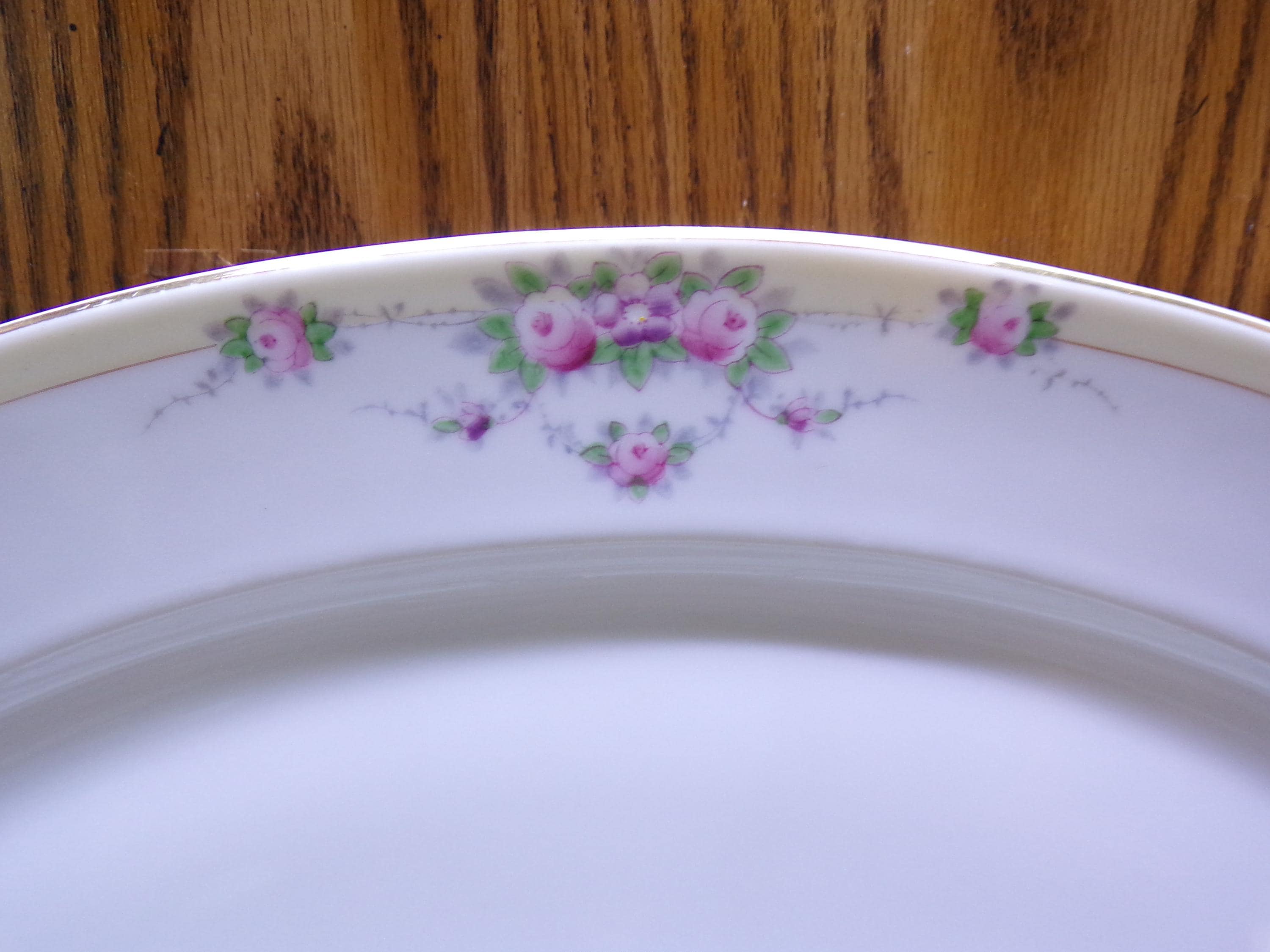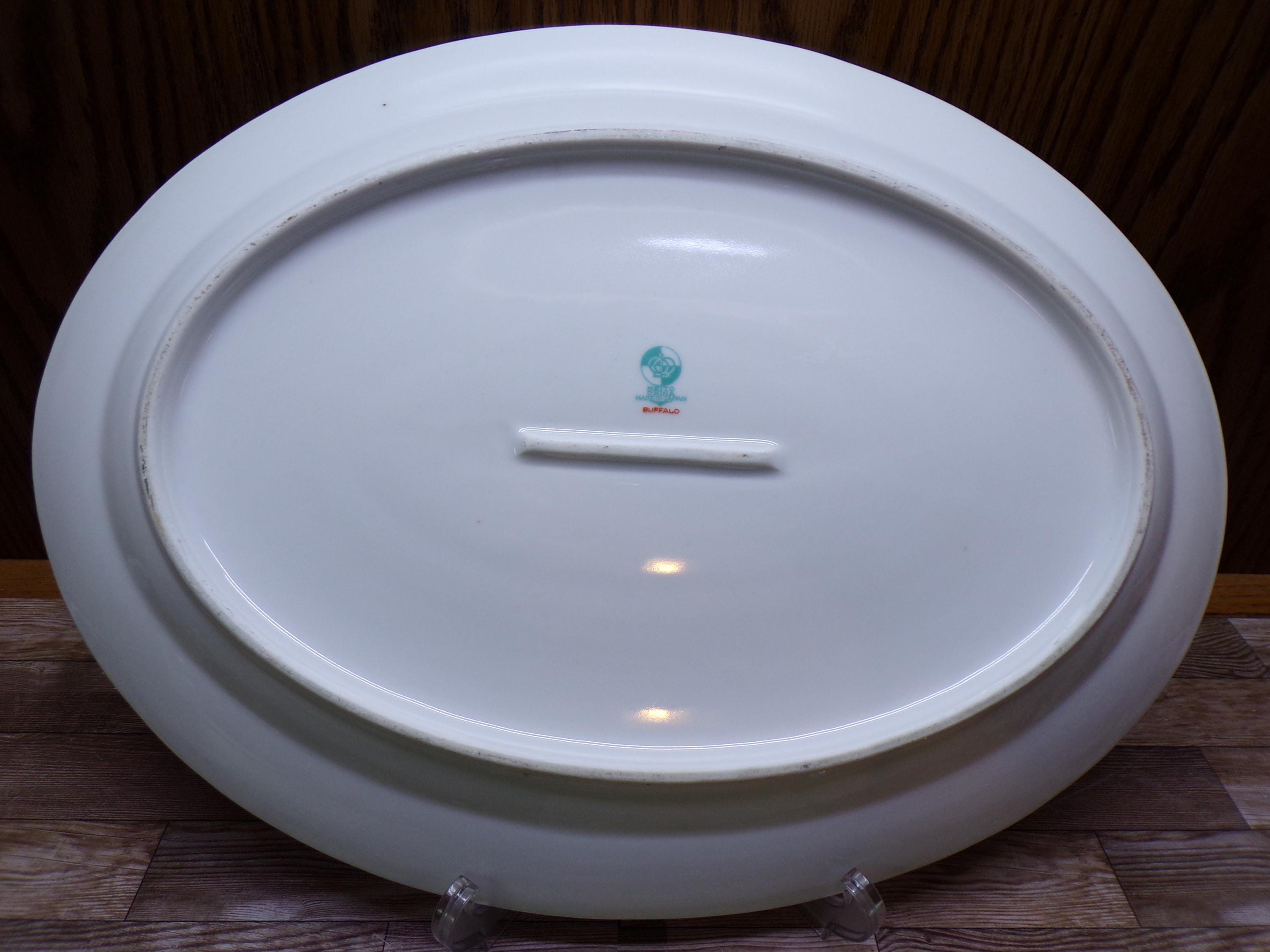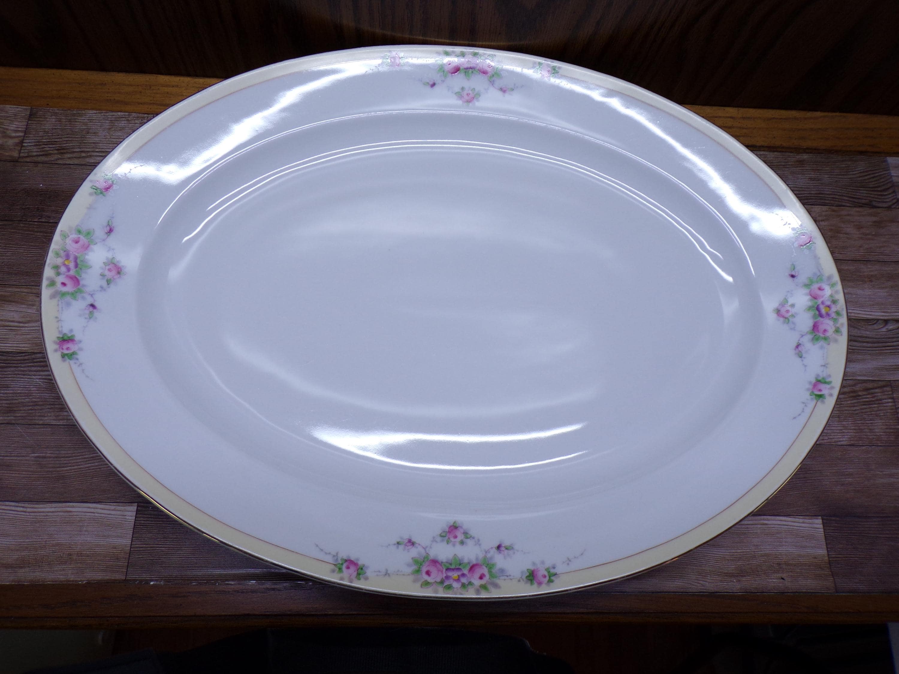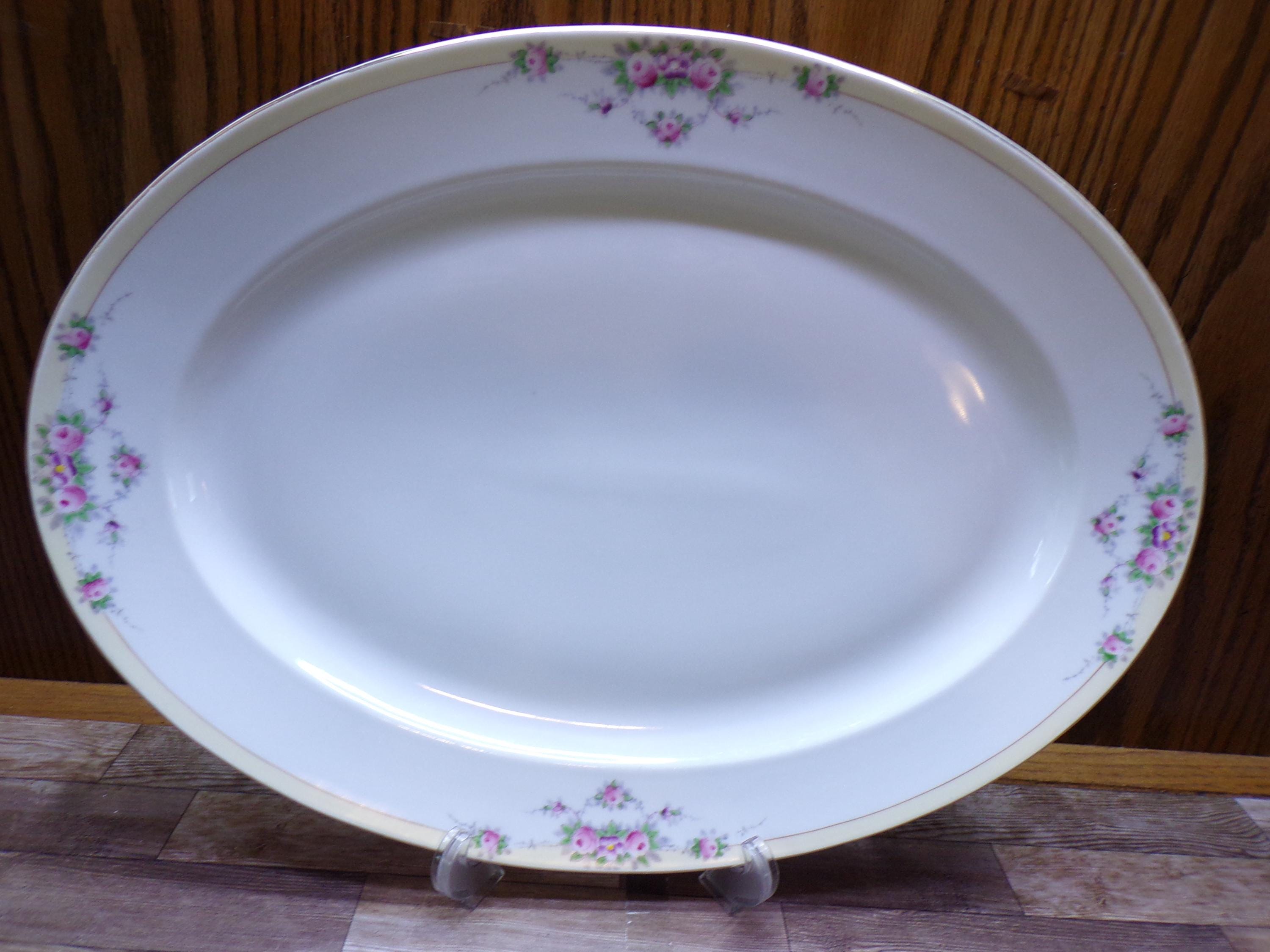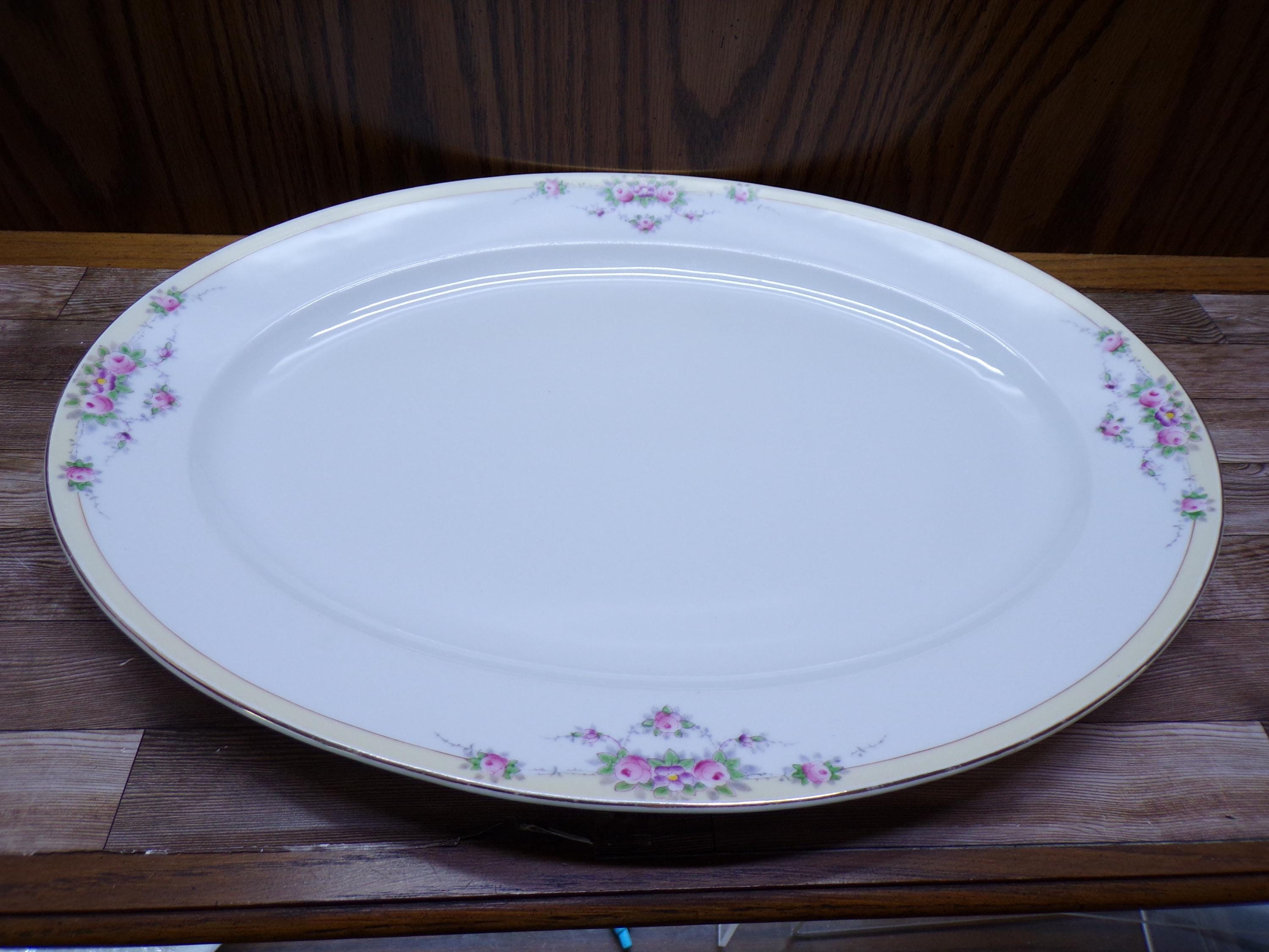 2507 Meito Fine China Buffalo 16" x 12" Hand-painted Vintage Oval Platter Beautiful Floral Pattern w/ Gold Rim Made in Japan - Great Cond