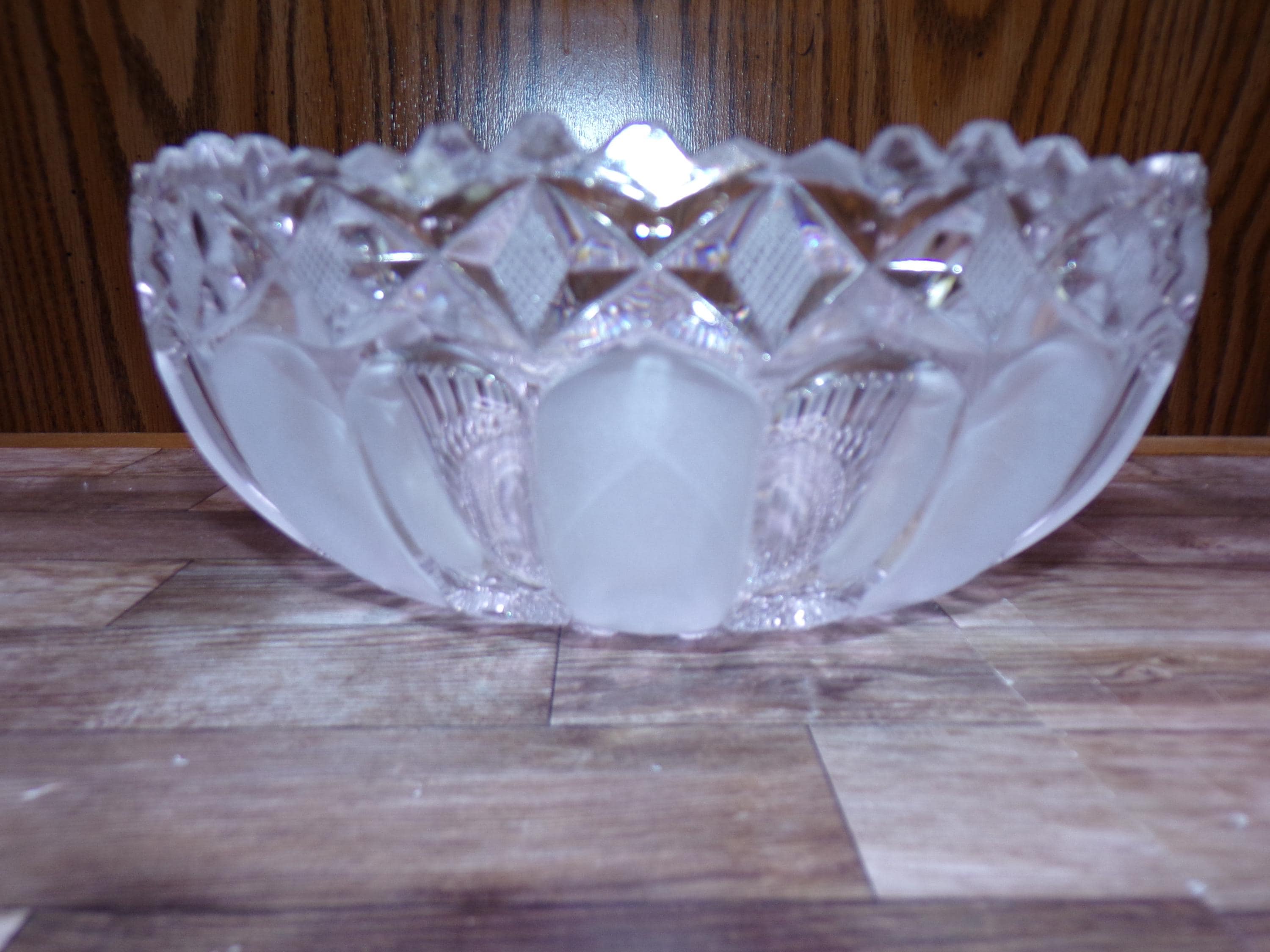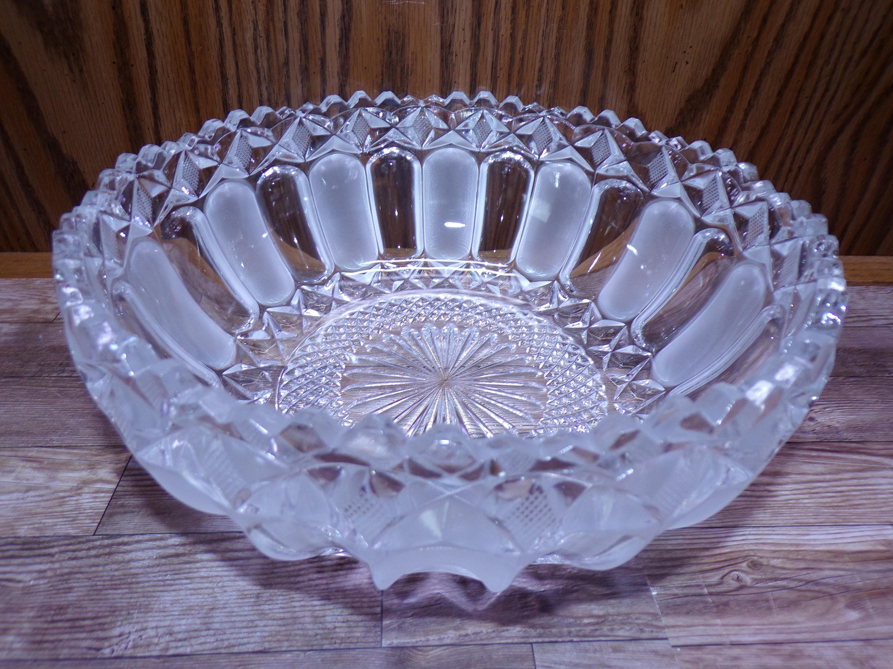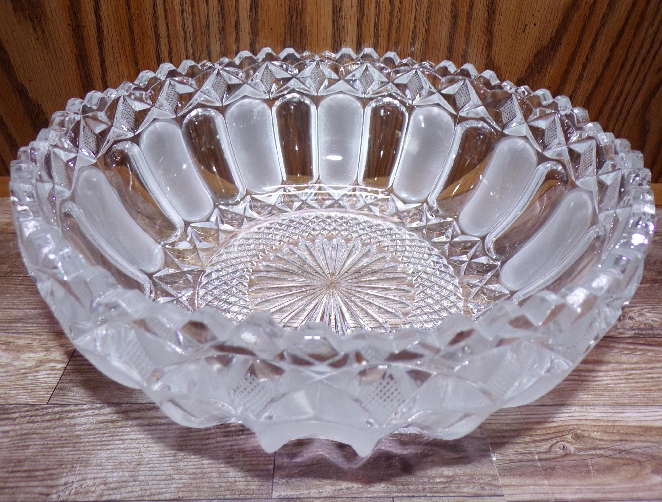 2511 Frosted Paneled Pattern 24% Lead Crystal Centerpiece Serving Bowl Vintage 9" Sawtooth Rim - Excellent Condition No Chips or Cracks