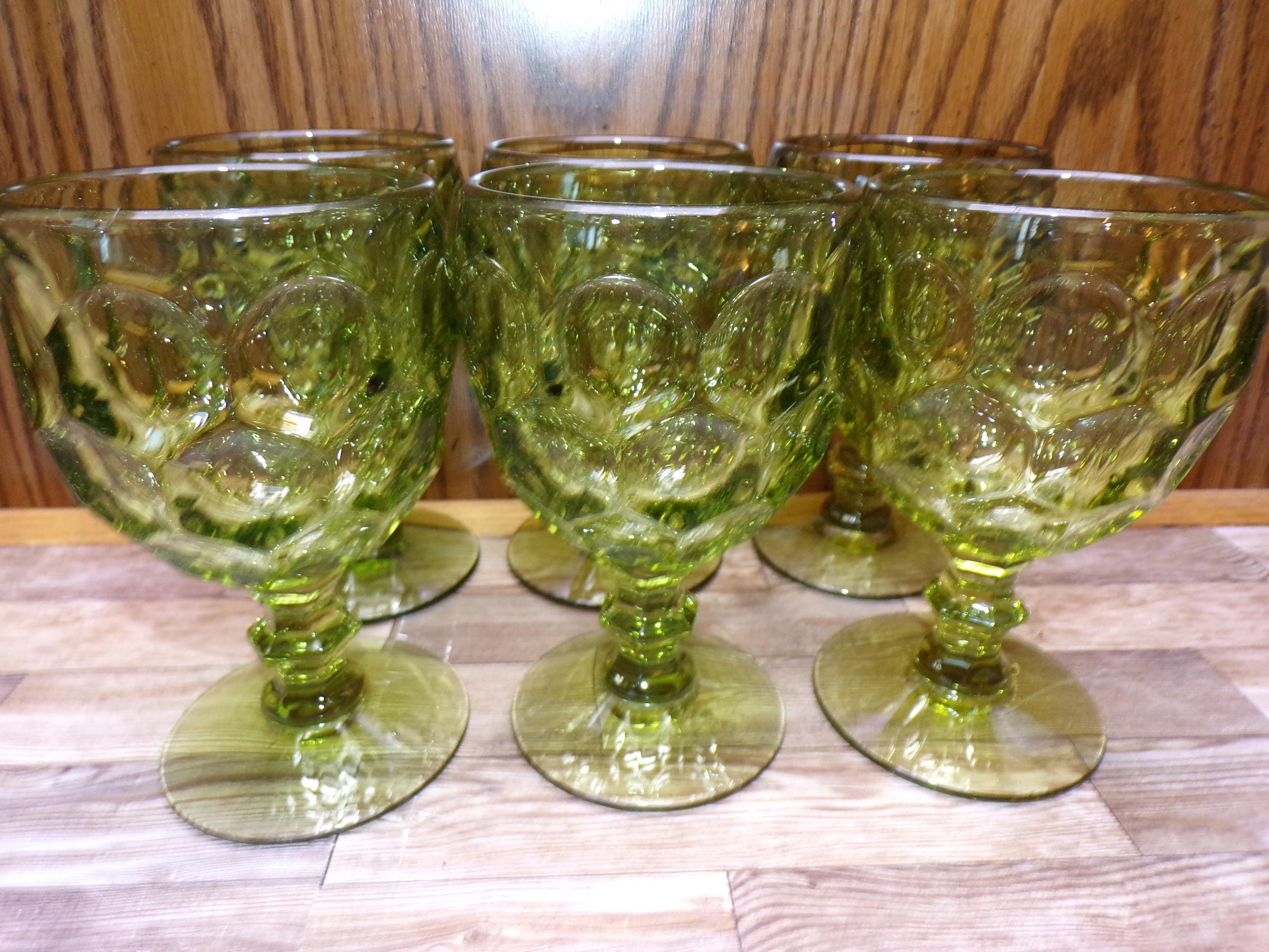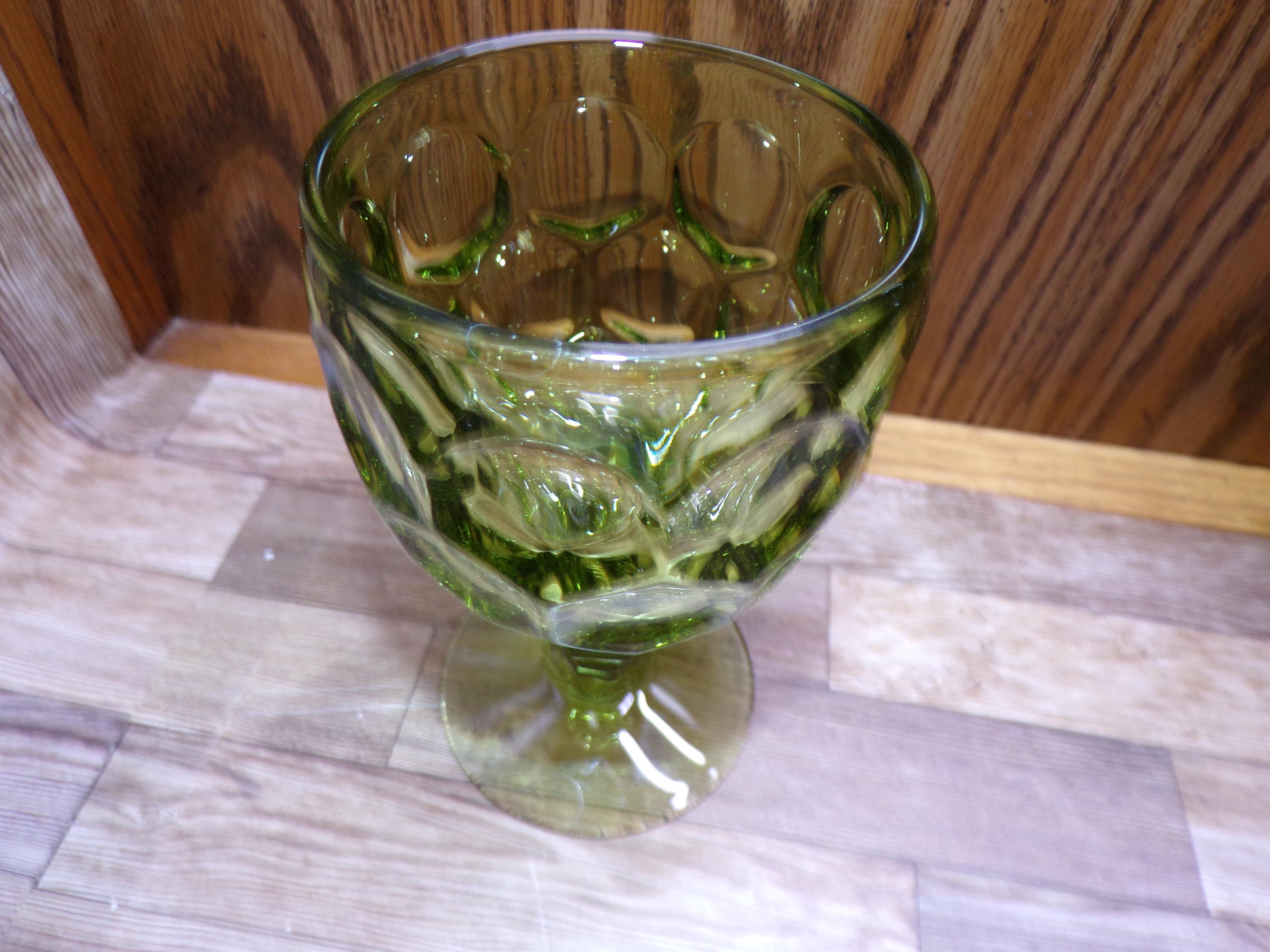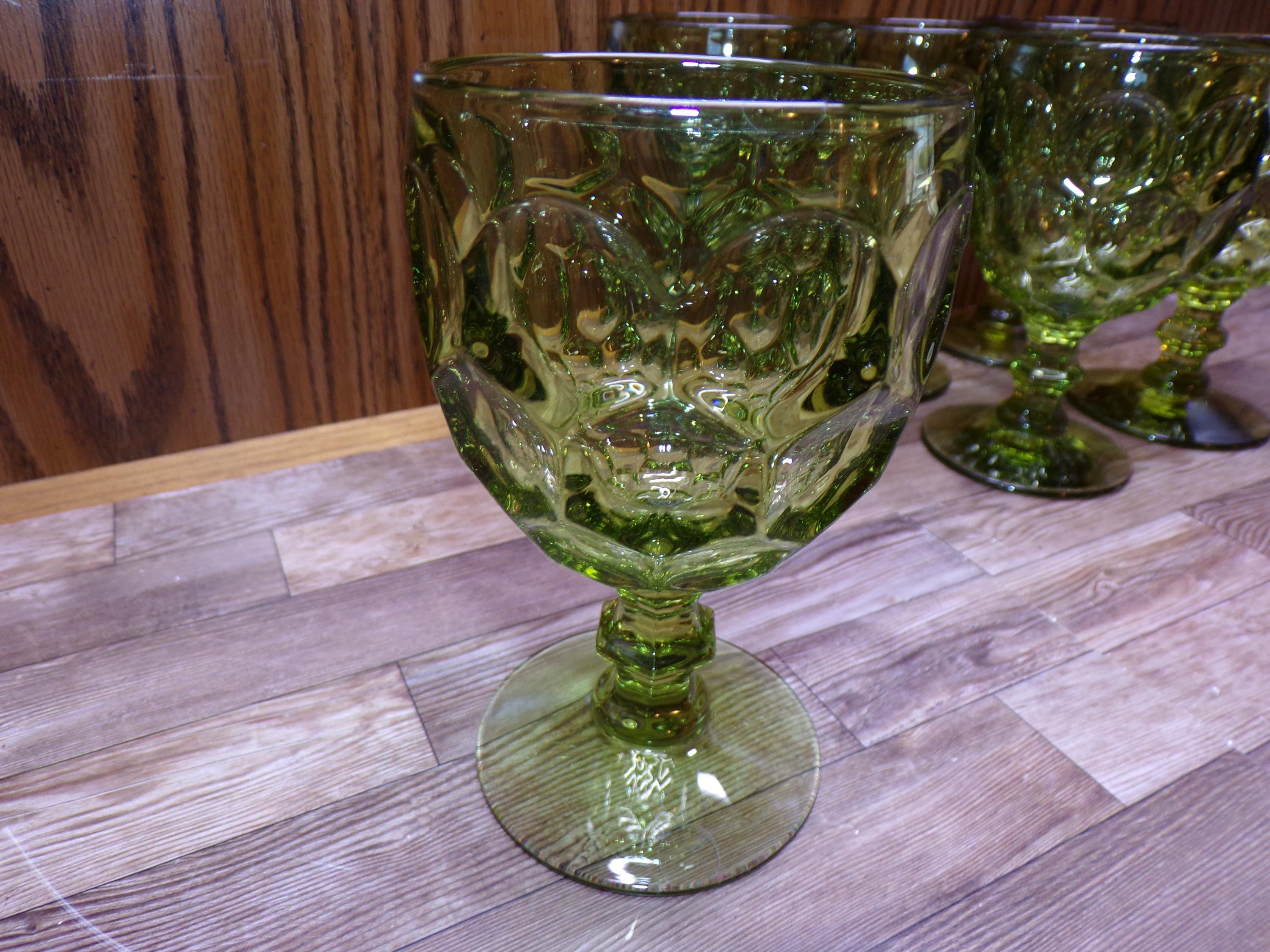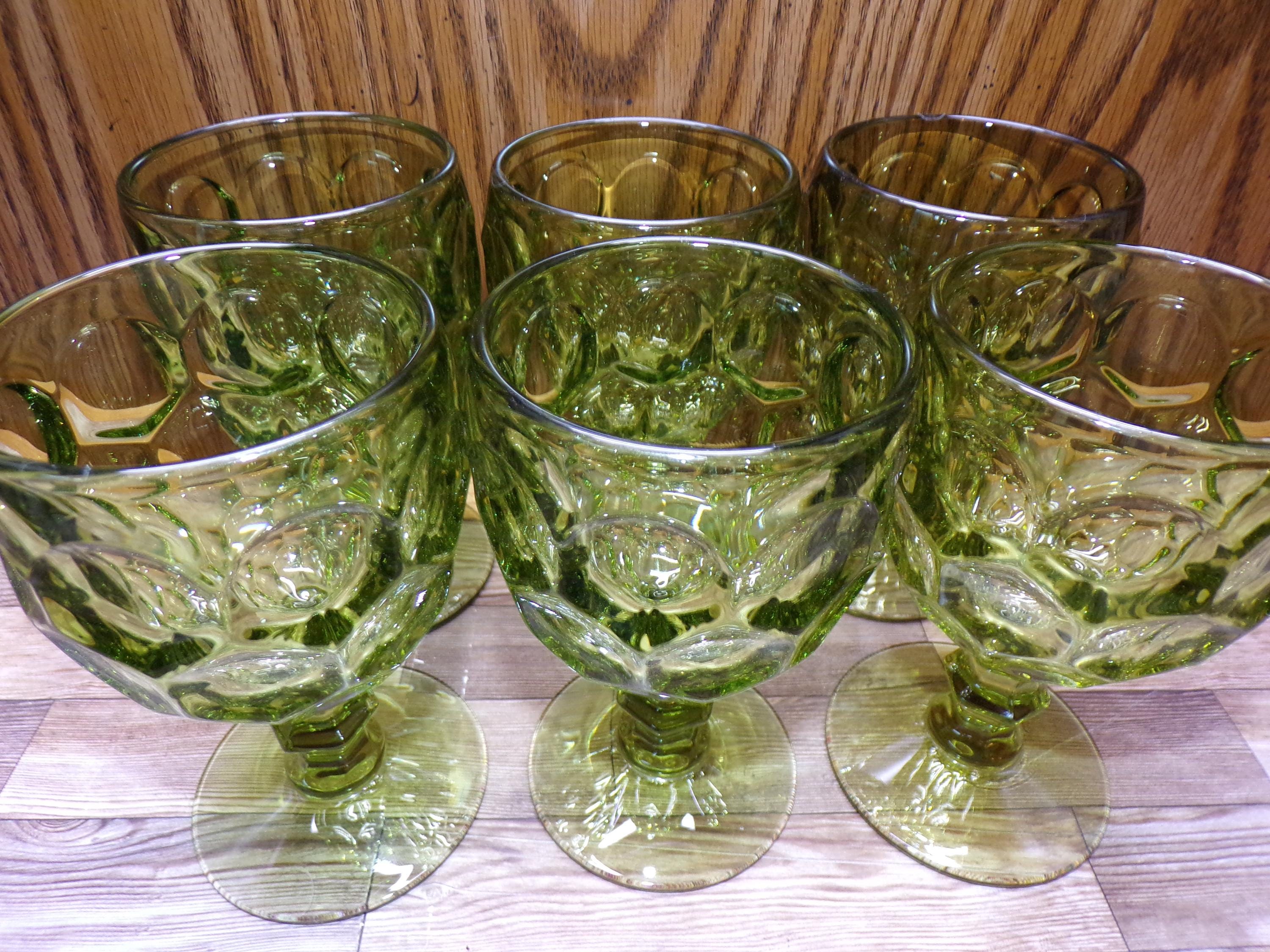 2511 Vintage Imperial Glass Provincial Green Thumbprint 5.5" Footed Goblets Set of 6 - Great Condition