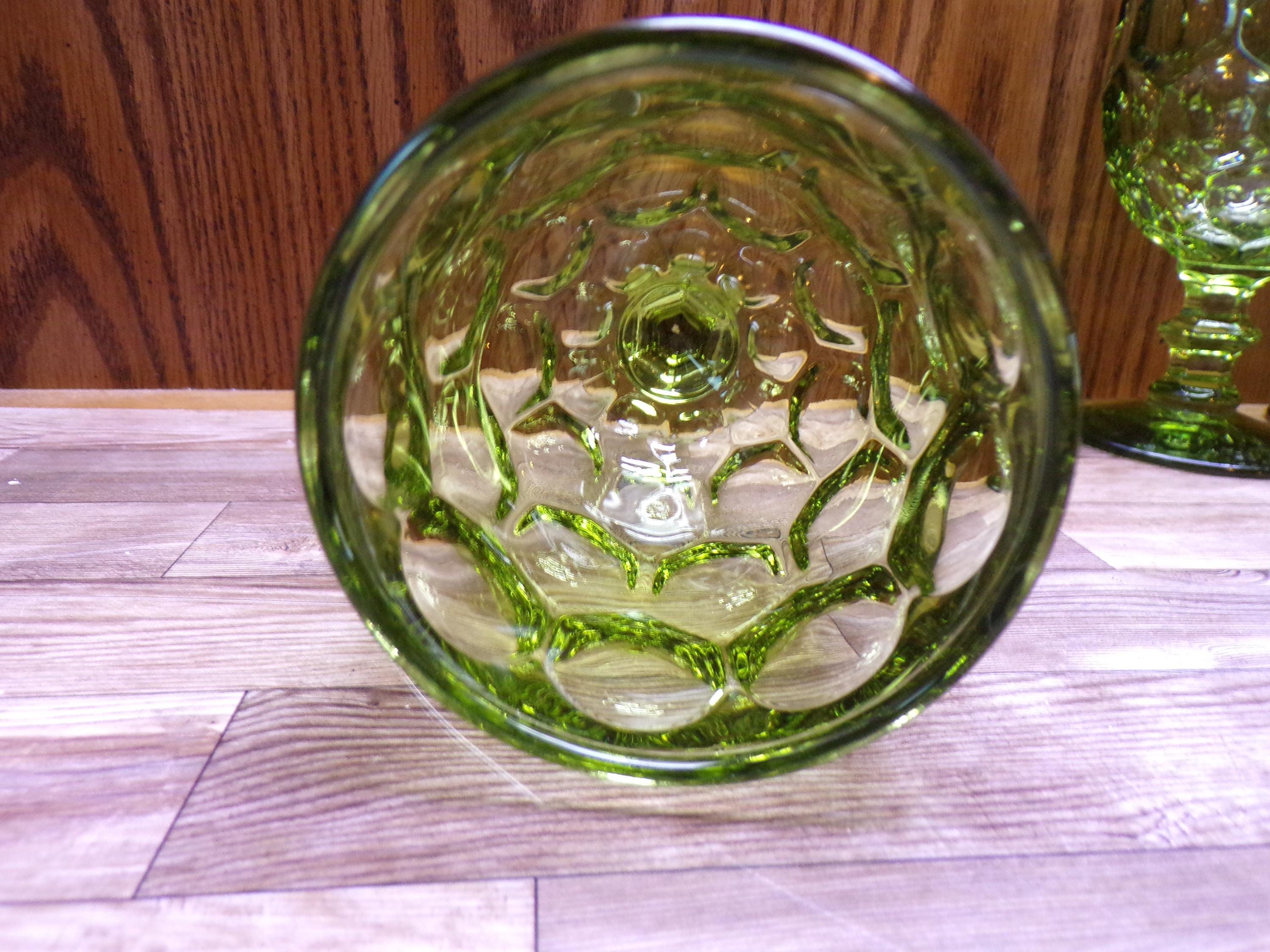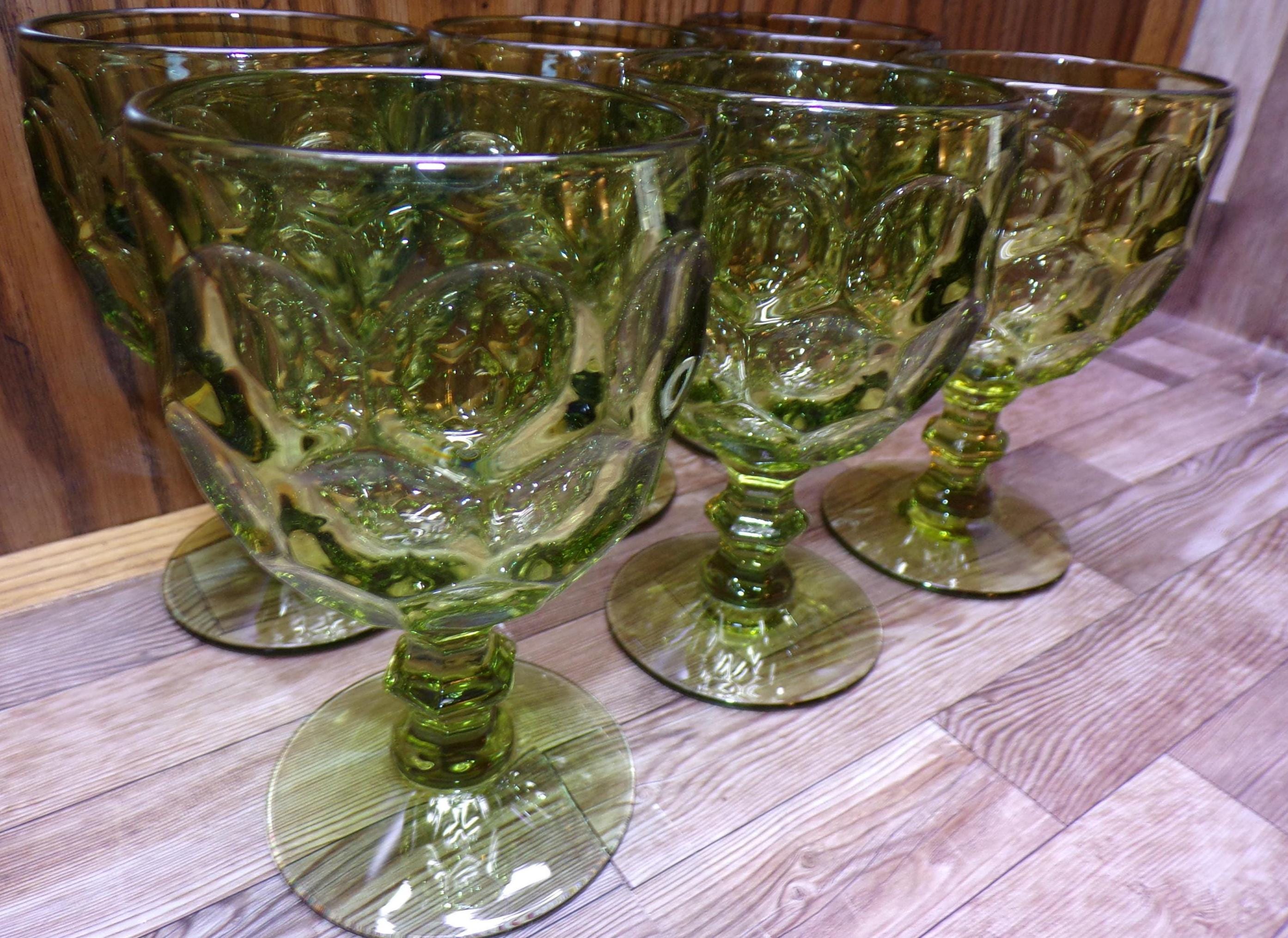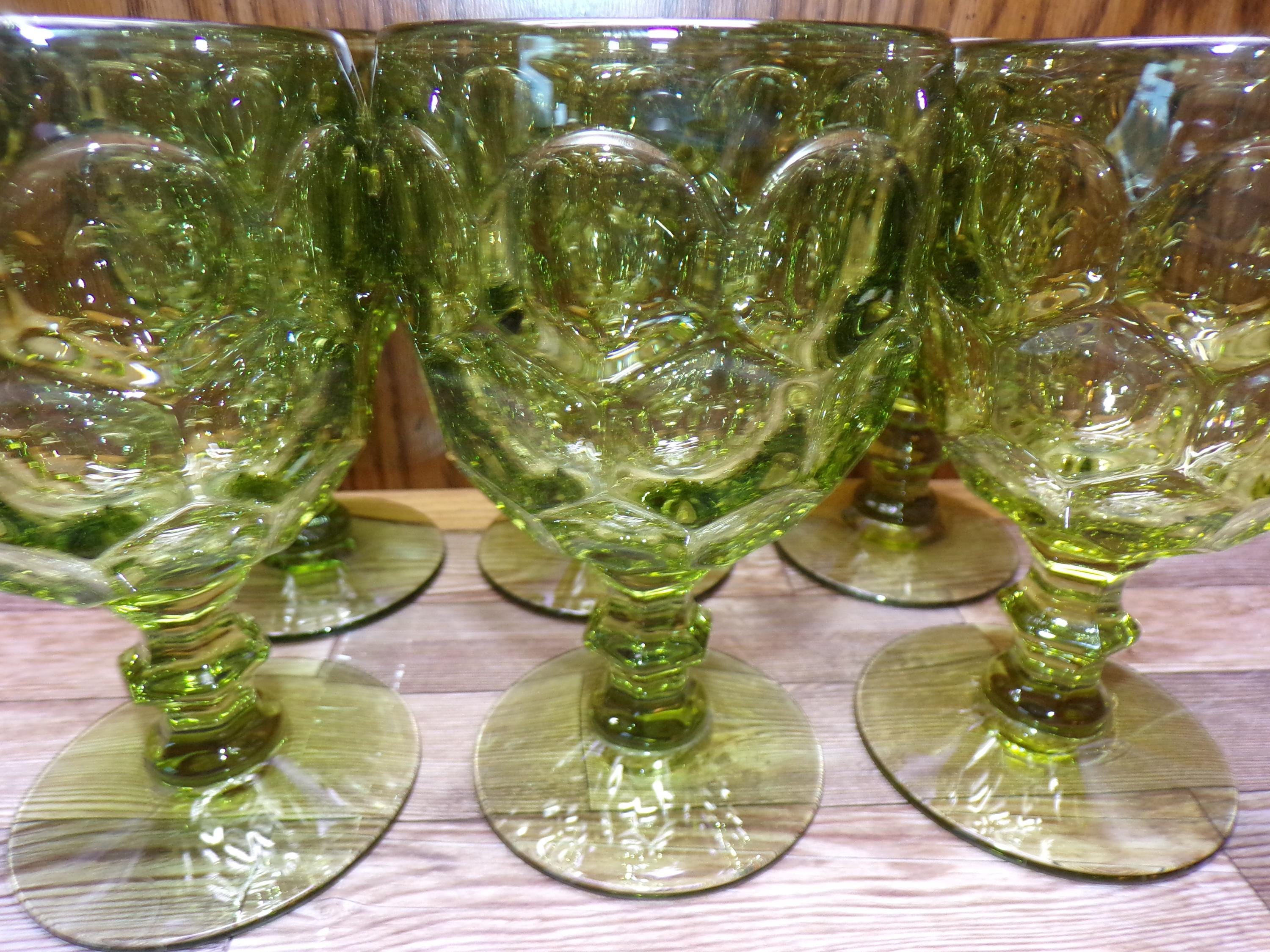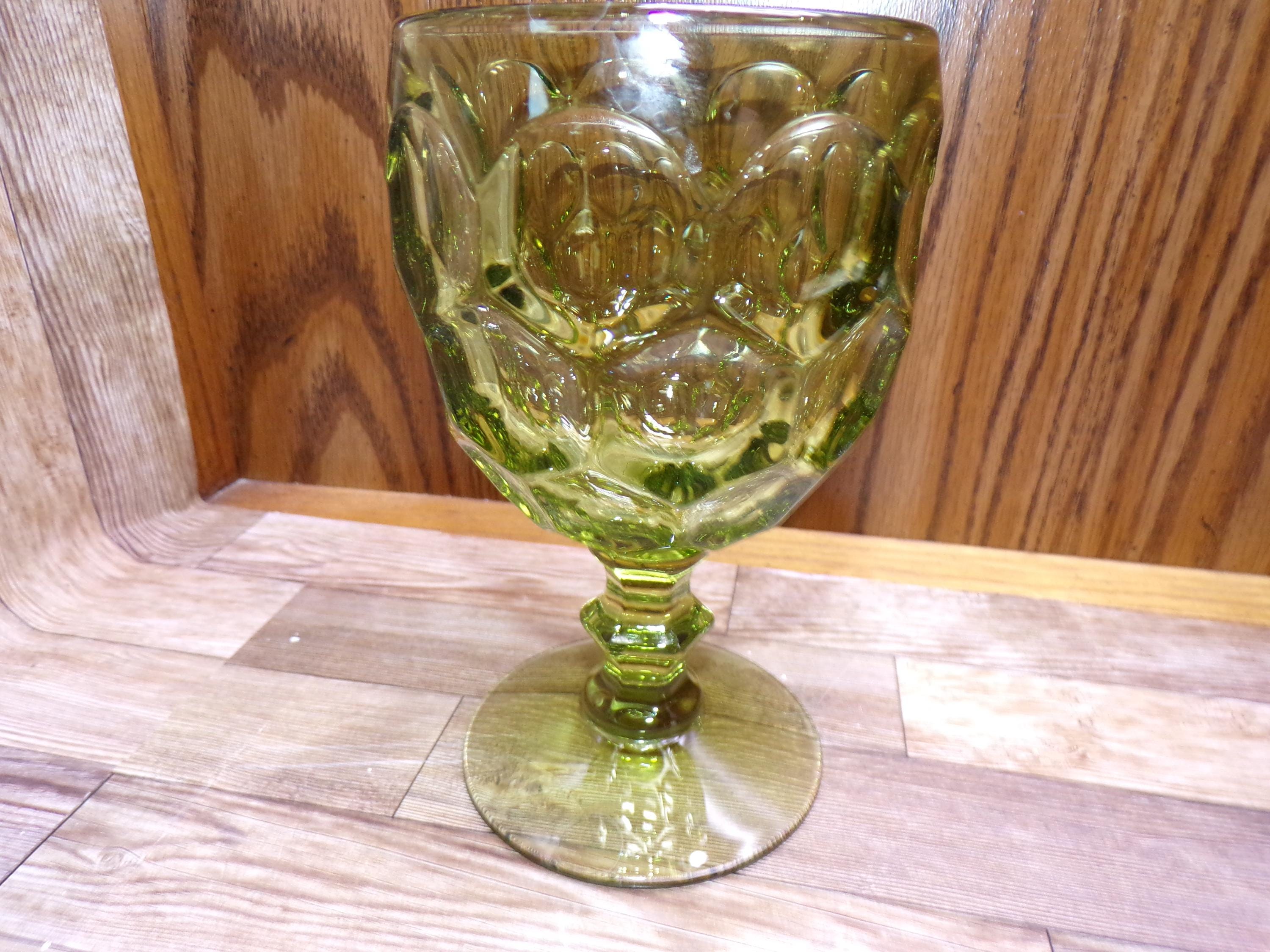 2511 Vintage Imperial Glass Provincial Green Thumbprint 5.5" Footed Goblets Set of 6 - Great Condition