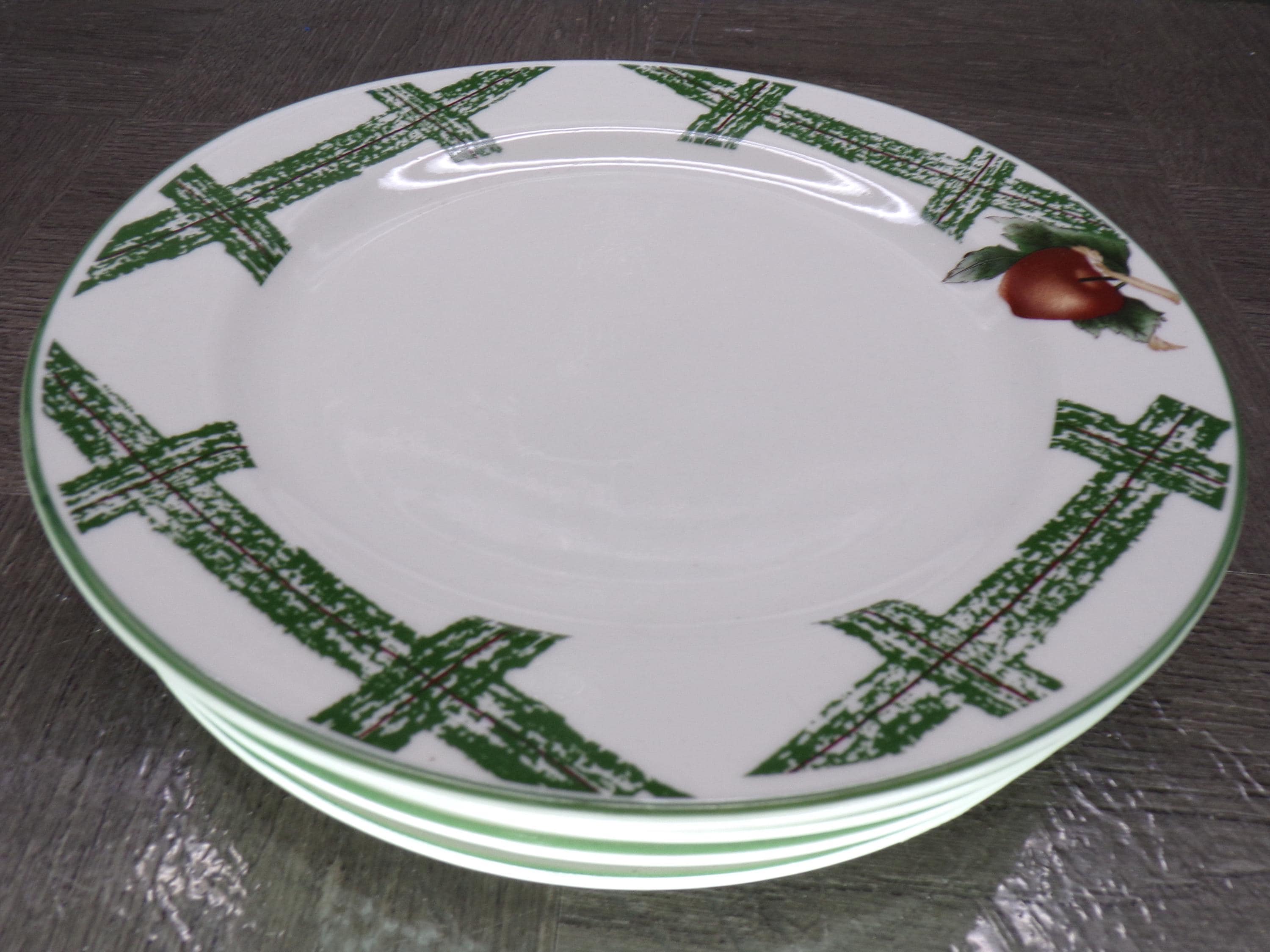 2511 Citation Cades Cove Collection Orchard Apple Stoneware 7.5" Plate Set of 4 Green Band Rim Microwave, Oven, Dish Safe - Great Condition