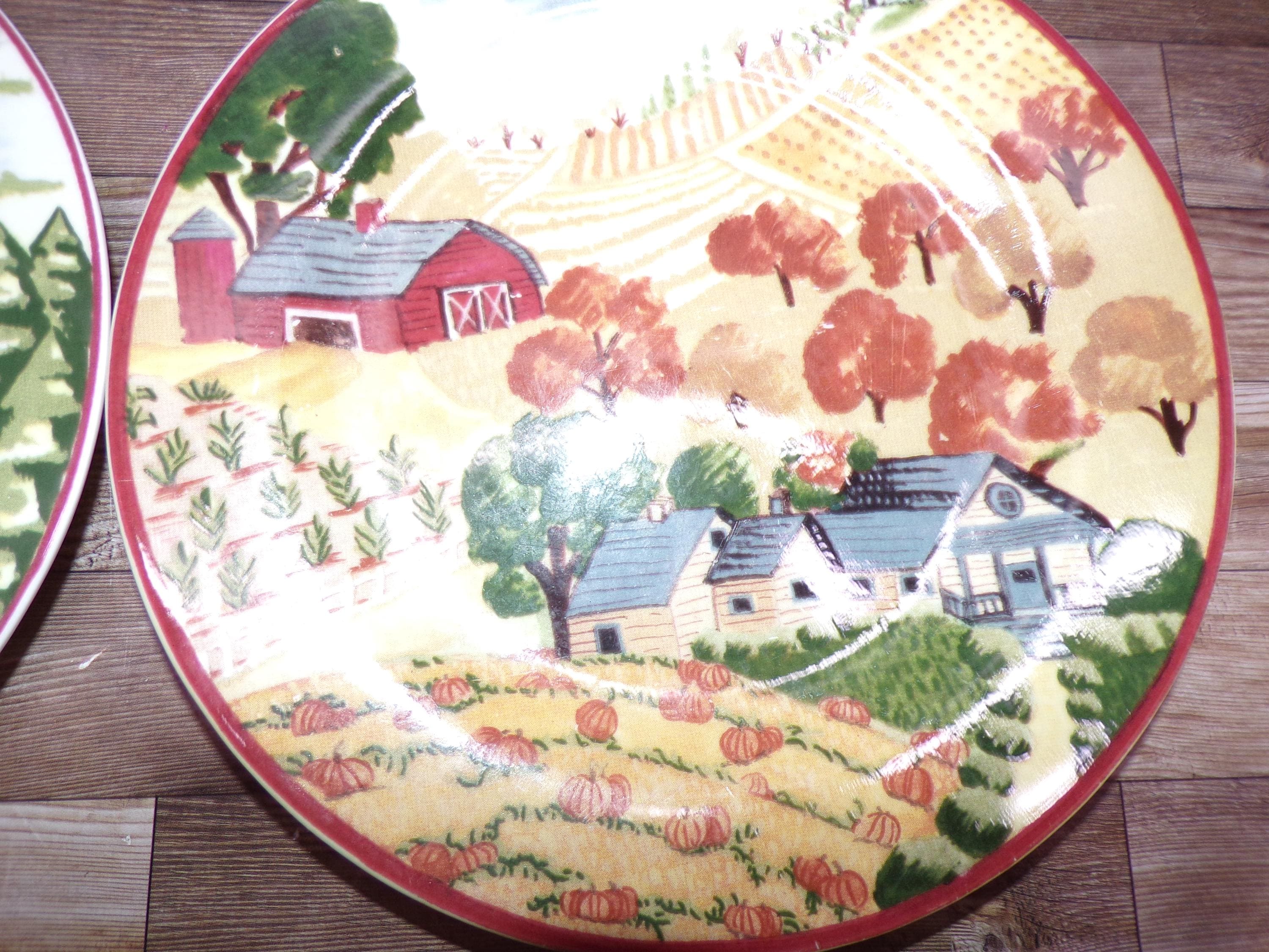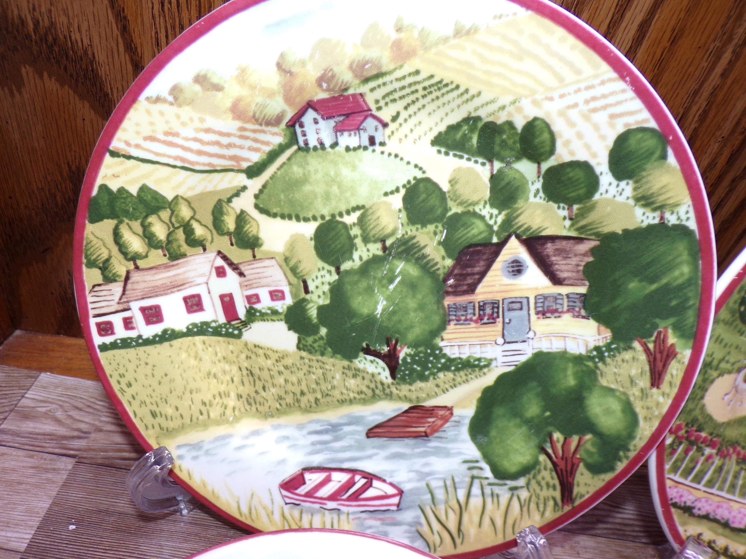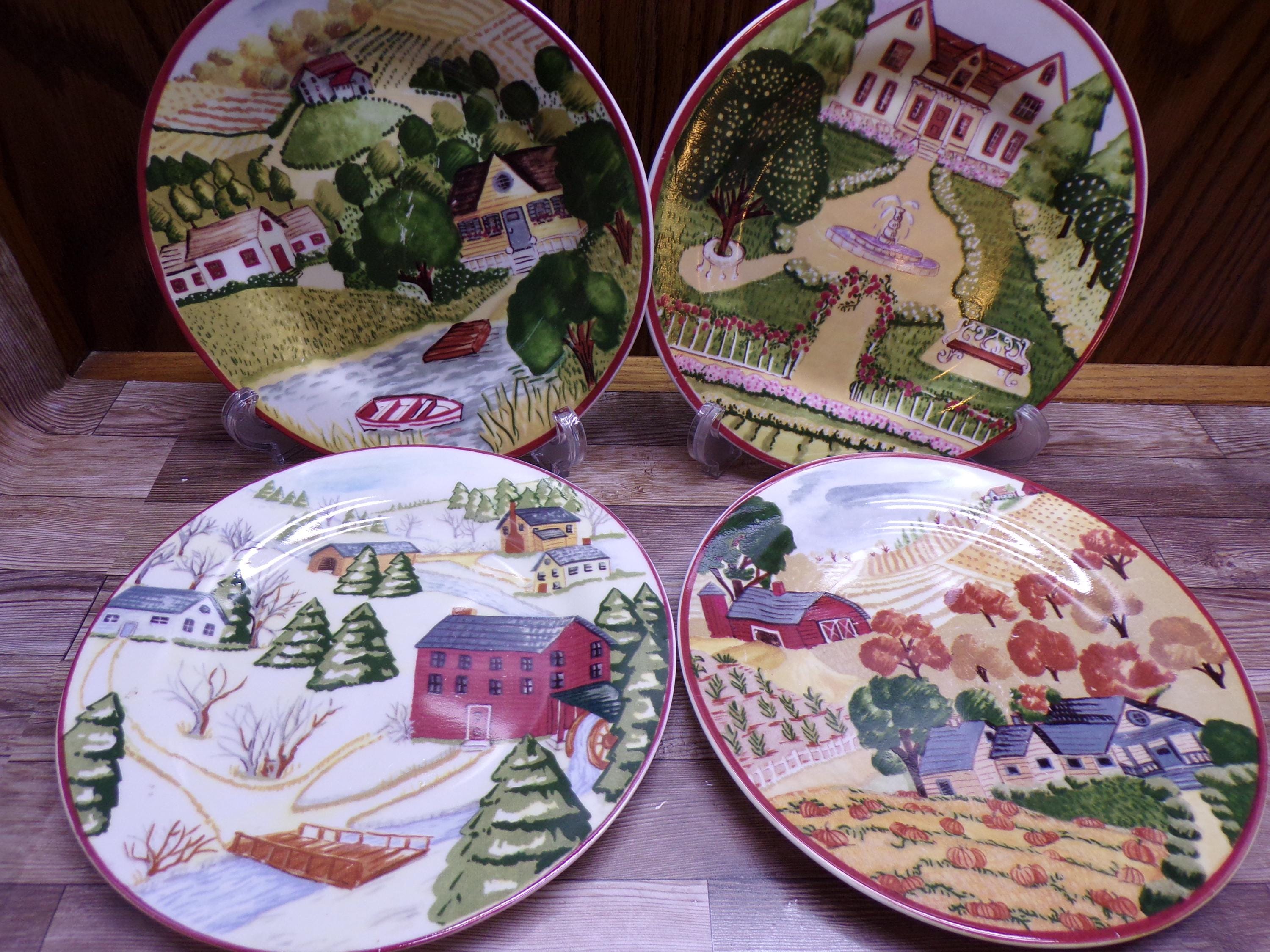 2510 Gibson Housewares House & Farm 7.75" Lunch / Snack Plates Set of 4 -Good Condition Some Scratches