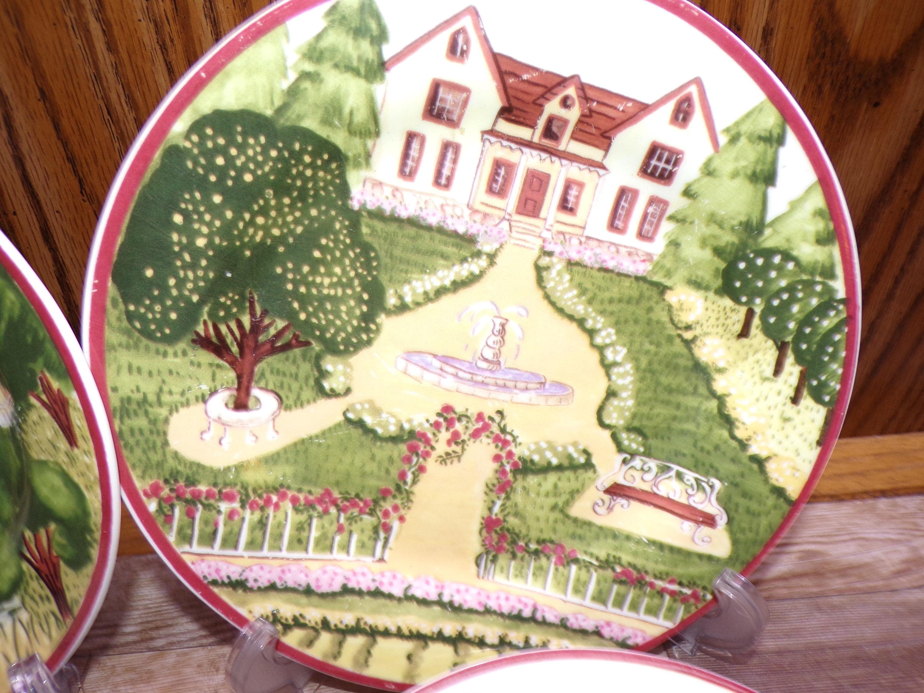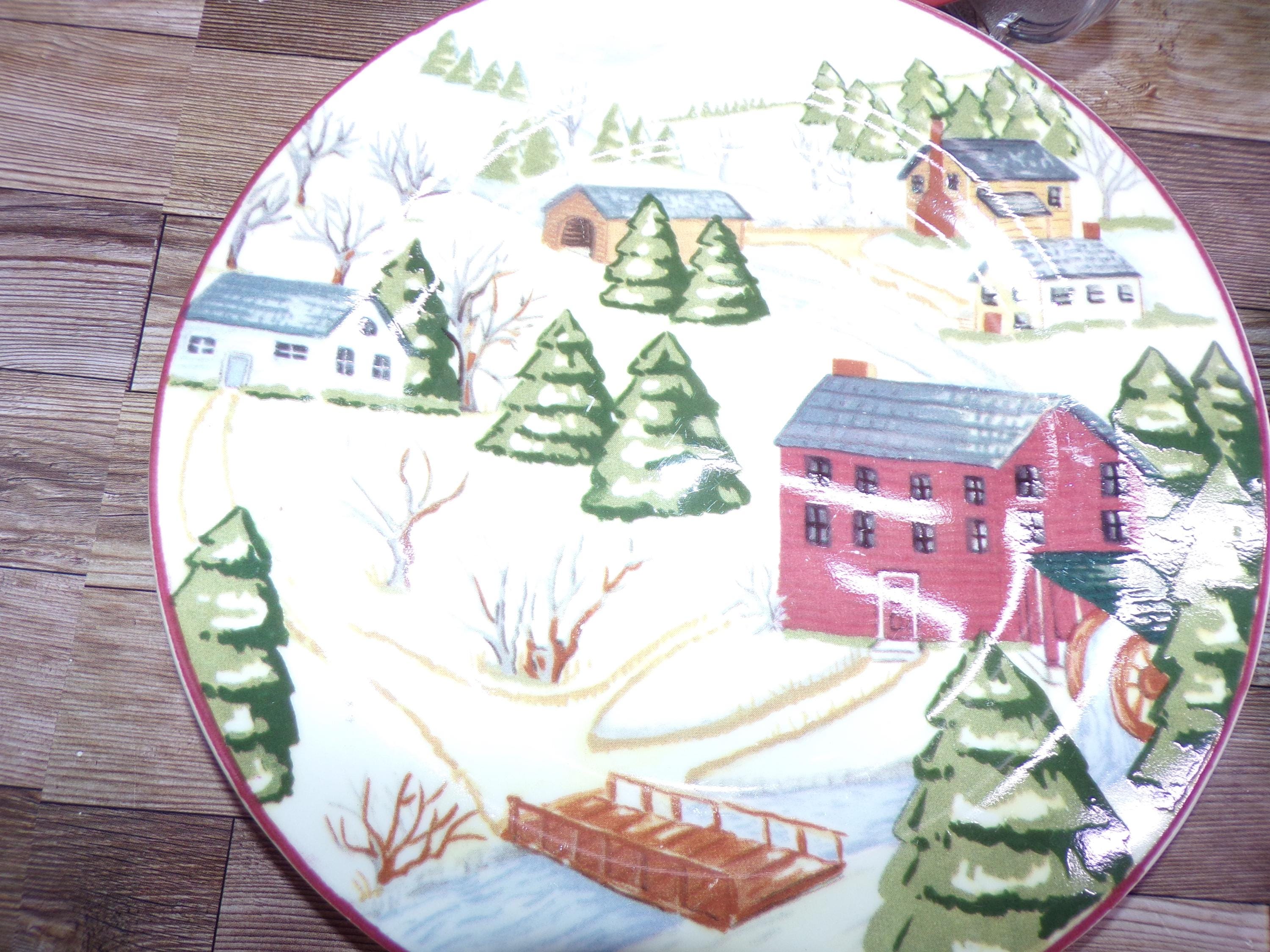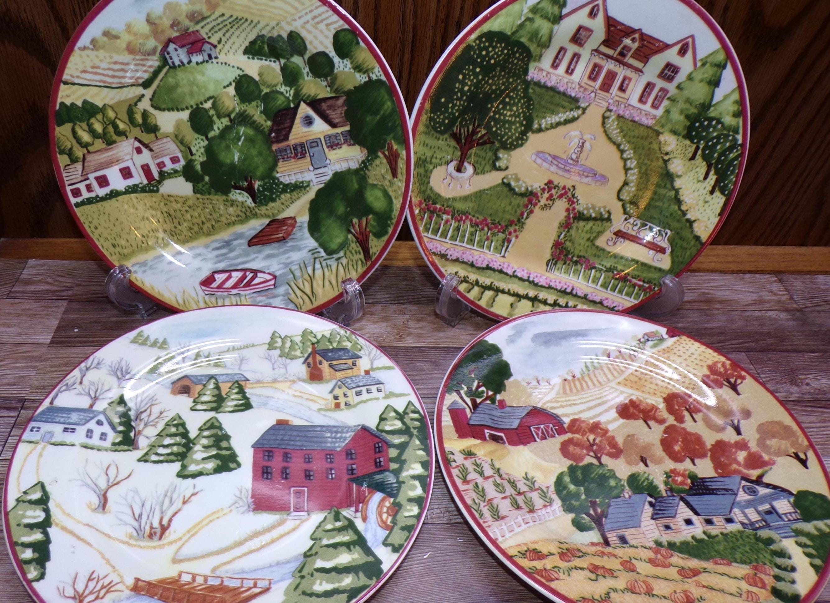 2510 Gibson Housewares House & Farm 7.75" Lunch / Snack Plates Set of 4 -Good Condition Some Scratches