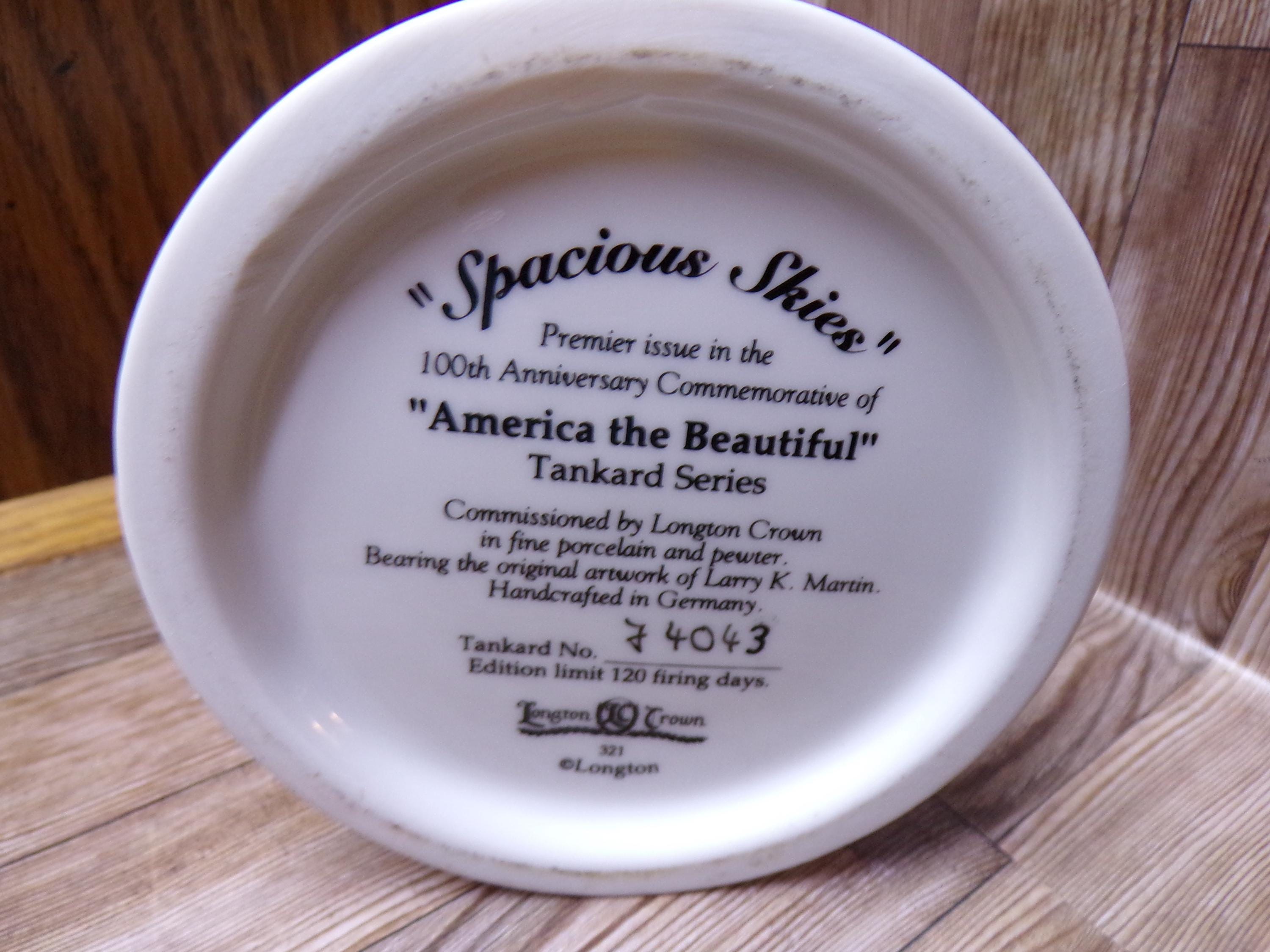 2511 Spacious Skies America the Beautiful Tankard Series 100th Anniversary Stein Longton Crown Artwork by Larry Martin - Great Condition