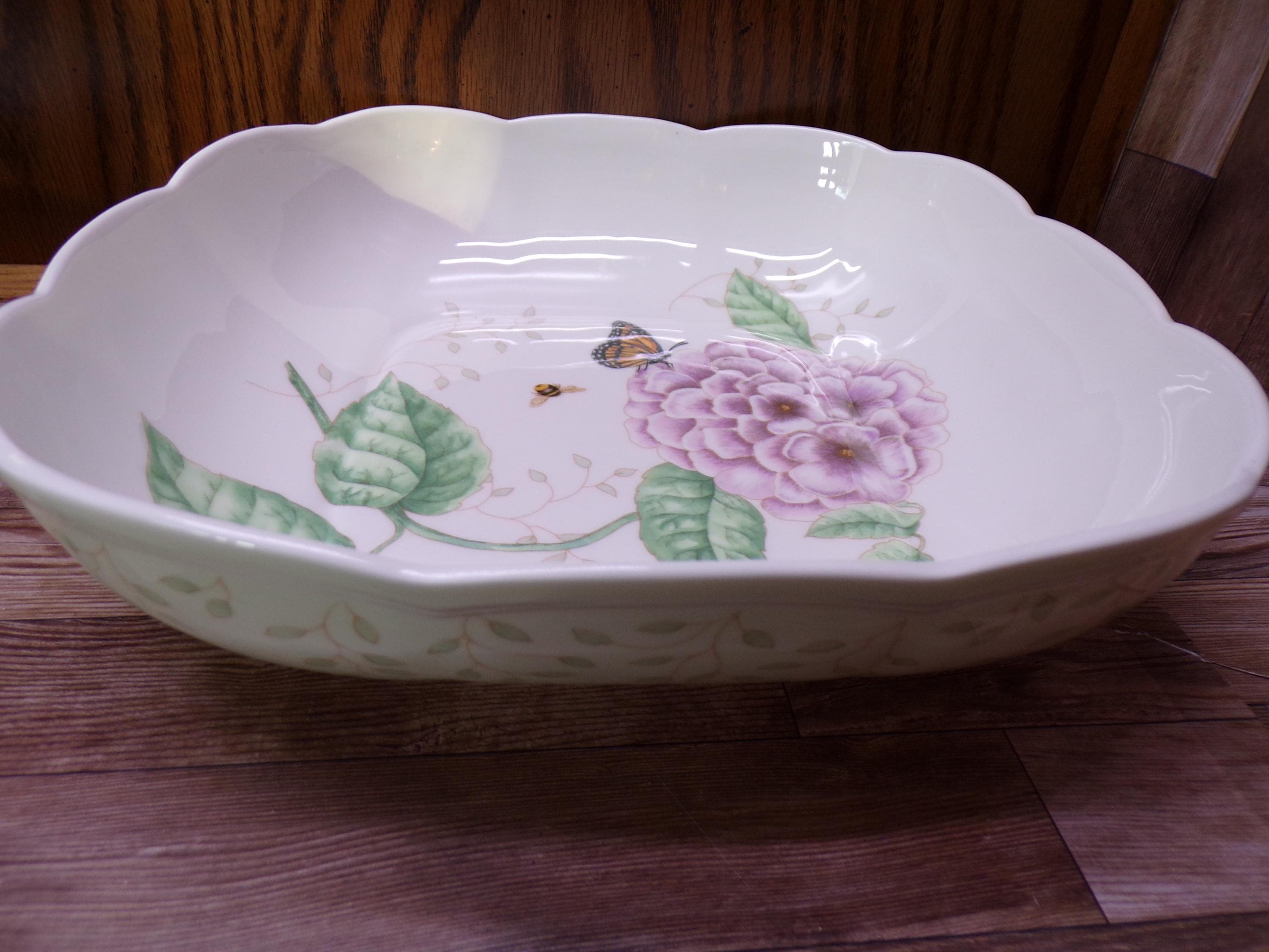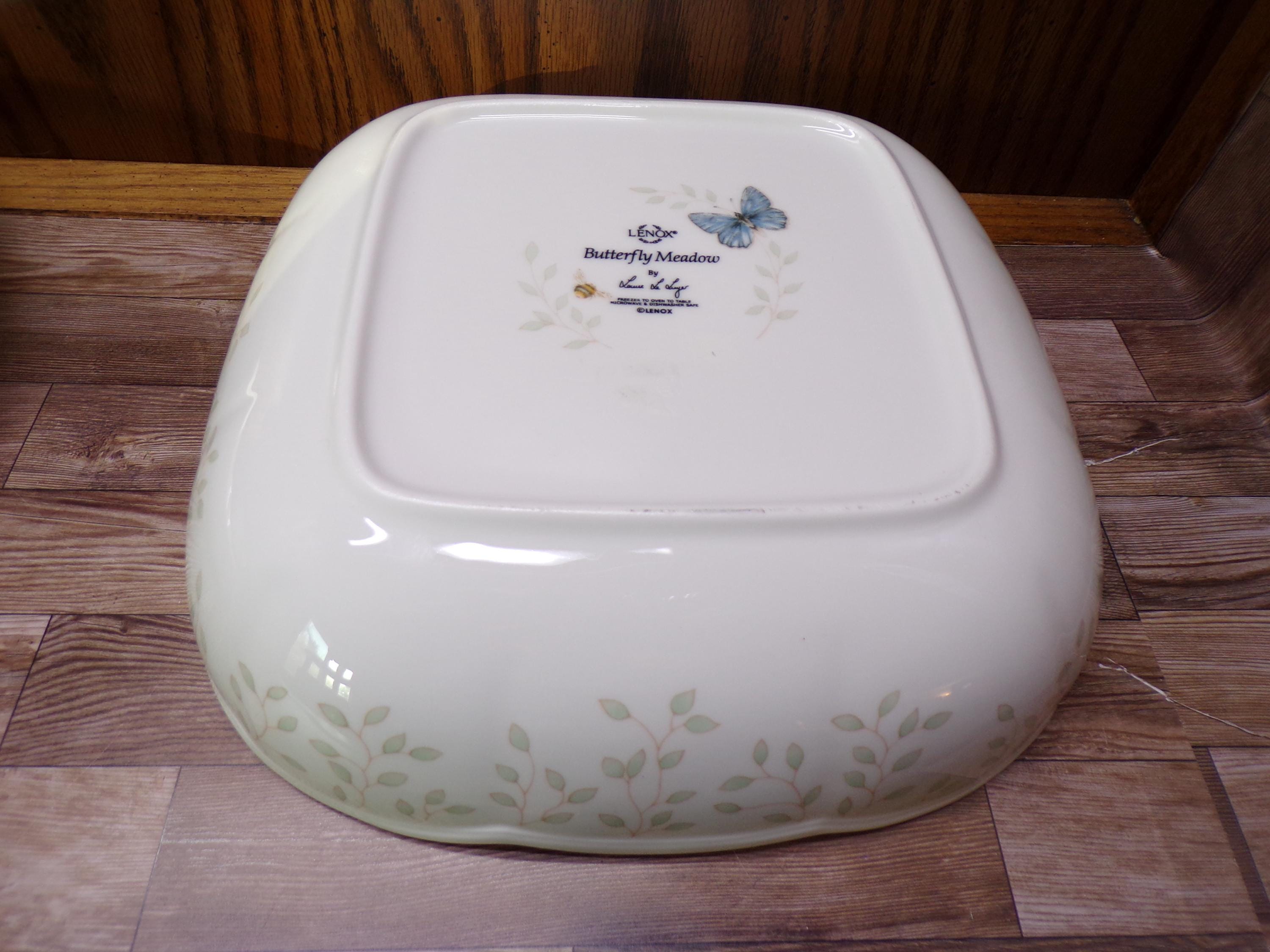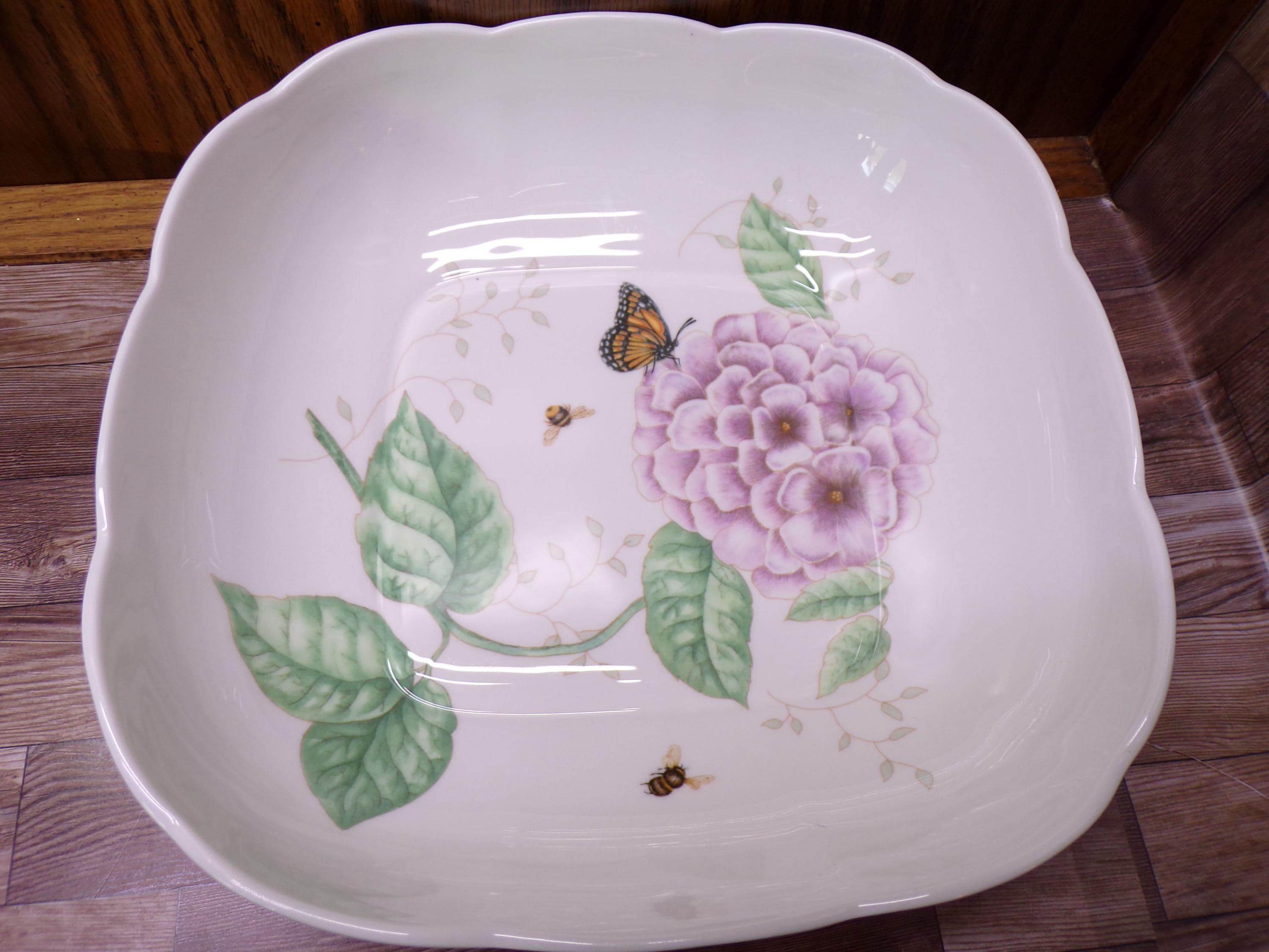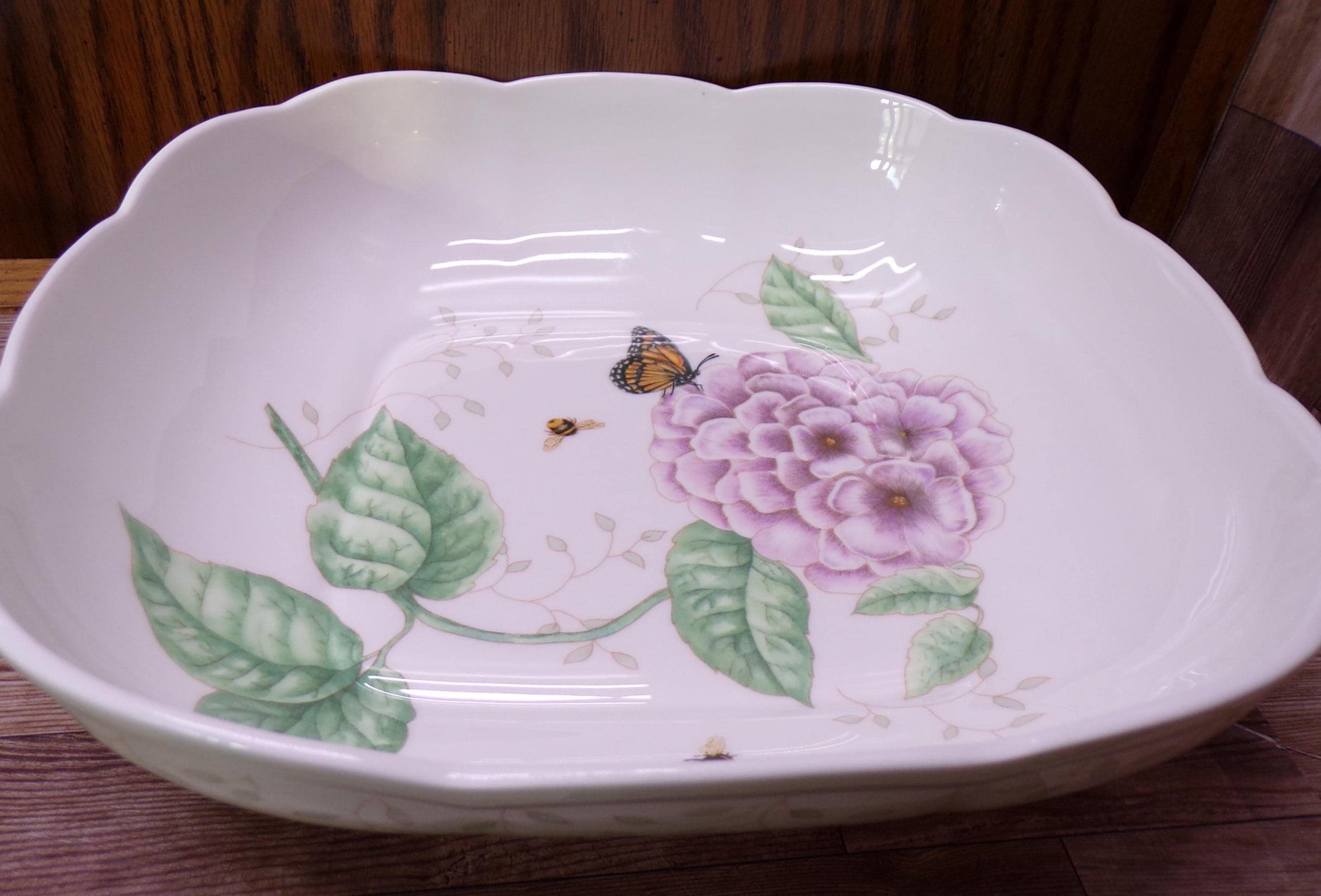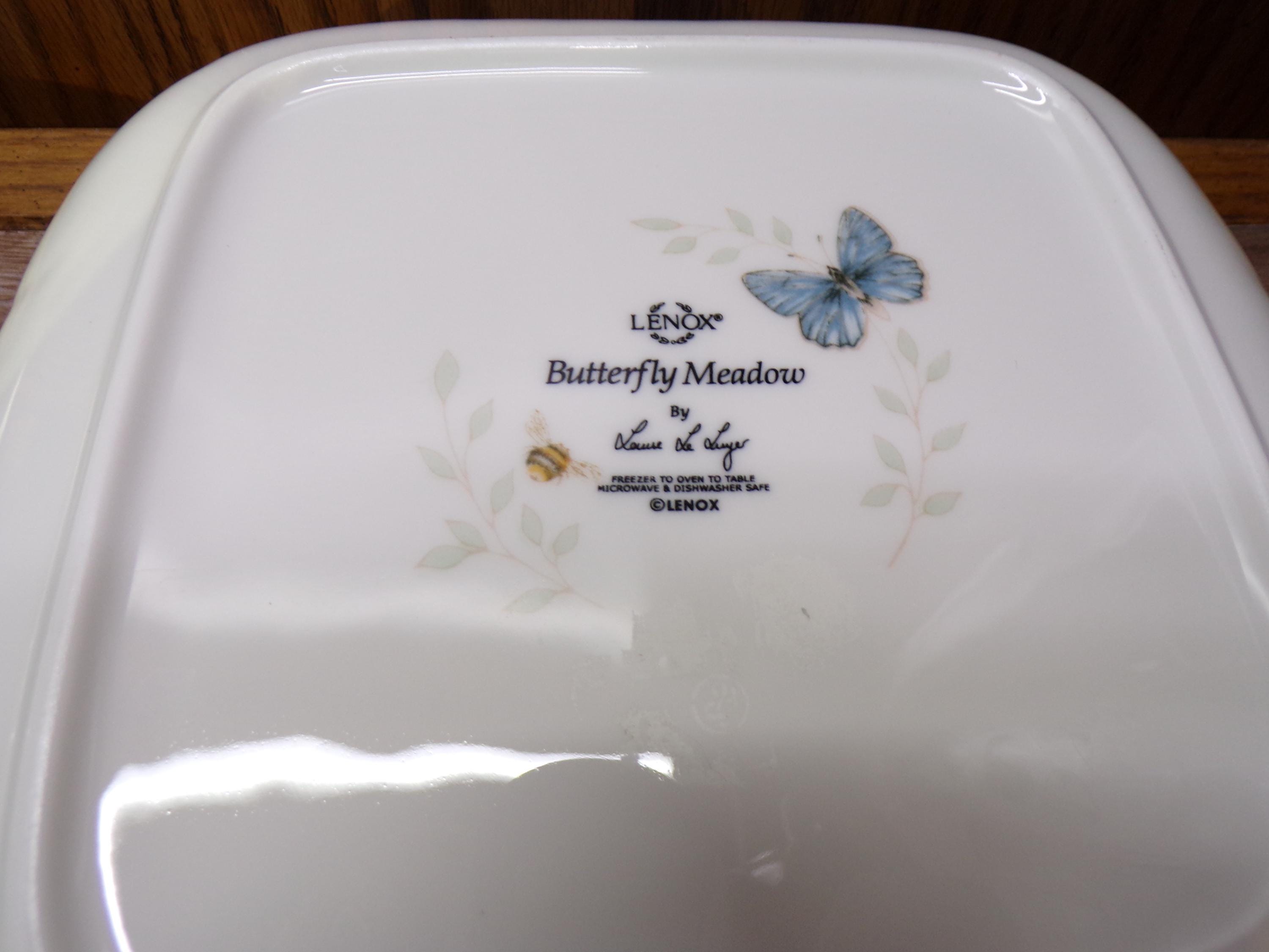 2511 Lenox Butterfly Meadow by Louise Le Luyre Ultra Fine Porcelain 9.5" Square Baker Bowl 2.5" Deep - Great Condition