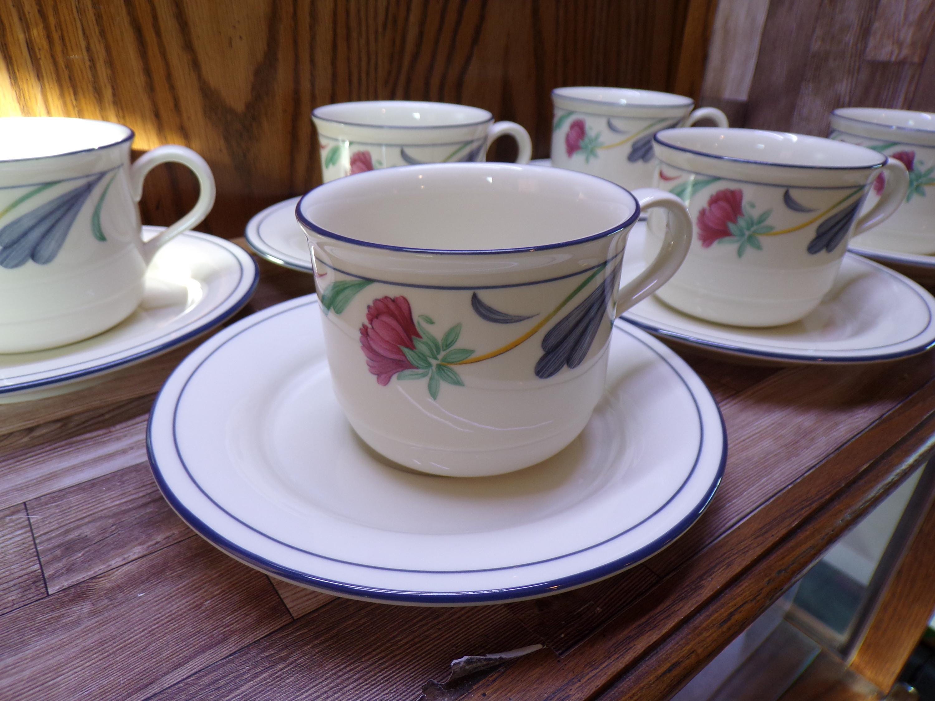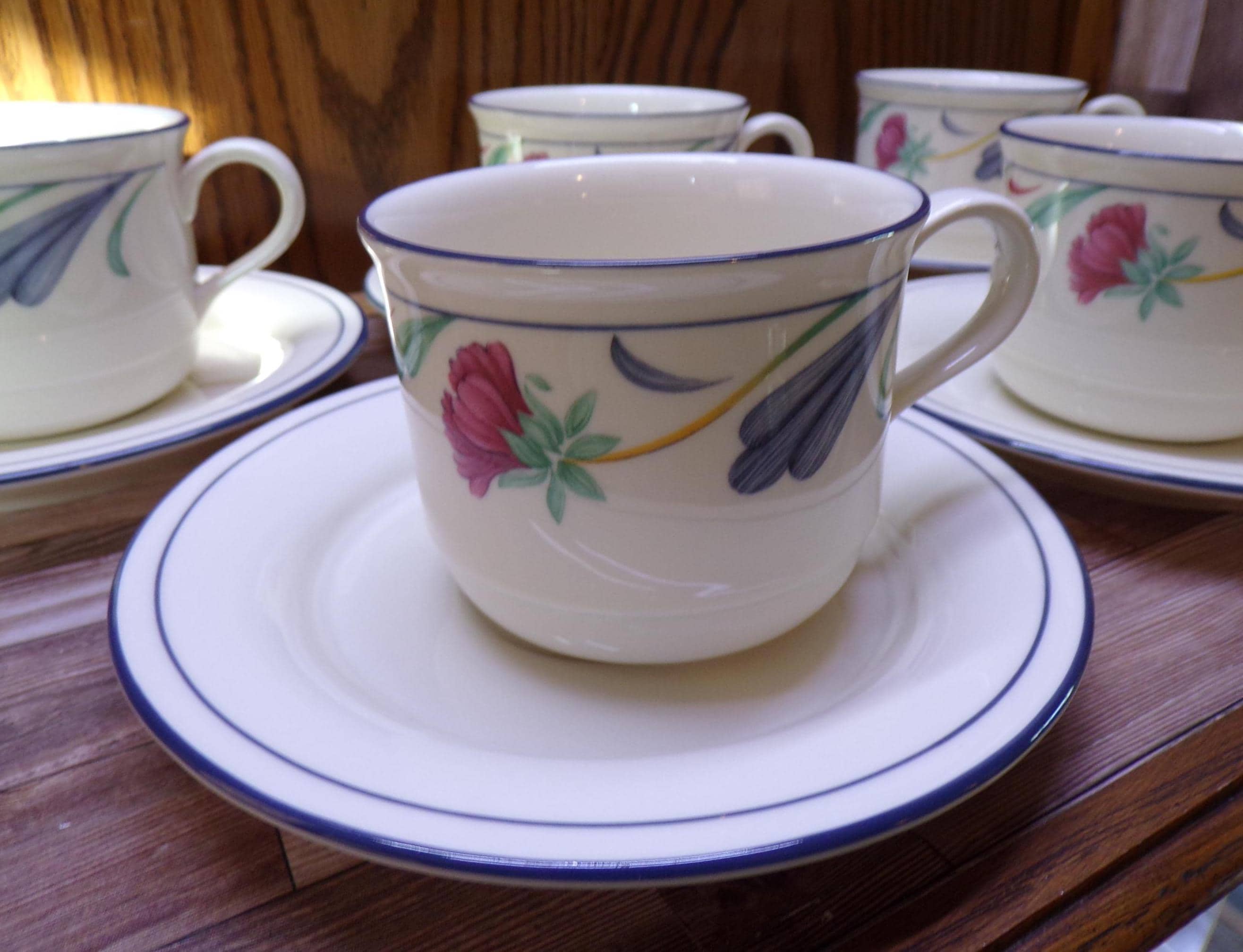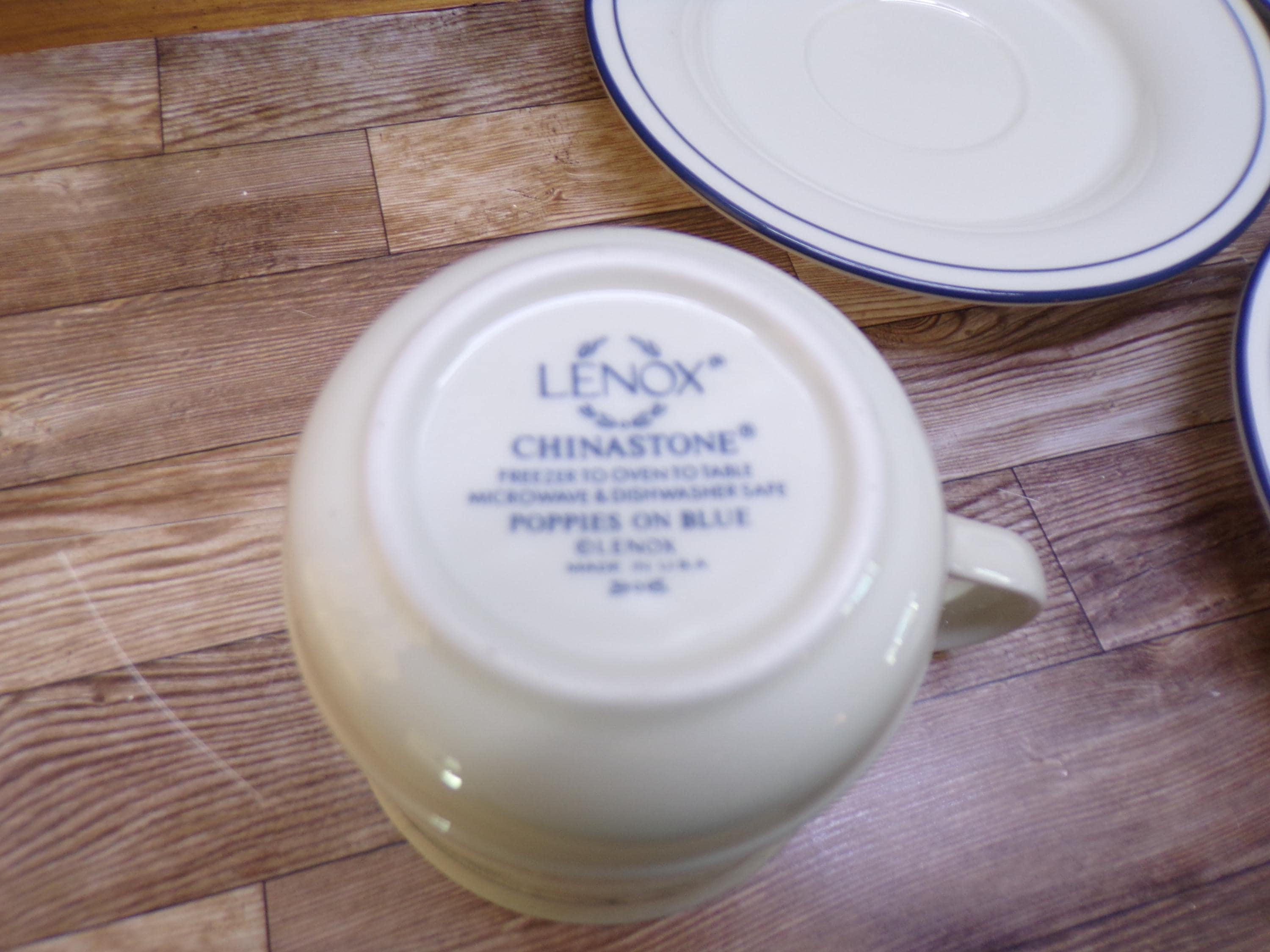 2511 Lenox China Stone Poppies on Blue 12 pc Set - (6) 8 oz Cups & (6) Saucers - Great Condition
