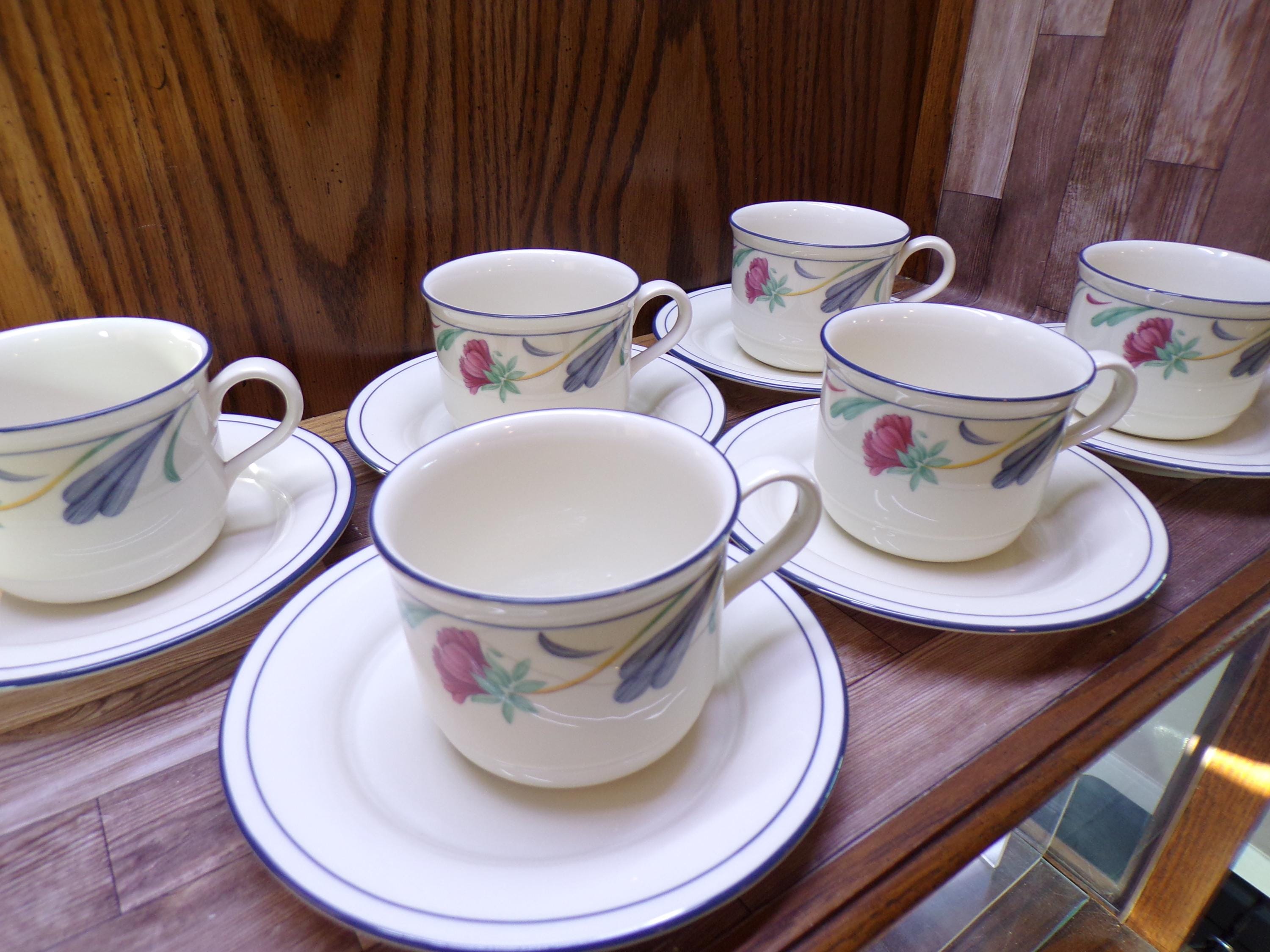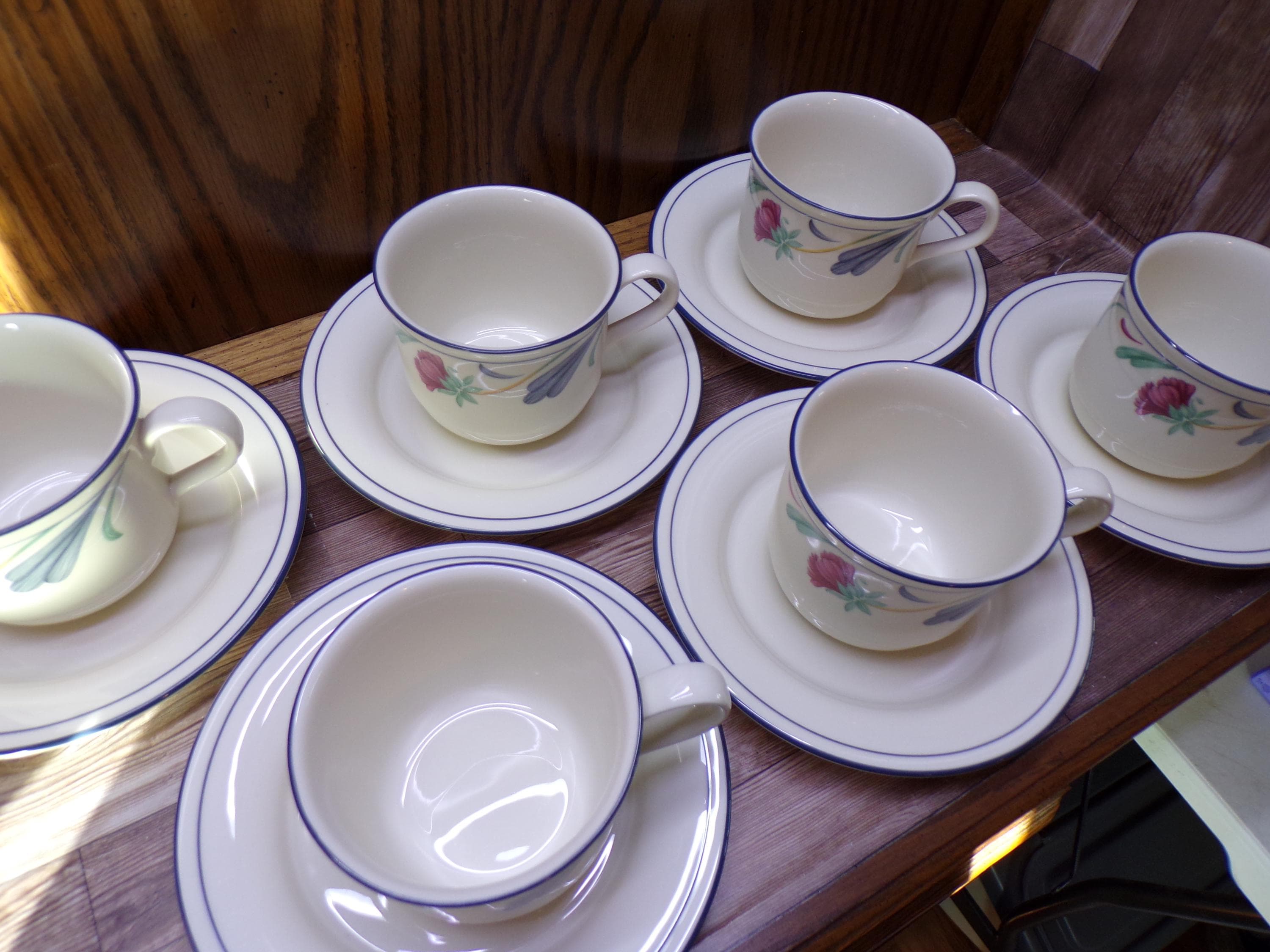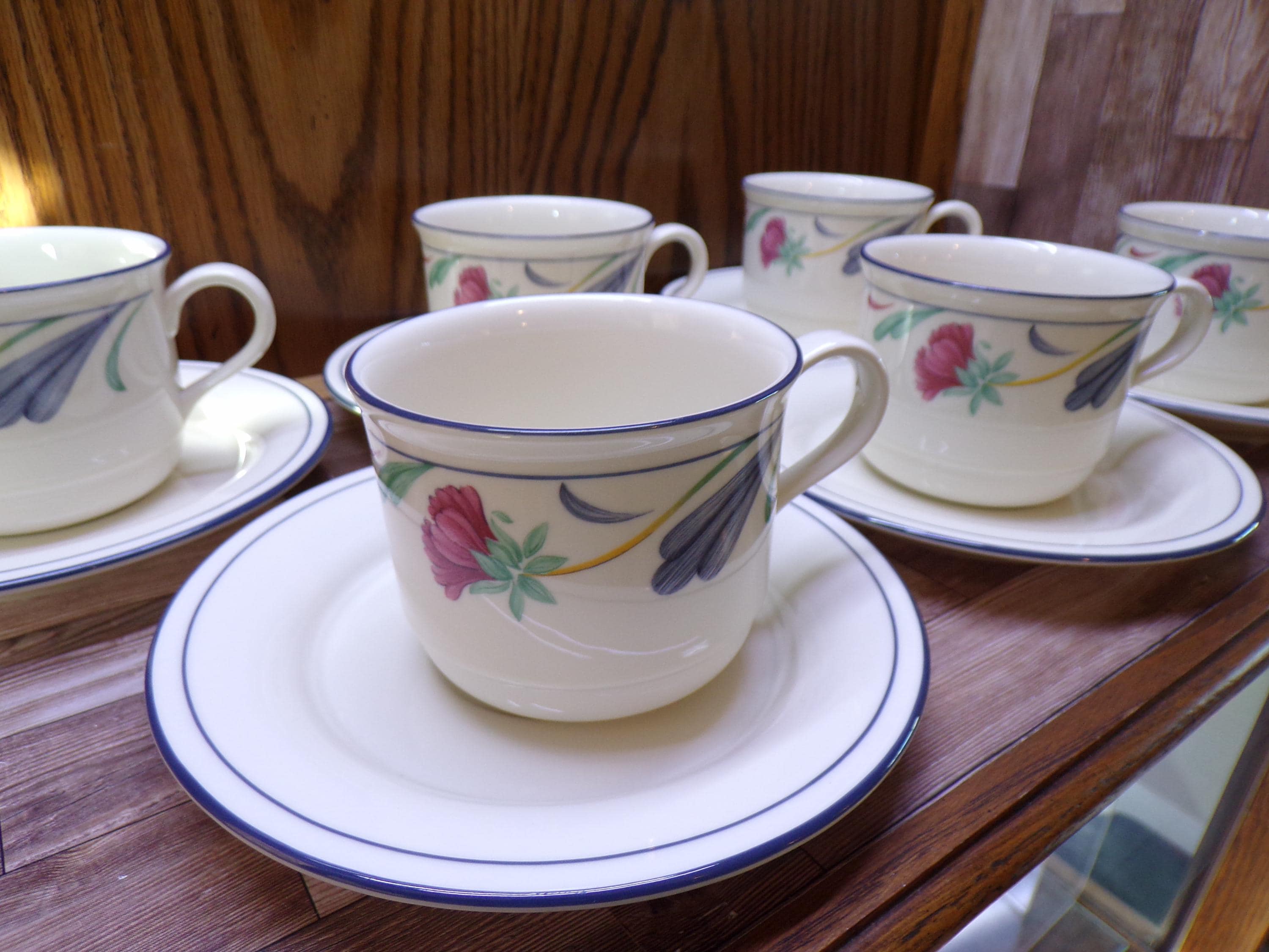 2511 Lenox China Stone Poppies on Blue 12 pc Set - (6) 8 oz Cups & (6) Saucers - Great Condition