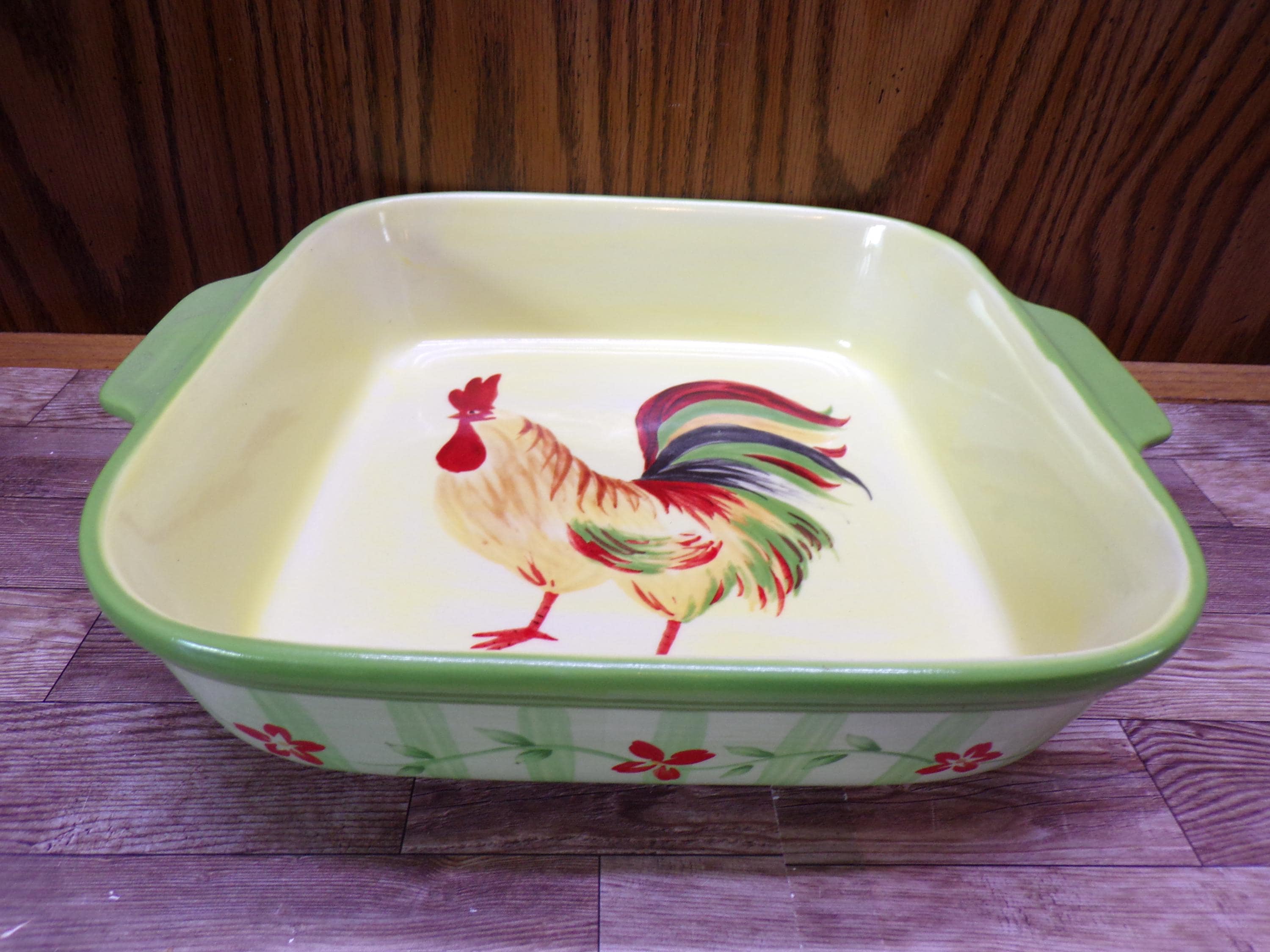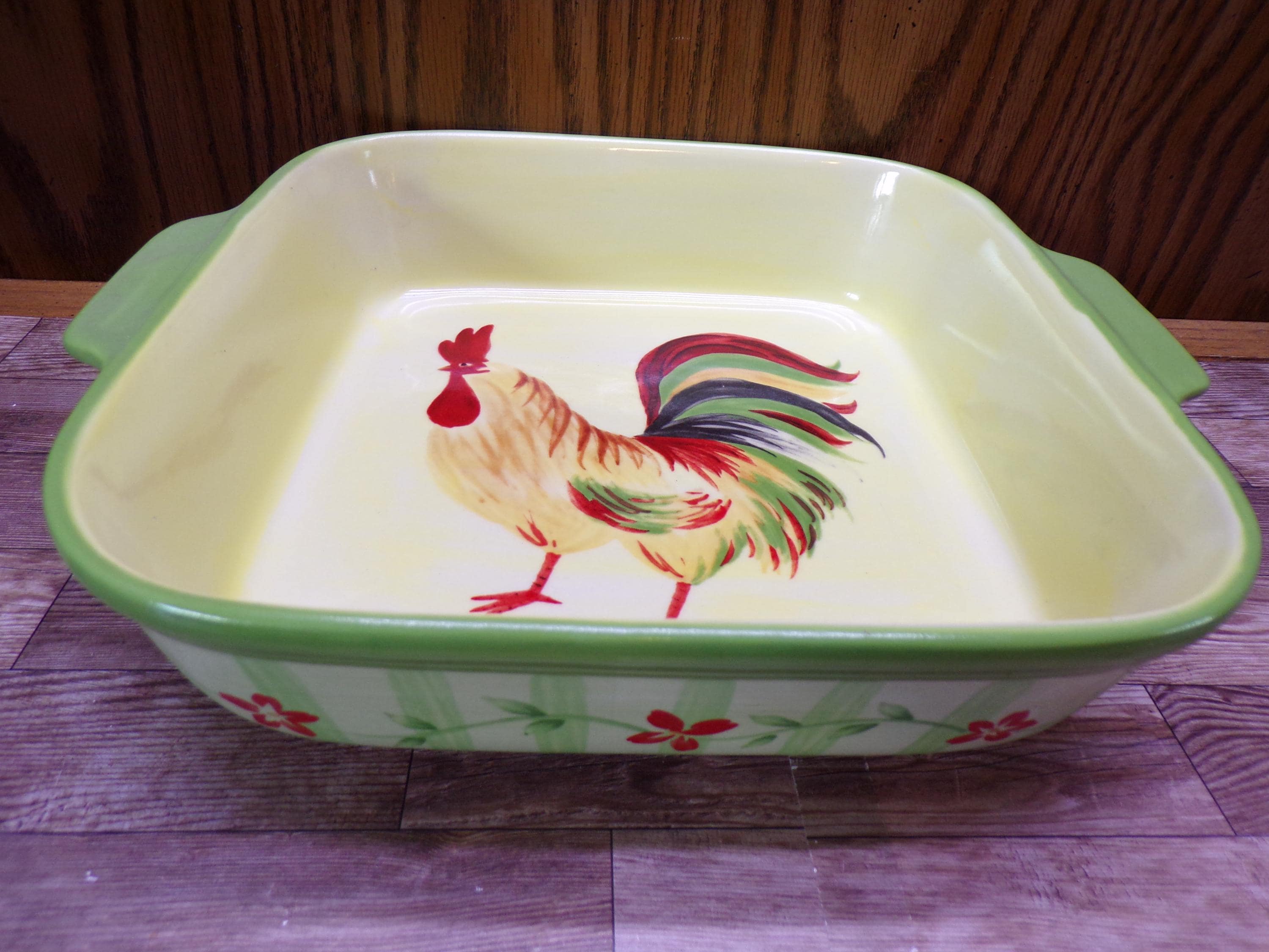 2511 Pfaltzgraff Daybreak Rooster Retired 9" Square Baker Casserole Pan - Great Condition