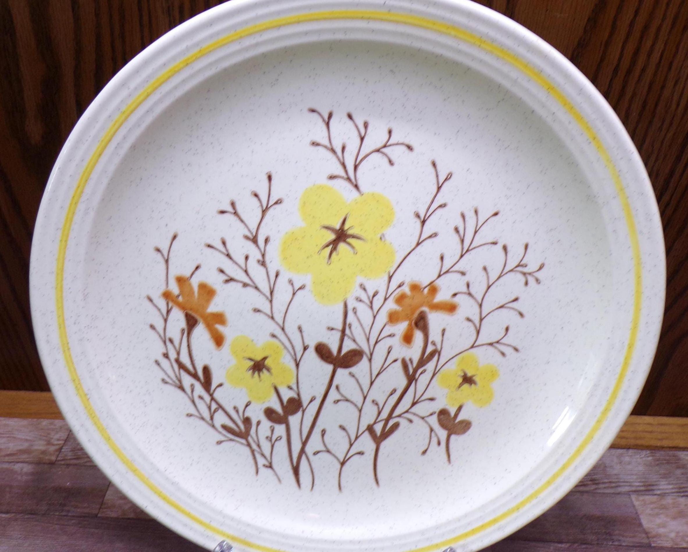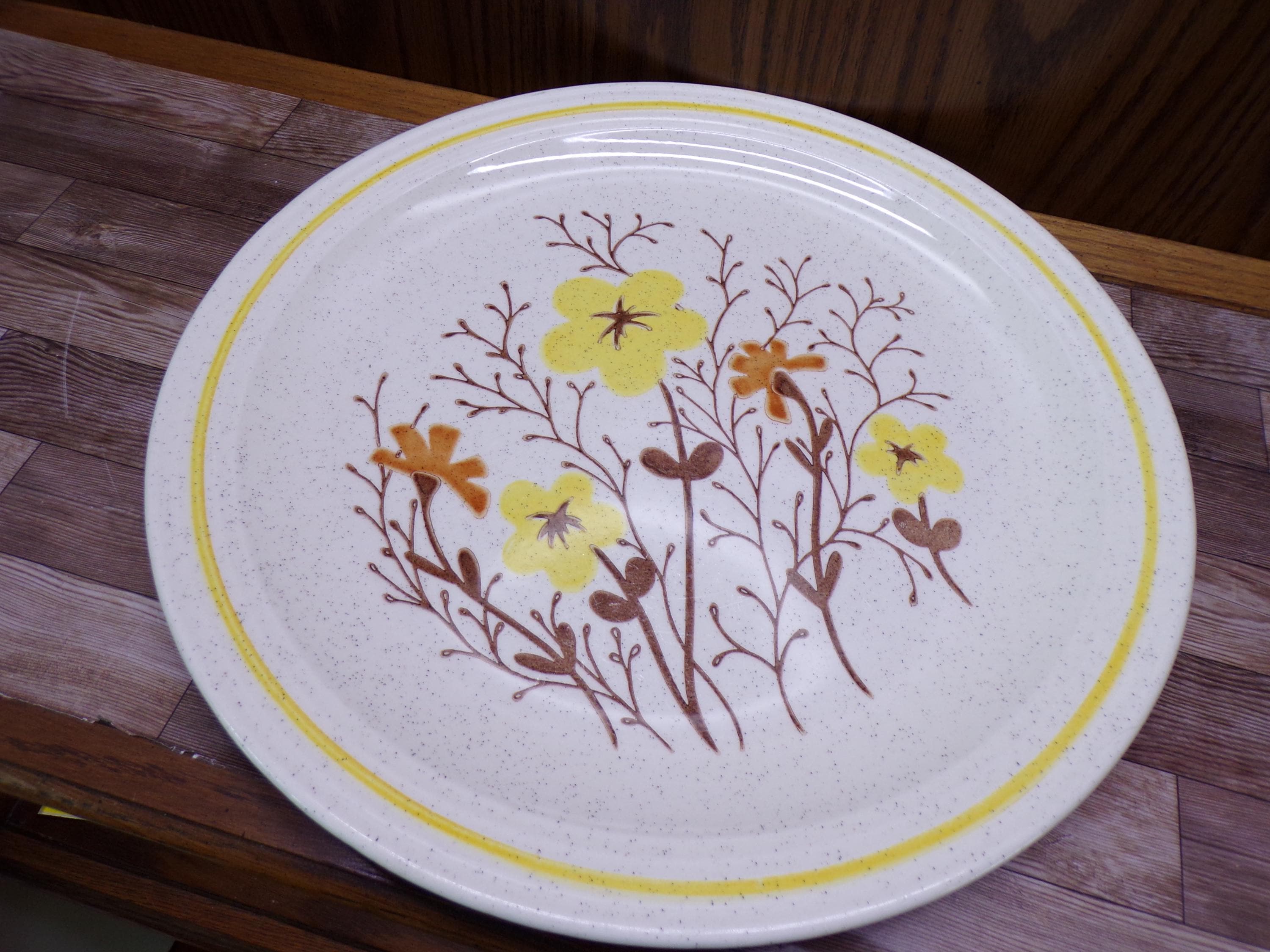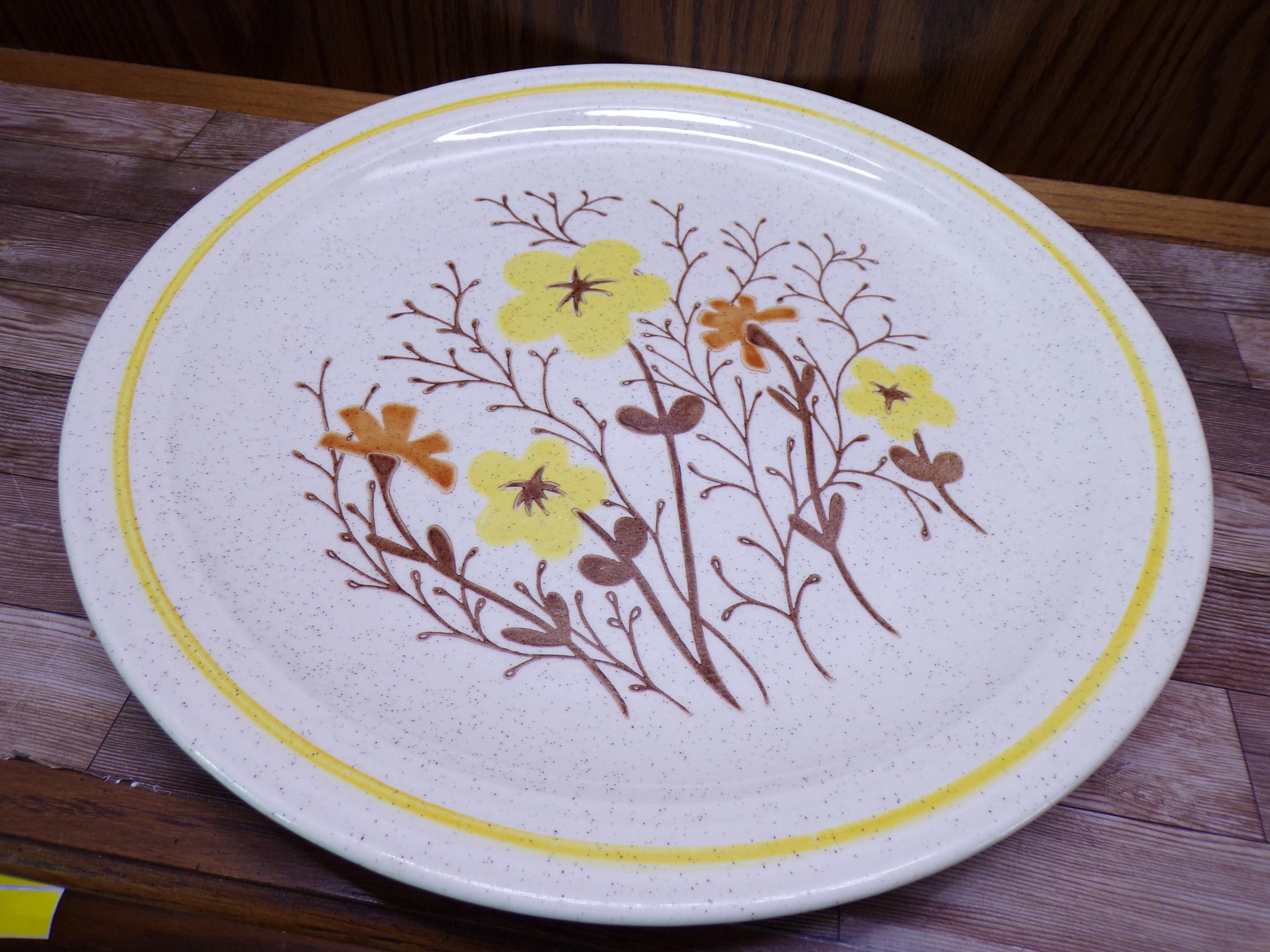 2511 Autumn Flowers on Sandstone Vintage Stoneware 12.25" Vintage Yellow & Orange Floral Chop Plate Platter - Great Condition
