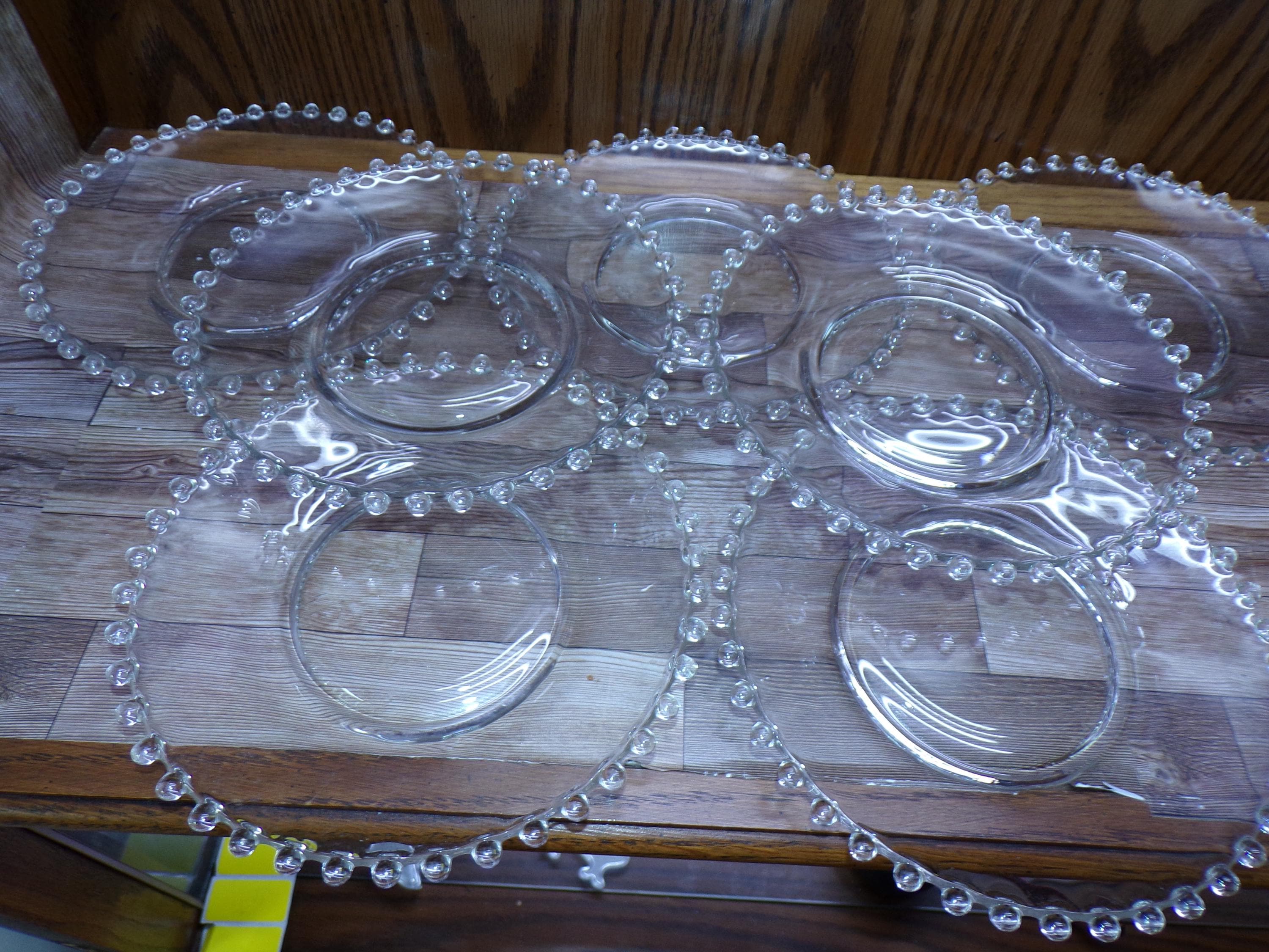 2511 Imperial Glass Candlewick Beaded Rim Clear Glass 7" Dessert / Snack Plates Set of 7 - Good Condition Light Scratches