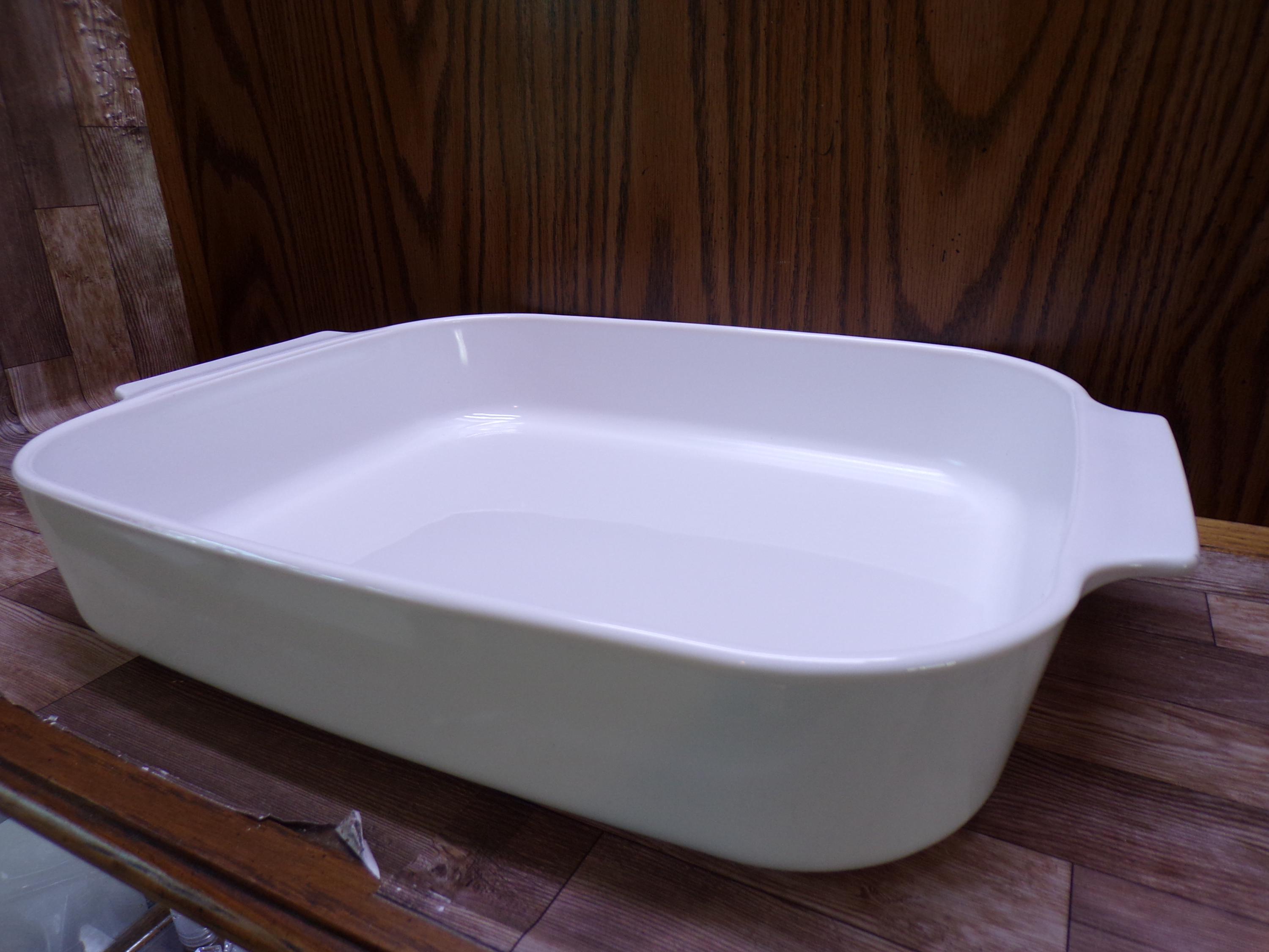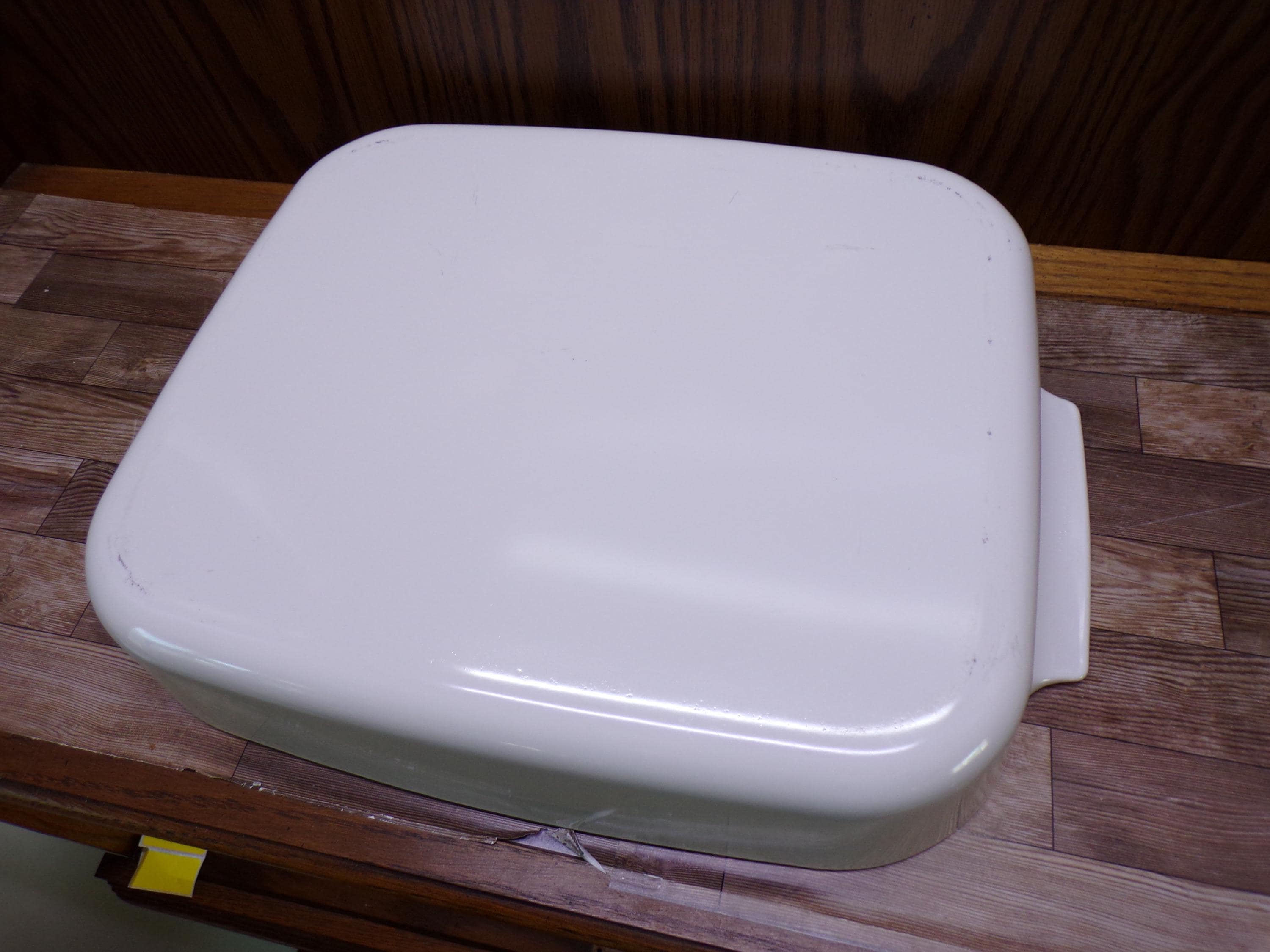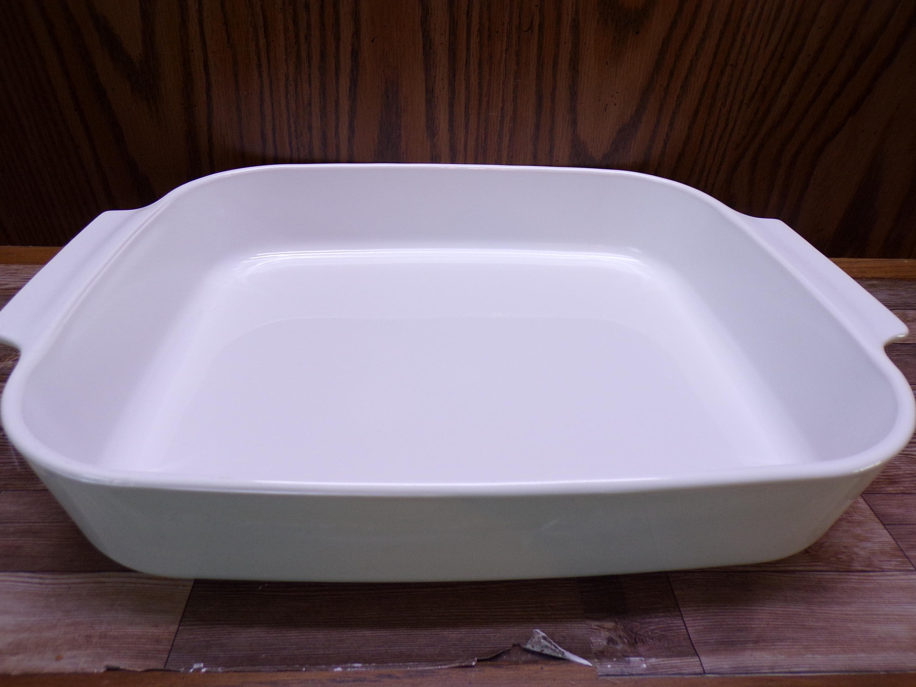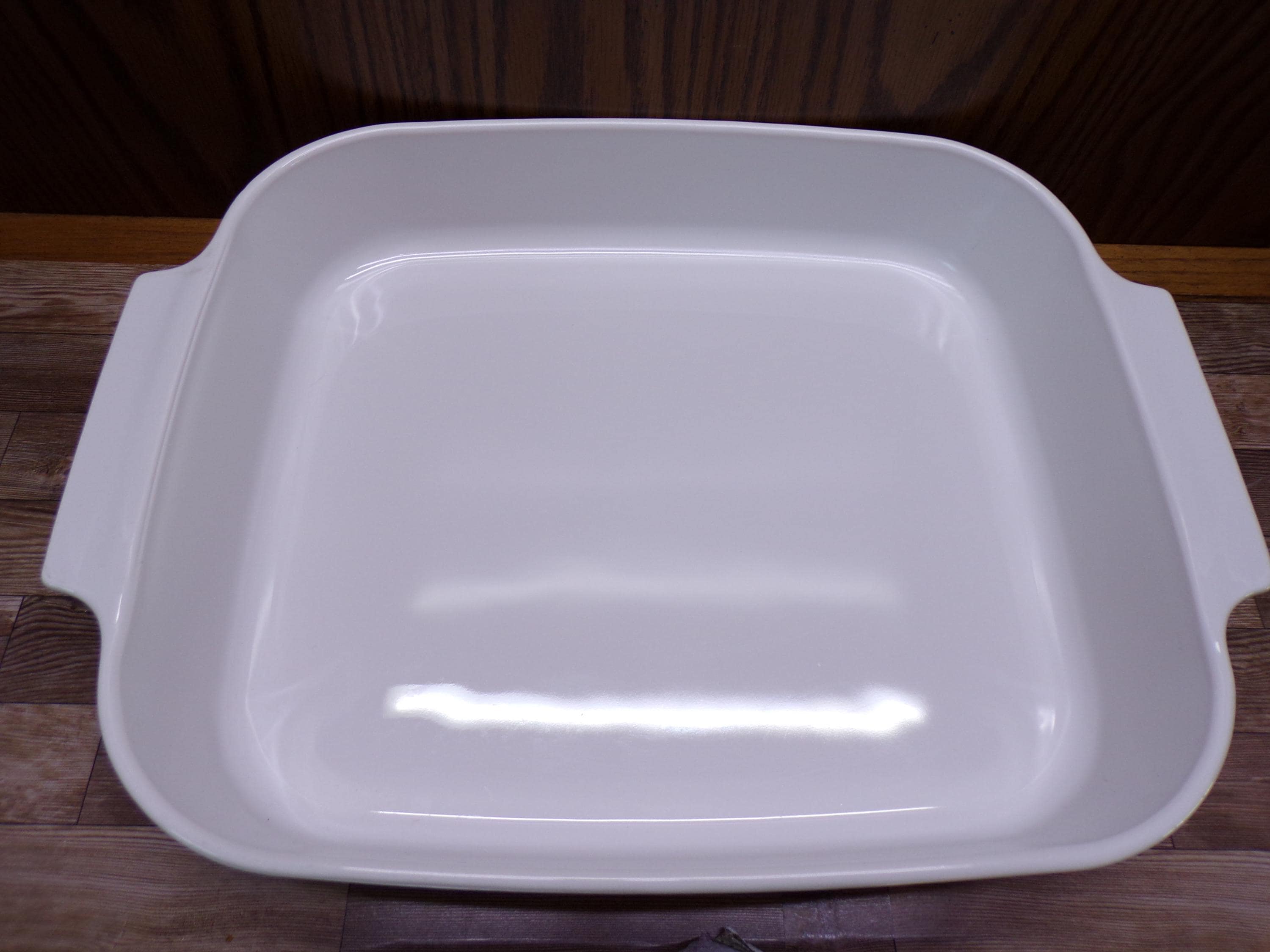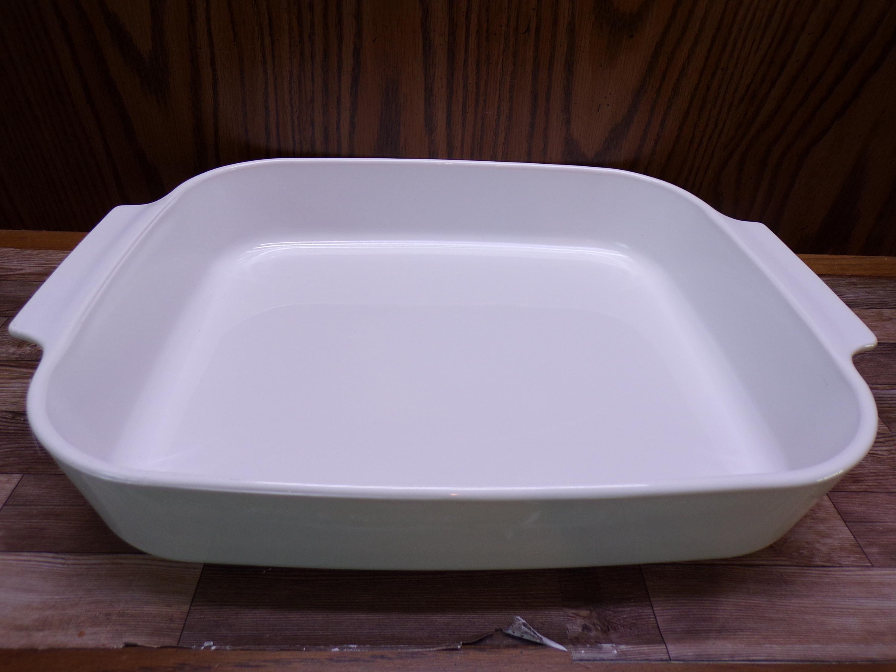 2511 Corning Ware White 4L Stoneware 12" X 10" Lasagna Casserole Baking Pan F-21-B-N Ribbed White - Good Condition Scuff Marks on Bottom