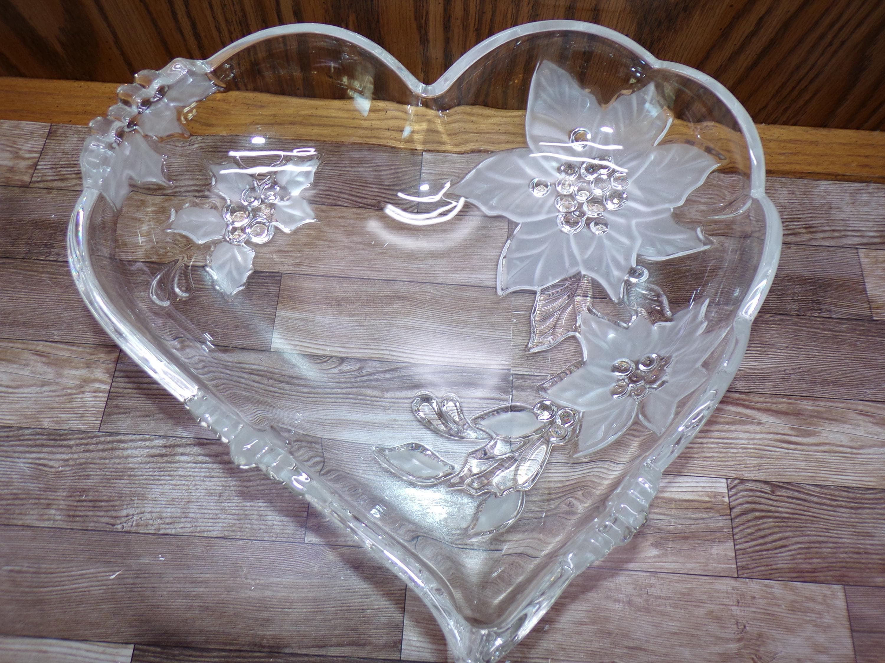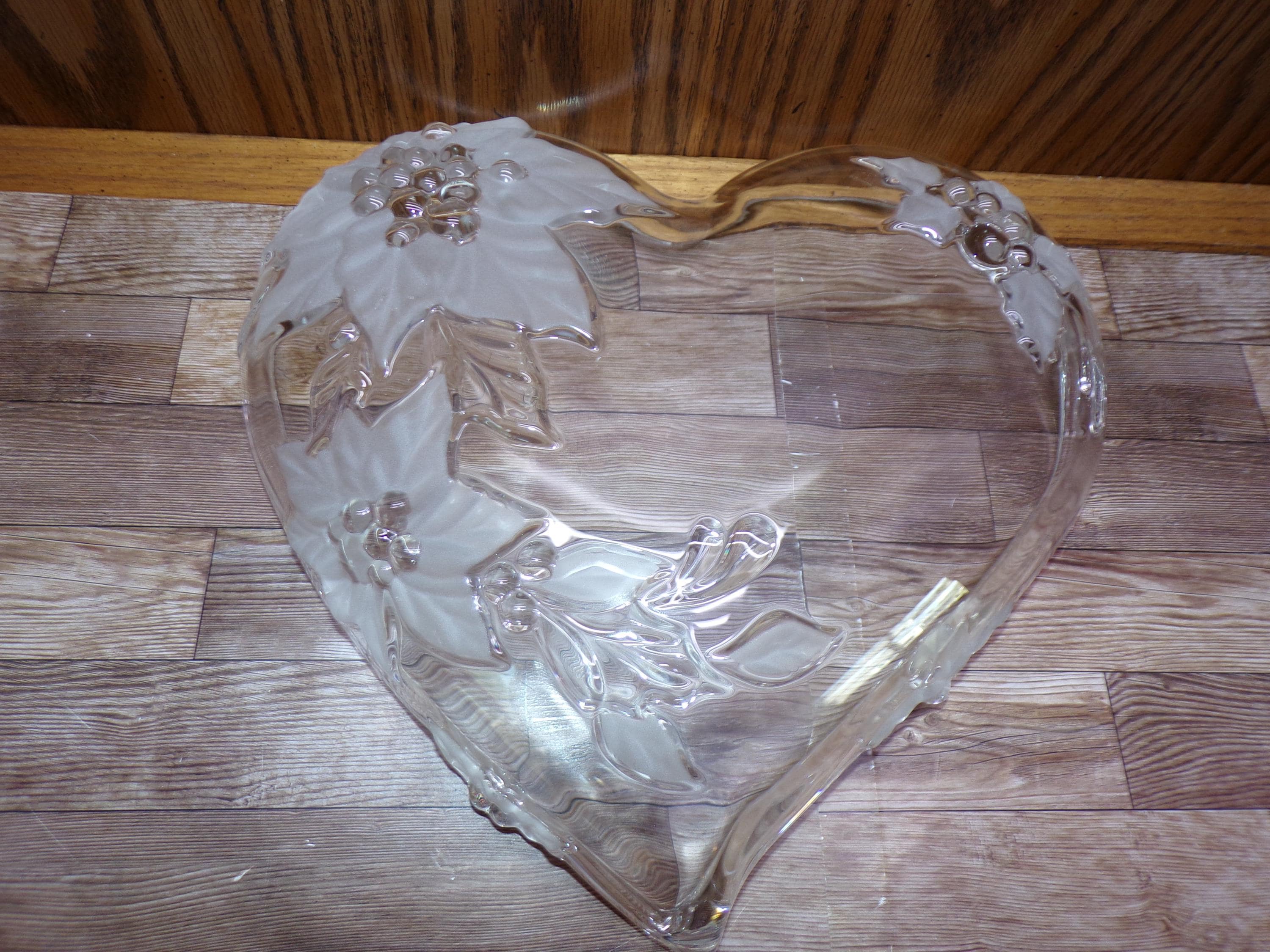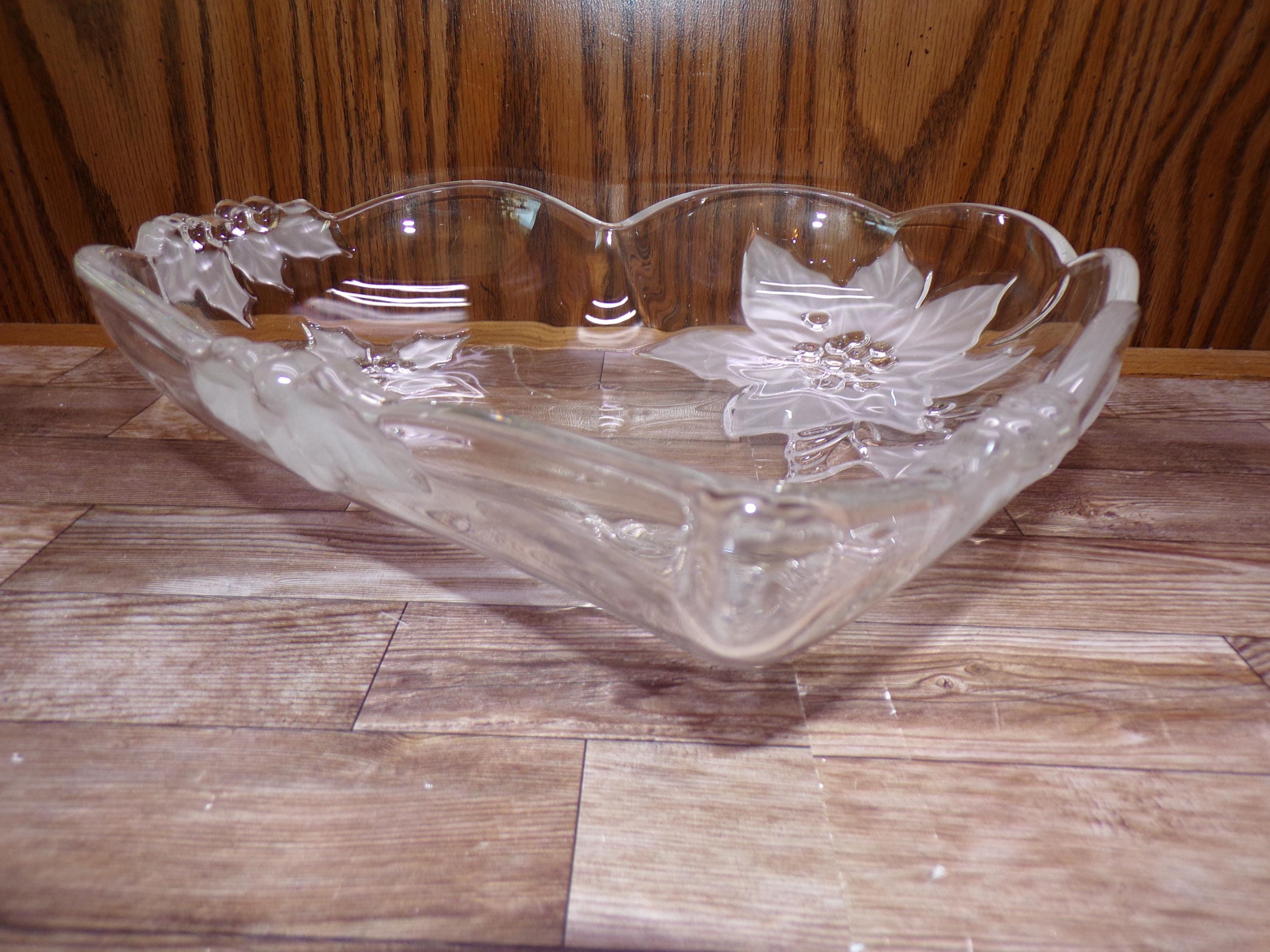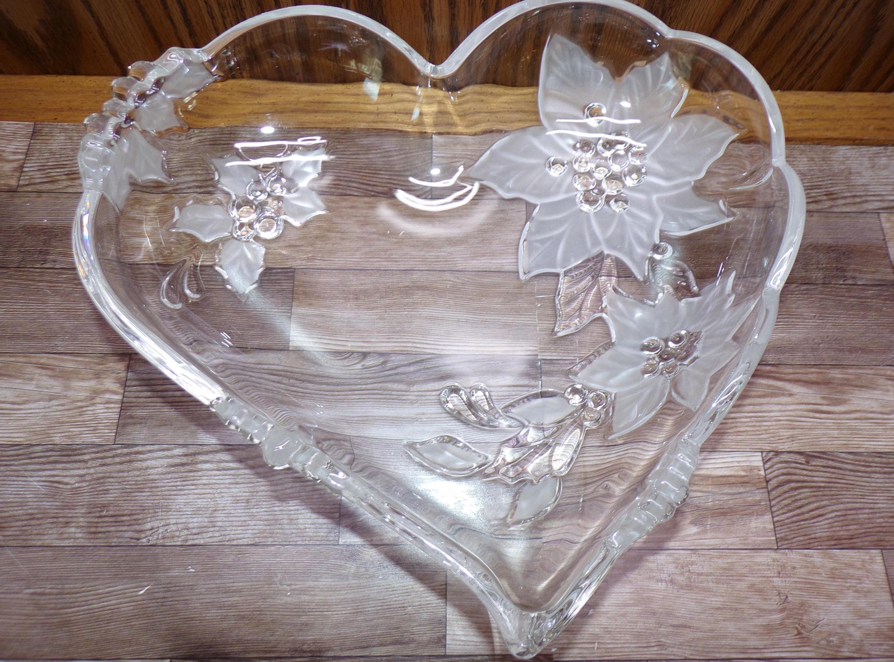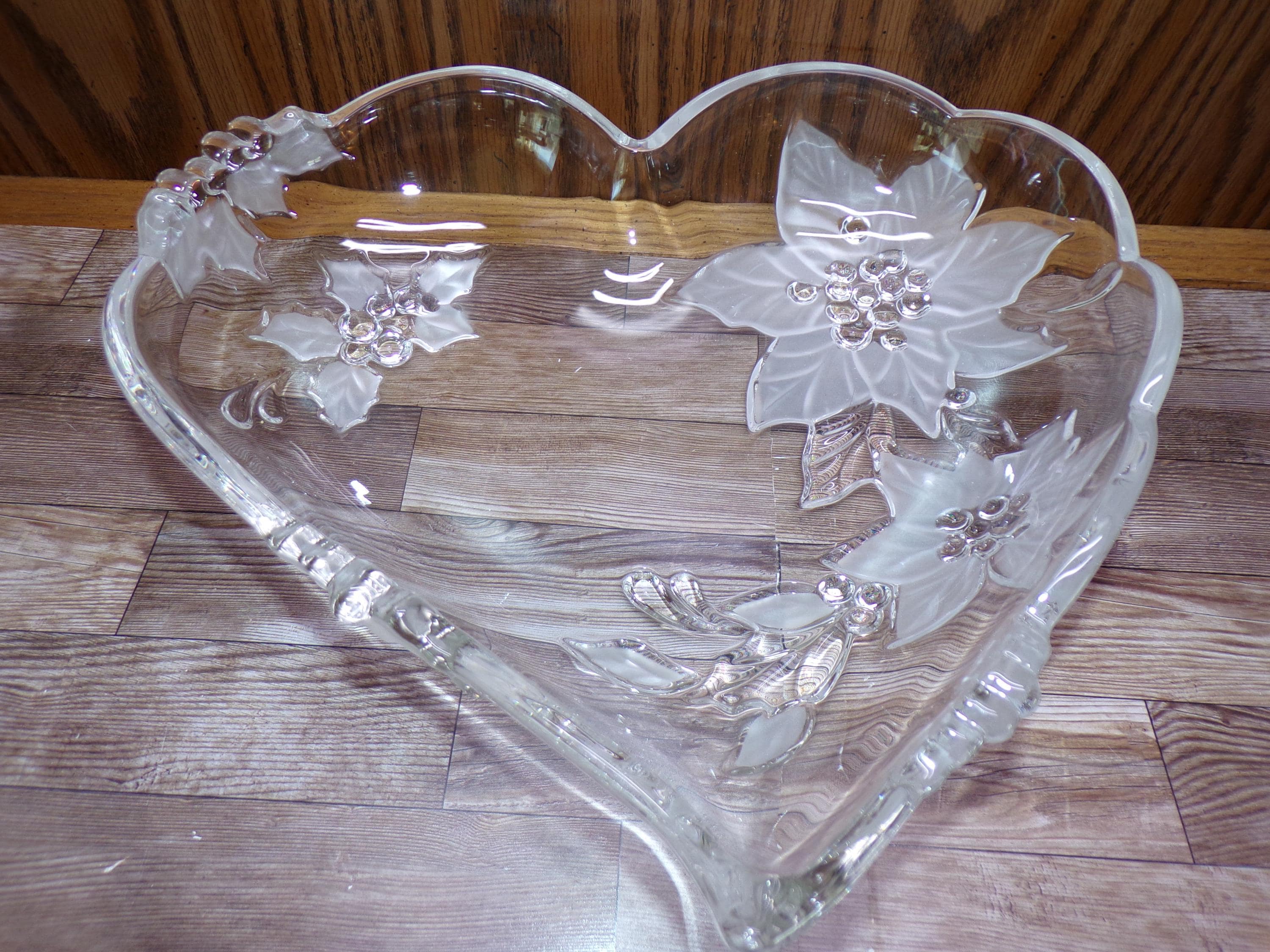 2511 Mikasa Crystal Heart 10" Frosted Poinsettia Dish Centerpiece Platter Bowl - Made in Germany - Great Condition