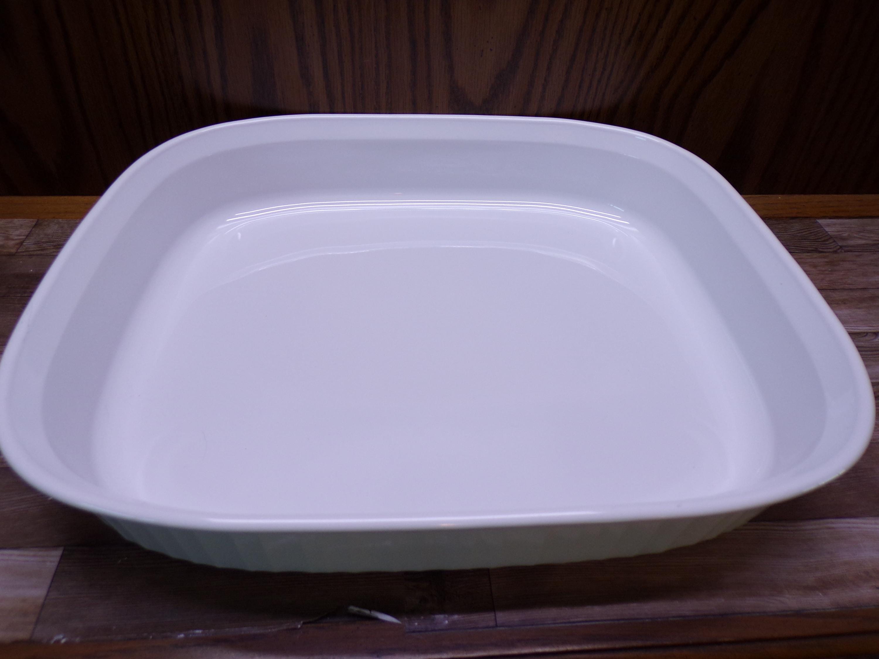 2511 Corning Ware French White 4.5L Stoneware 13" X 9" Lasagna Casserole Baking Pan F-21-B Ribbed White - Great Condition