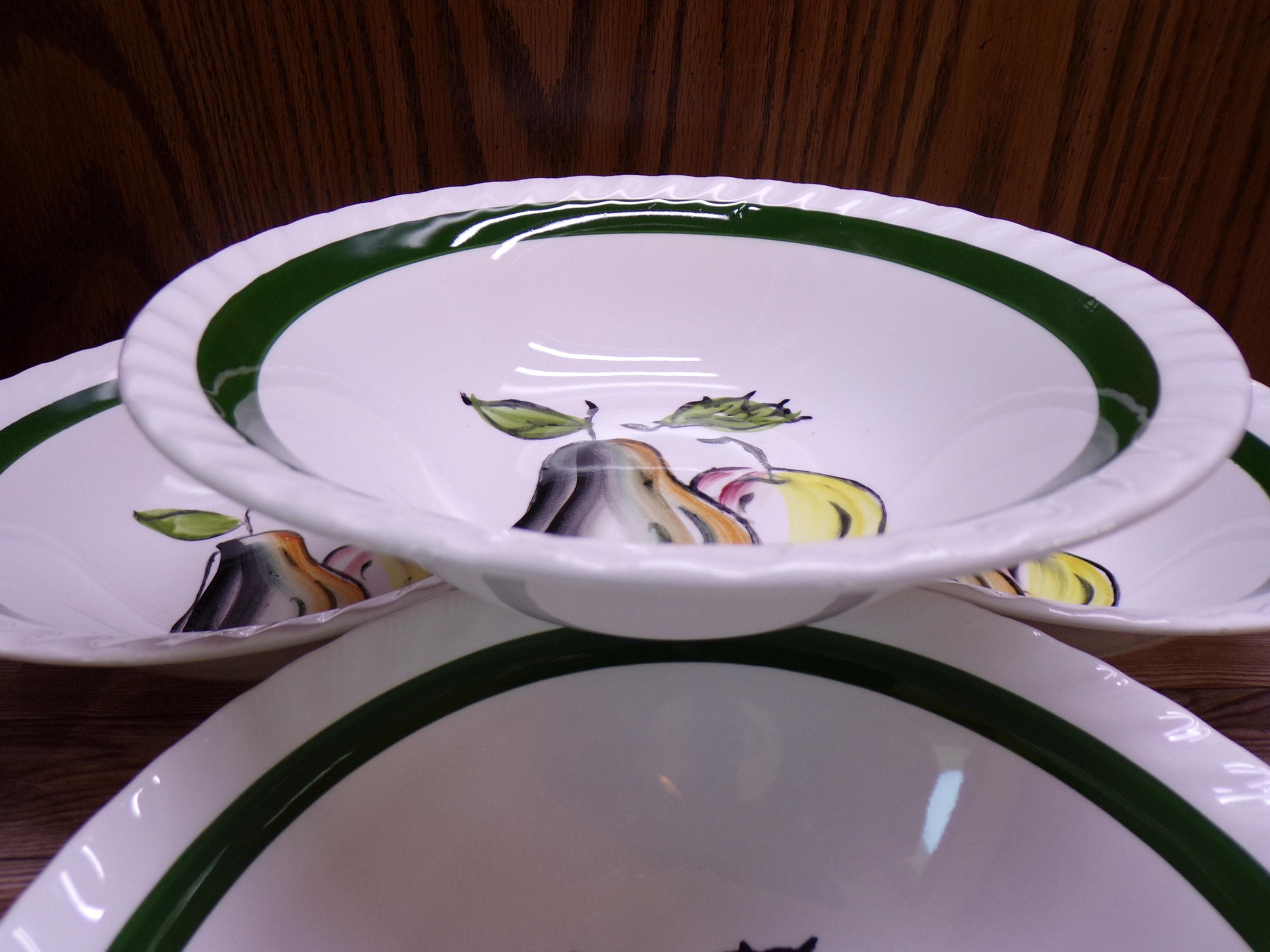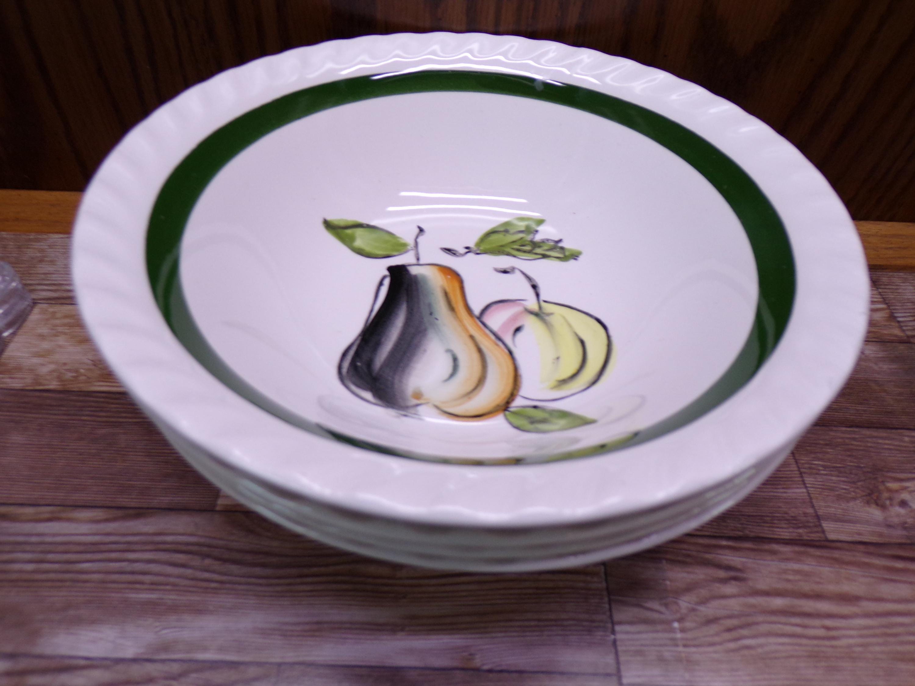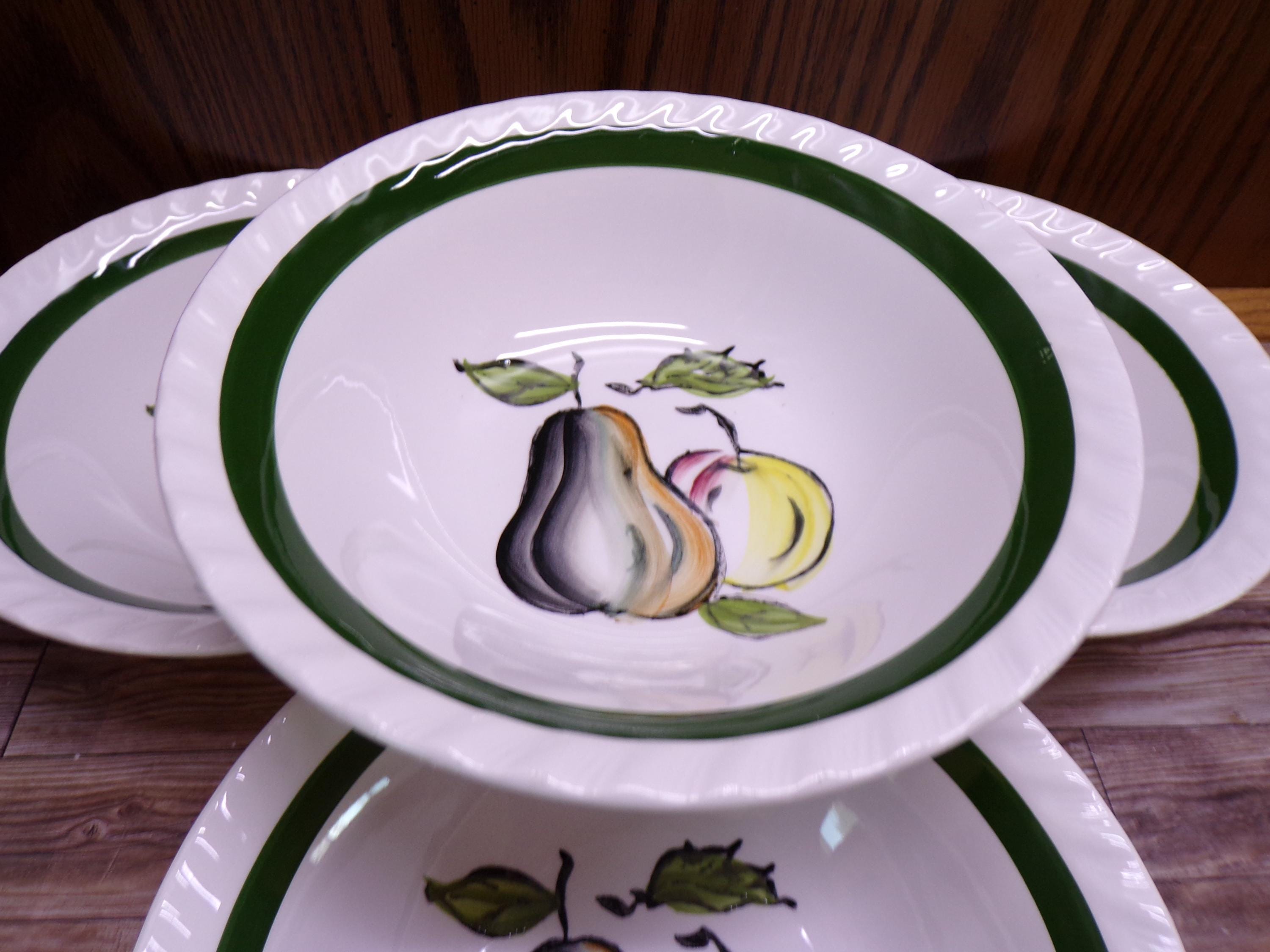 2511 Blue Ridge Southern Pottery Ridge Harvest Pattern Green Rim Cereal / Soup Bowls - Great Condition