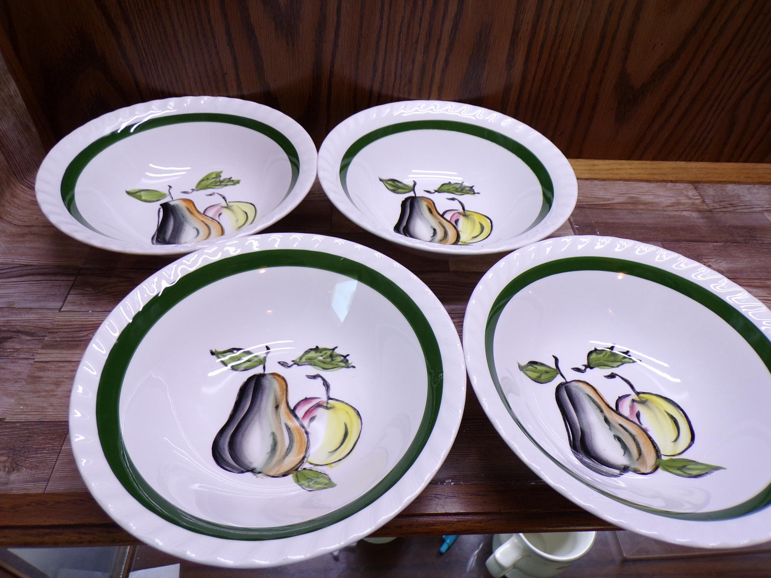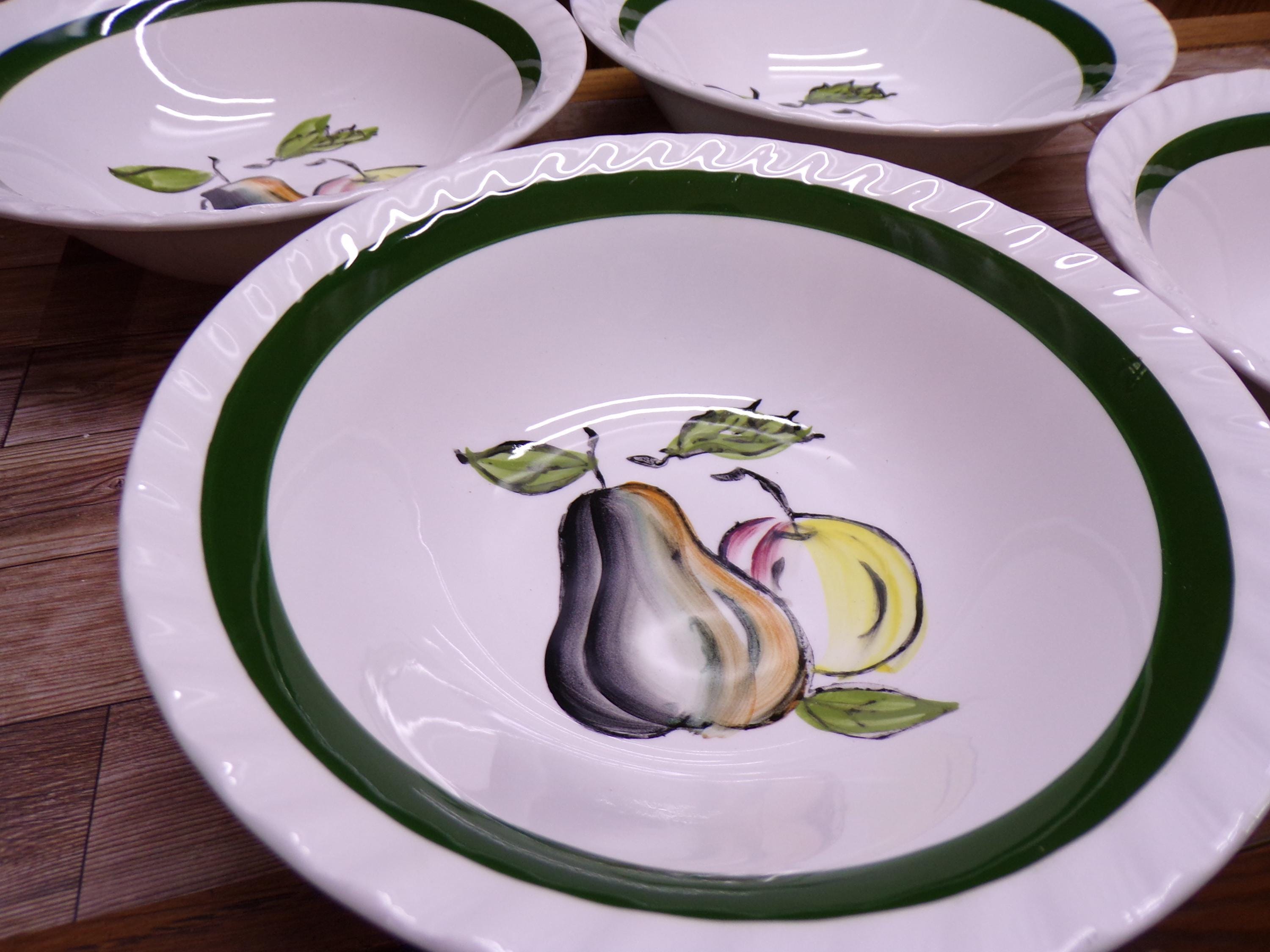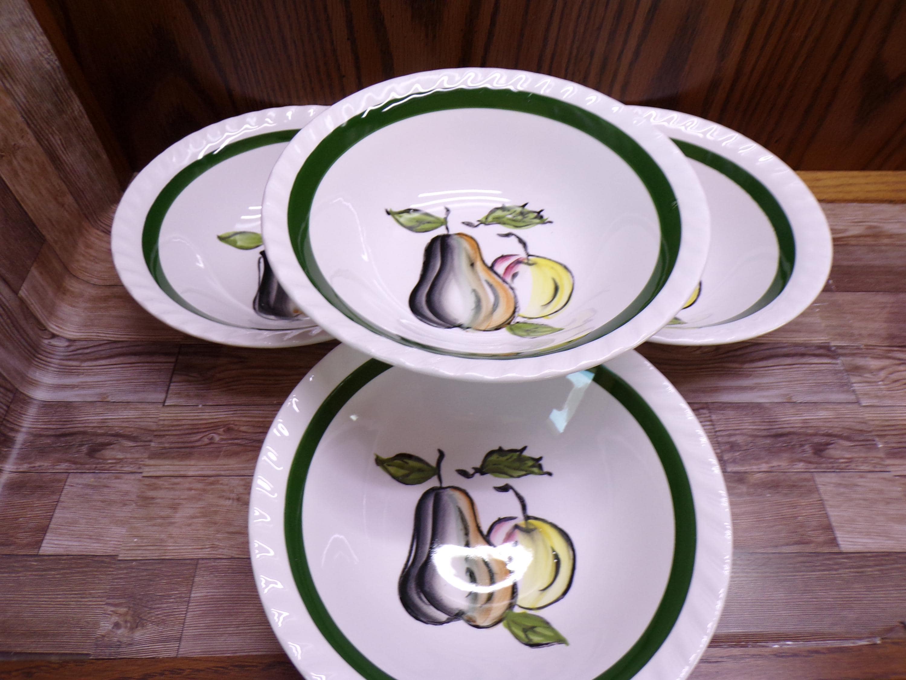 2511 Blue Ridge Southern Pottery Ridge Harvest Pattern Green Rim Cereal / Soup Bowls - Great Condition