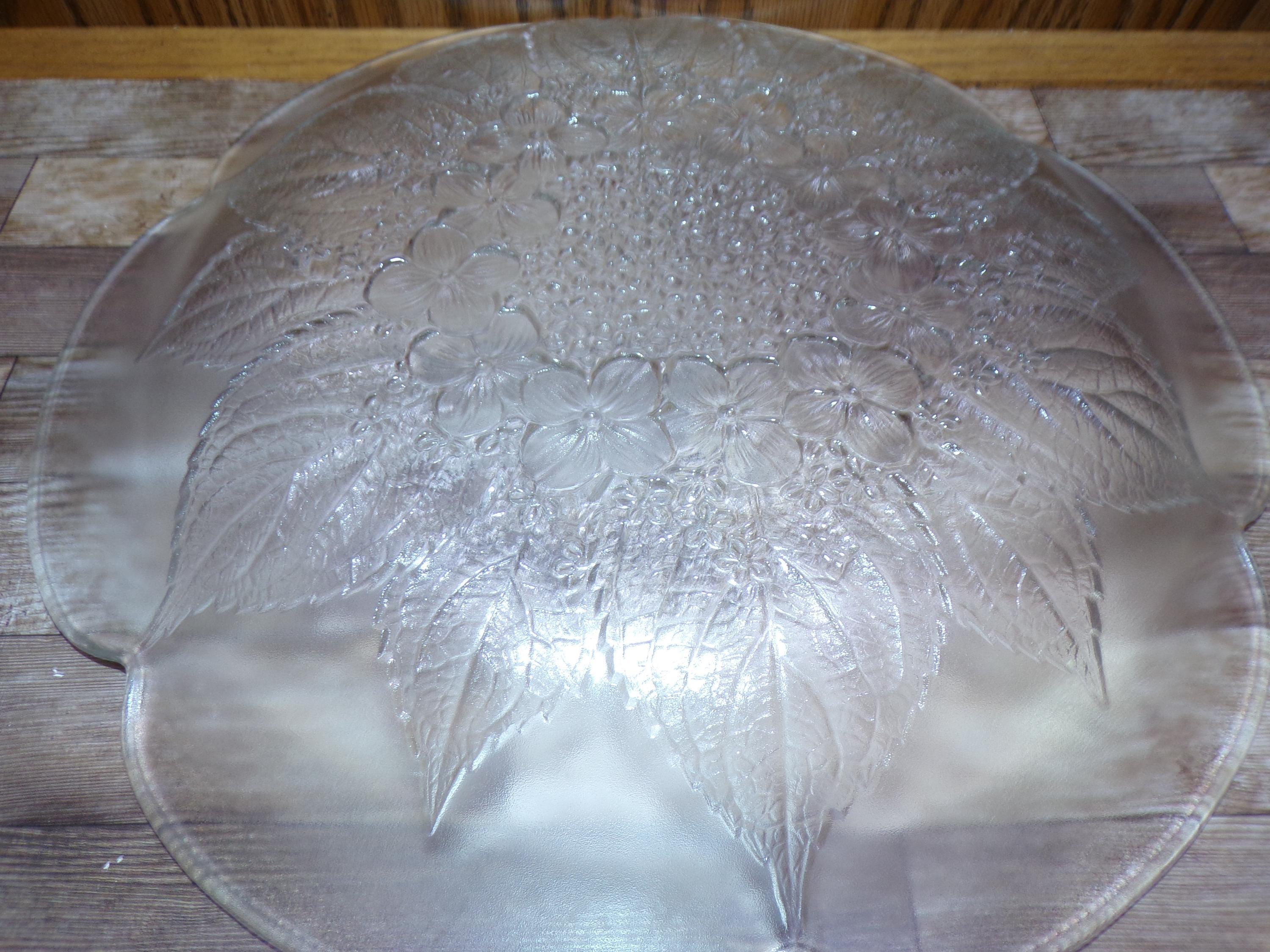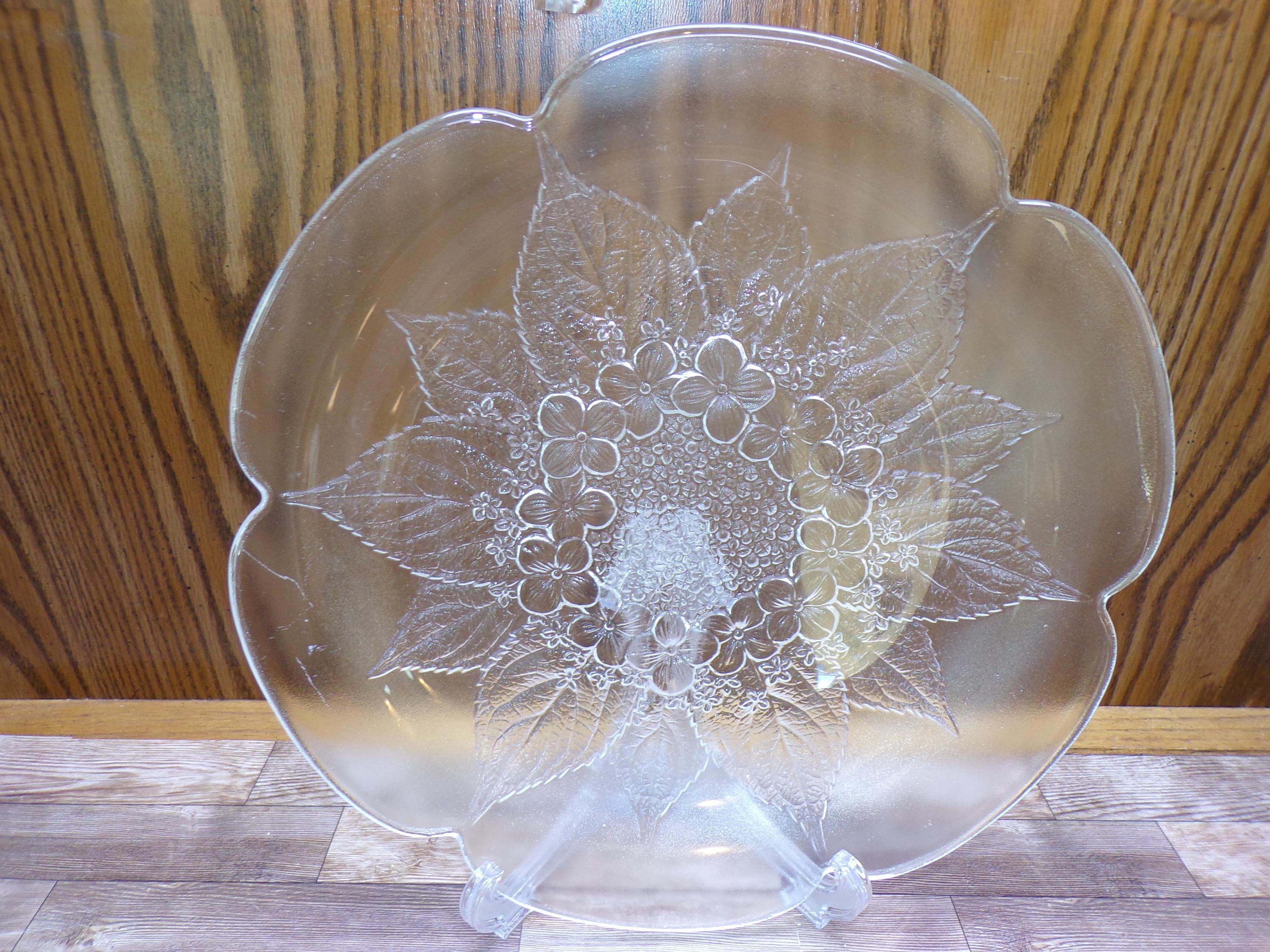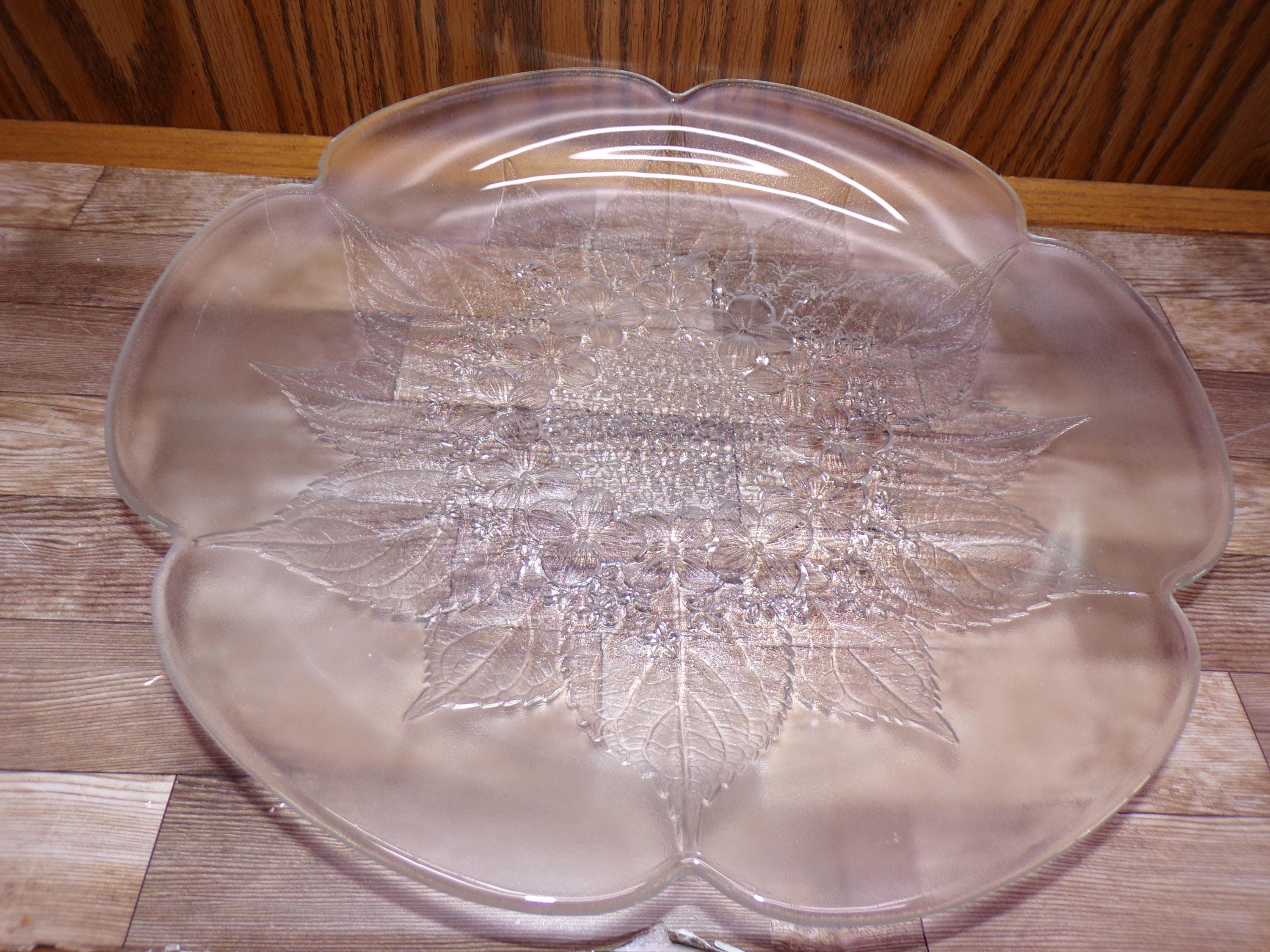 2511 Mikasa Hoya Vintage 12" Crystal Raised Leaf & Dogwood Floral Pattern Textured platter - Great Condition